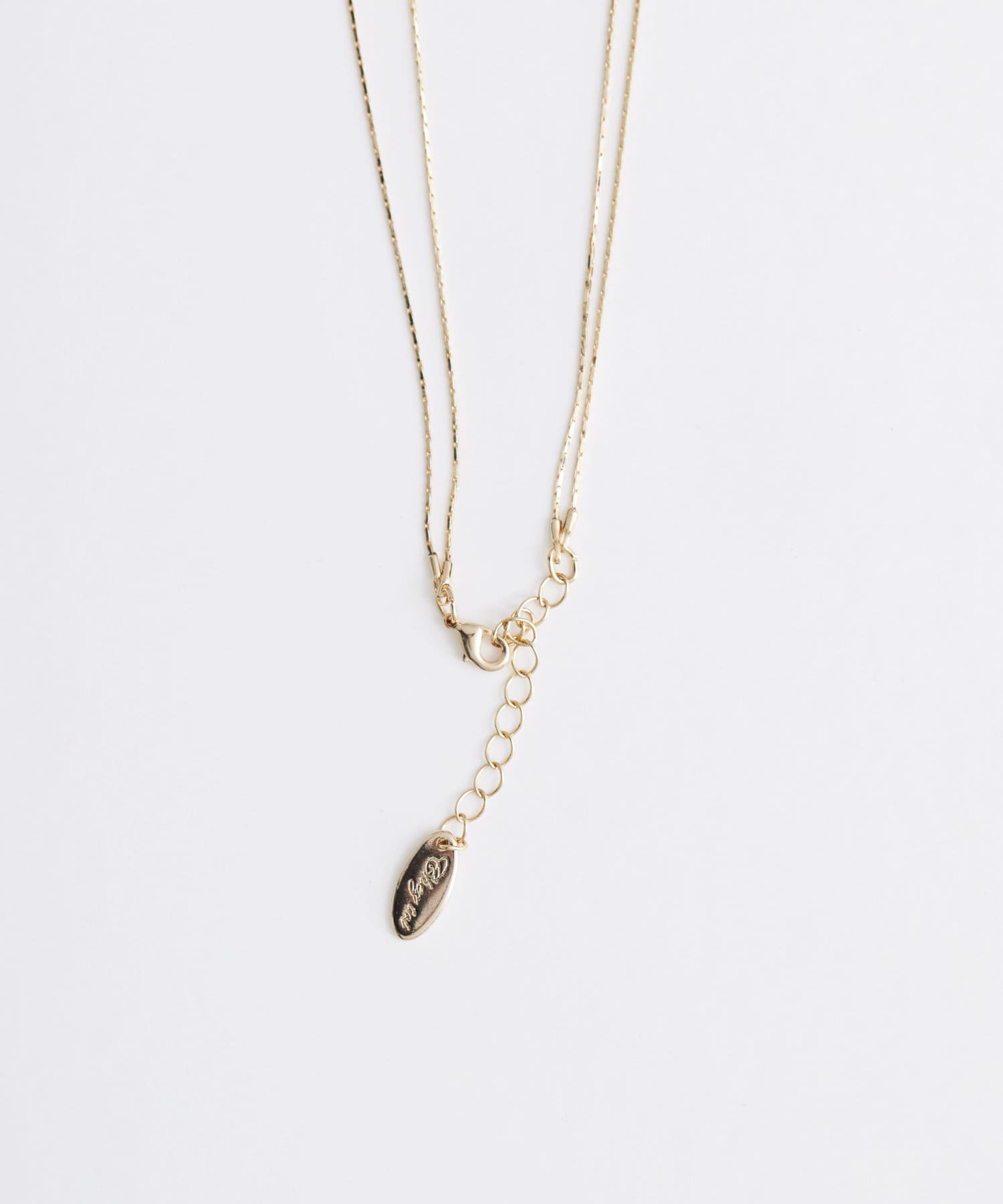 華奢なスネークチェーンのネックレスにブロックモチーフロングネックレス