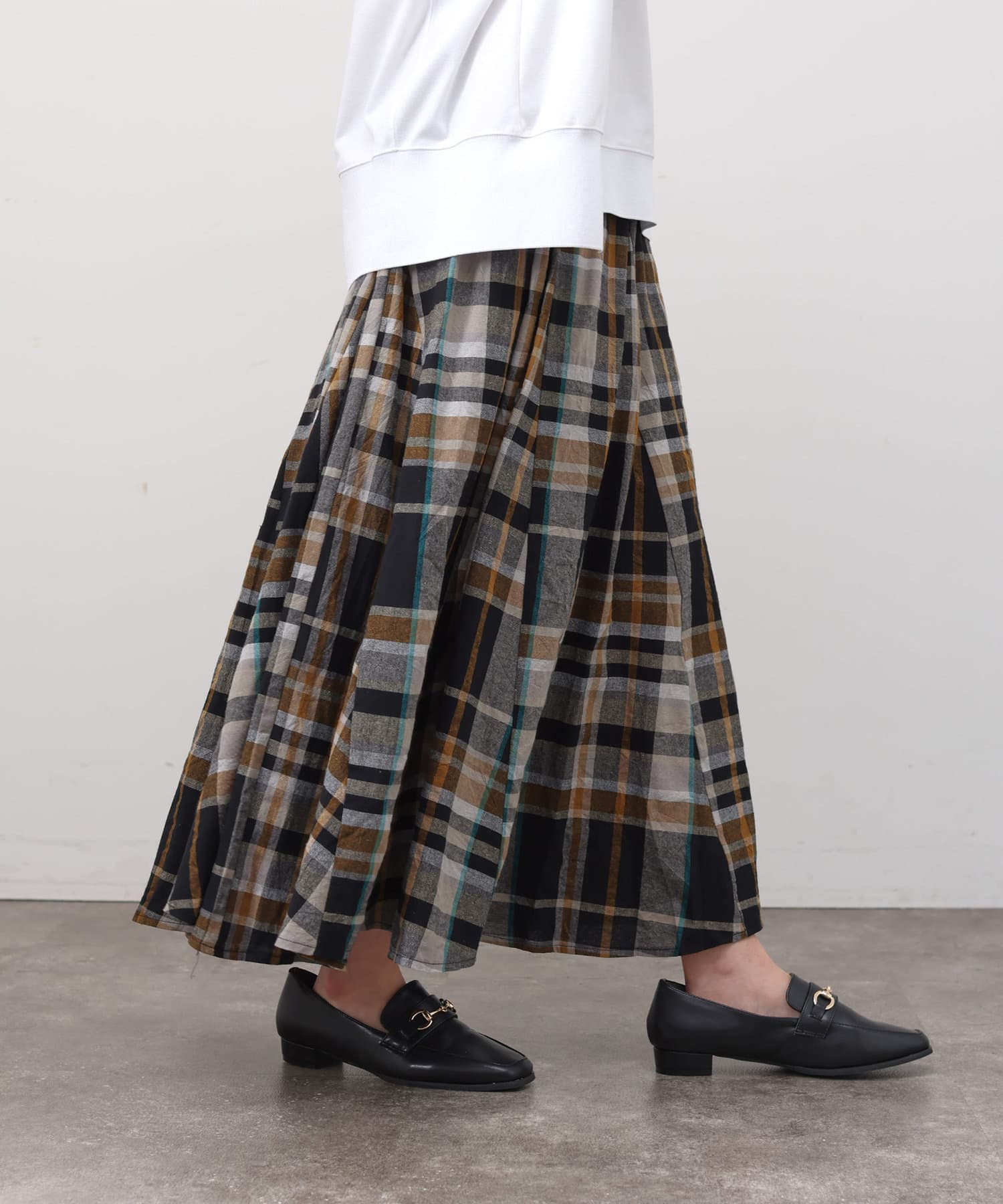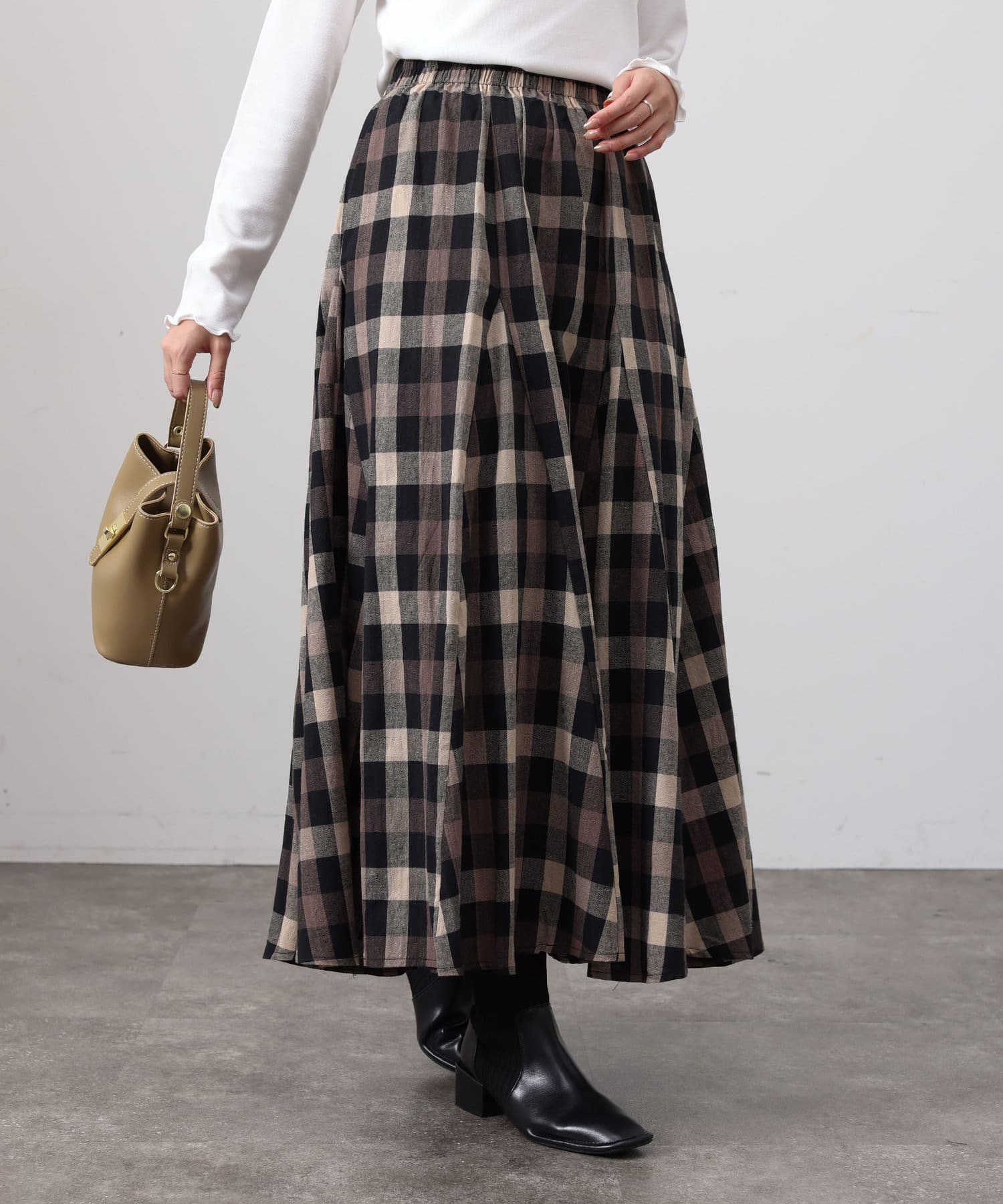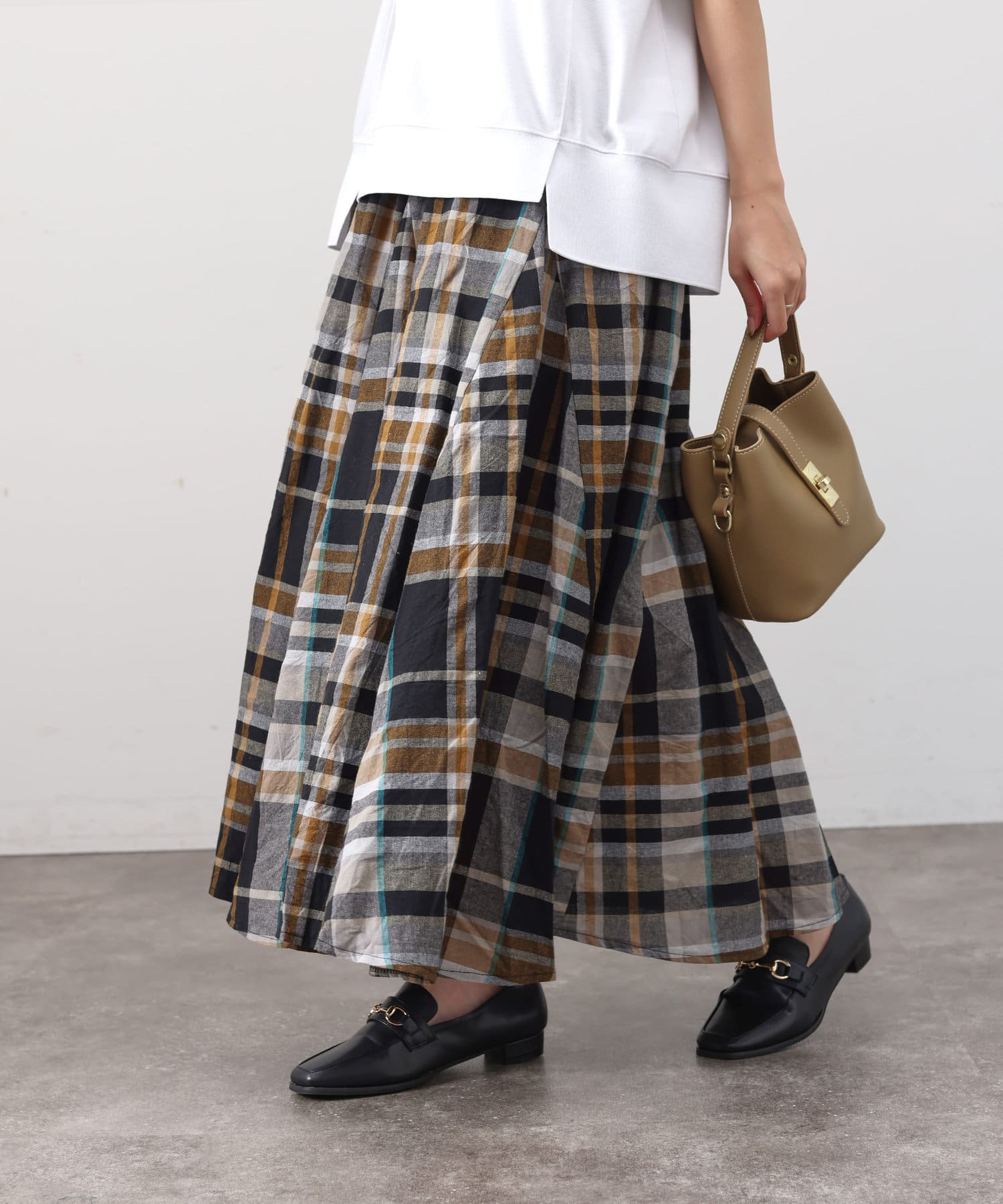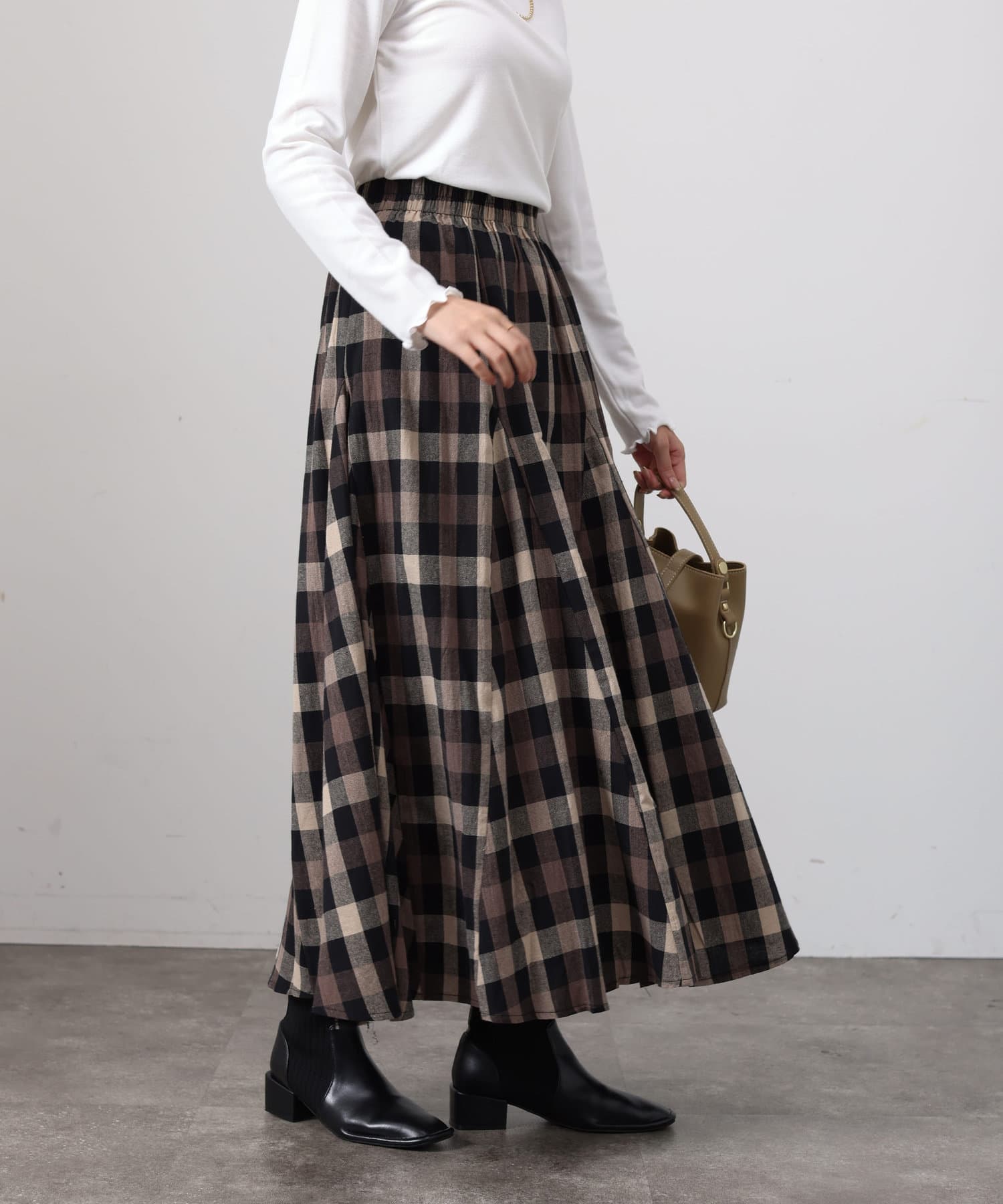 大柄チェック柄がコーディネートの主役になるオトナカジュアルスカート