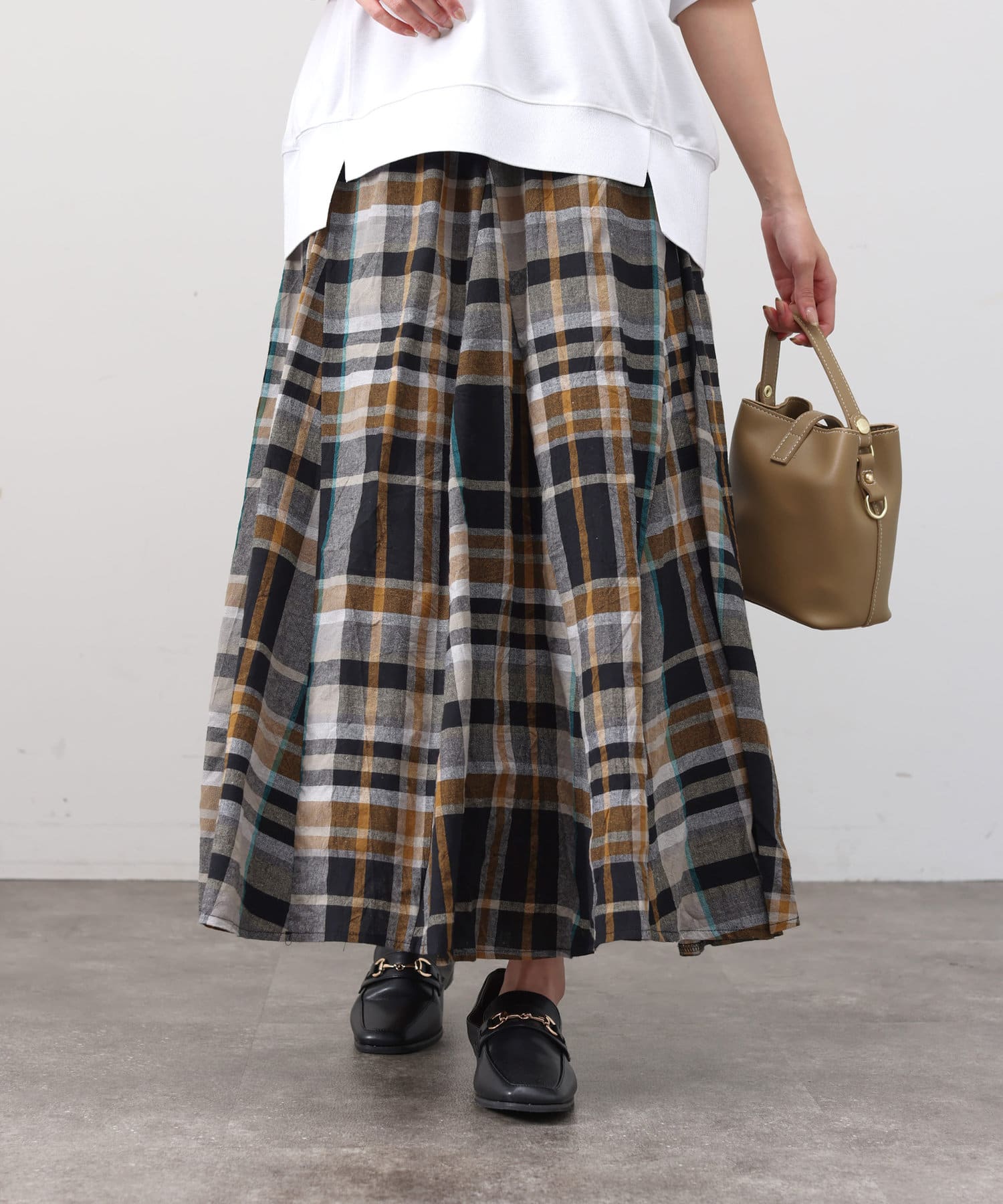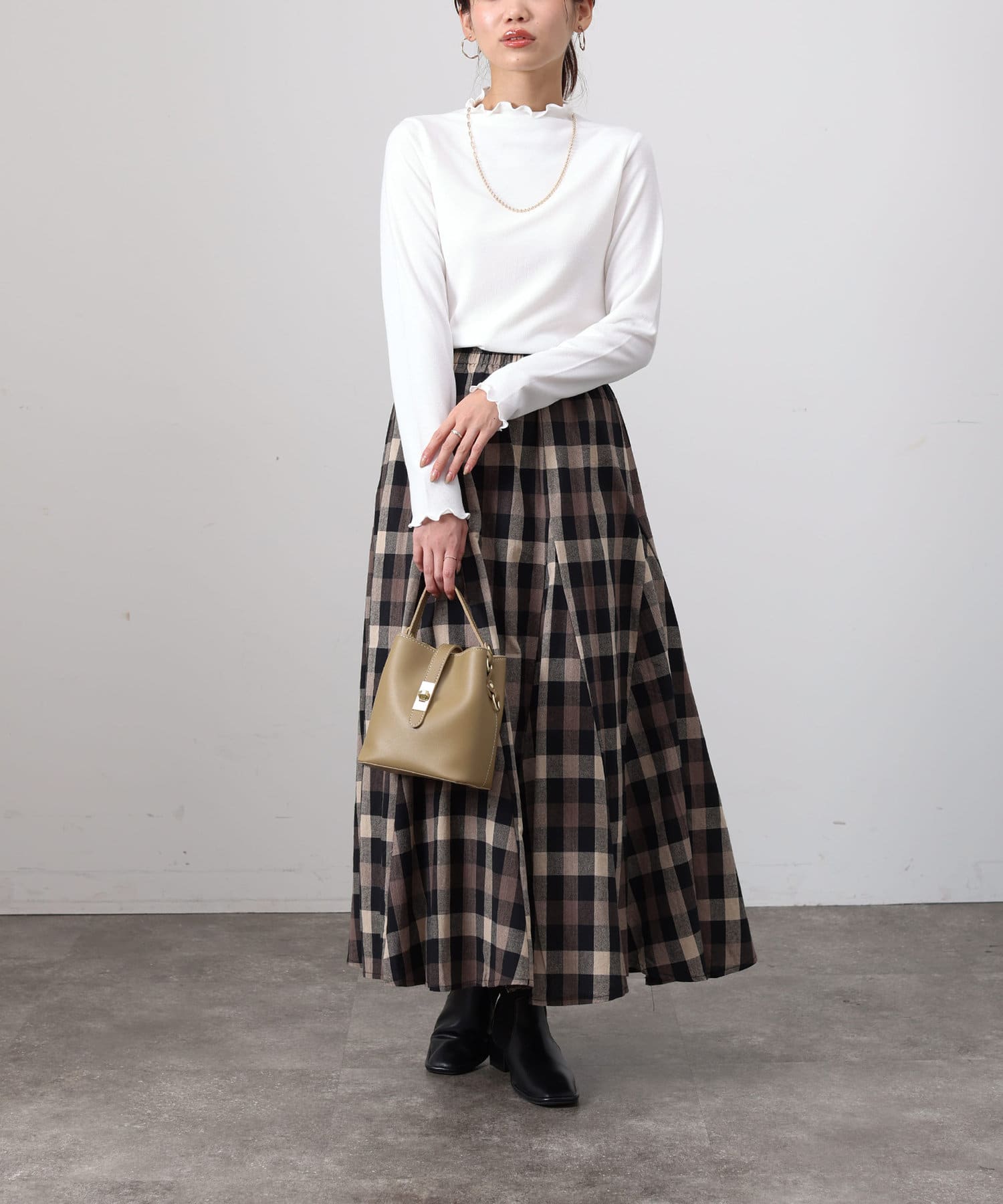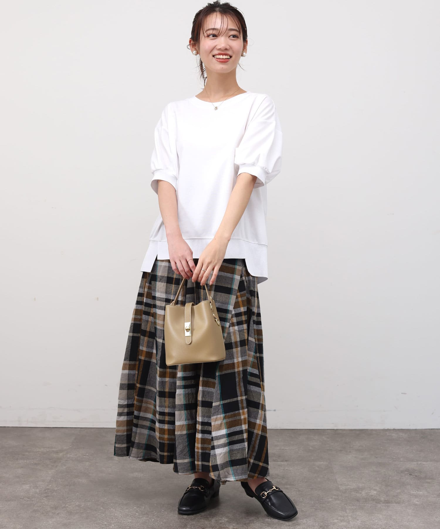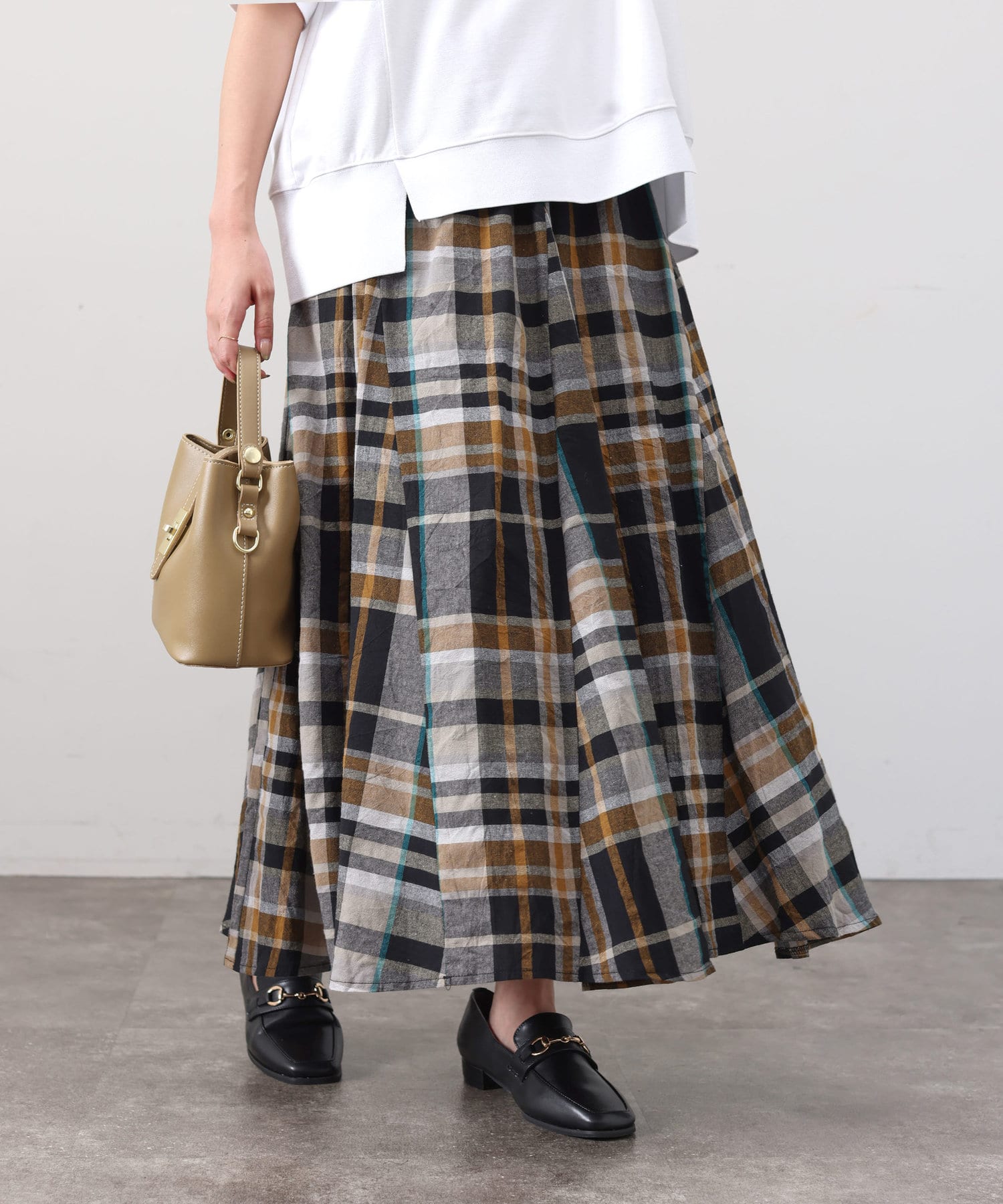 大柄チェック柄がコーディネートの主役になるオトナカジュアルスカート