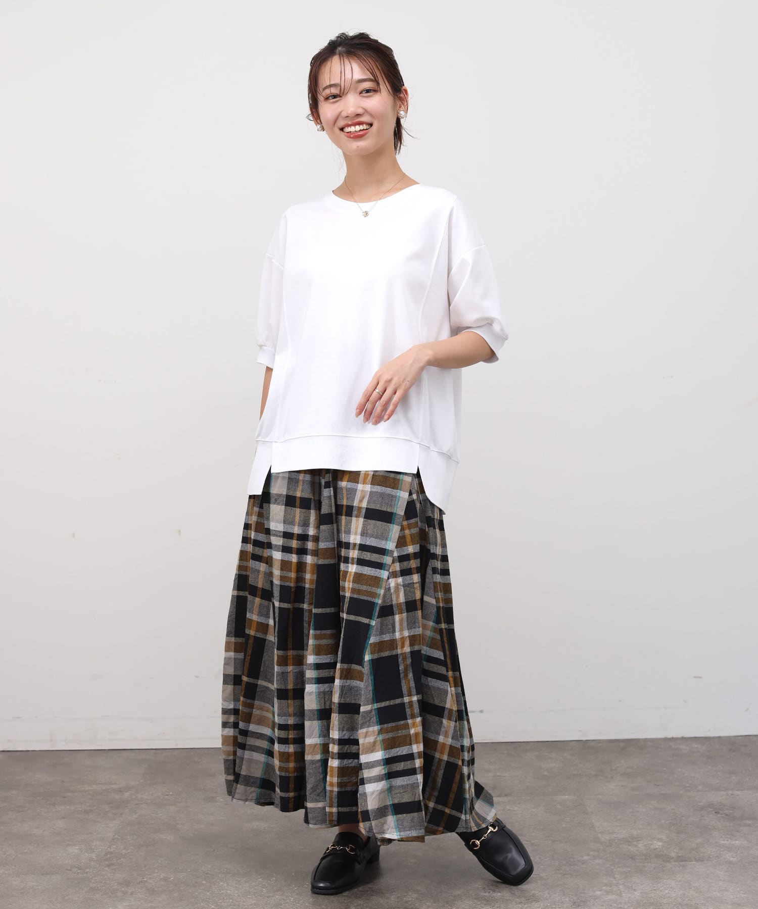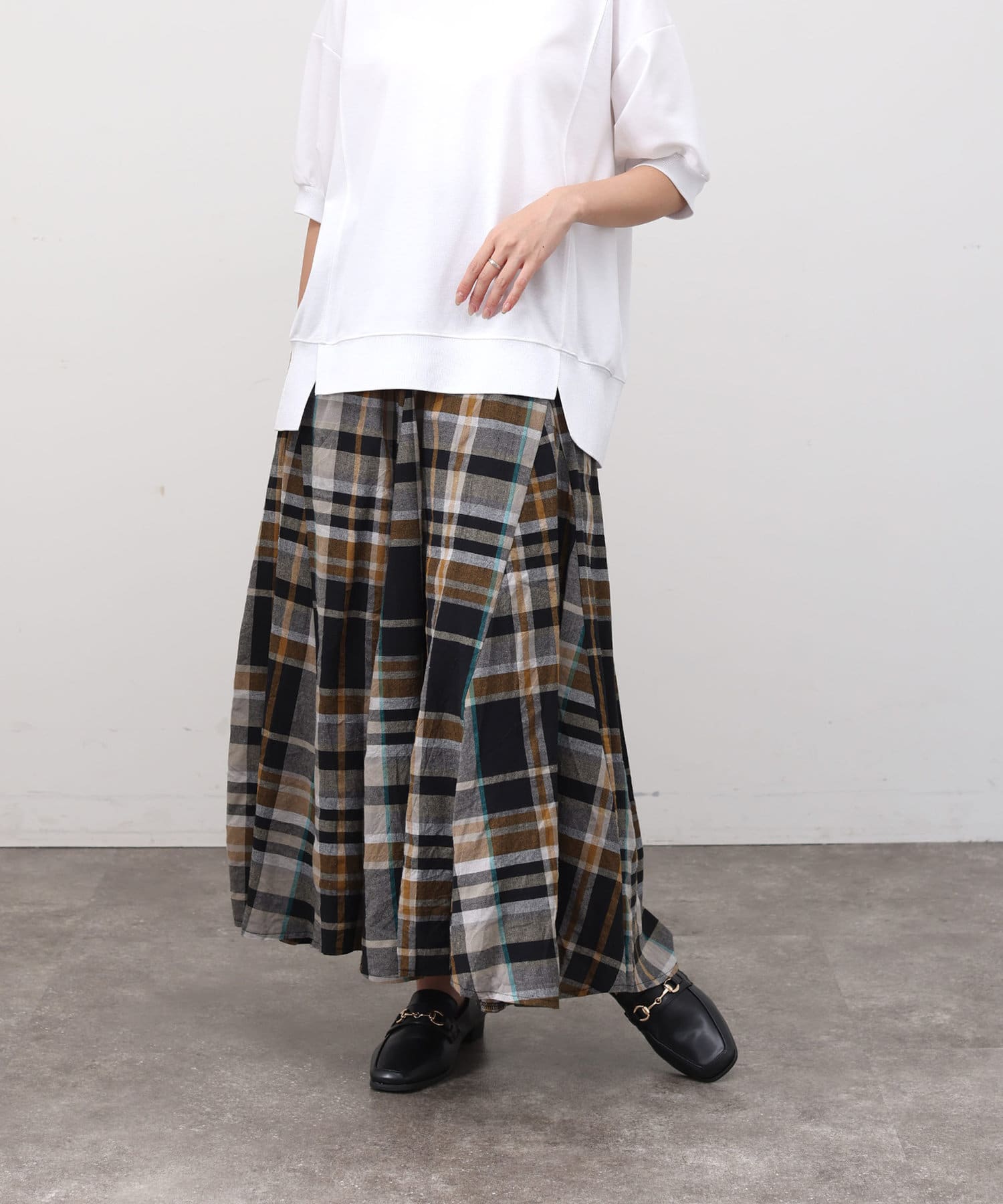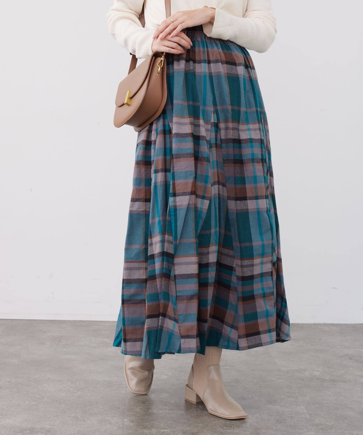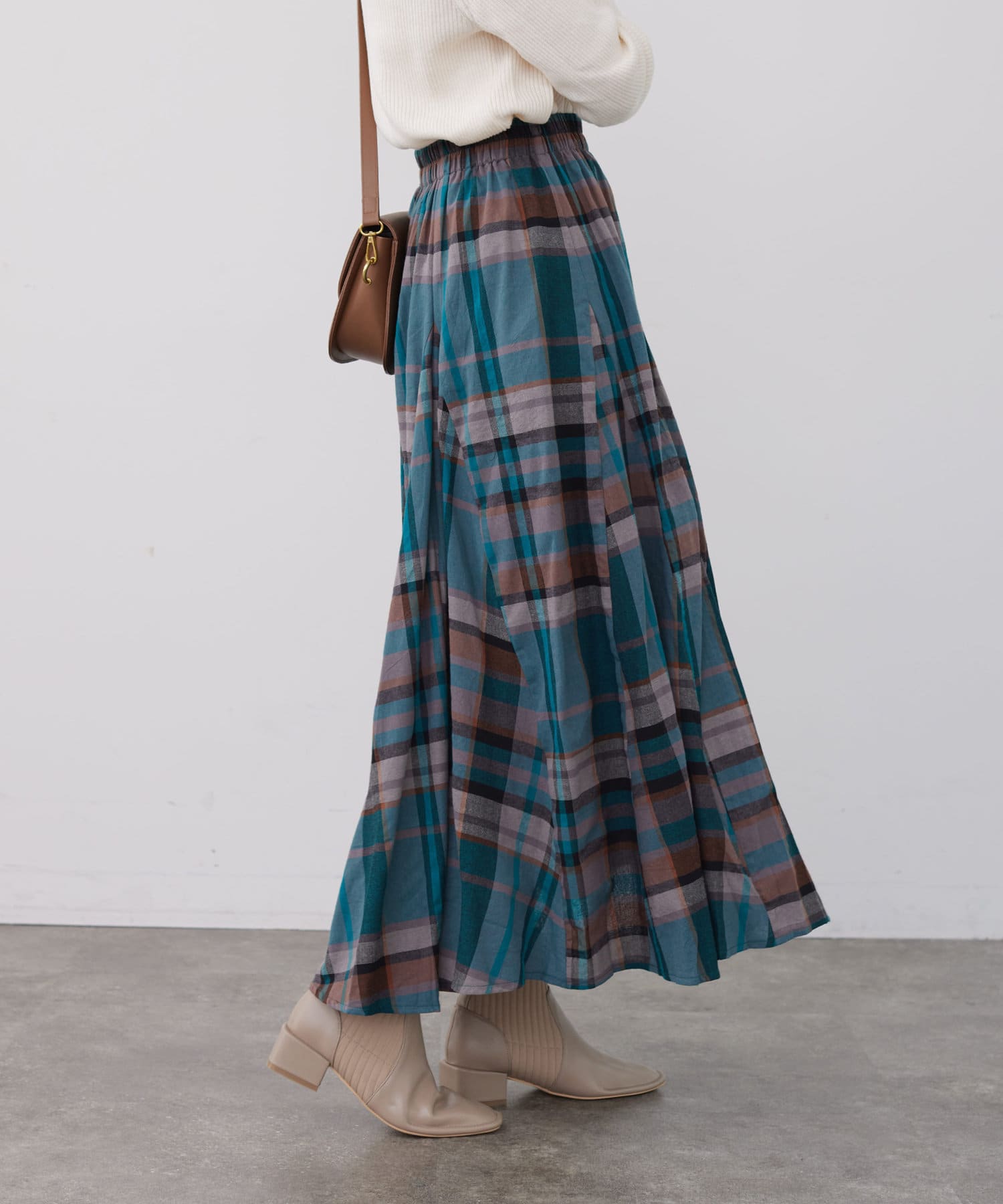 大柄チェック柄がコーディネートの主役になるオトナカジュアルスカート
