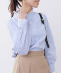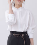 TOP > Chez toi > レディース > トップス > シャツ/ブラウス(ボタン) > 袖ボリュームネックフリルシャツ