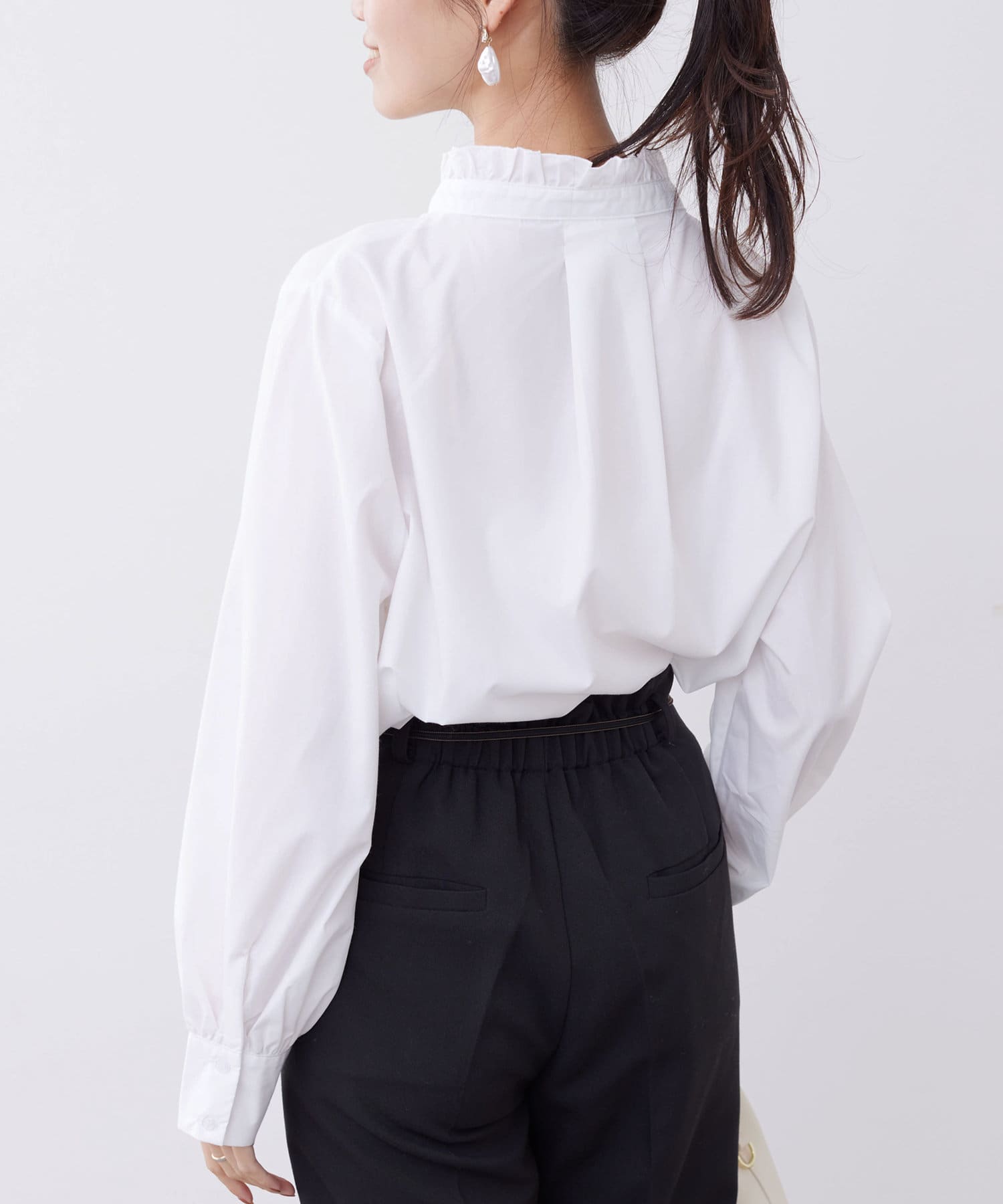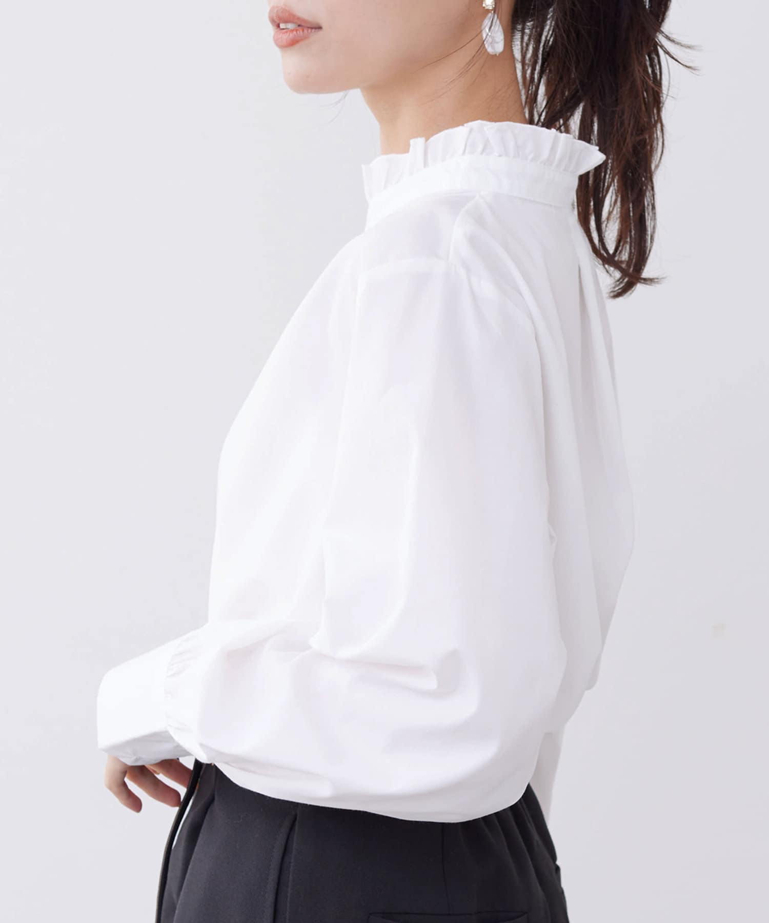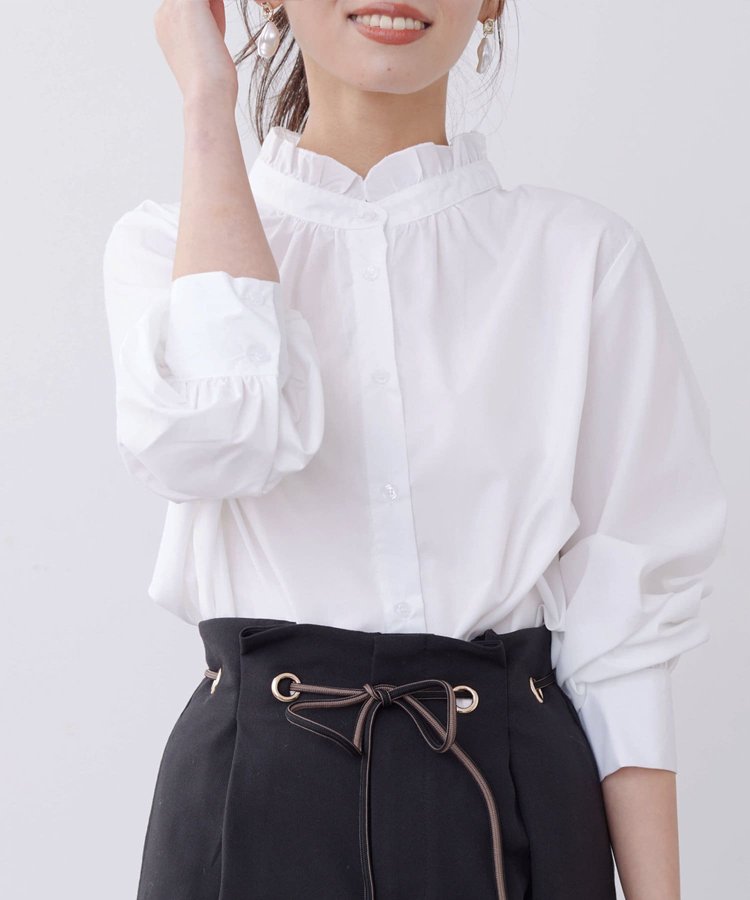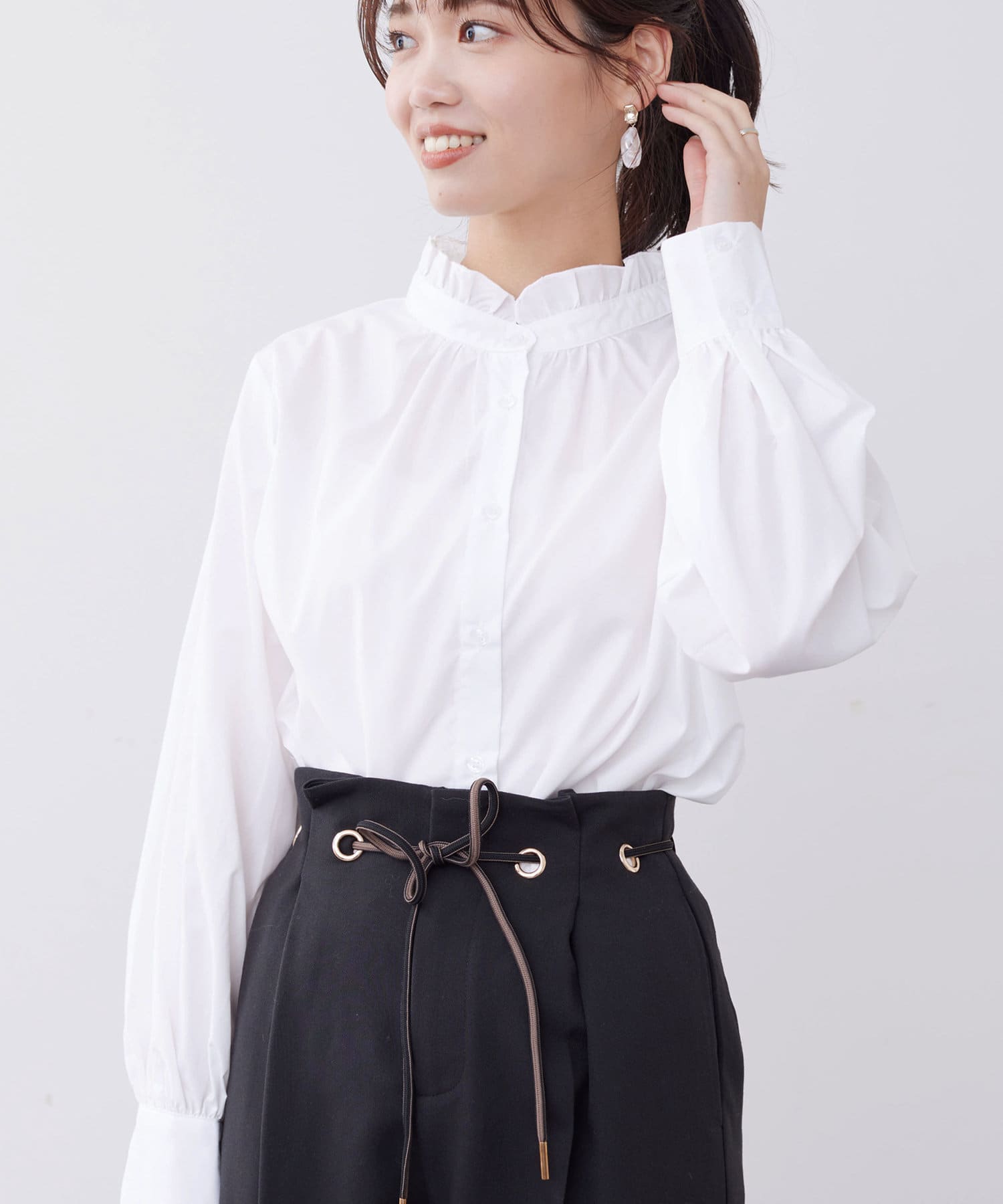 オトナかわいいネックフリルシャツ