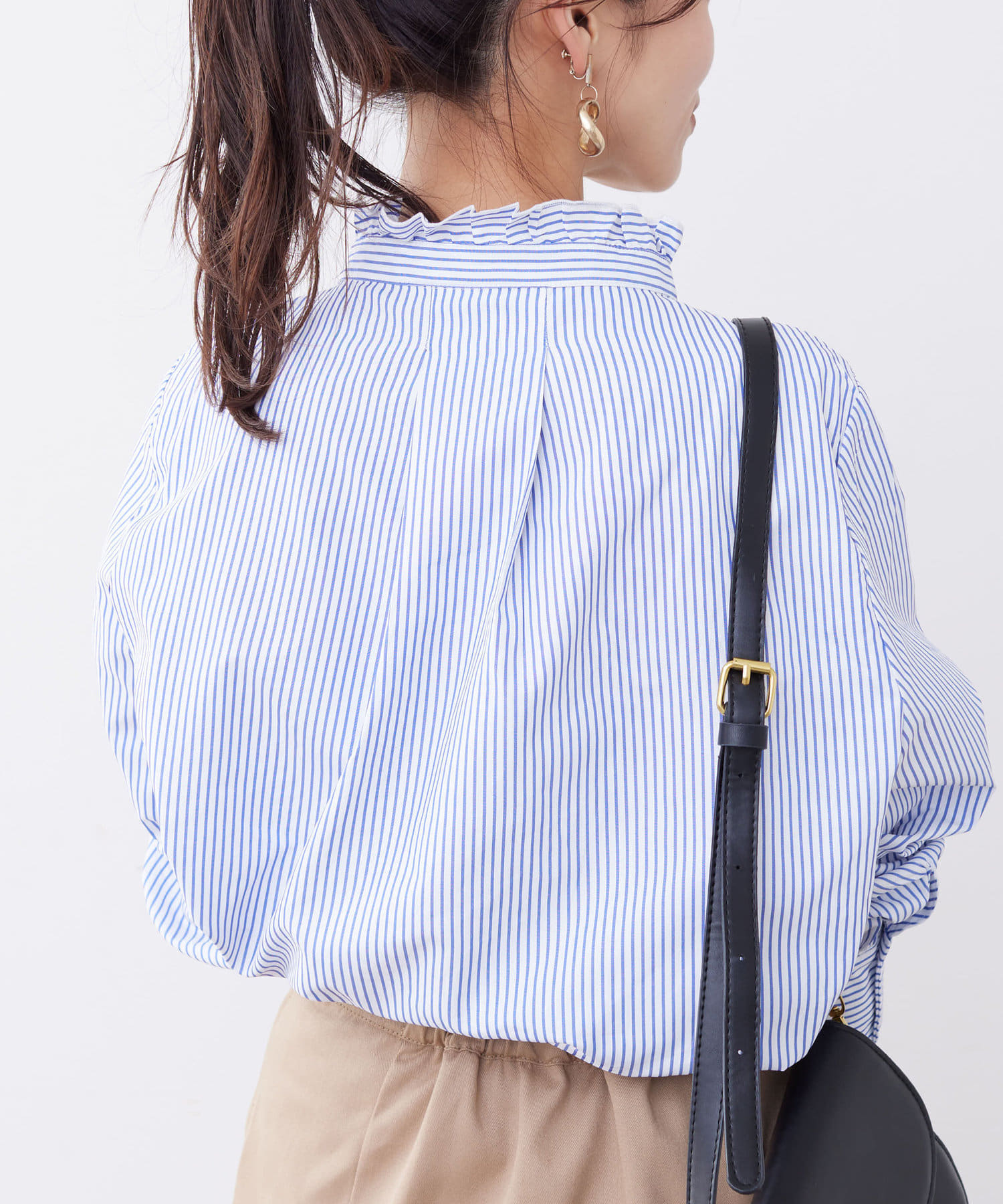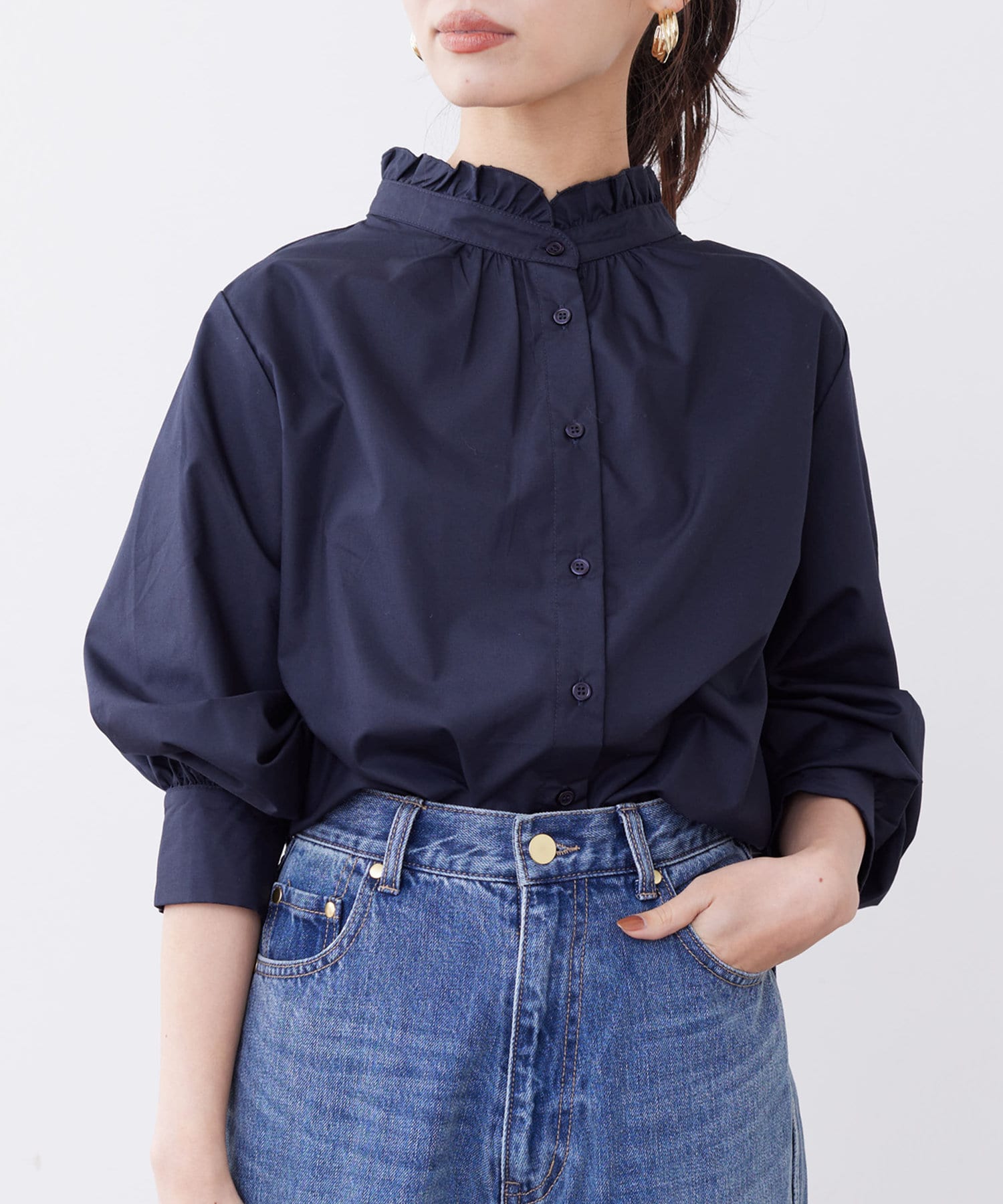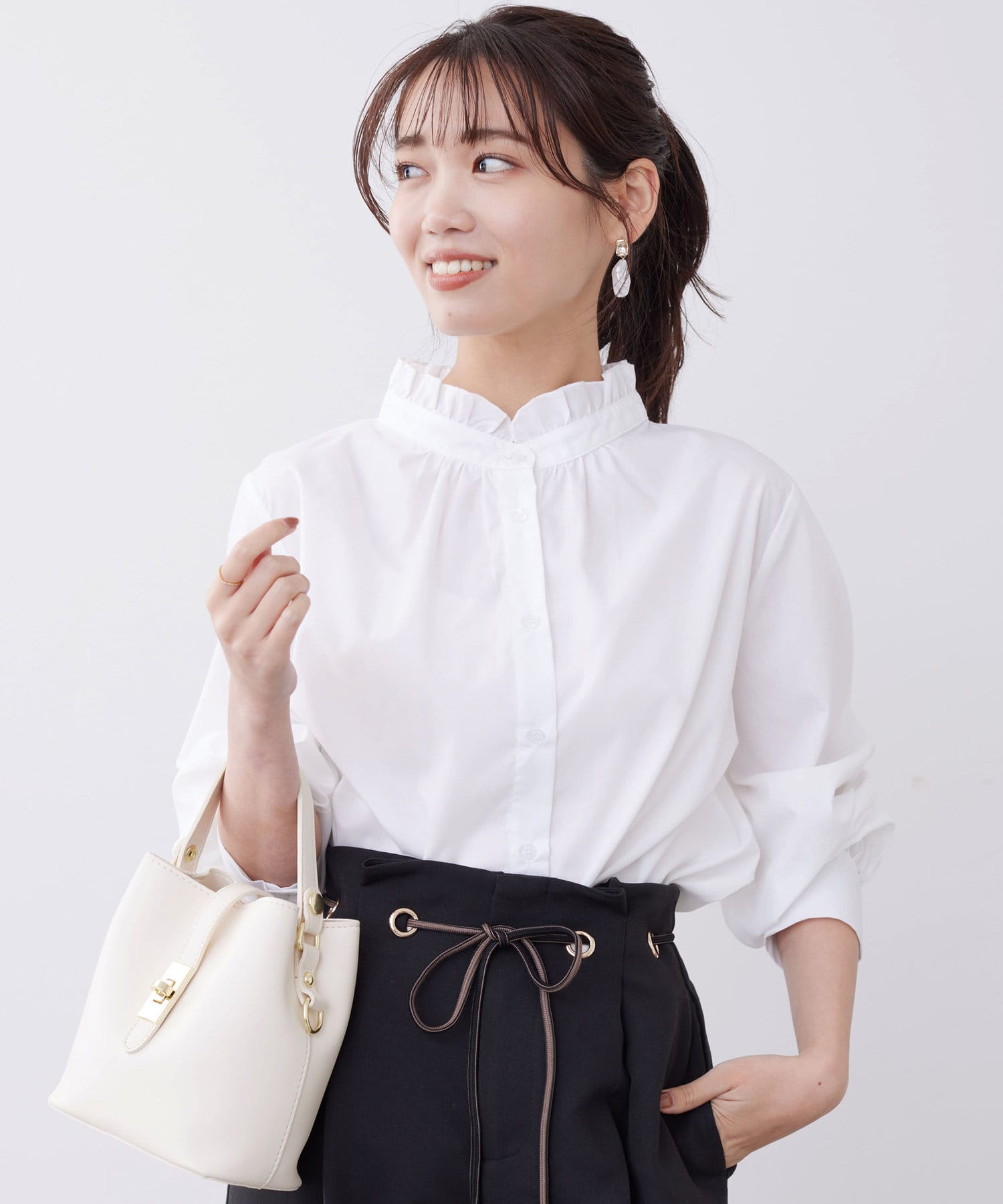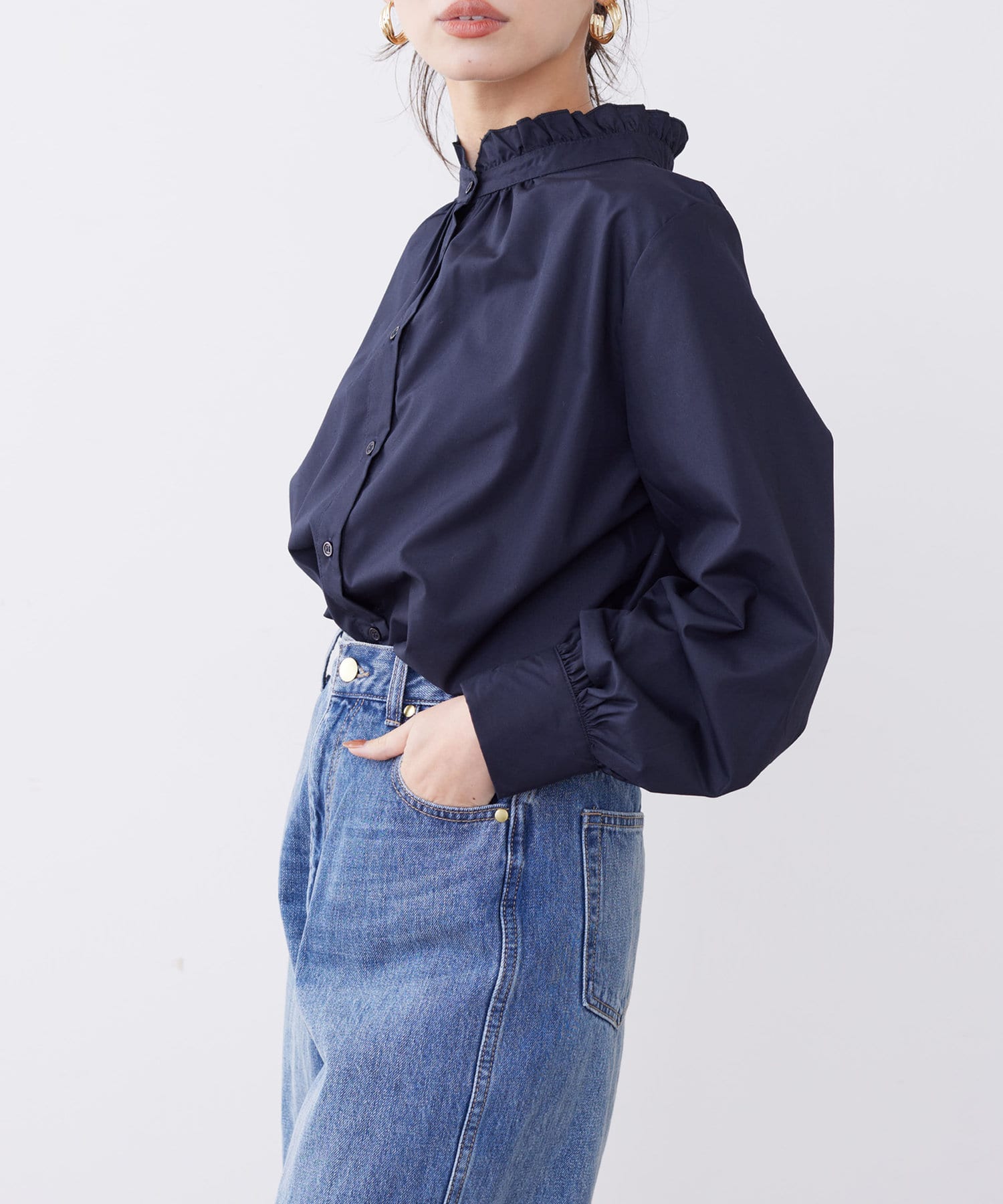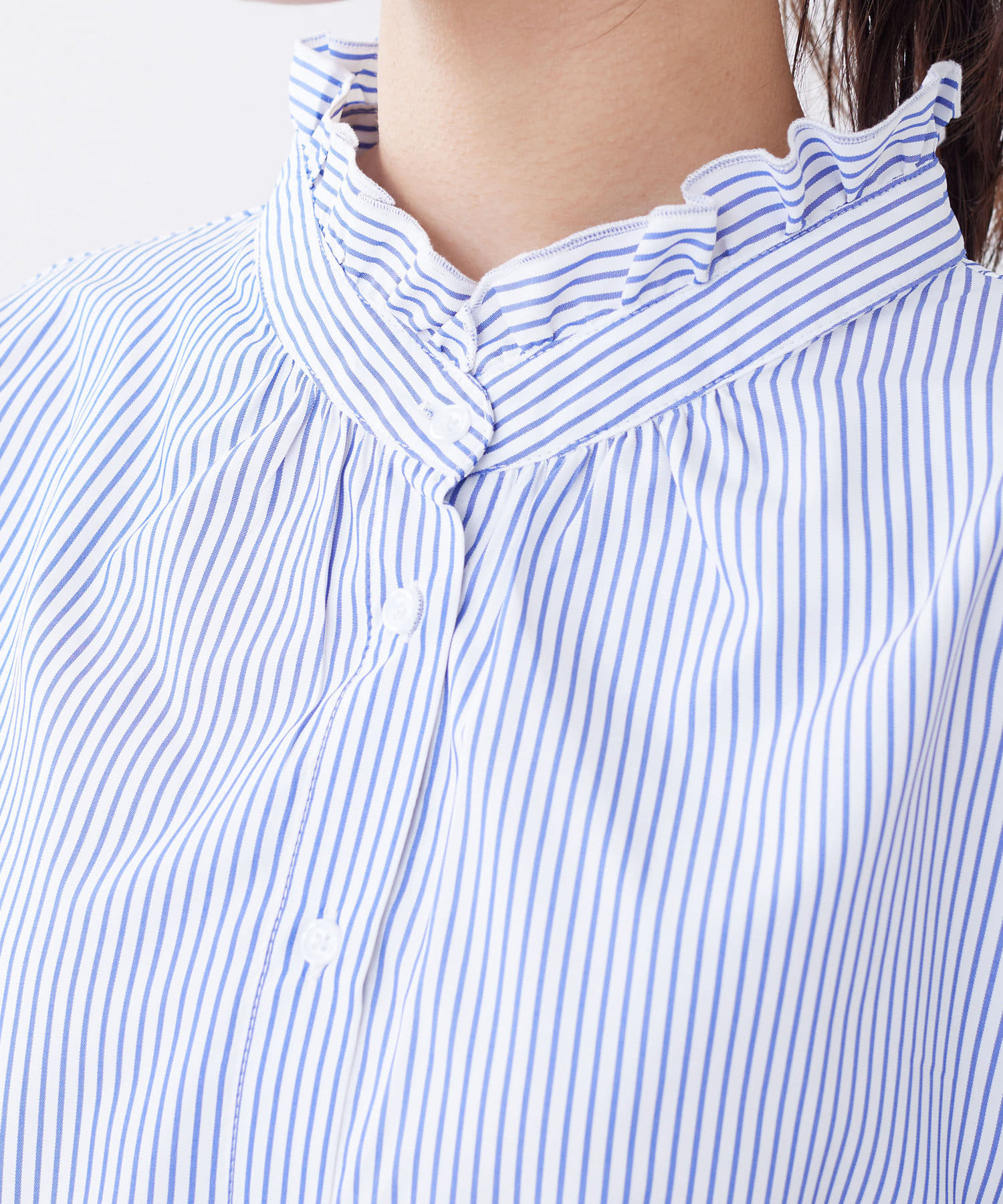 オトナかわいいネックフリルシャツ