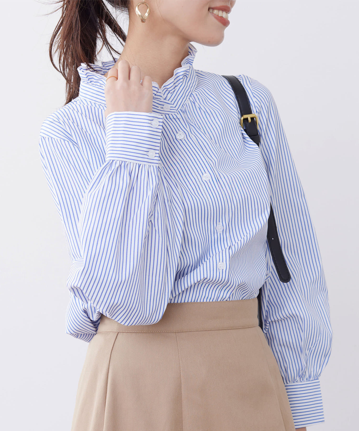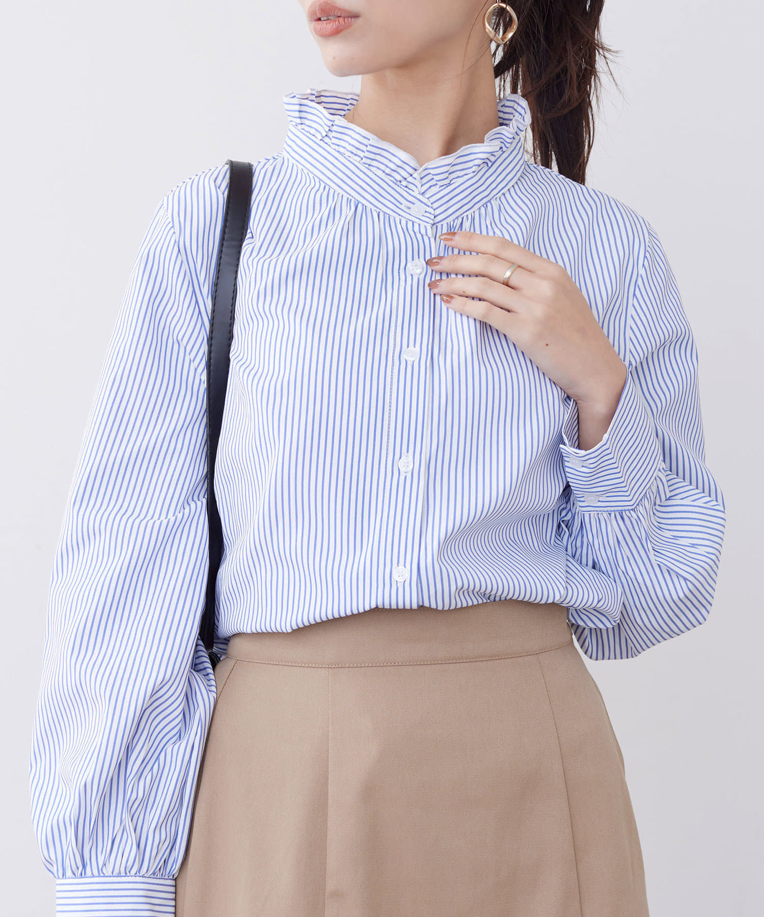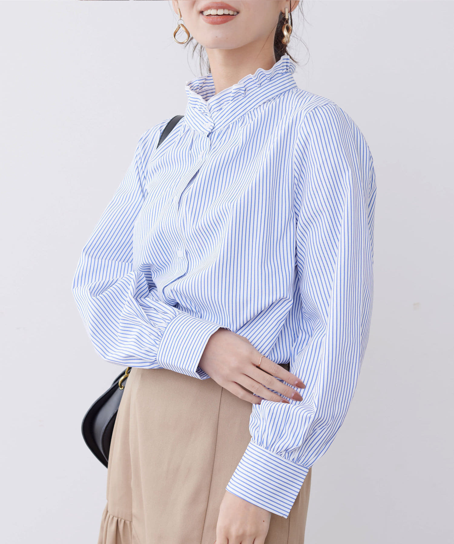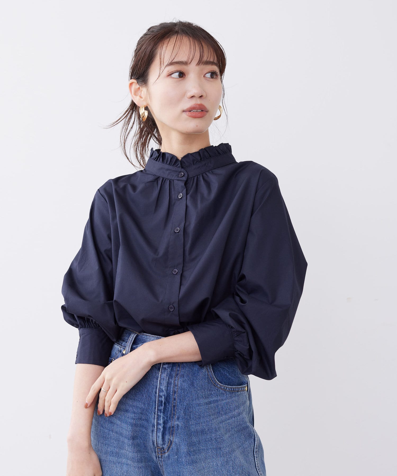 オトナかわいいネックフリルシャツ