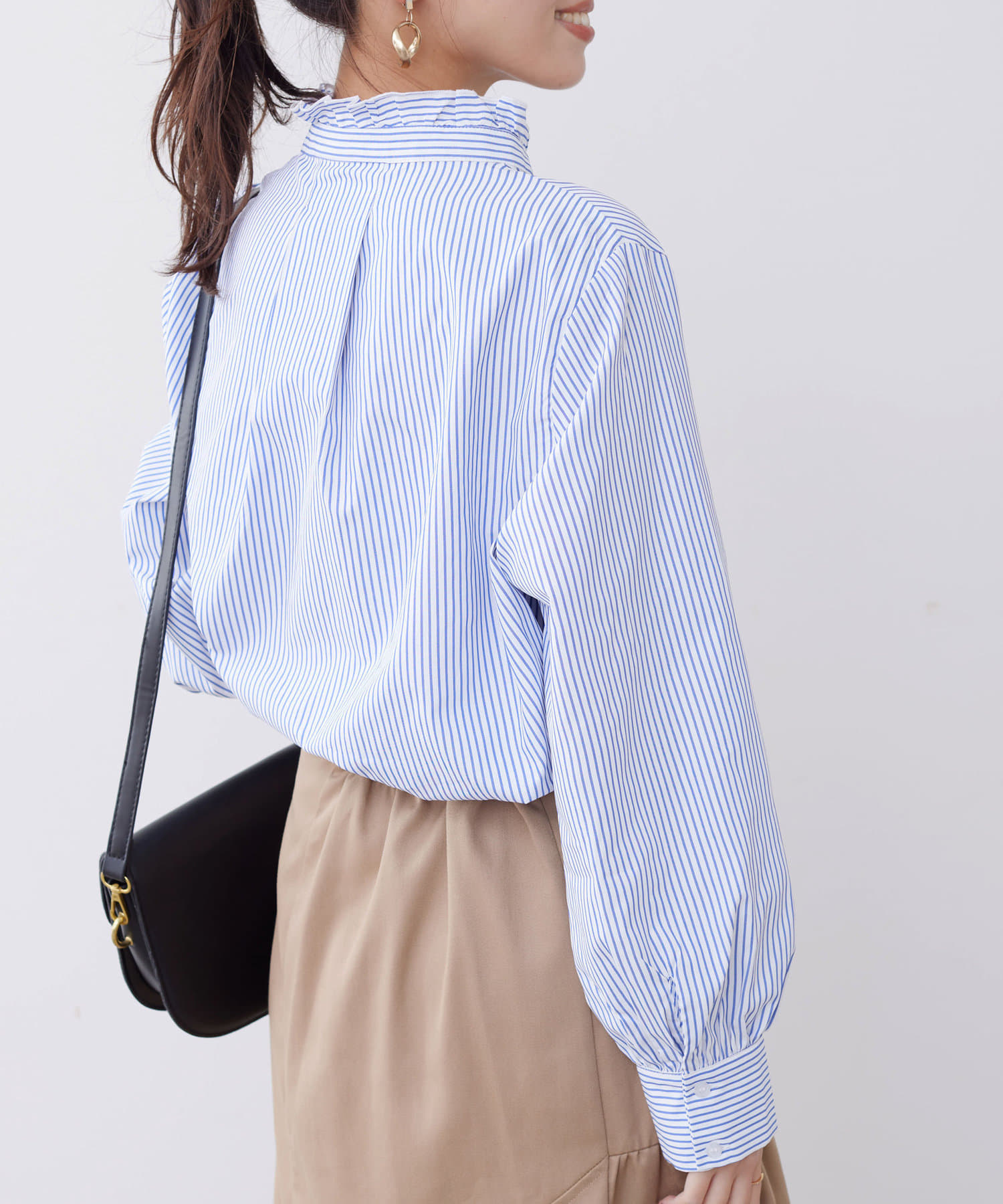 ネックフリルがコーディネートのアクセントに。