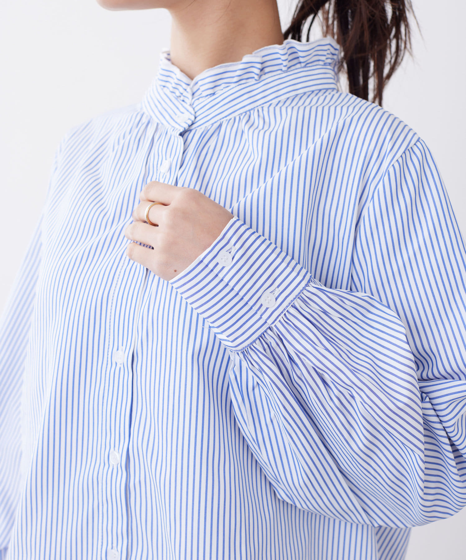 袖ボリュームネックフリルシャツ