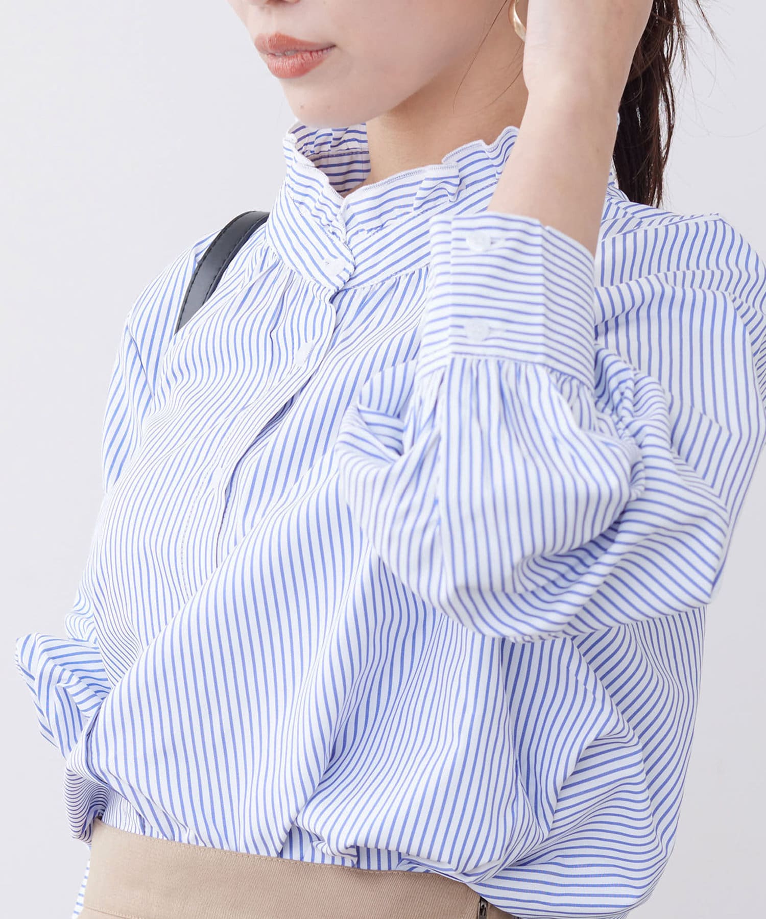 Chez toi(シェトワ) 袖ボリュームネックフリルシャツ