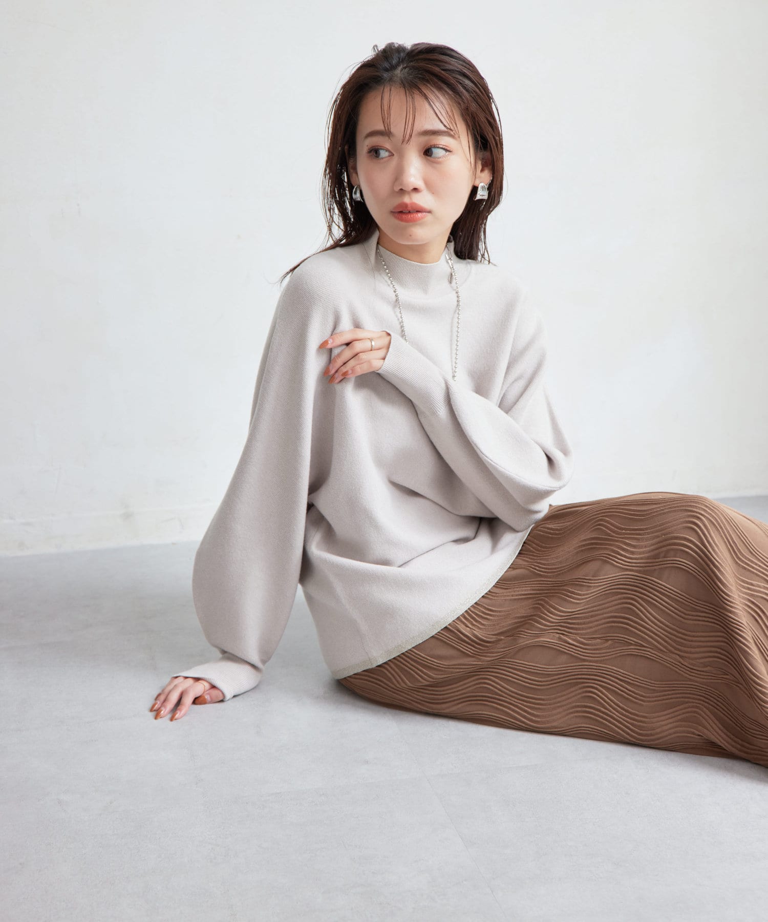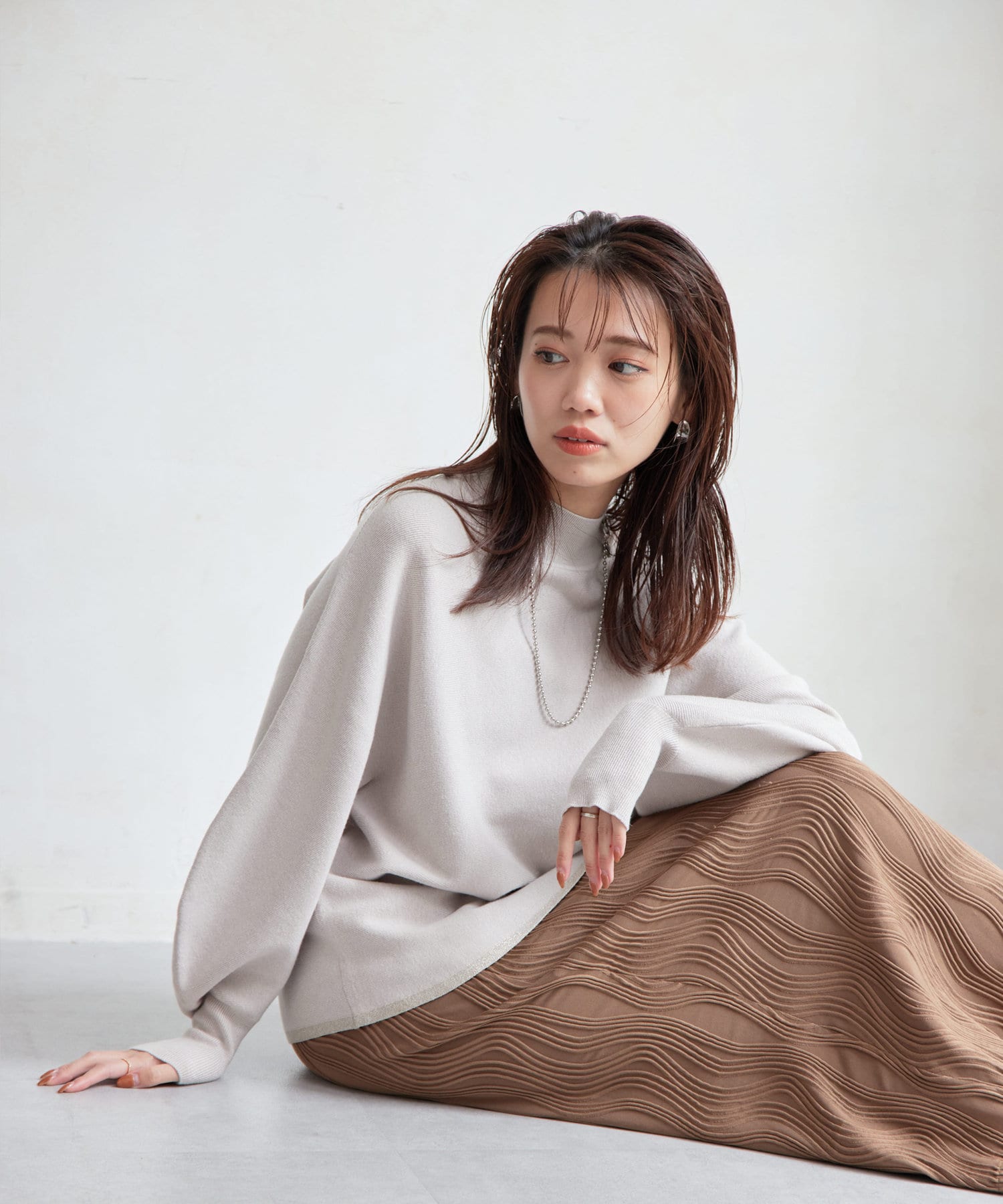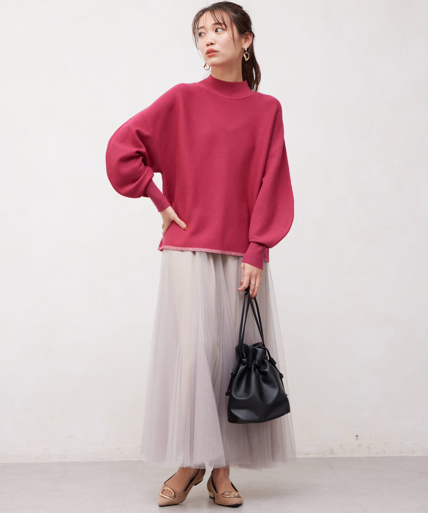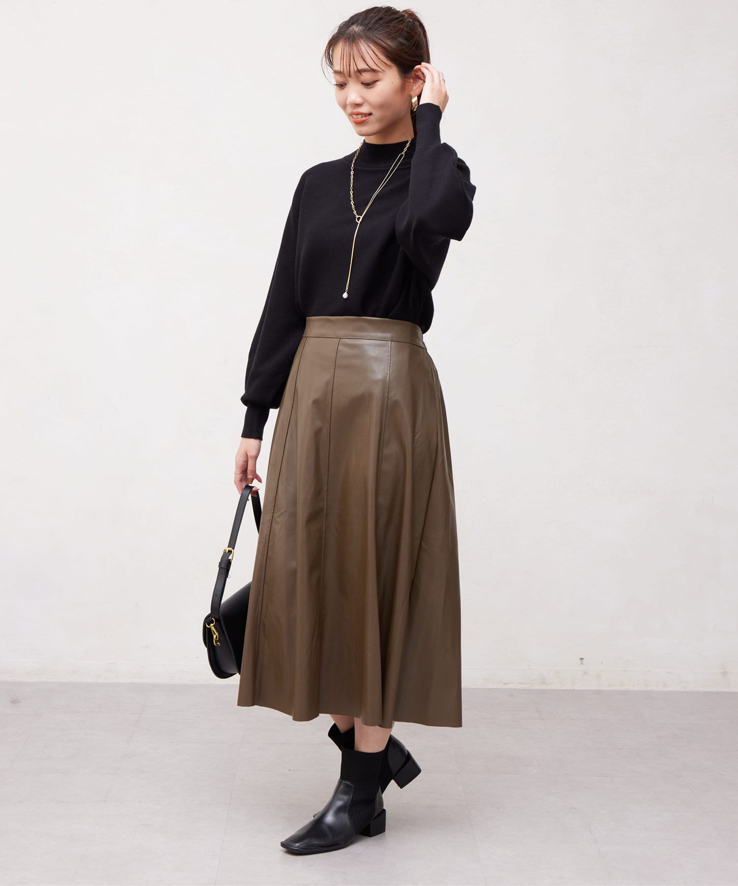 今季トレンドのカーブパンツやナロースカート合わせ、