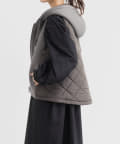 張り感のあるダンボール生地と中わたキルティングを組み合わせた異素材ドッキングのベスト。