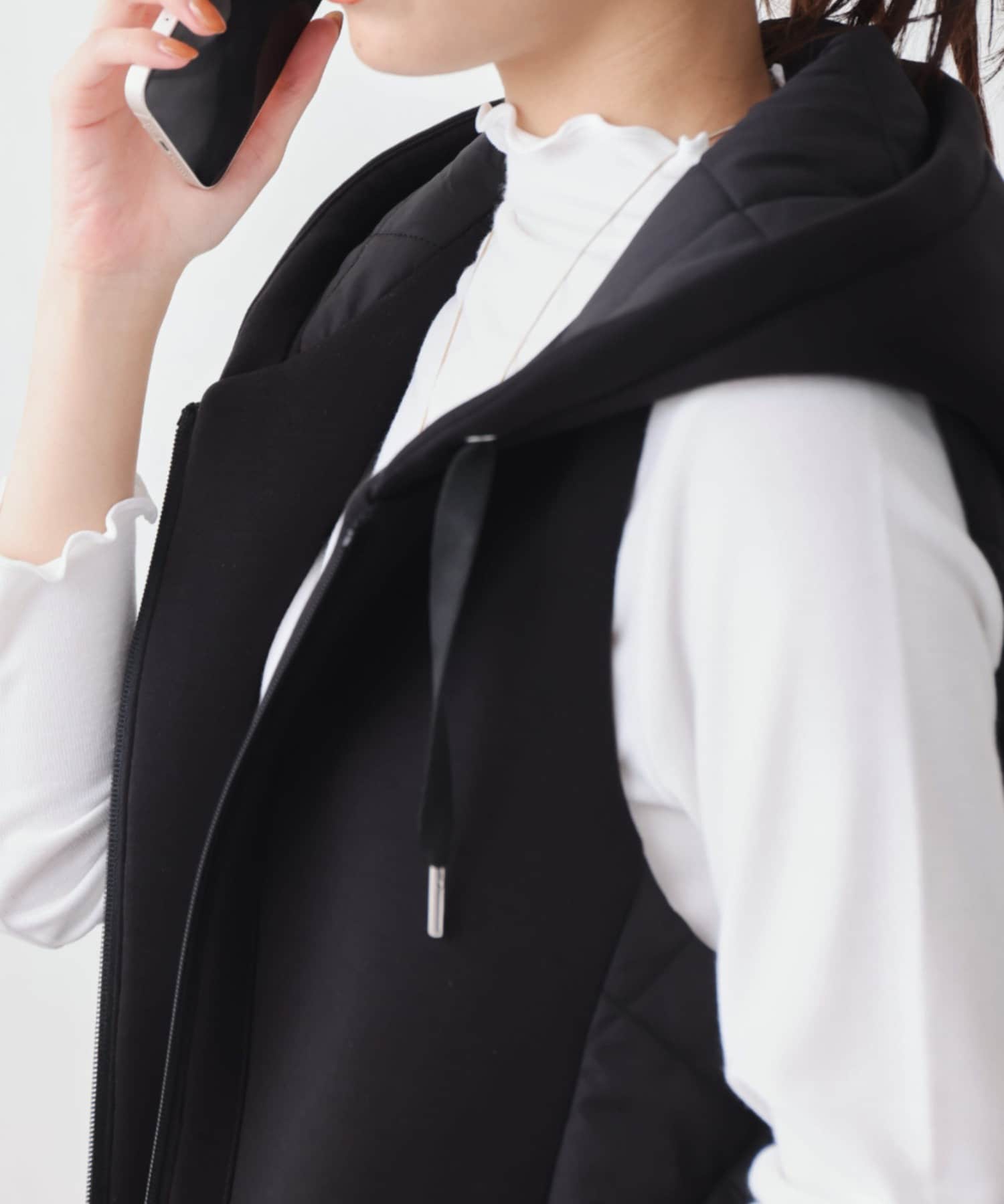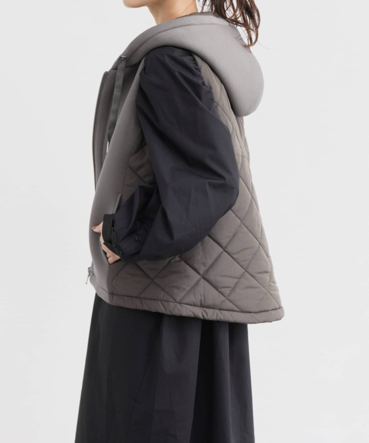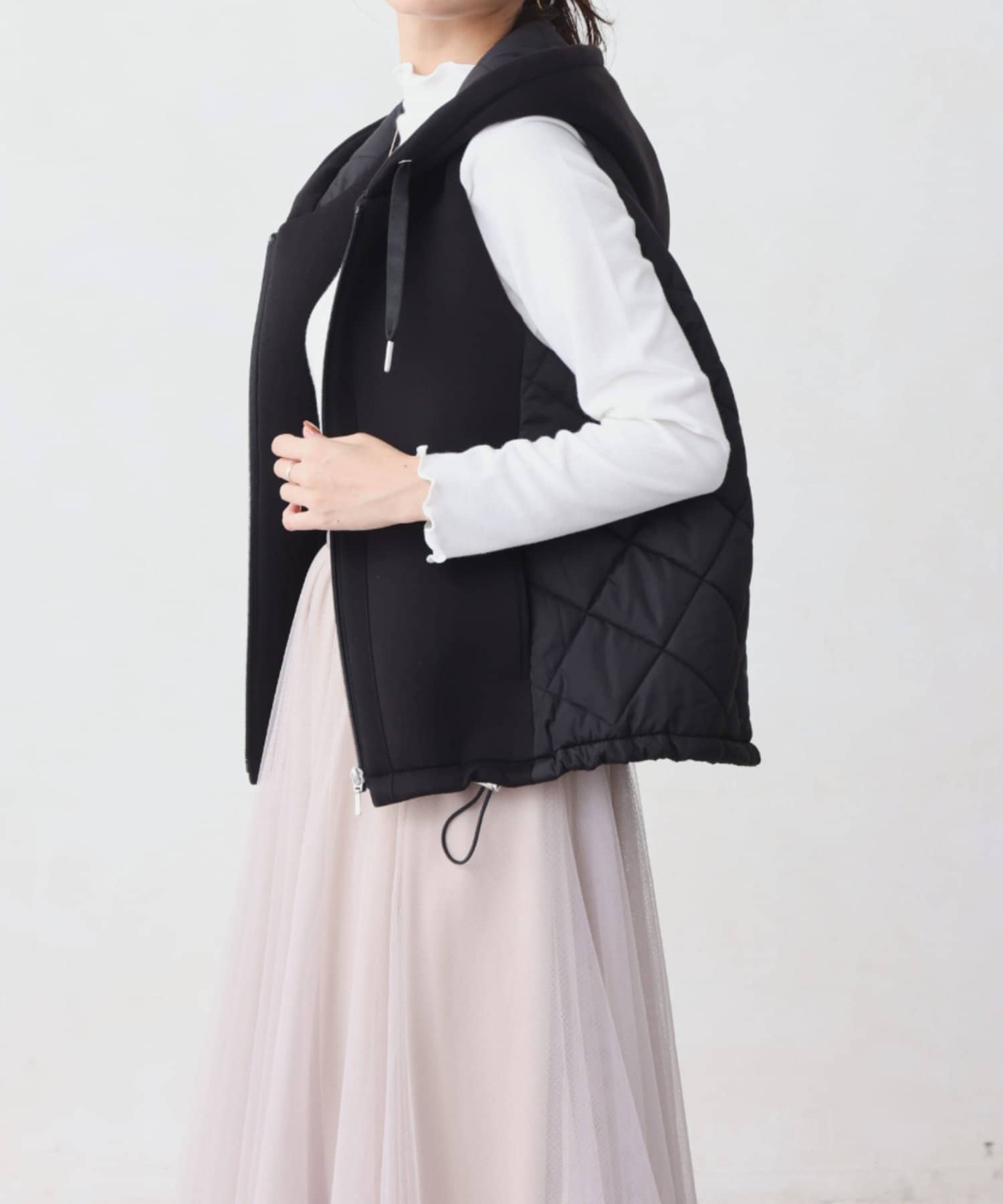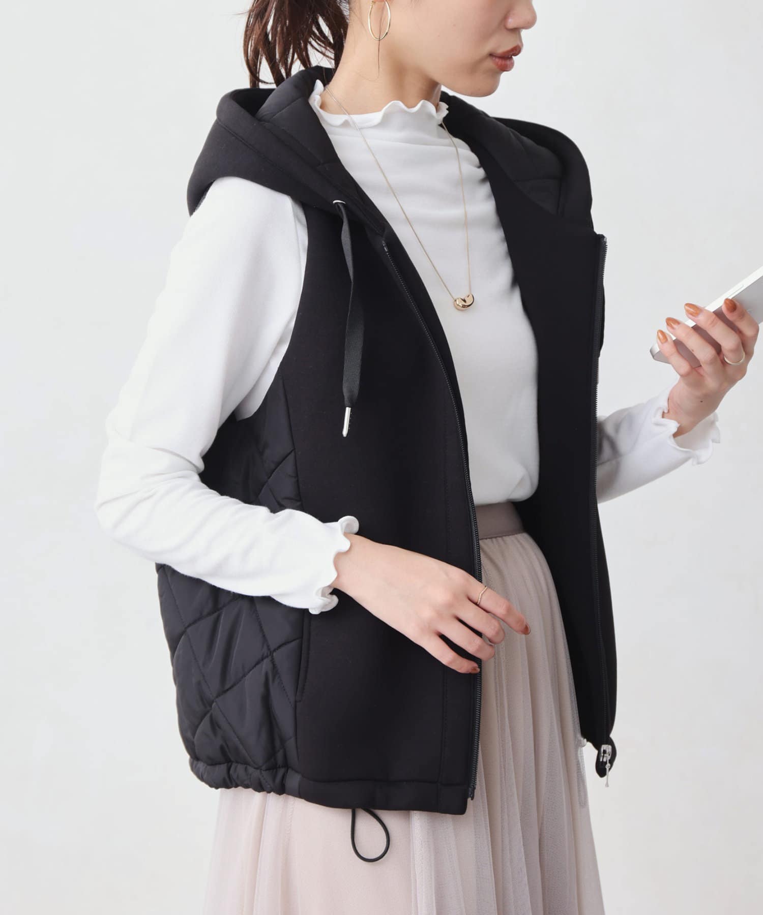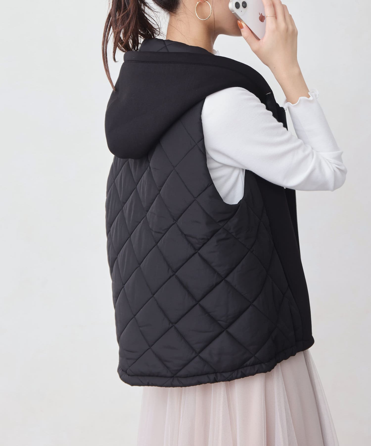 TOP > Chez toi > レディース > ジャケット/アウター > ベスト/ジレ > 中綿×ダンボール切替フードベスト