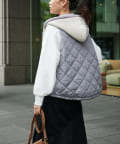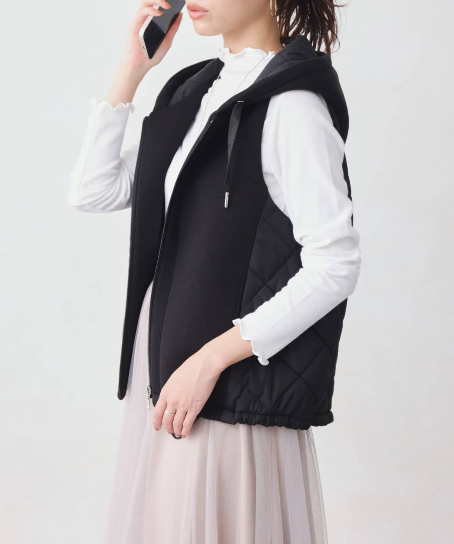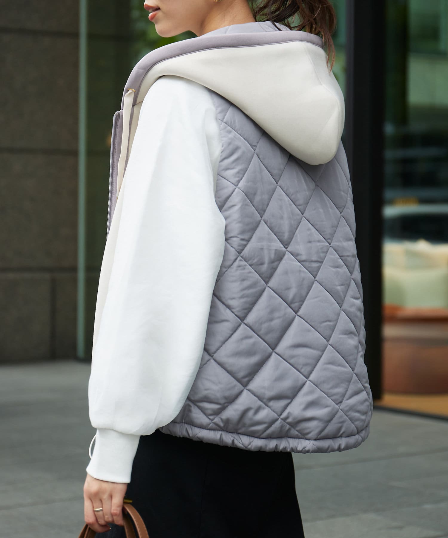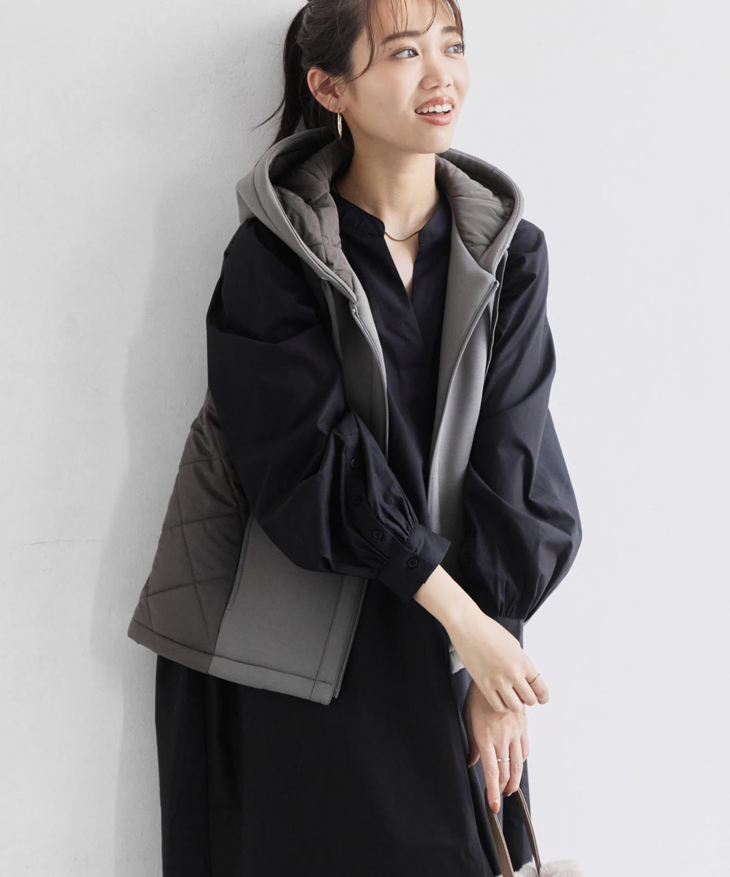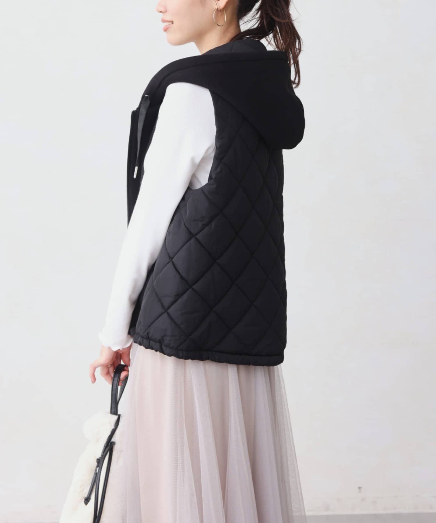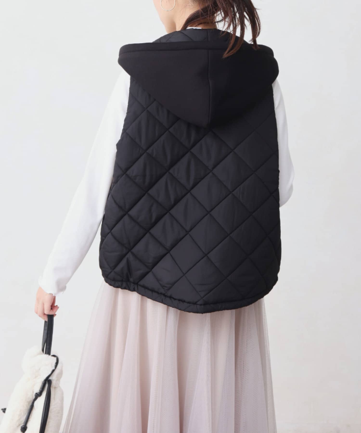 TOP > Chez toi > レディース > ジャケット/アウター > ベスト/ジレ > 中綿×ダンボール切替フードベスト