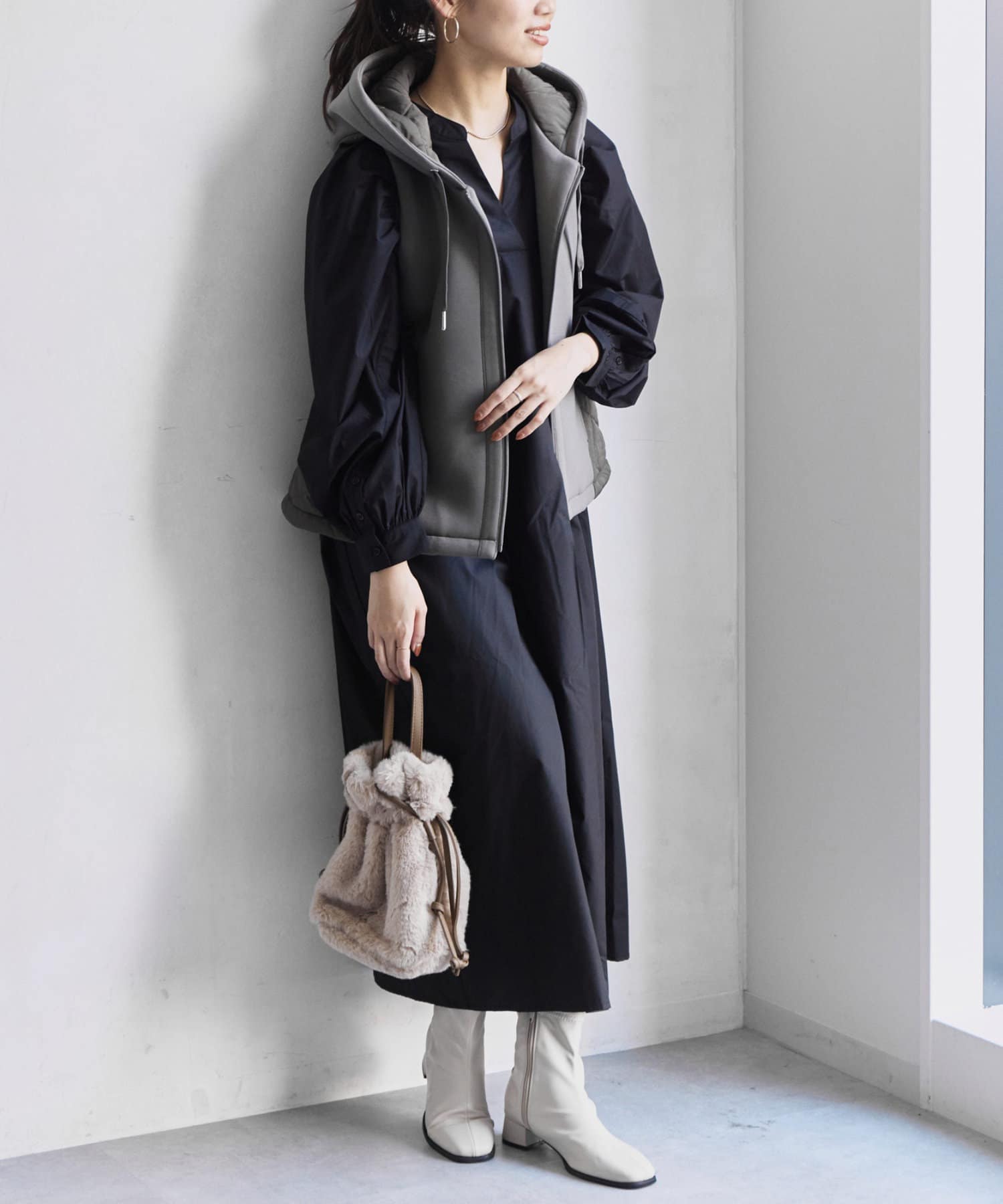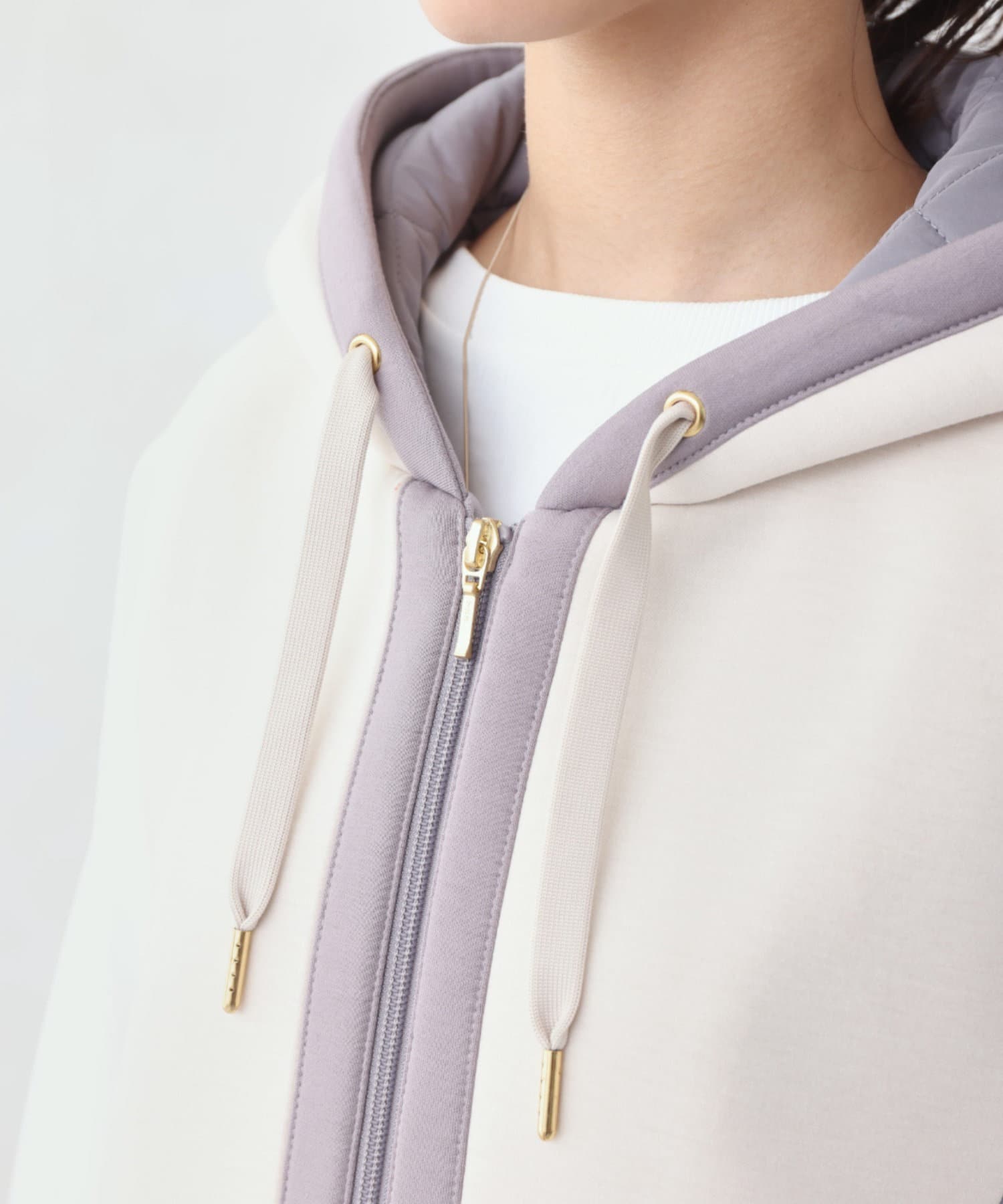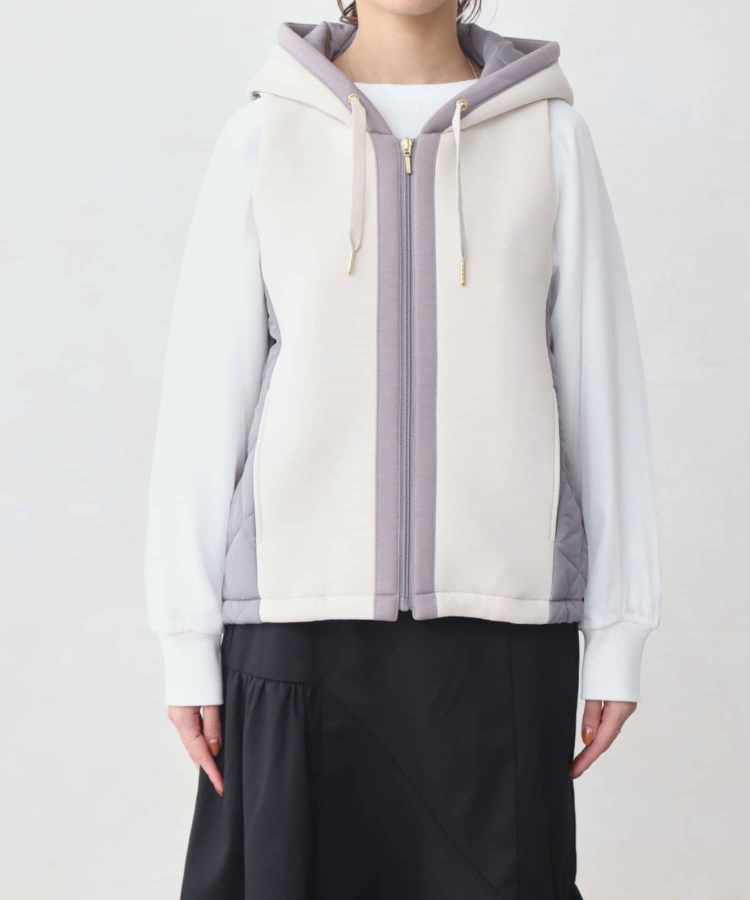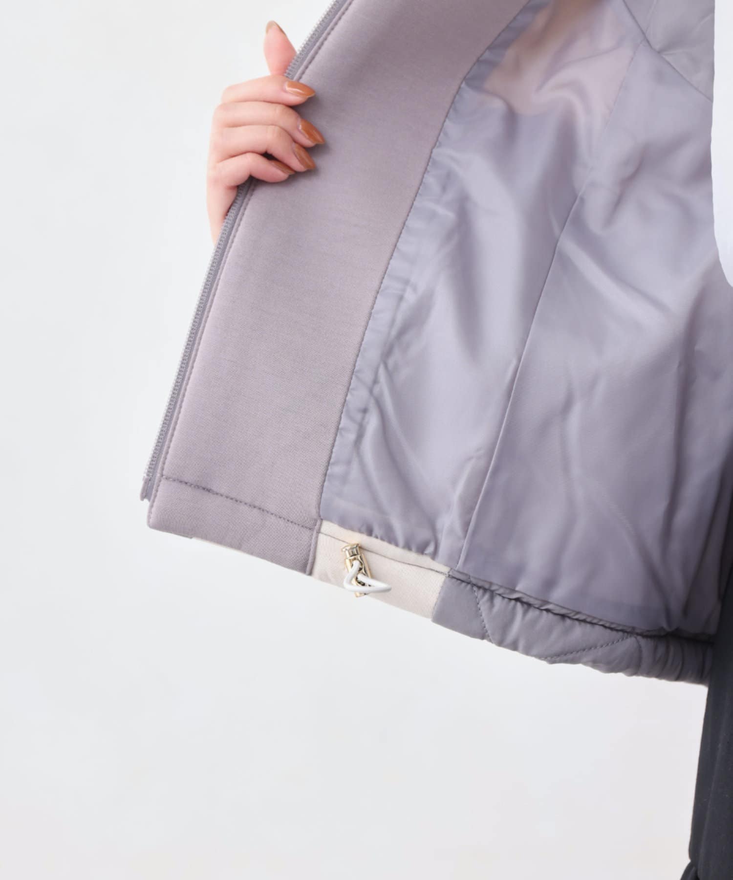 裾にはドロストがついており、格子柄風のキルティング切替とこだわりポイントも。