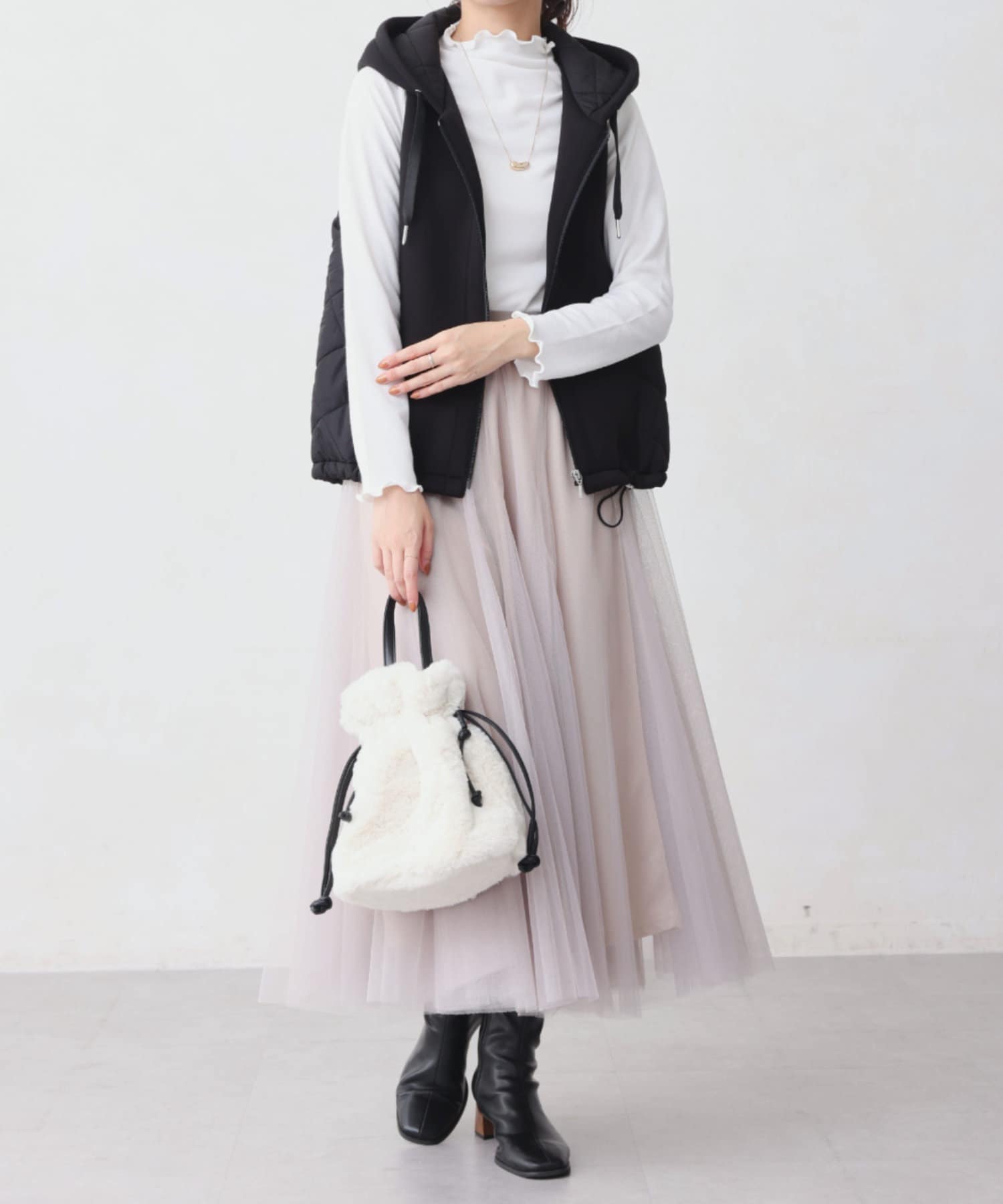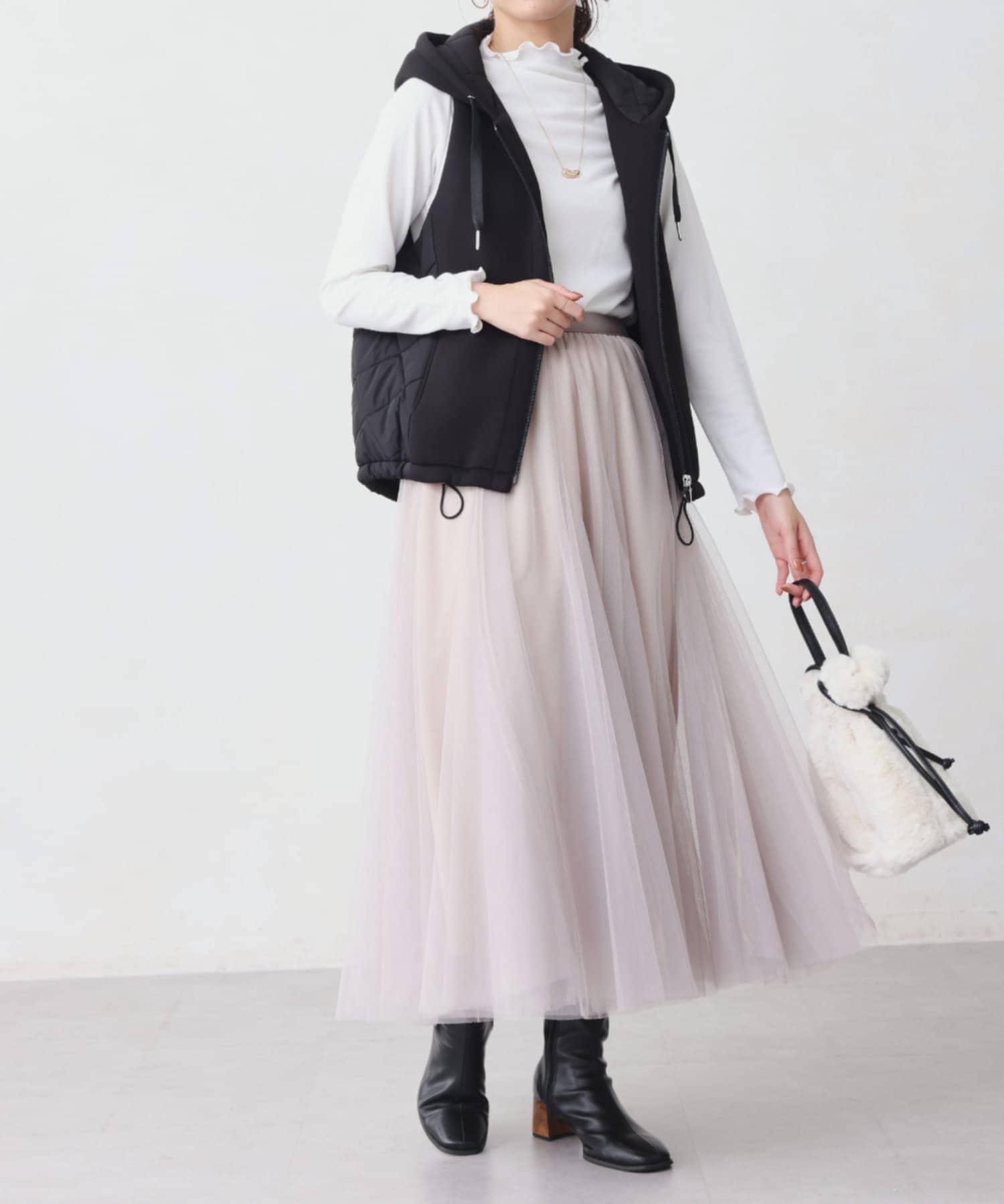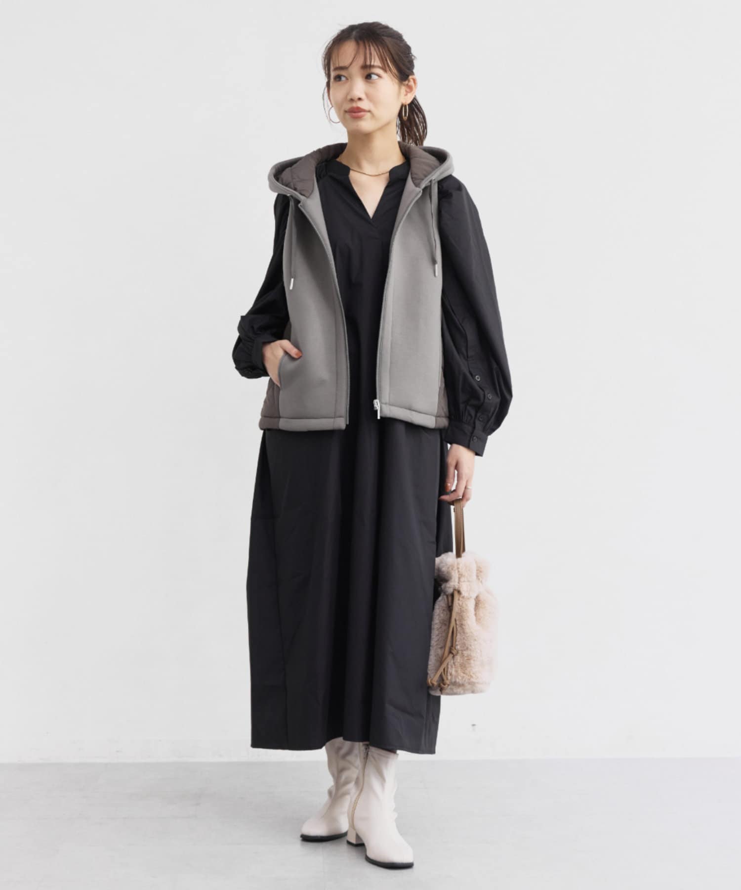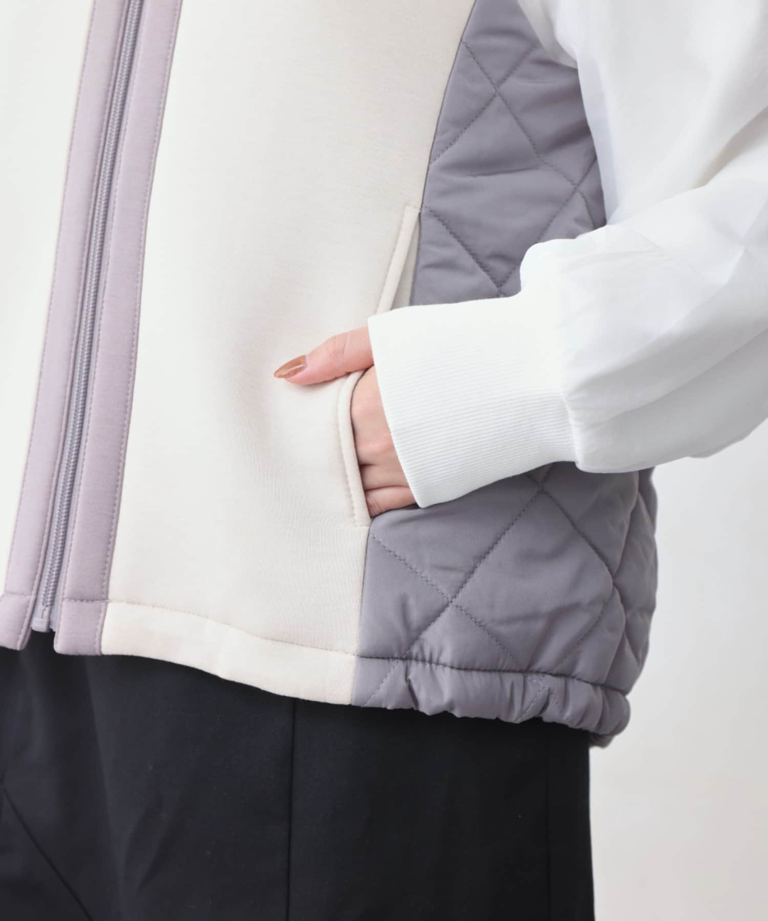 裾にはドロストがついており、格子柄風のキルティング切替とこだわりポイントも。