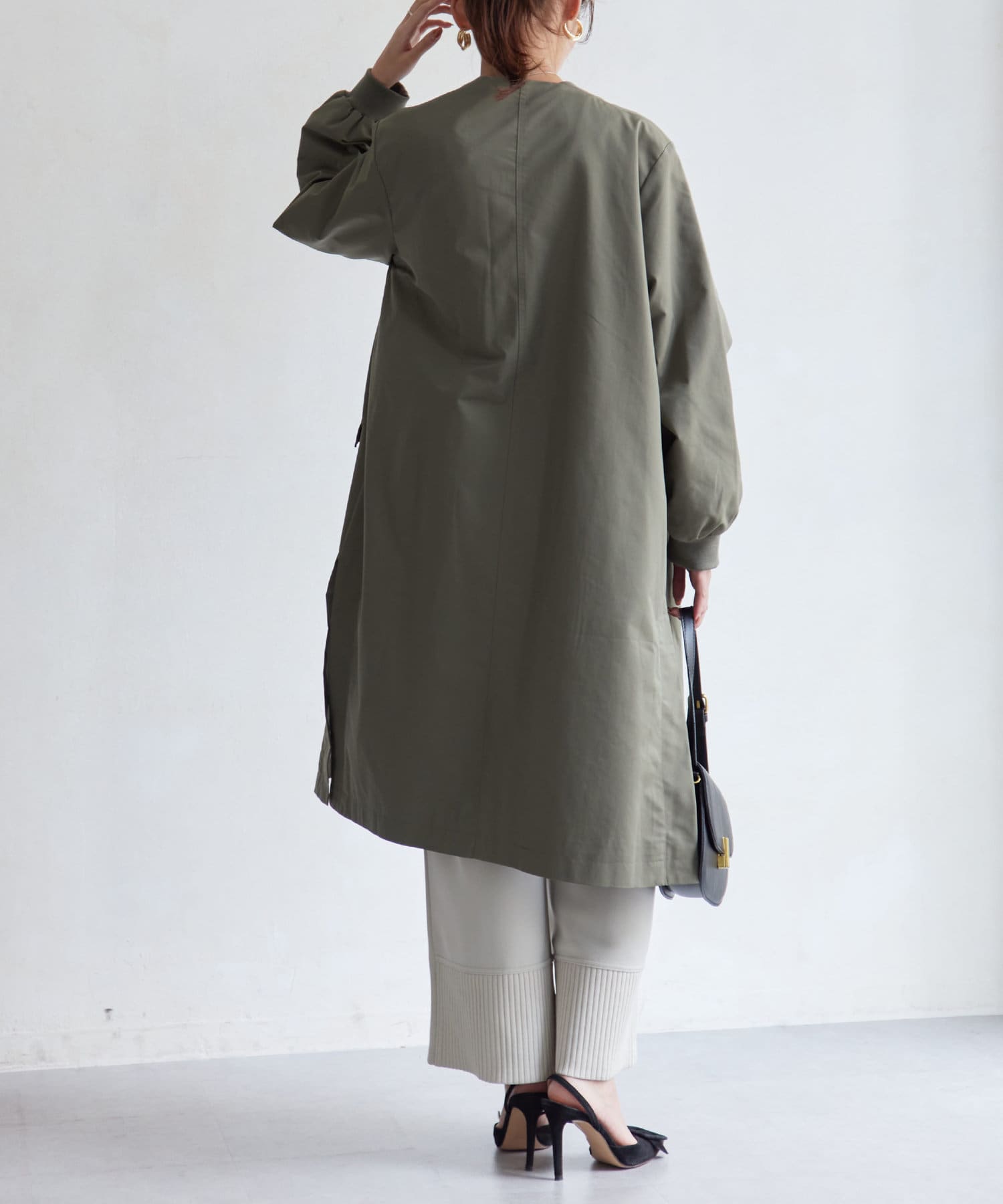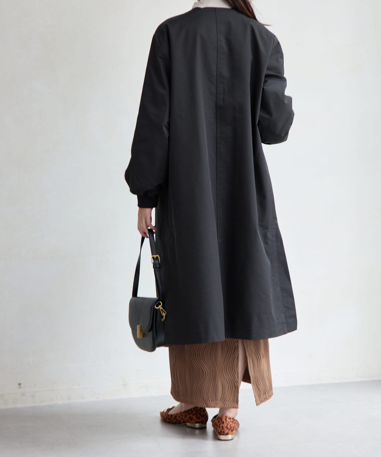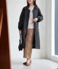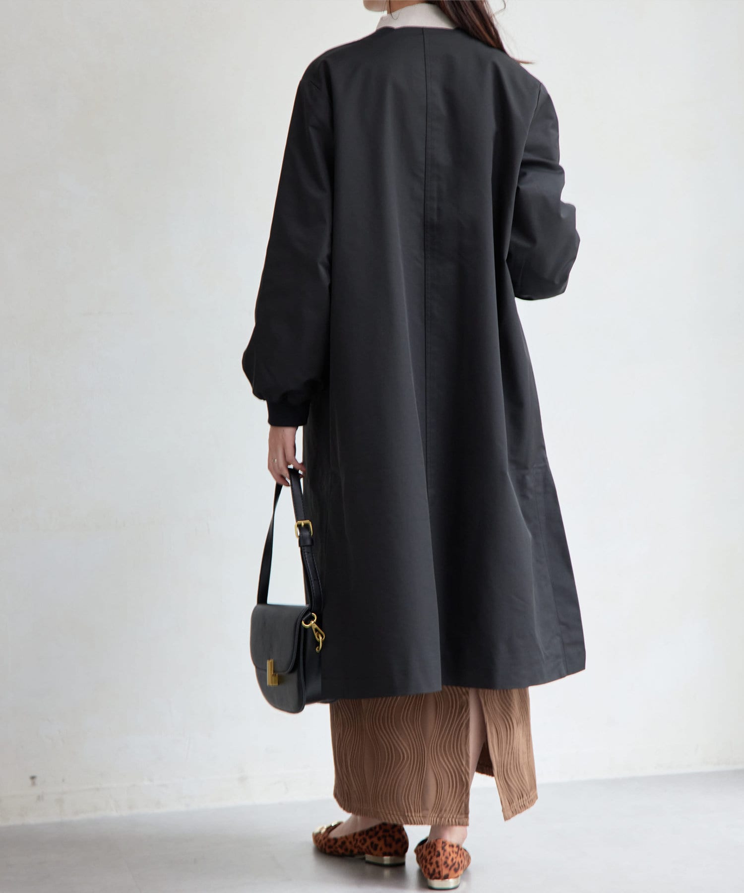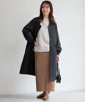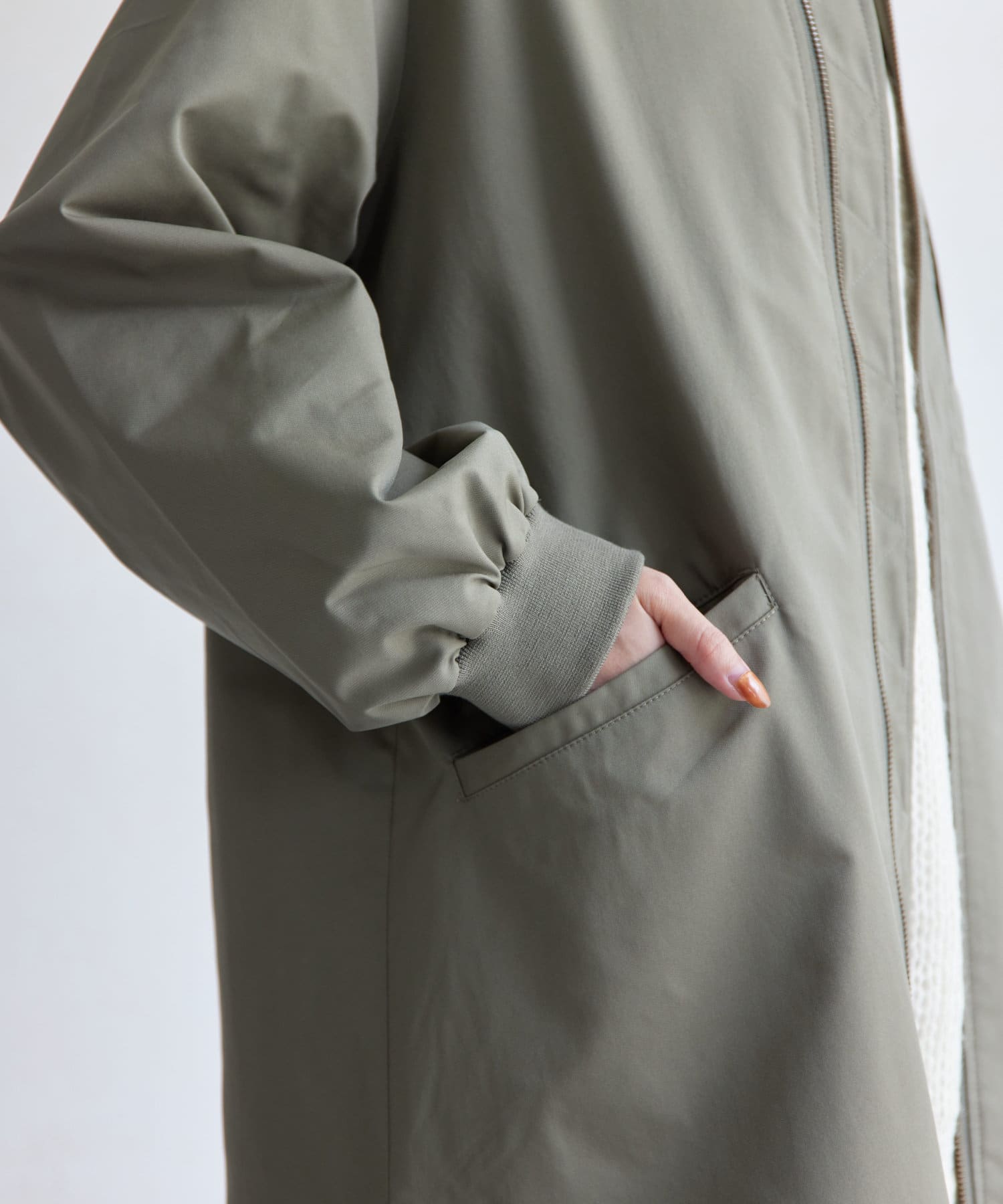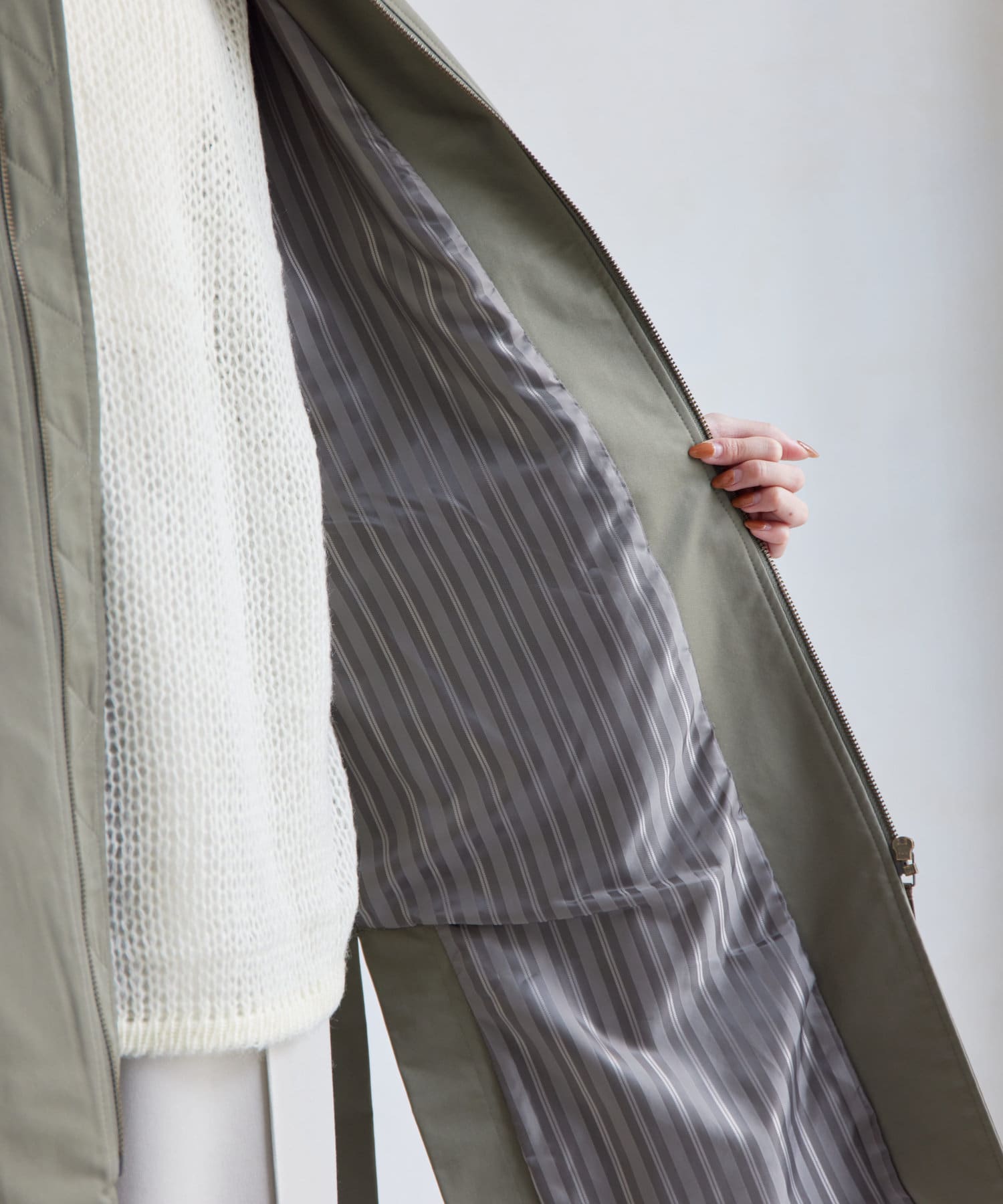 自分にまっすぐでそしてしなやかに生きる女性に向けたブランドです。ベーシックフードコートにパンチングフェイクレザーの切り替えがポイント