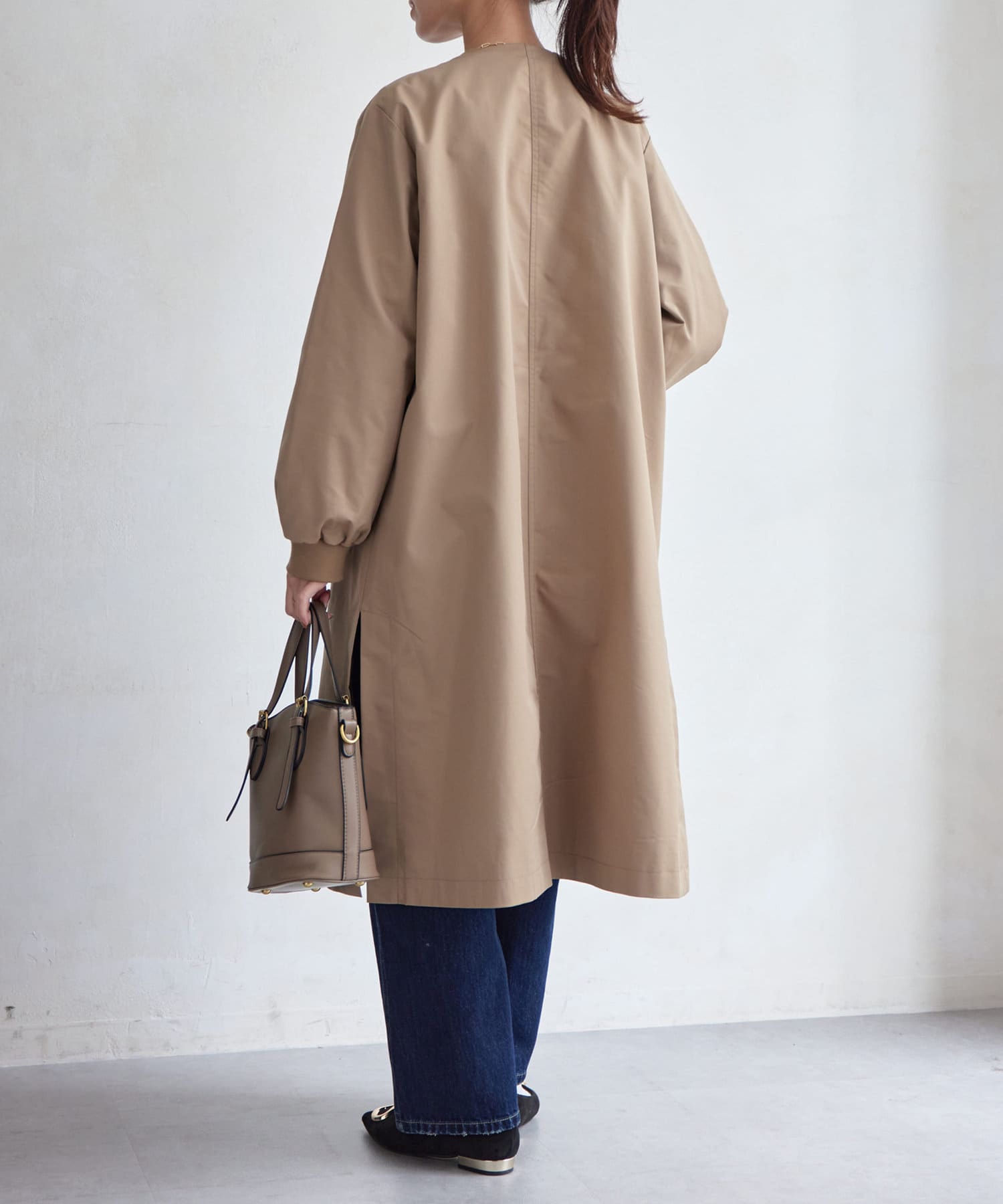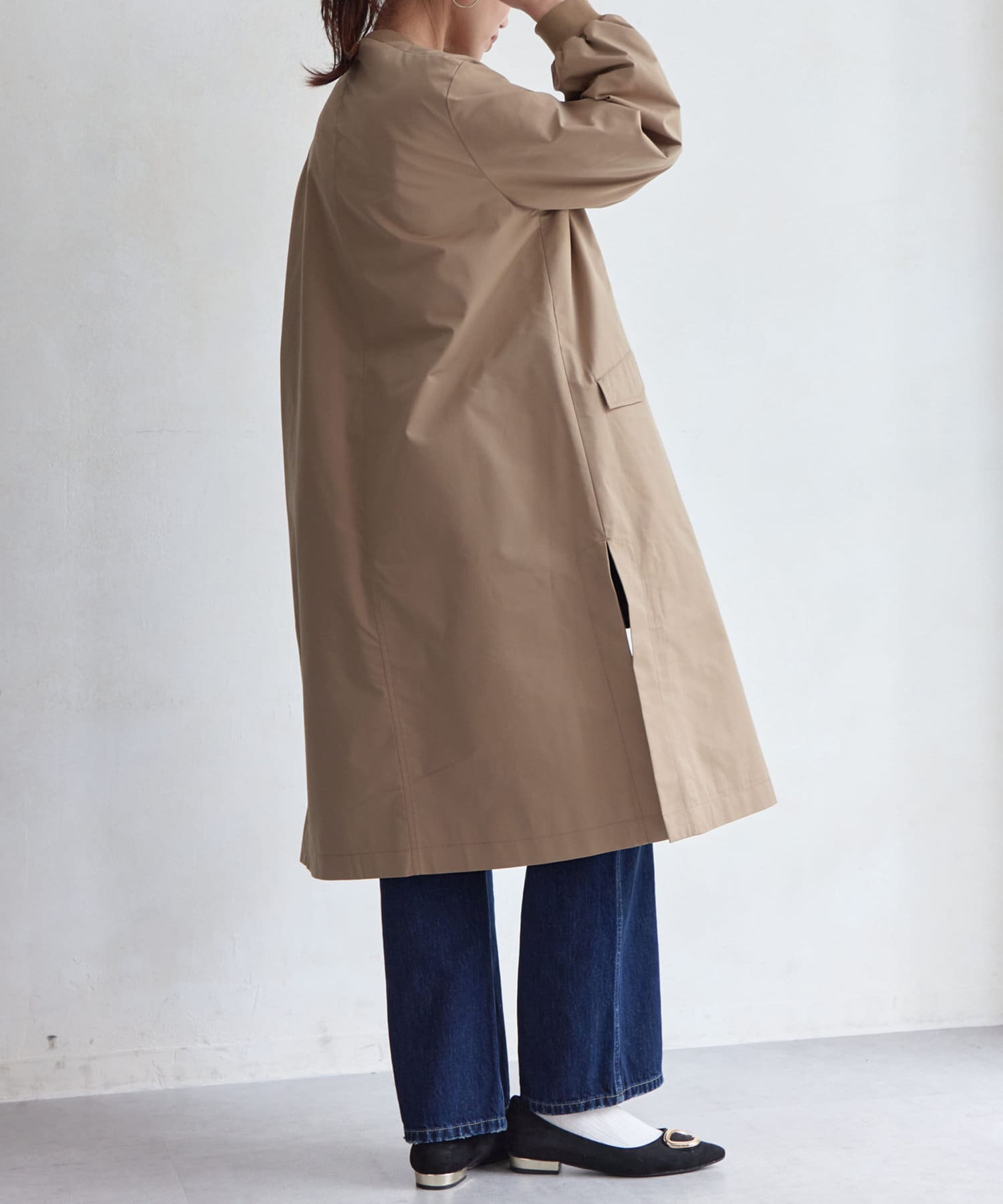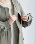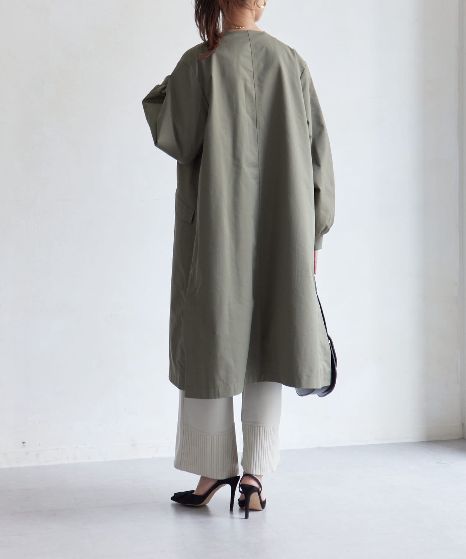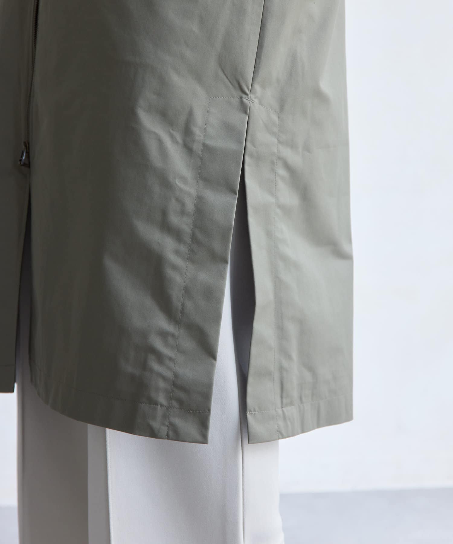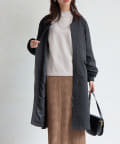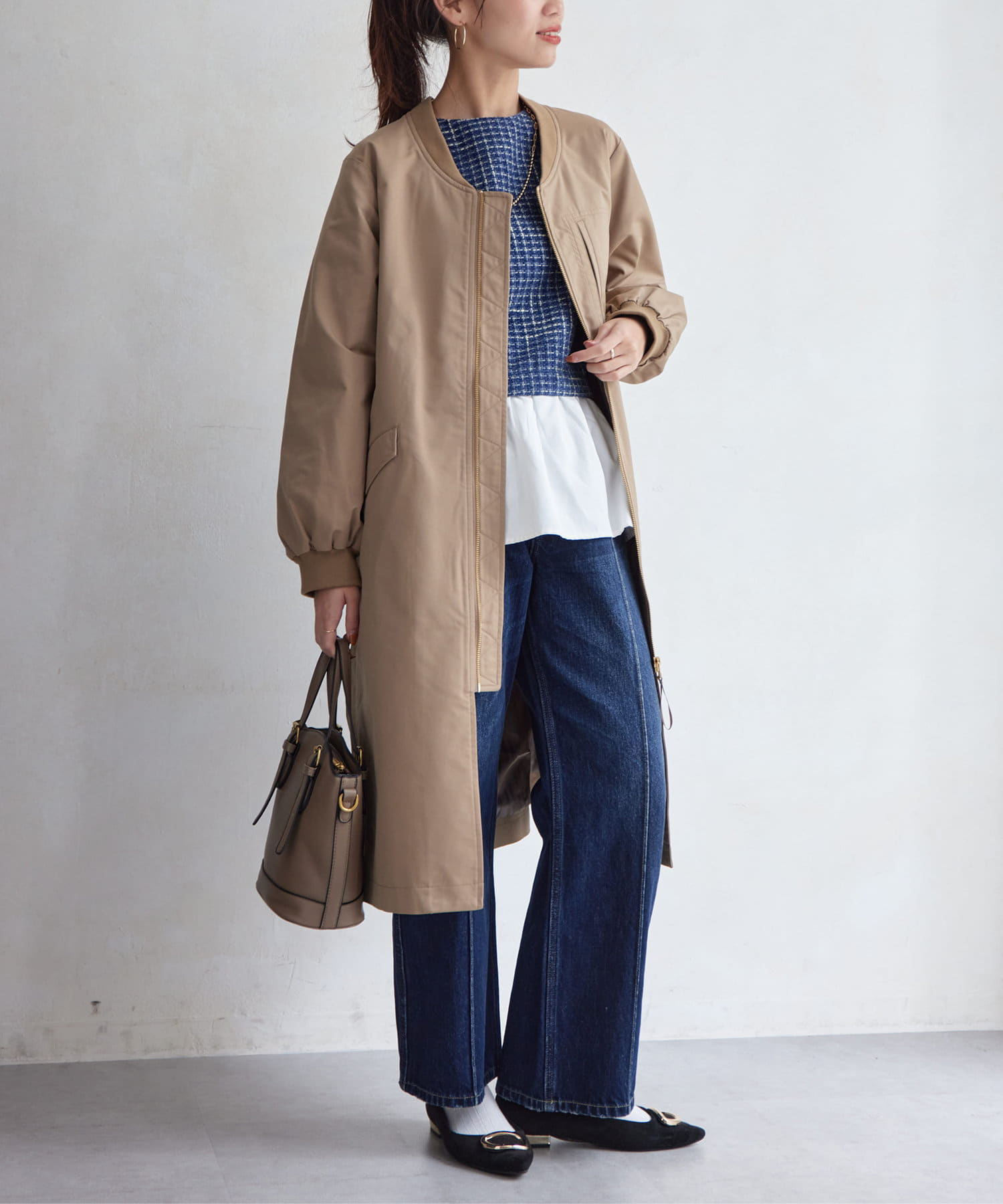 自分にまっすぐでそしてしなやかに生きる女性に向けたブランドです。ベーシックフードコートにパンチングフェイクレザーの切り替えがポイント