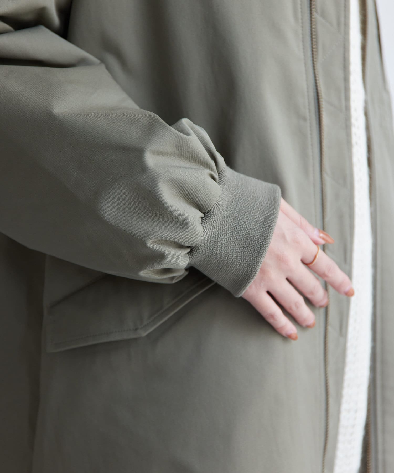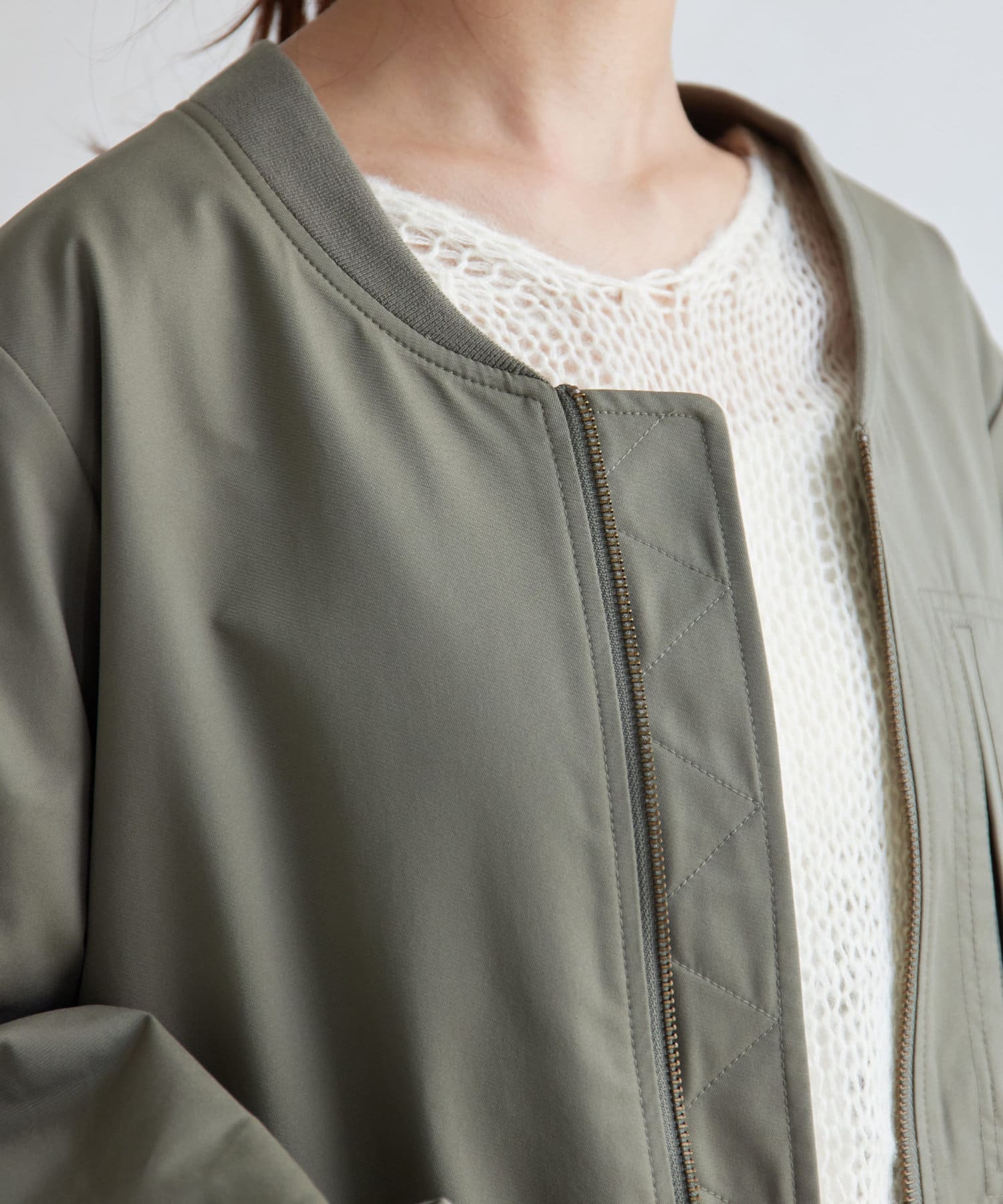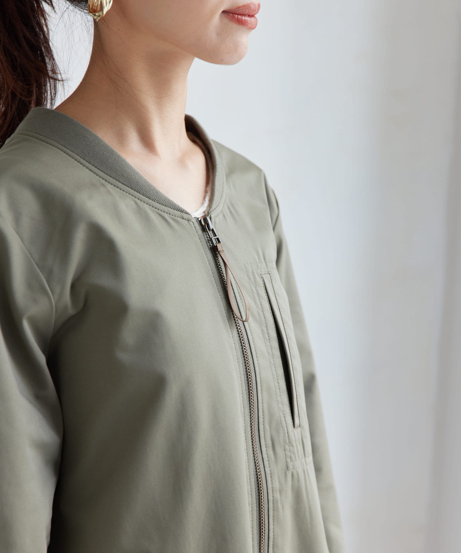 袖口と衿ぐりにリブを使用した、MA-1風のミディ丈ジャケット