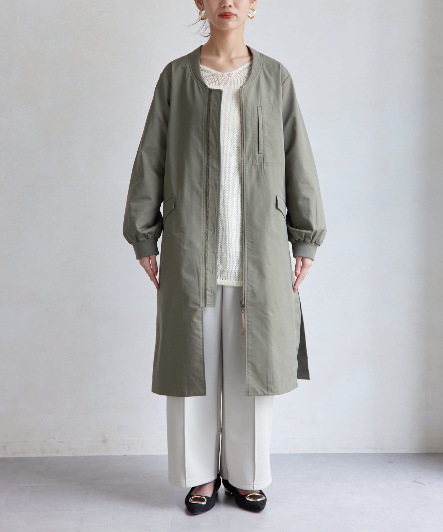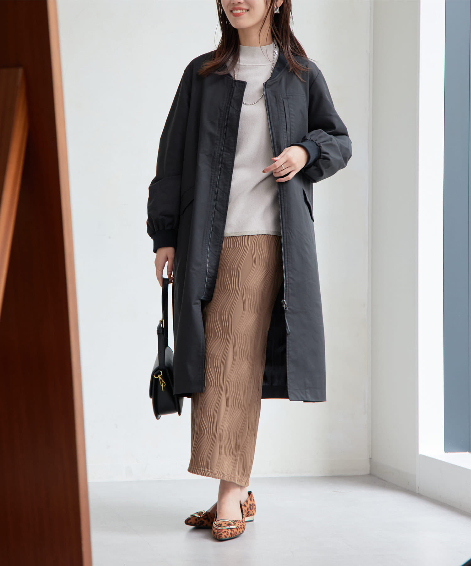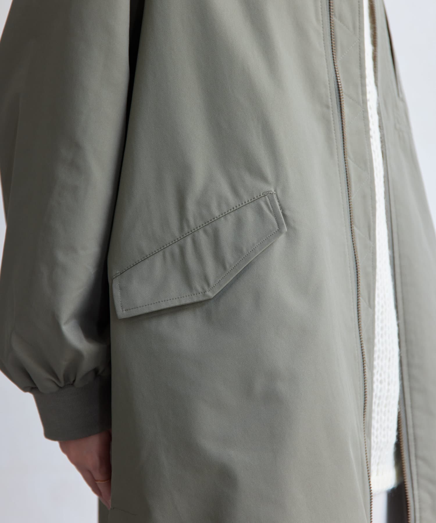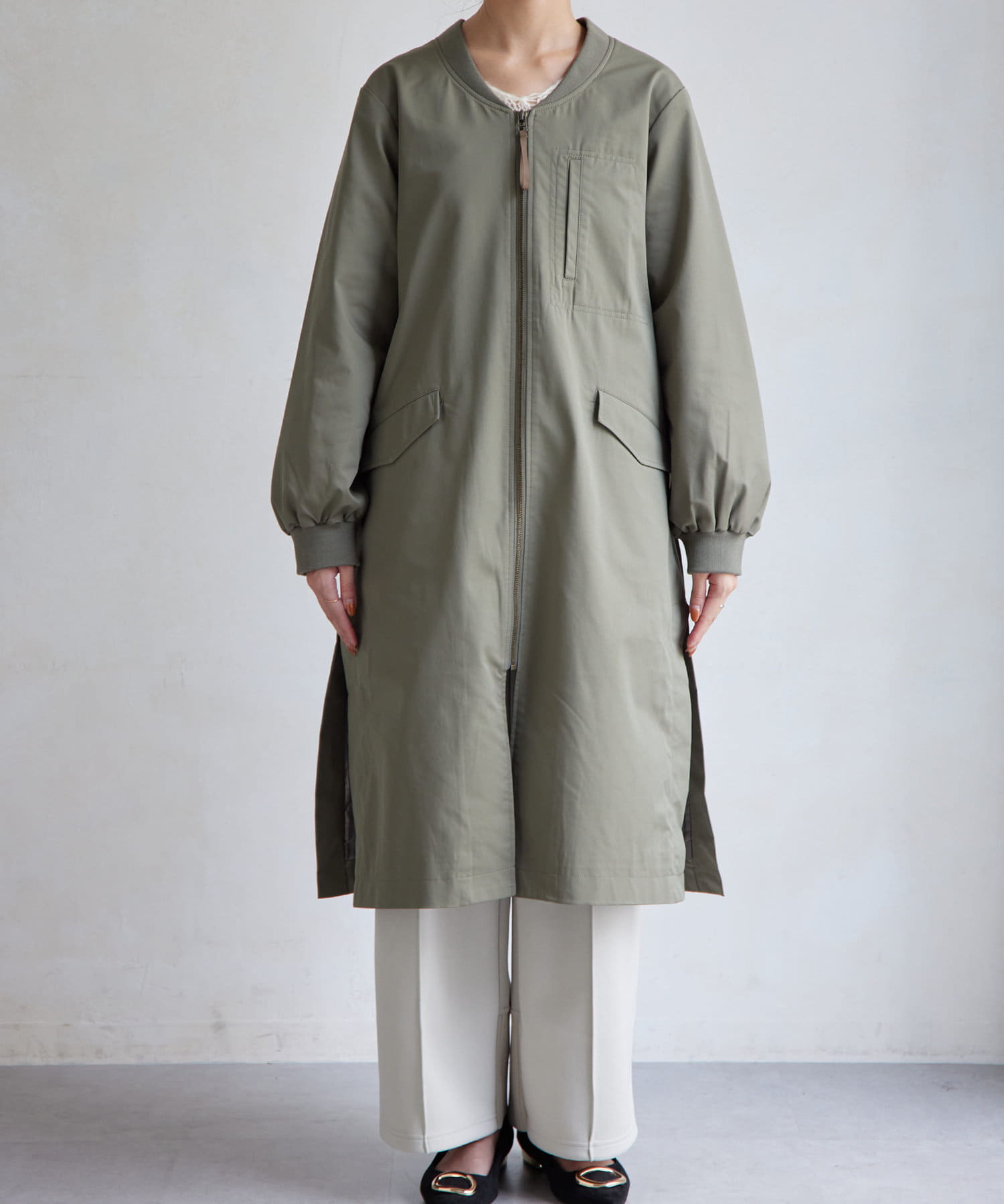 袖口と衿ぐりにリブを使用した、MA-1風のミディ丈ジャケット