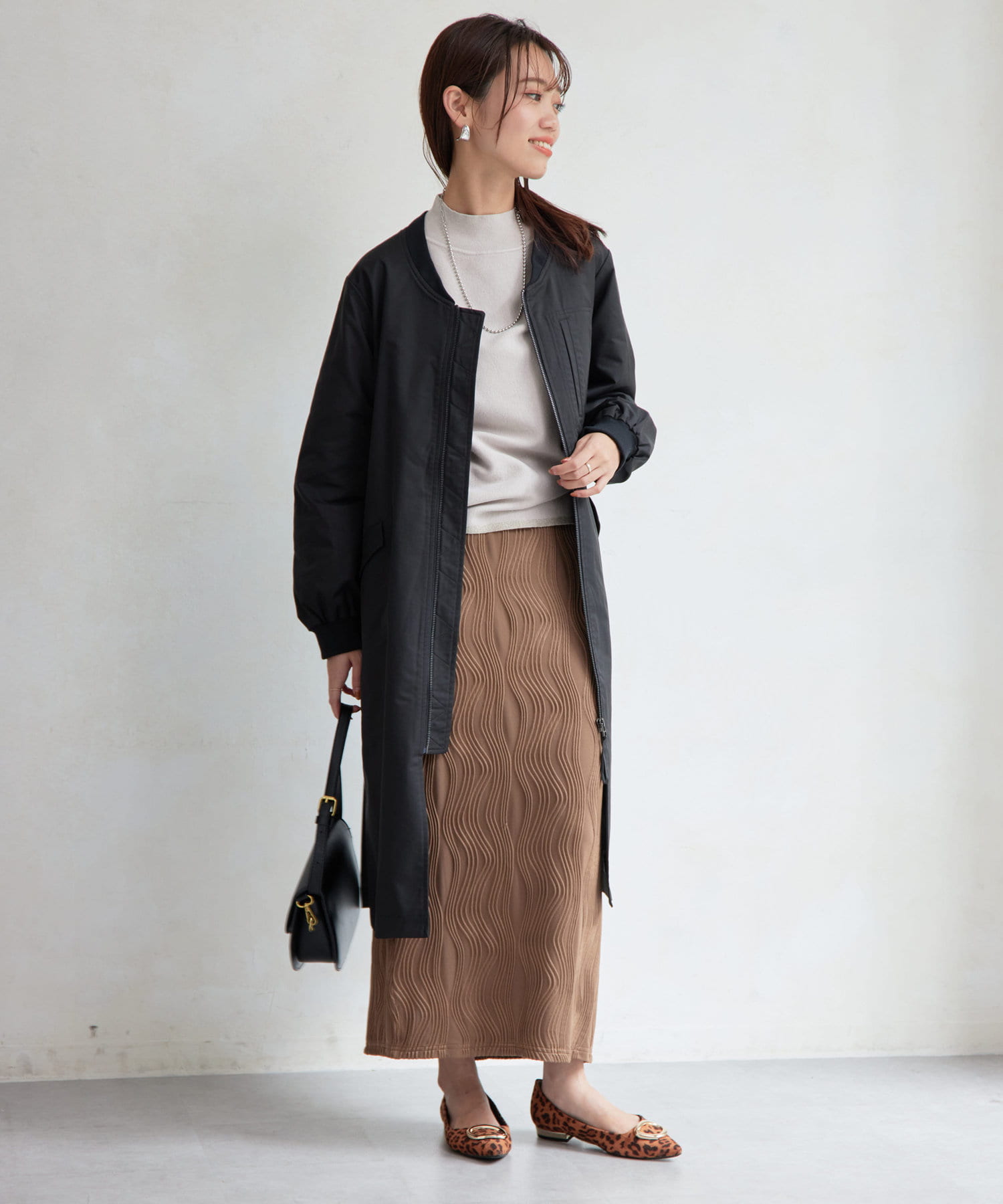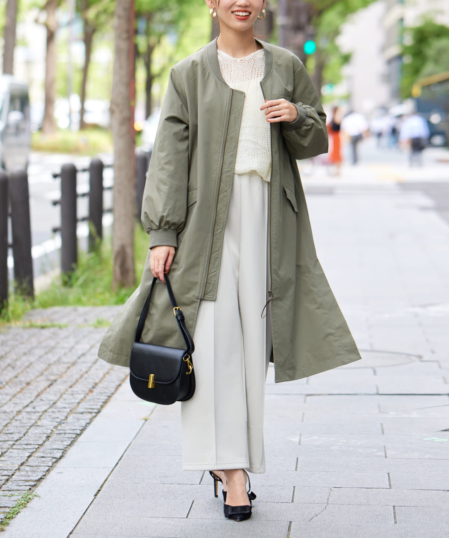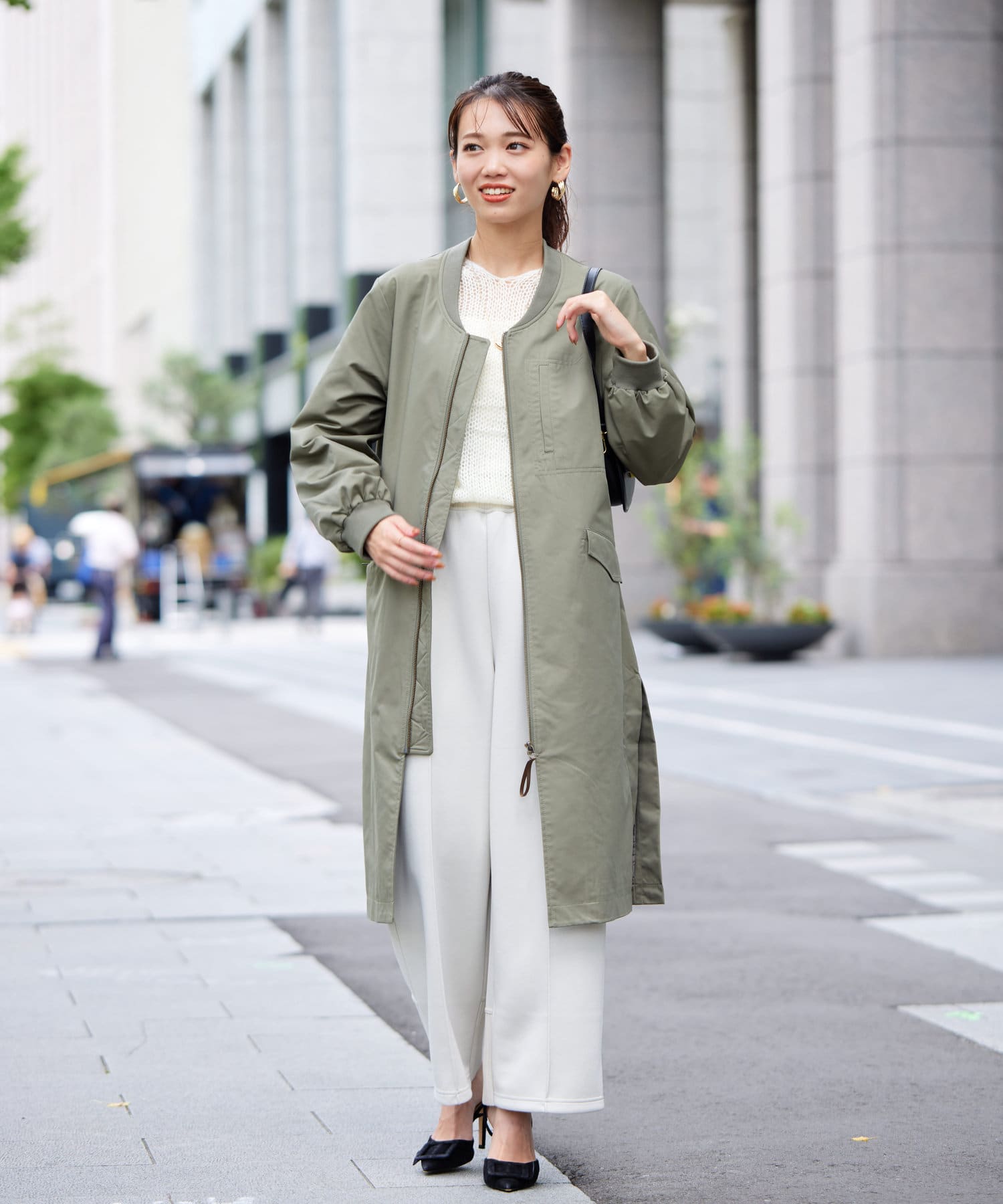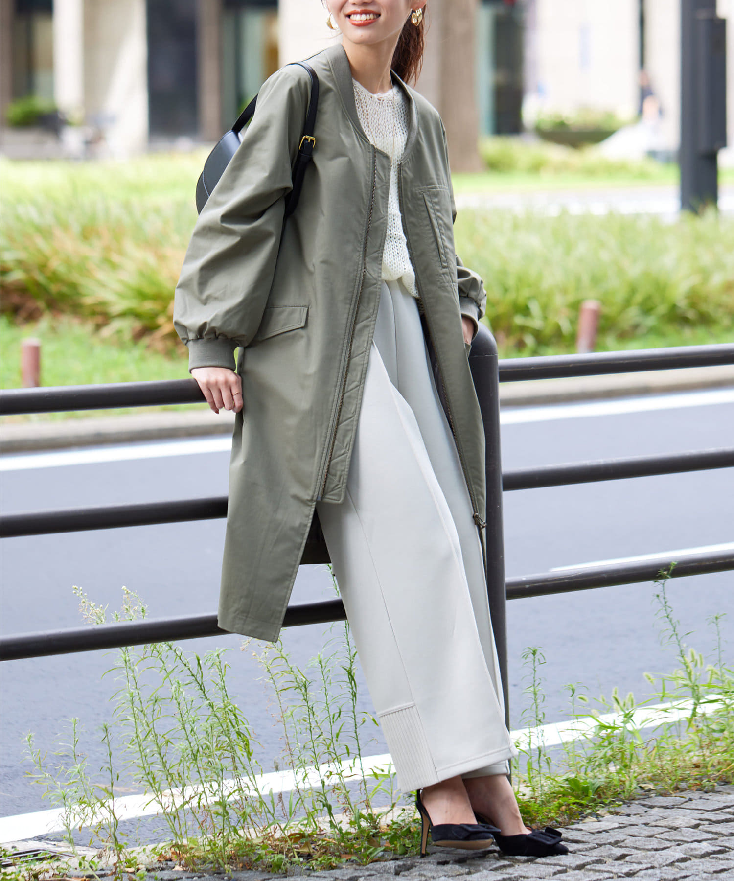 MA-1のロングジャケット。ストンと落ち感があるデザインなので