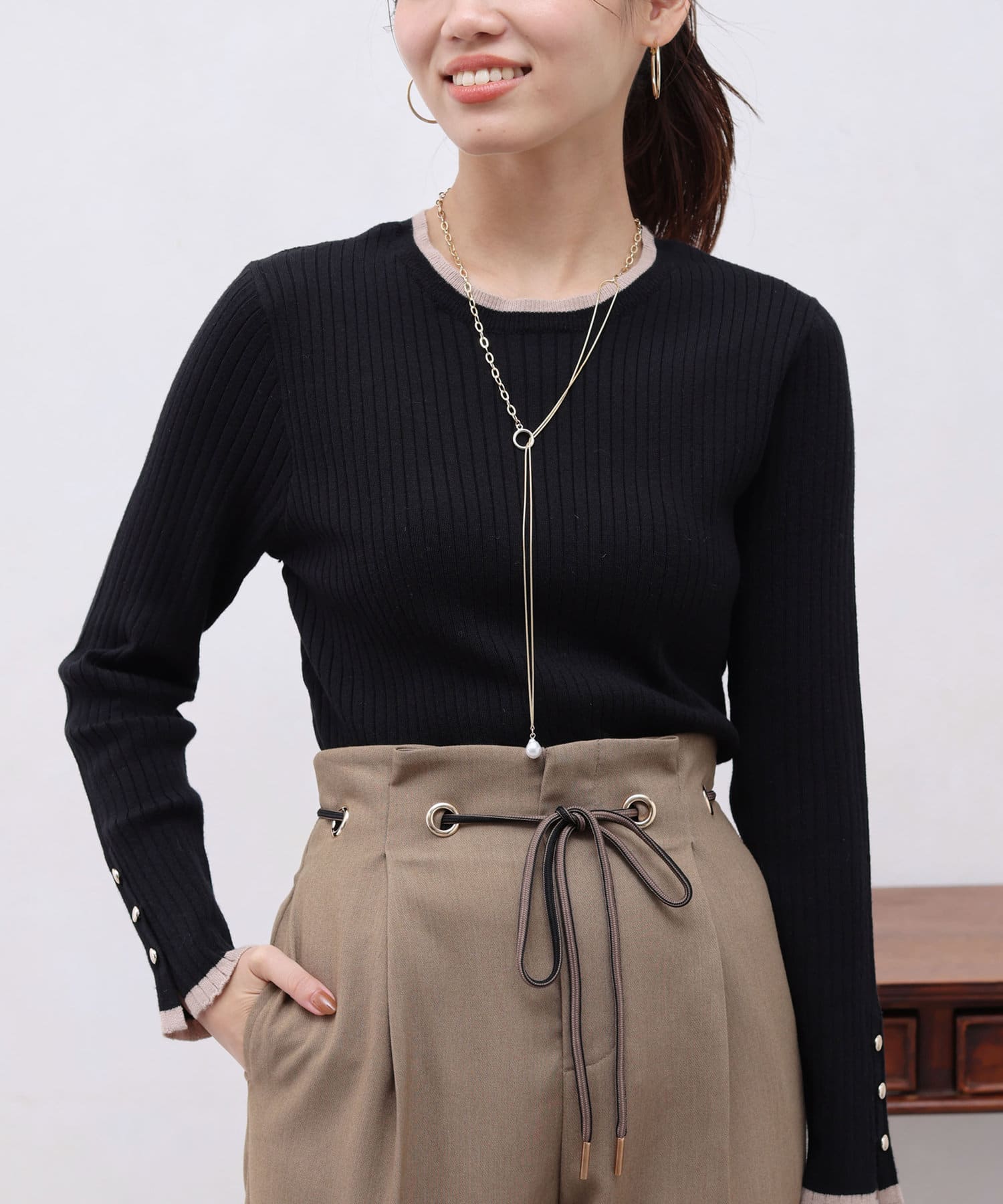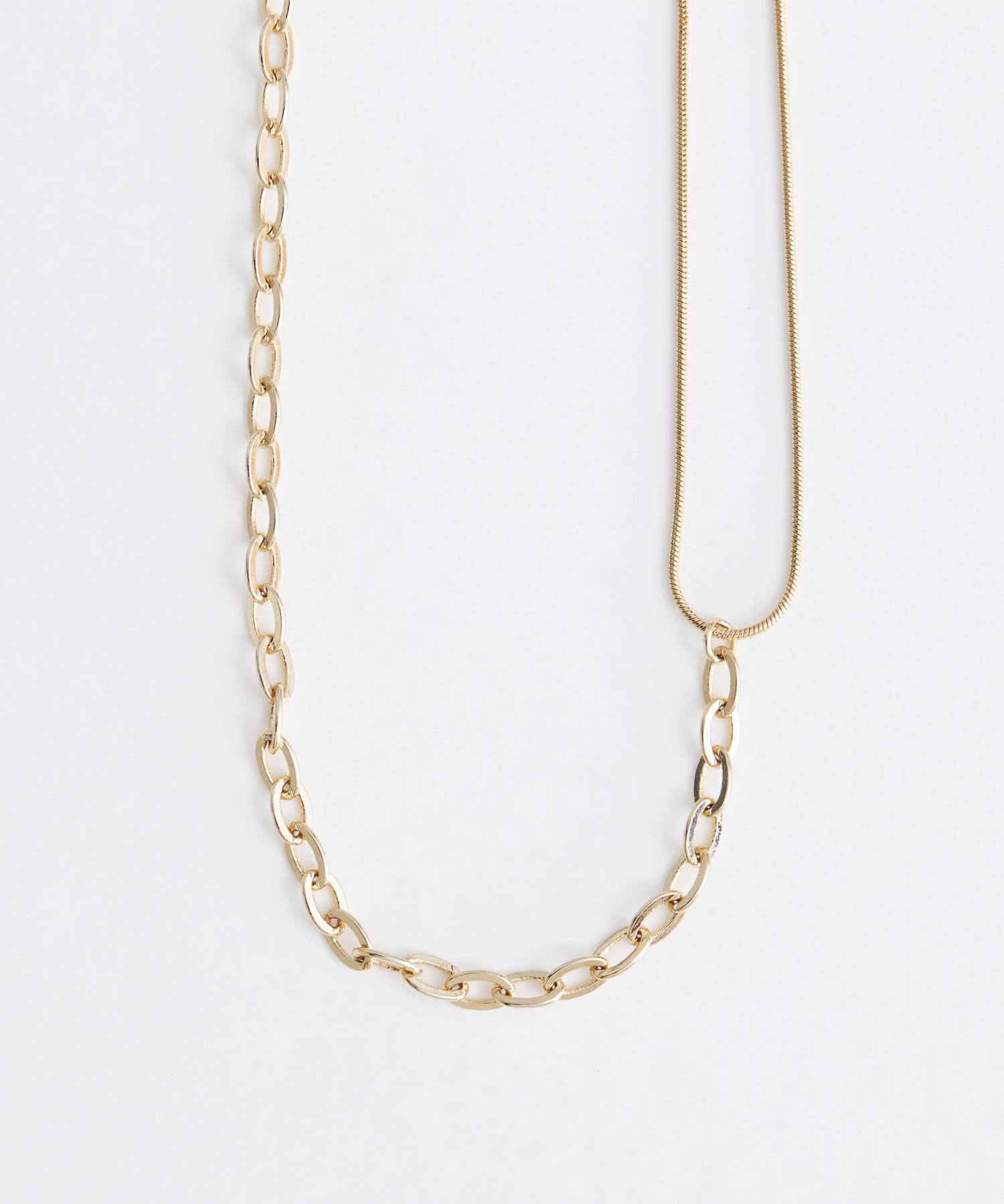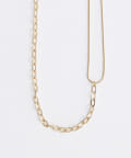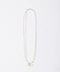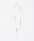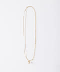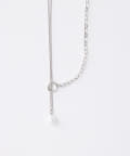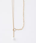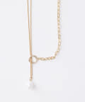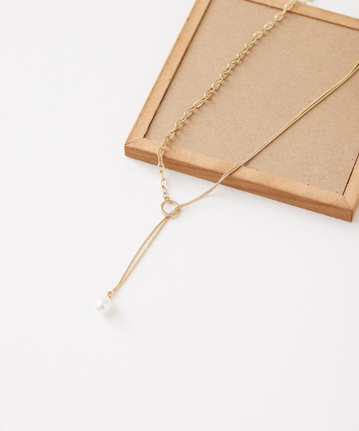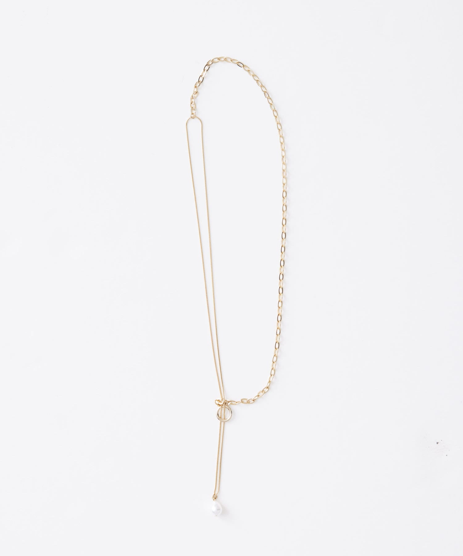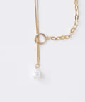 ワンポイントのパールとデザイン違いのチェーンがアクセントになるロングネックレス