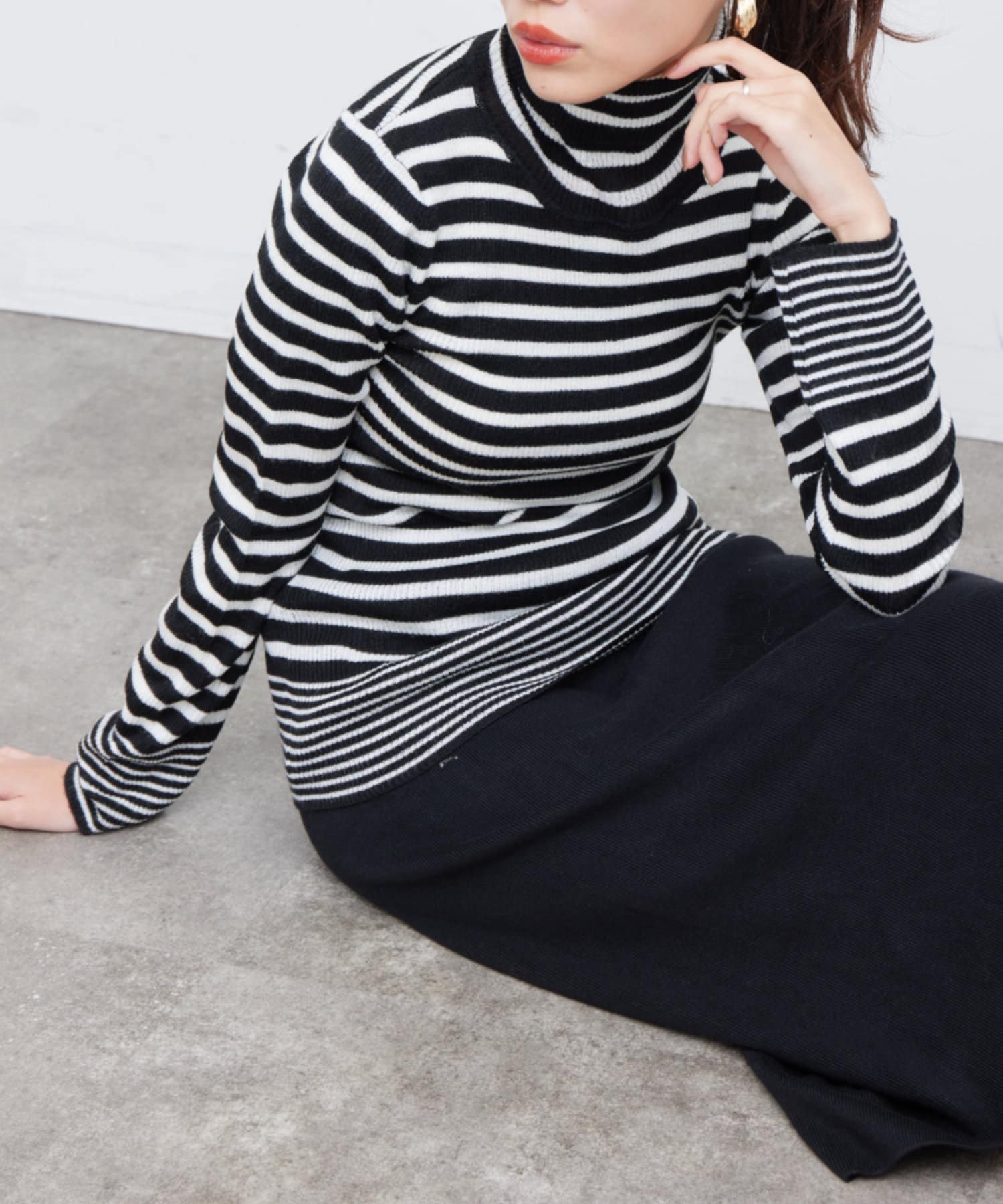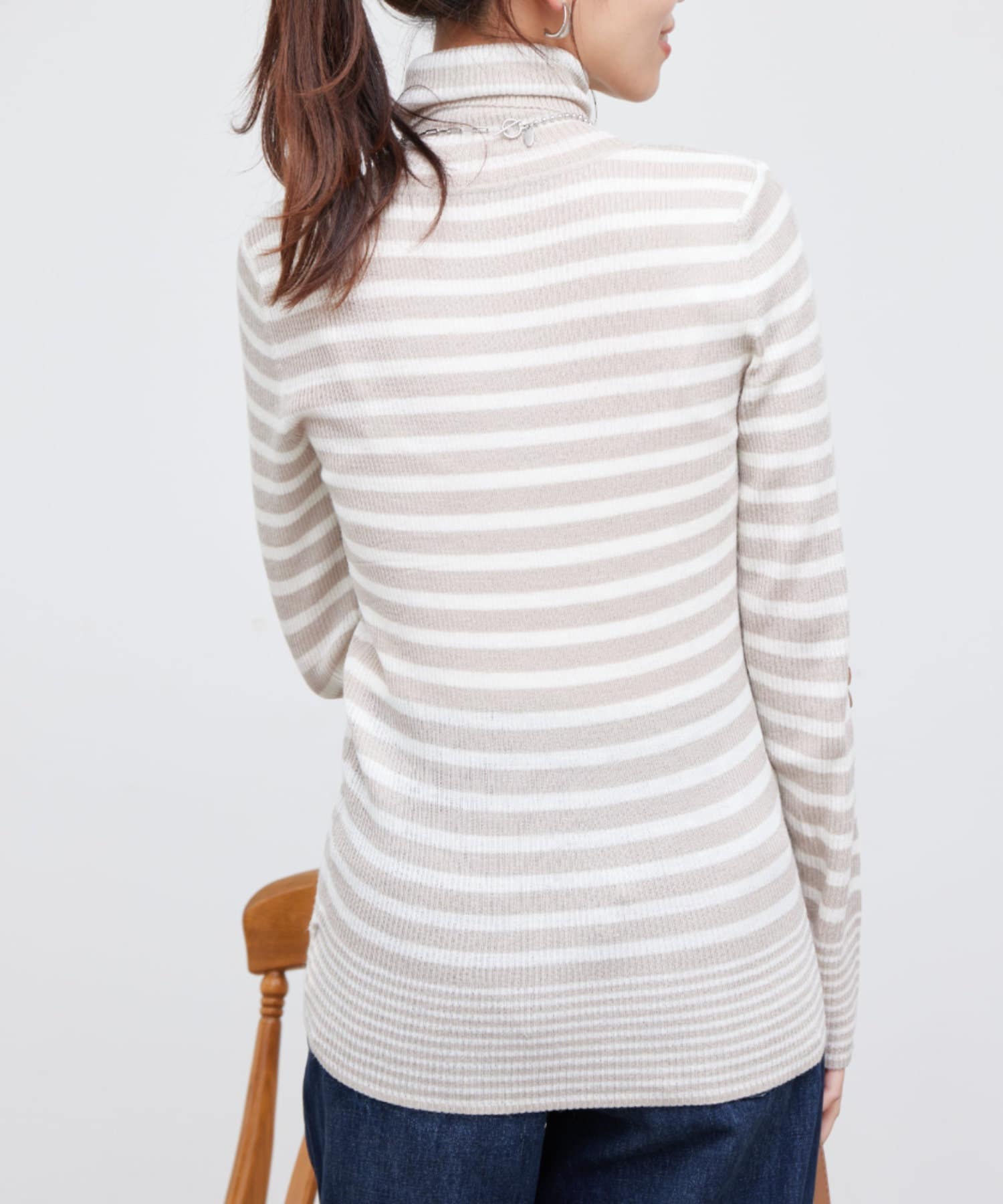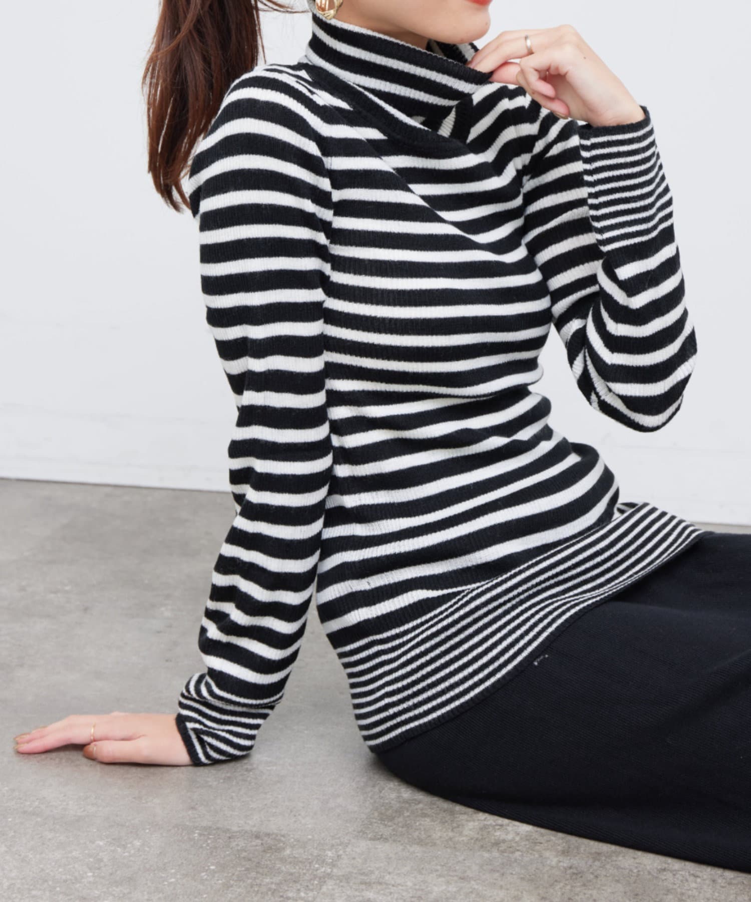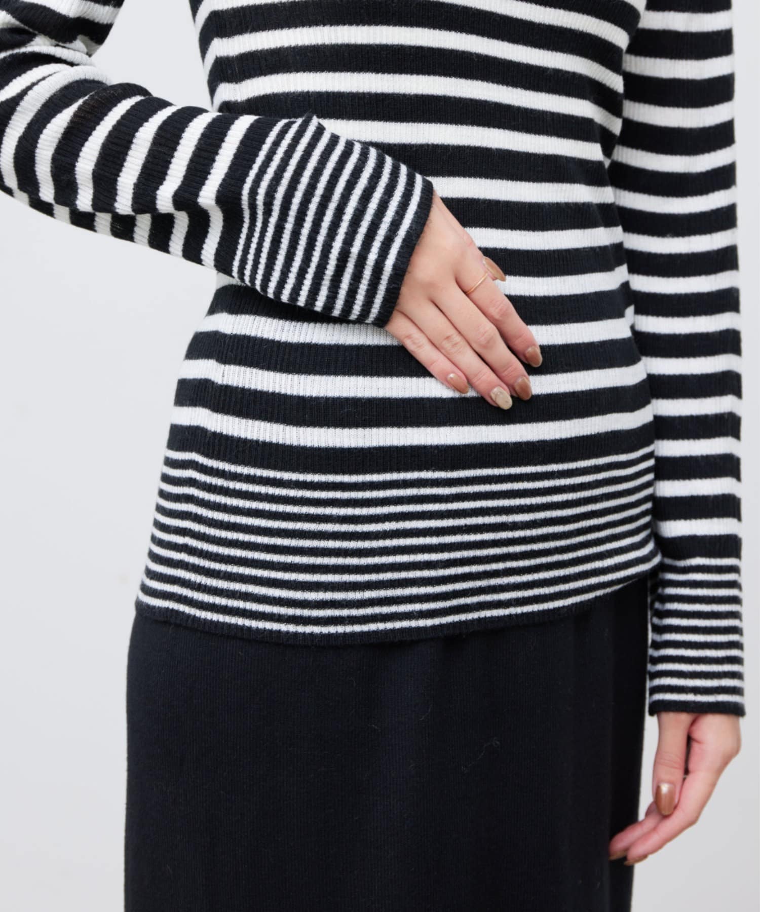 手首周りと裾のみピッチの細かいボーダーになっているので、