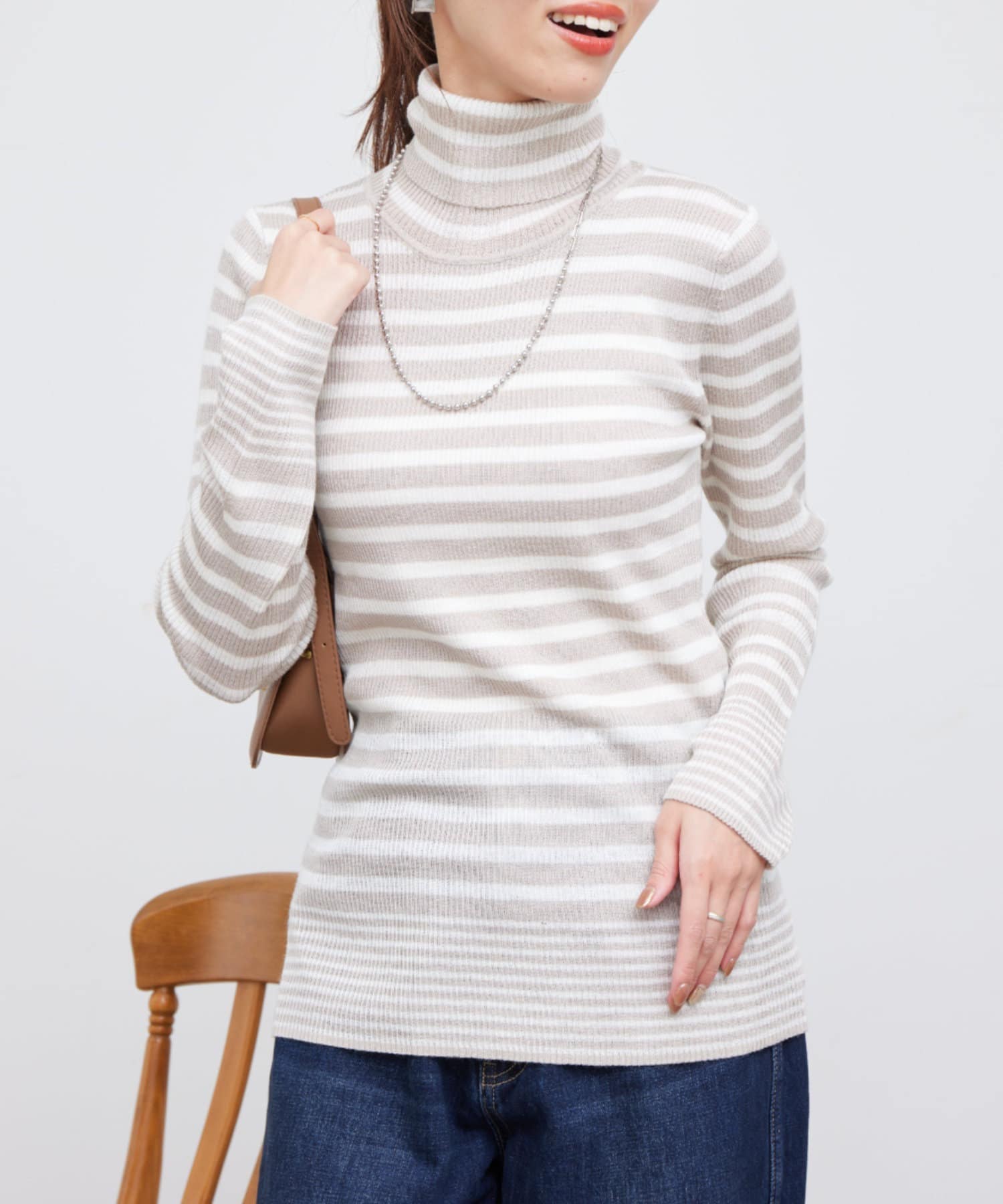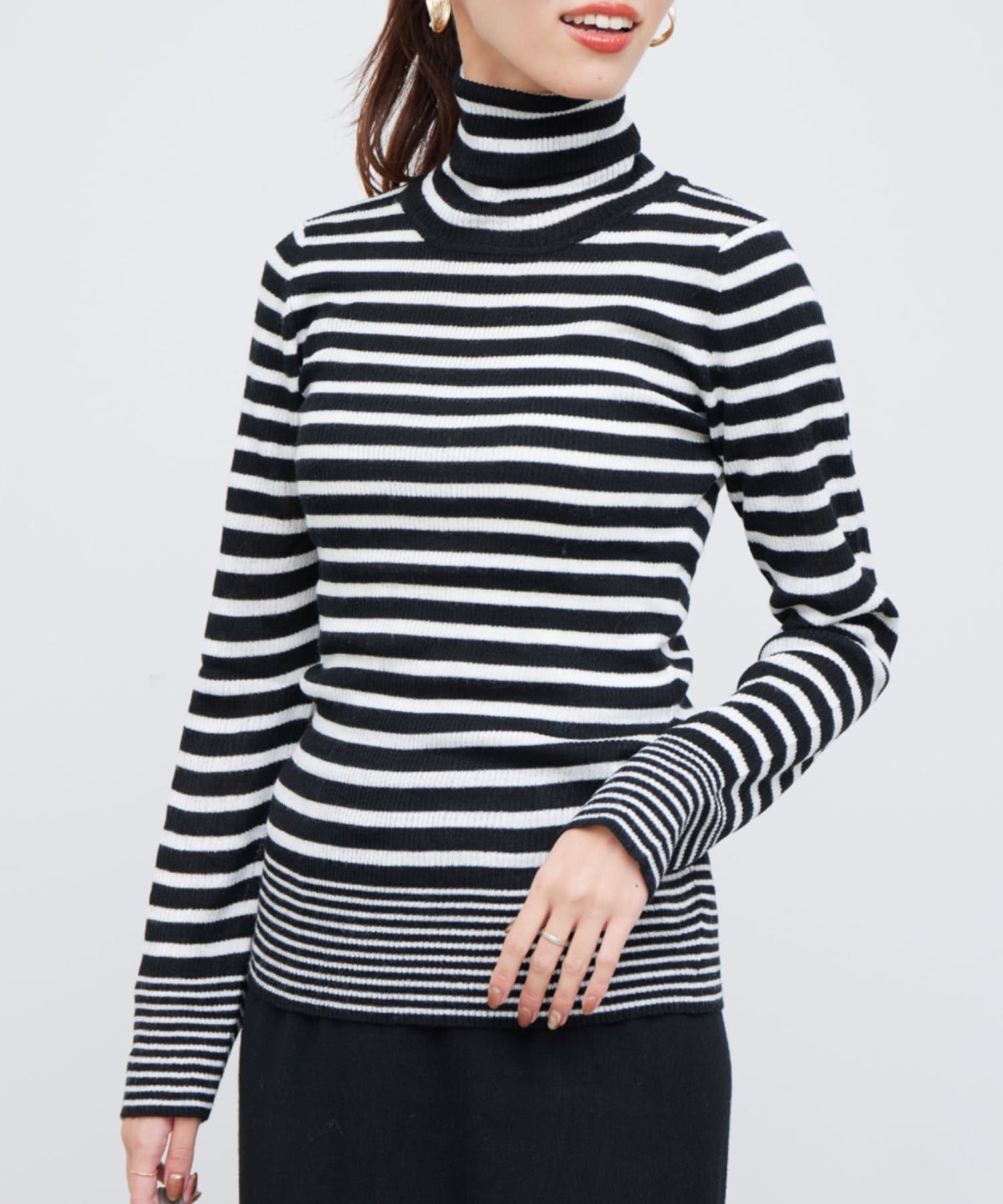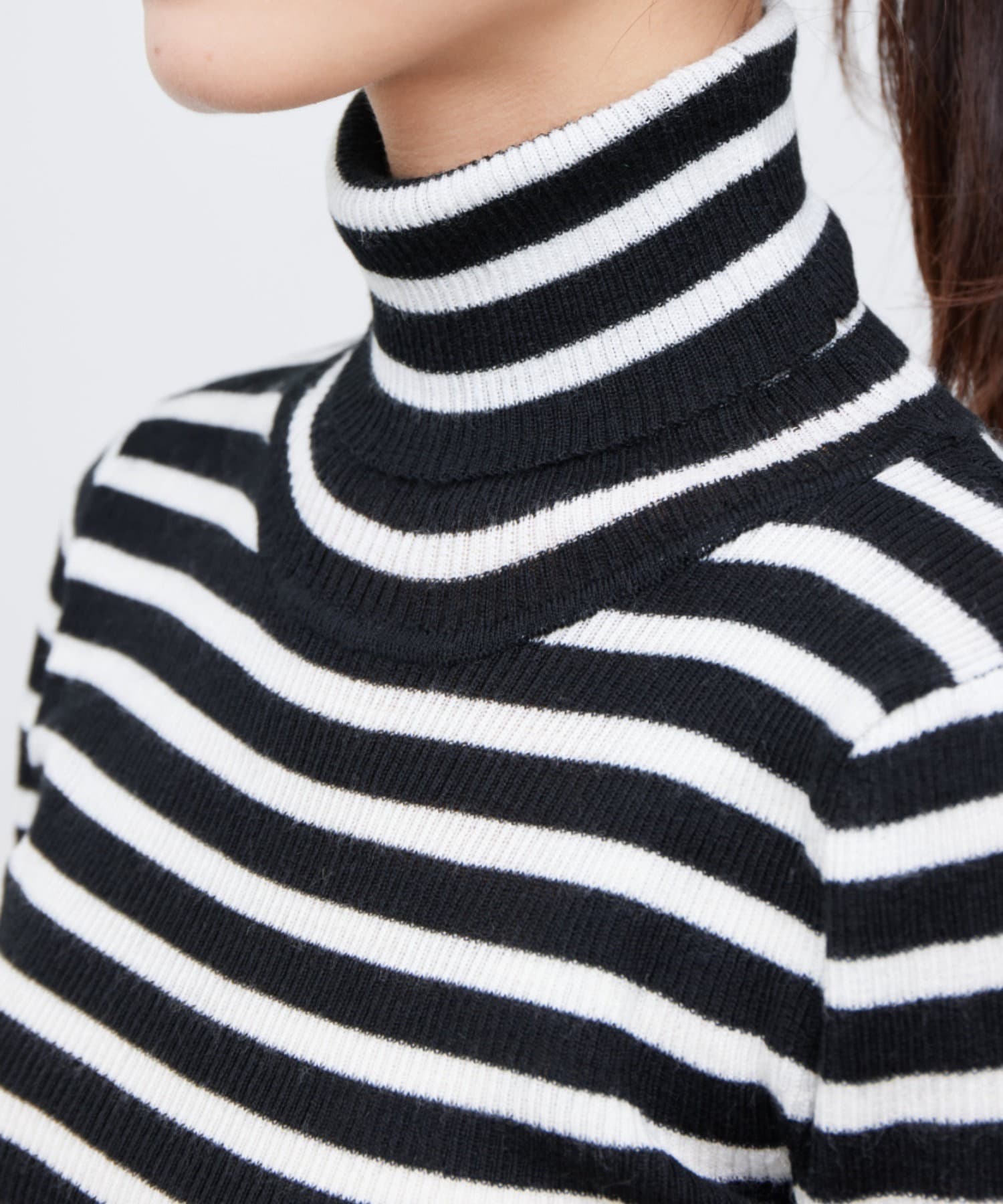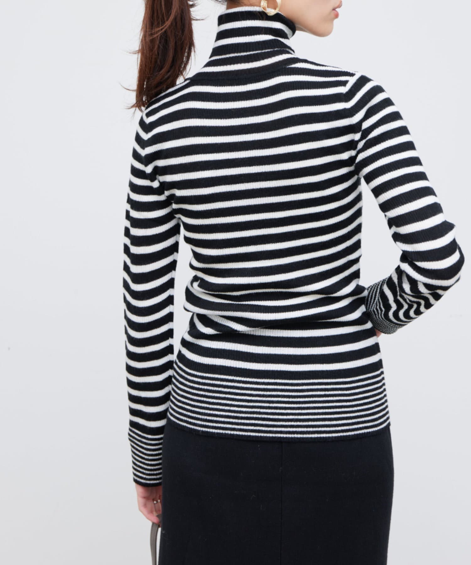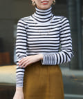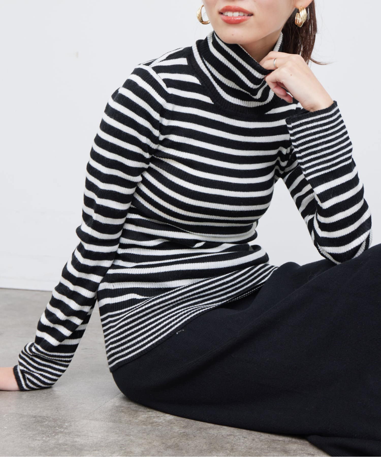 手首周りと裾のみピッチの細かいボーダーになっているので、