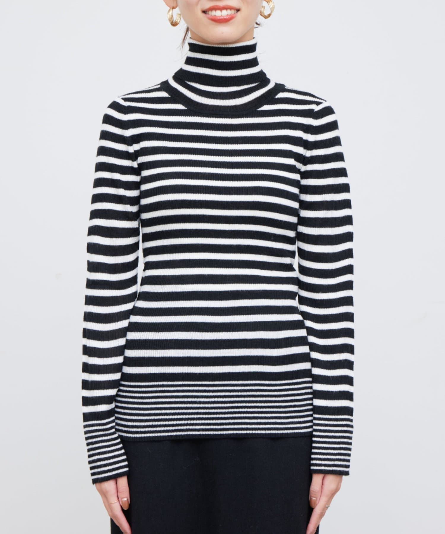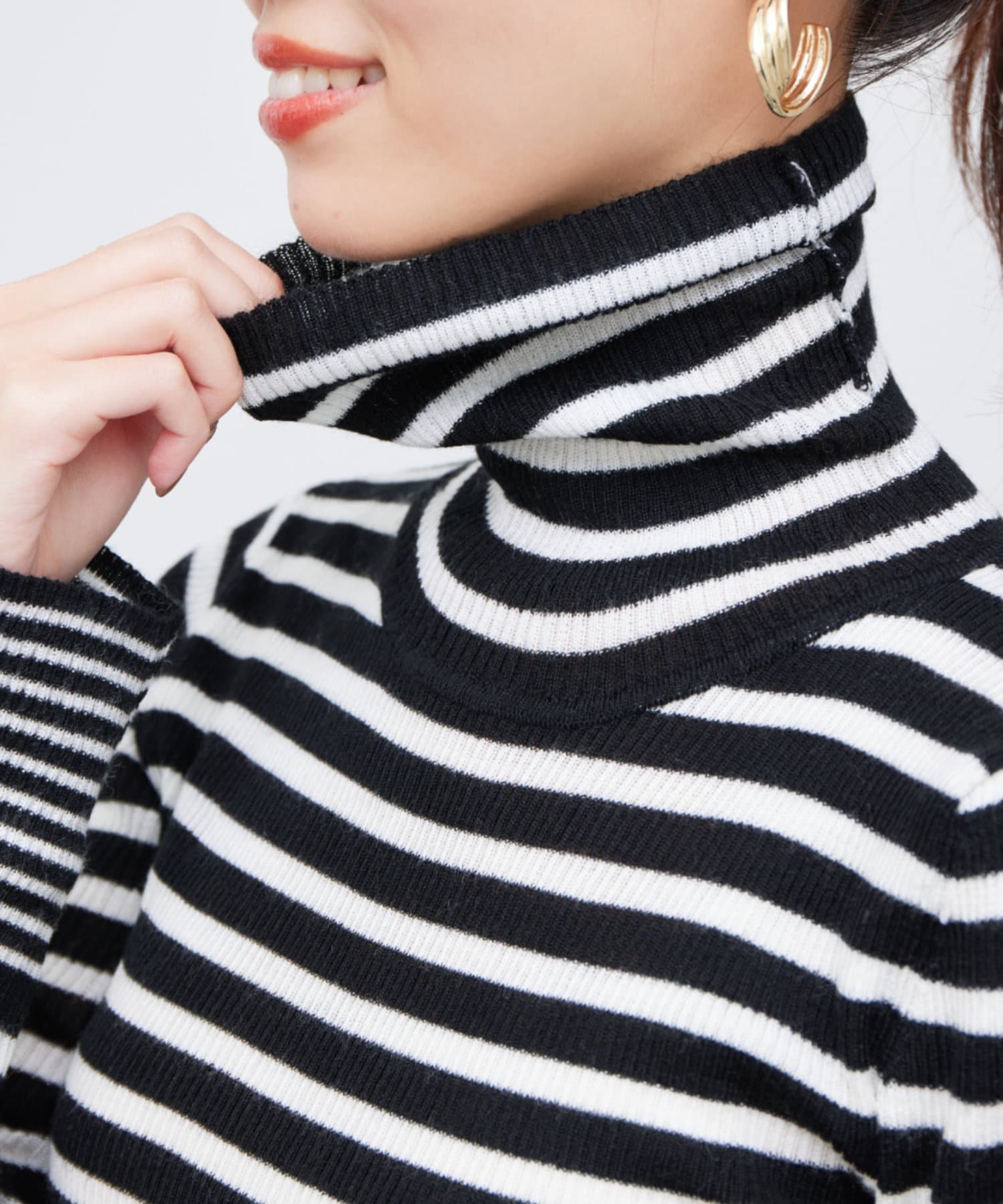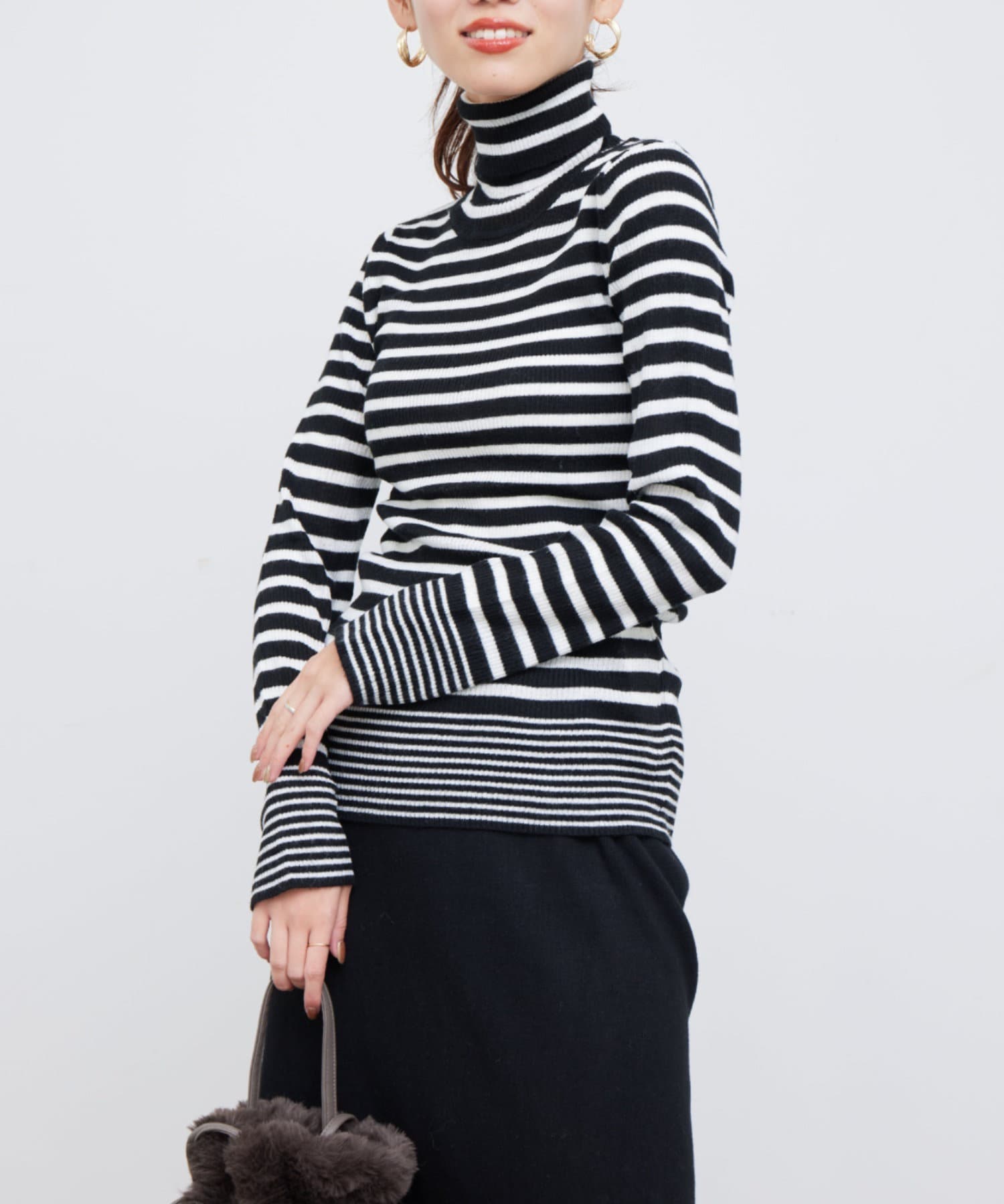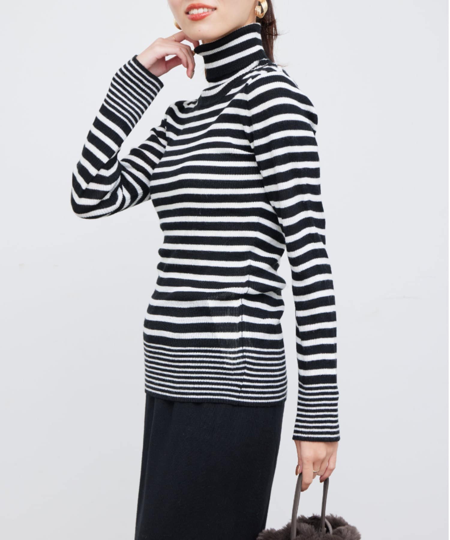 手首周りと裾のみピッチの細かいボーダーになっているので、