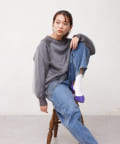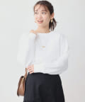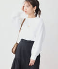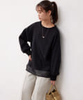 ミニ裏毛素材に布帛のオーガンジー素材を重ねたフェミニンなトップス