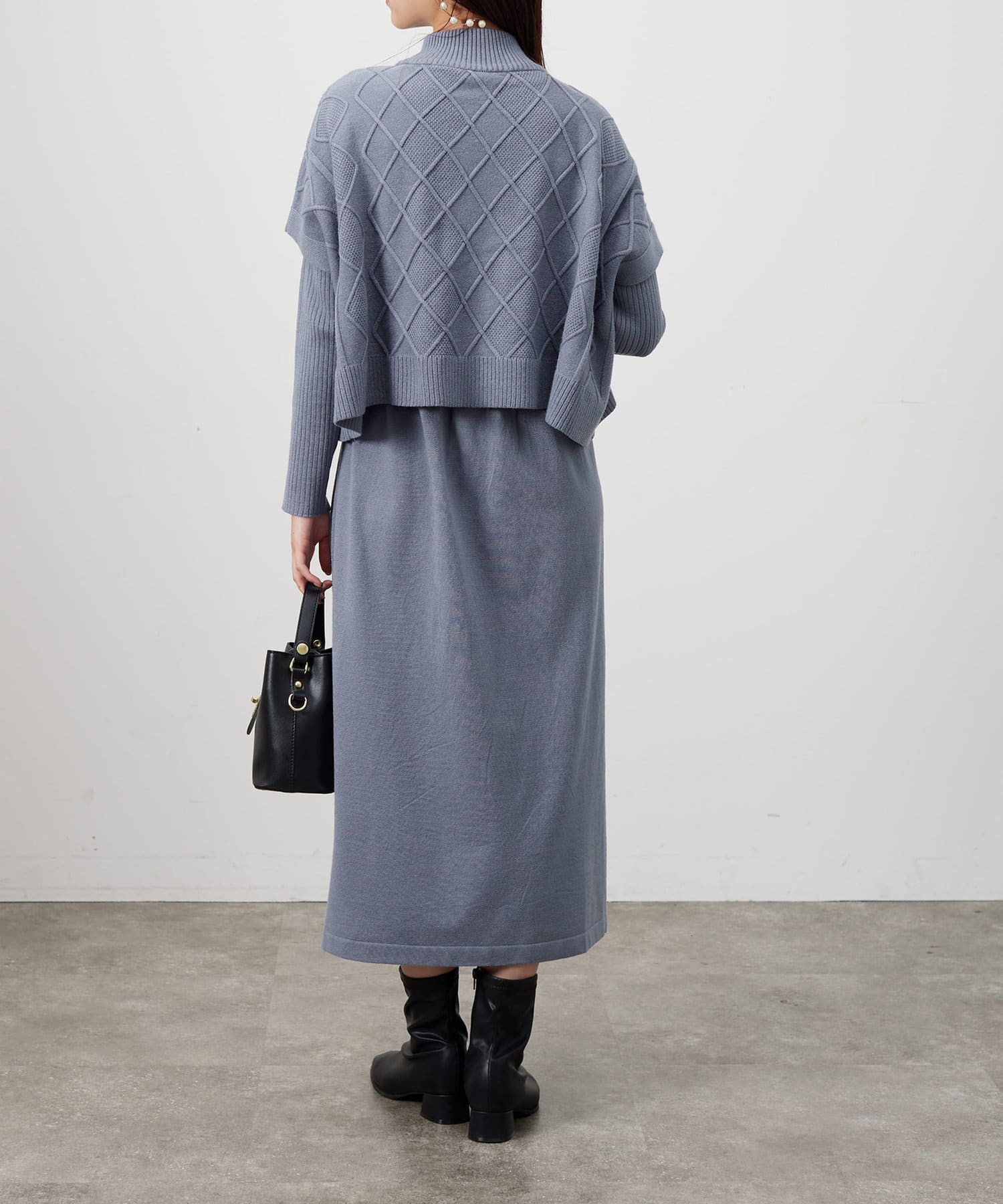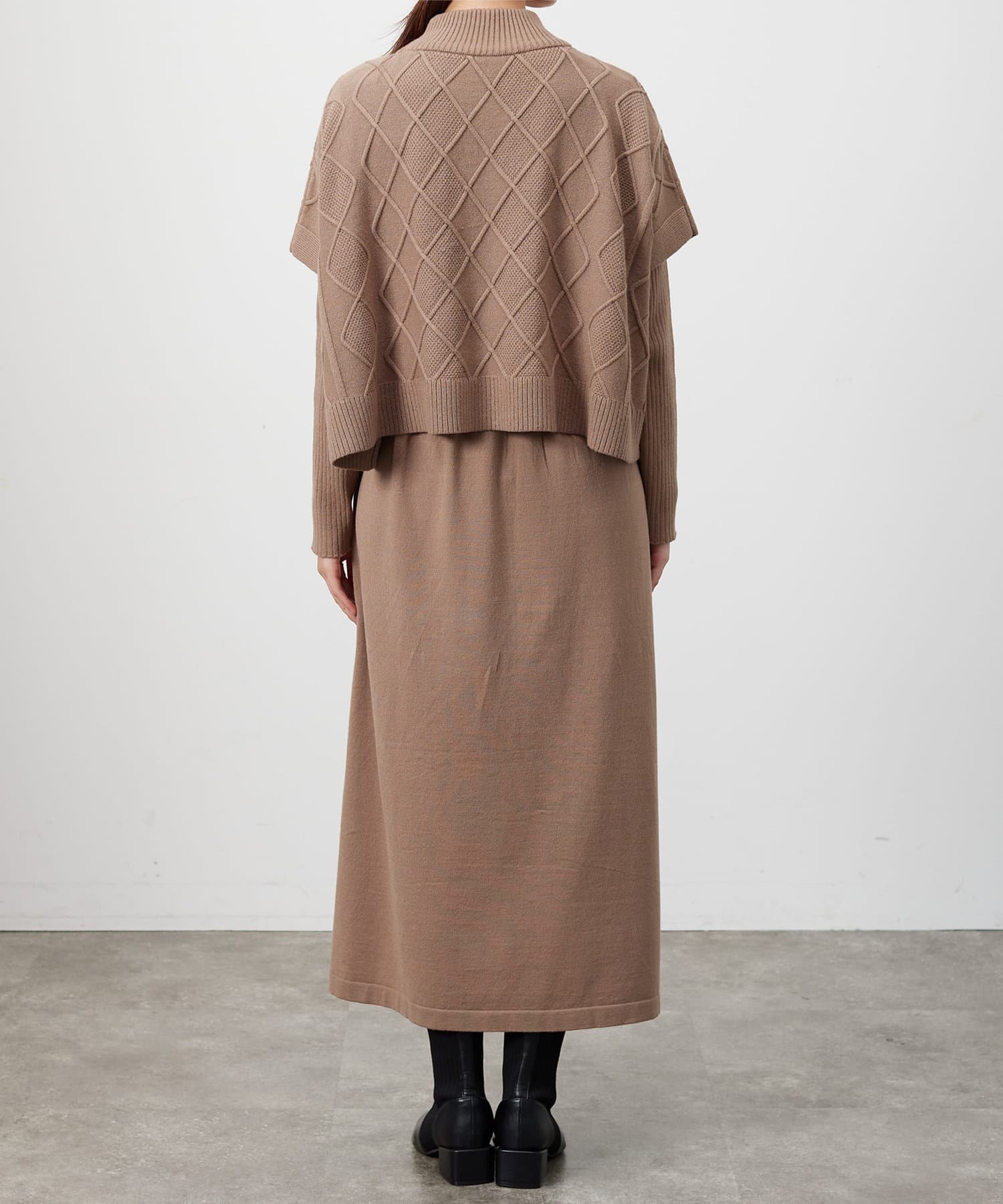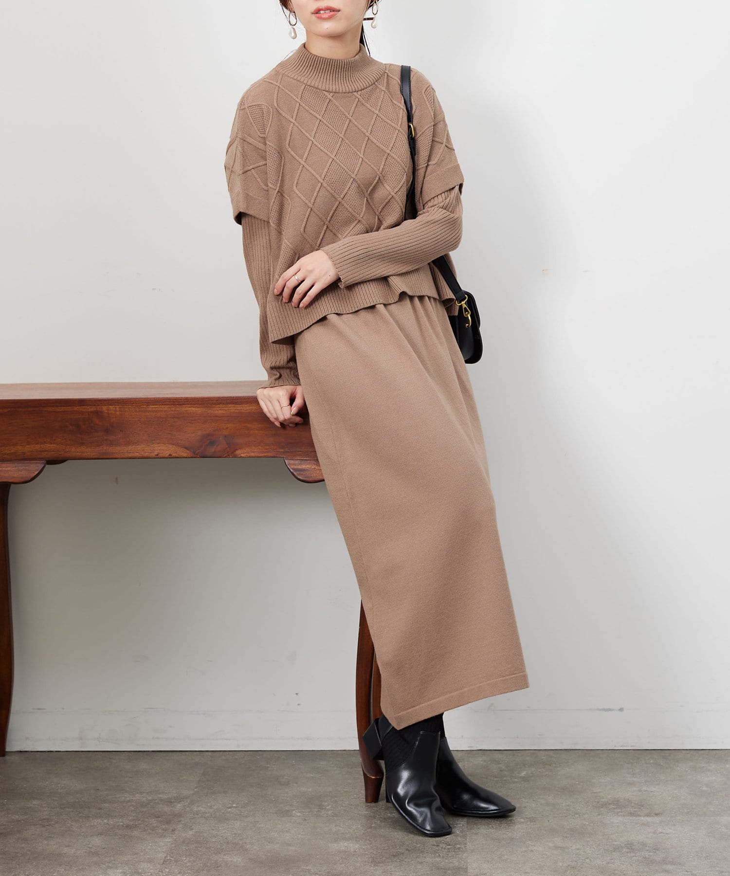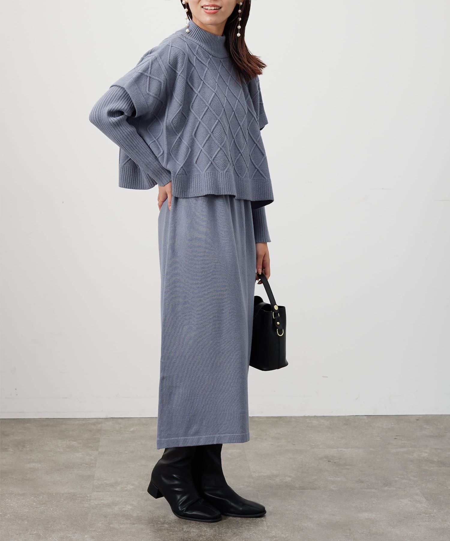 ケーブルのニットトップスとワンピースのセットアイテム。