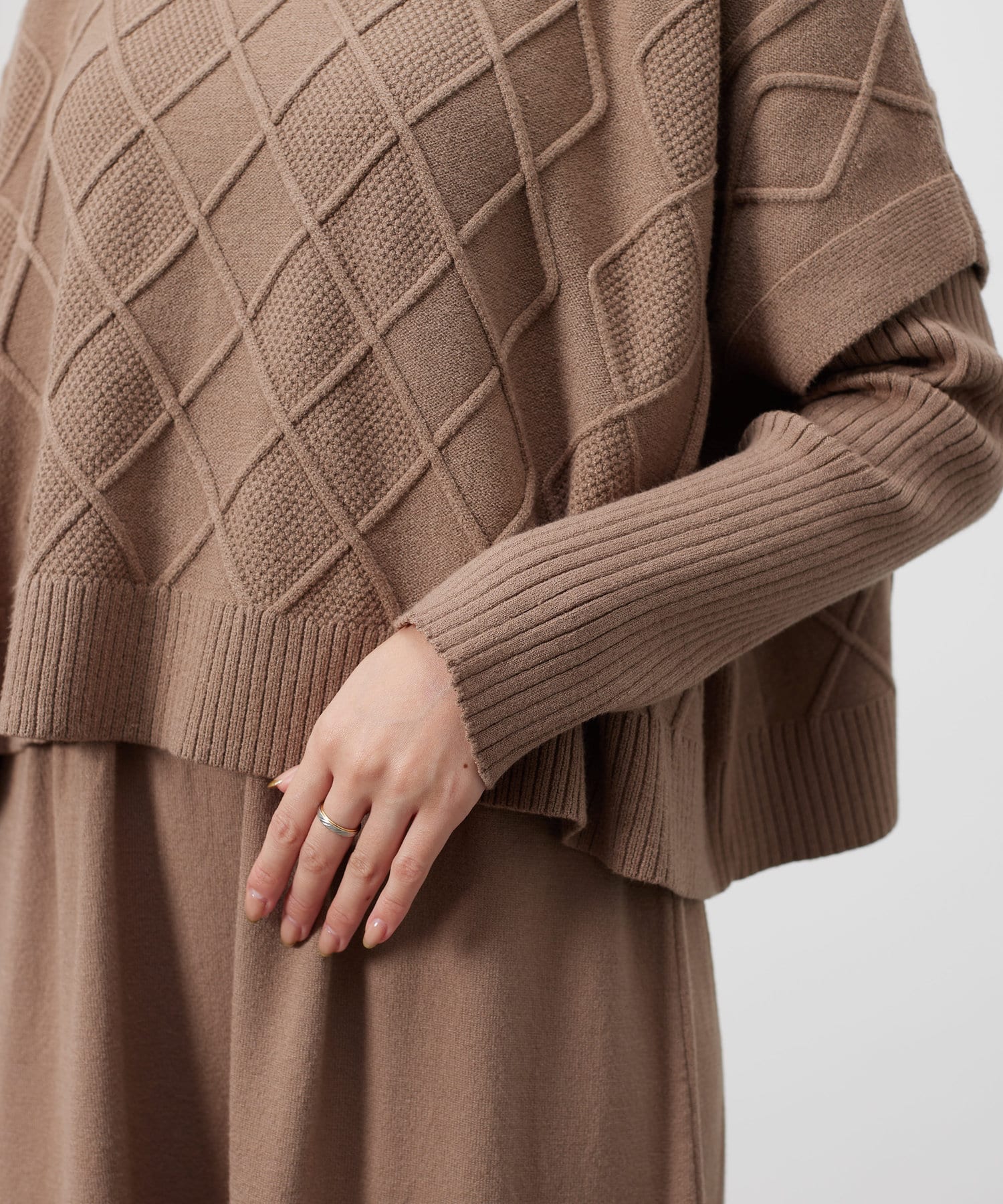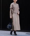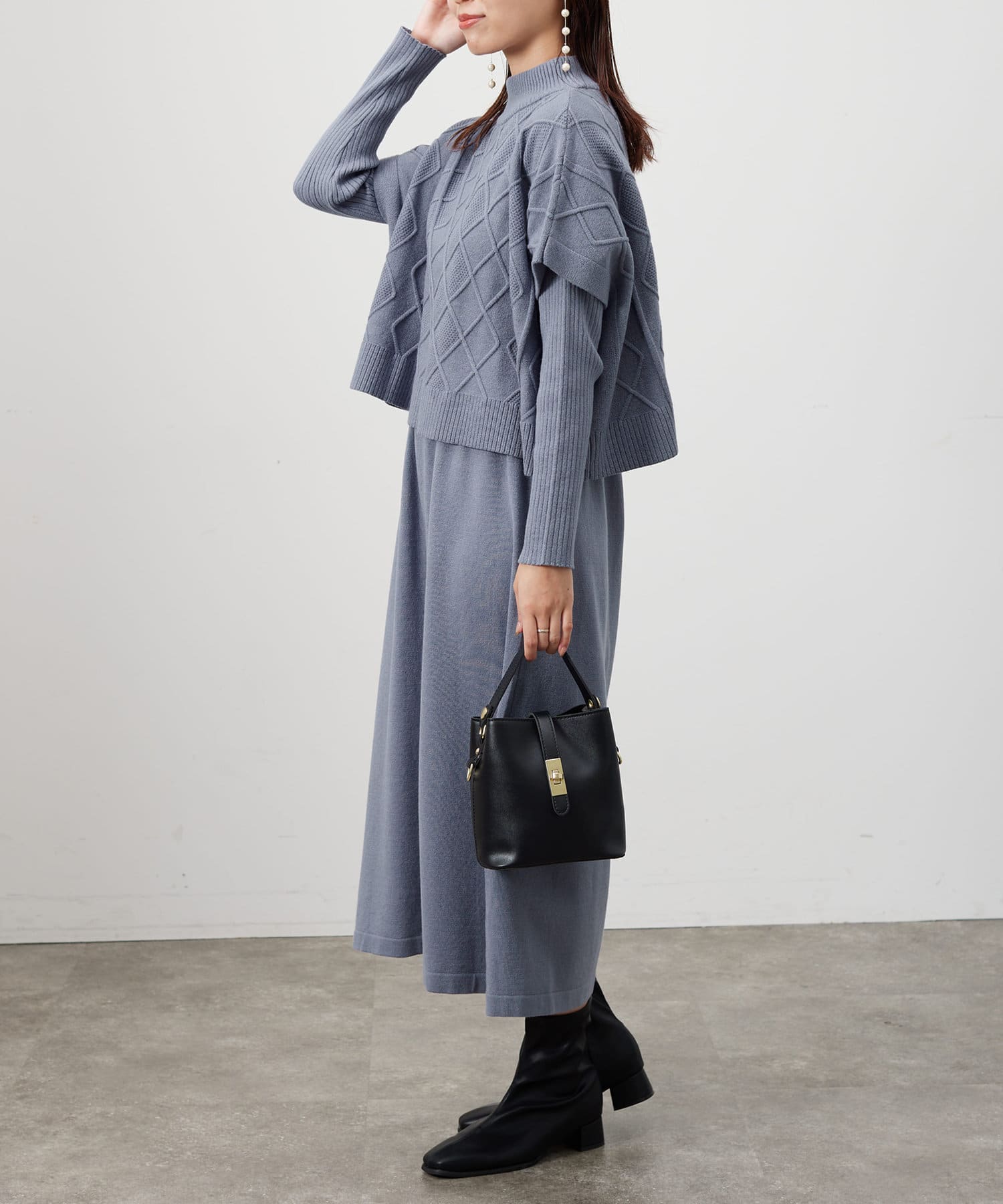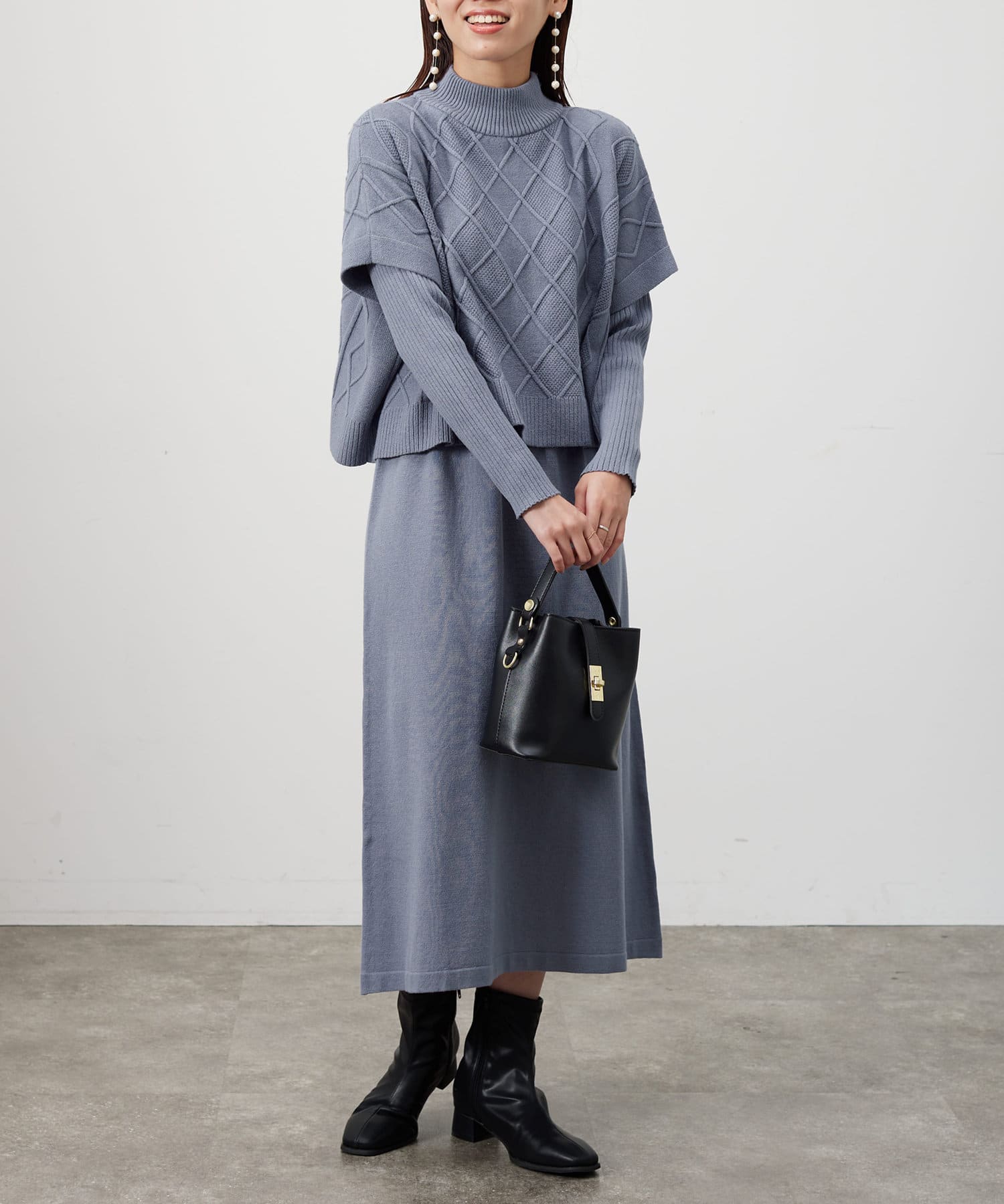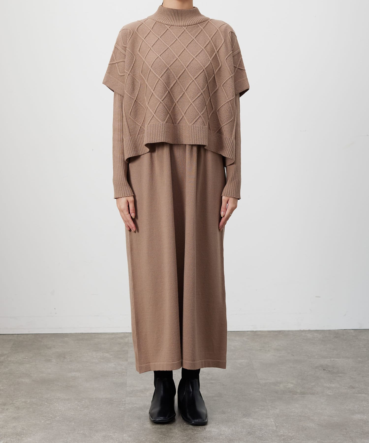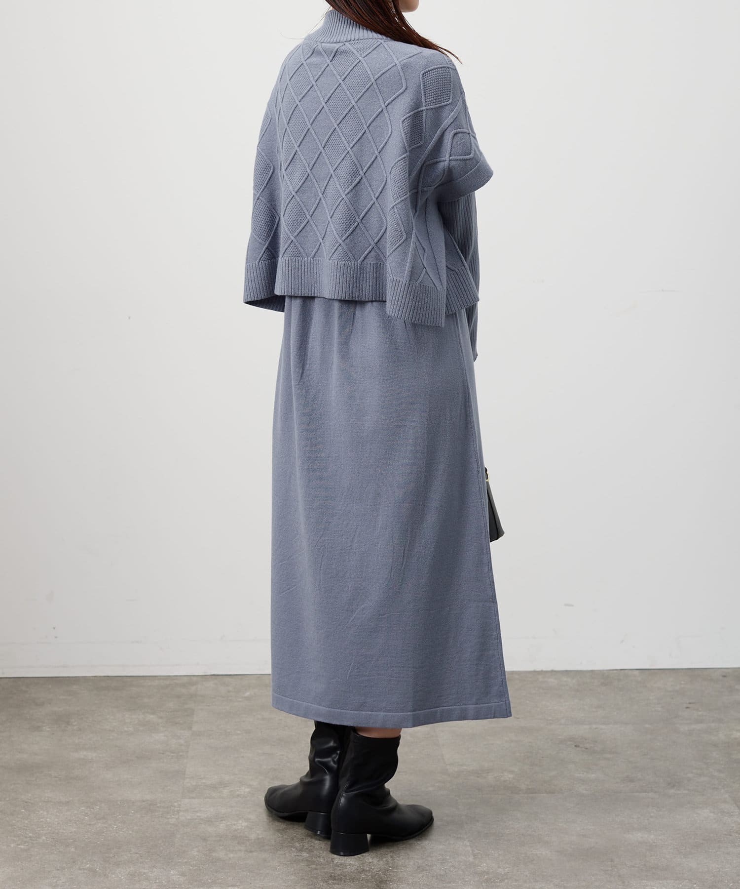 ケーブルのニットトップスとワンピースのセットアイテム。