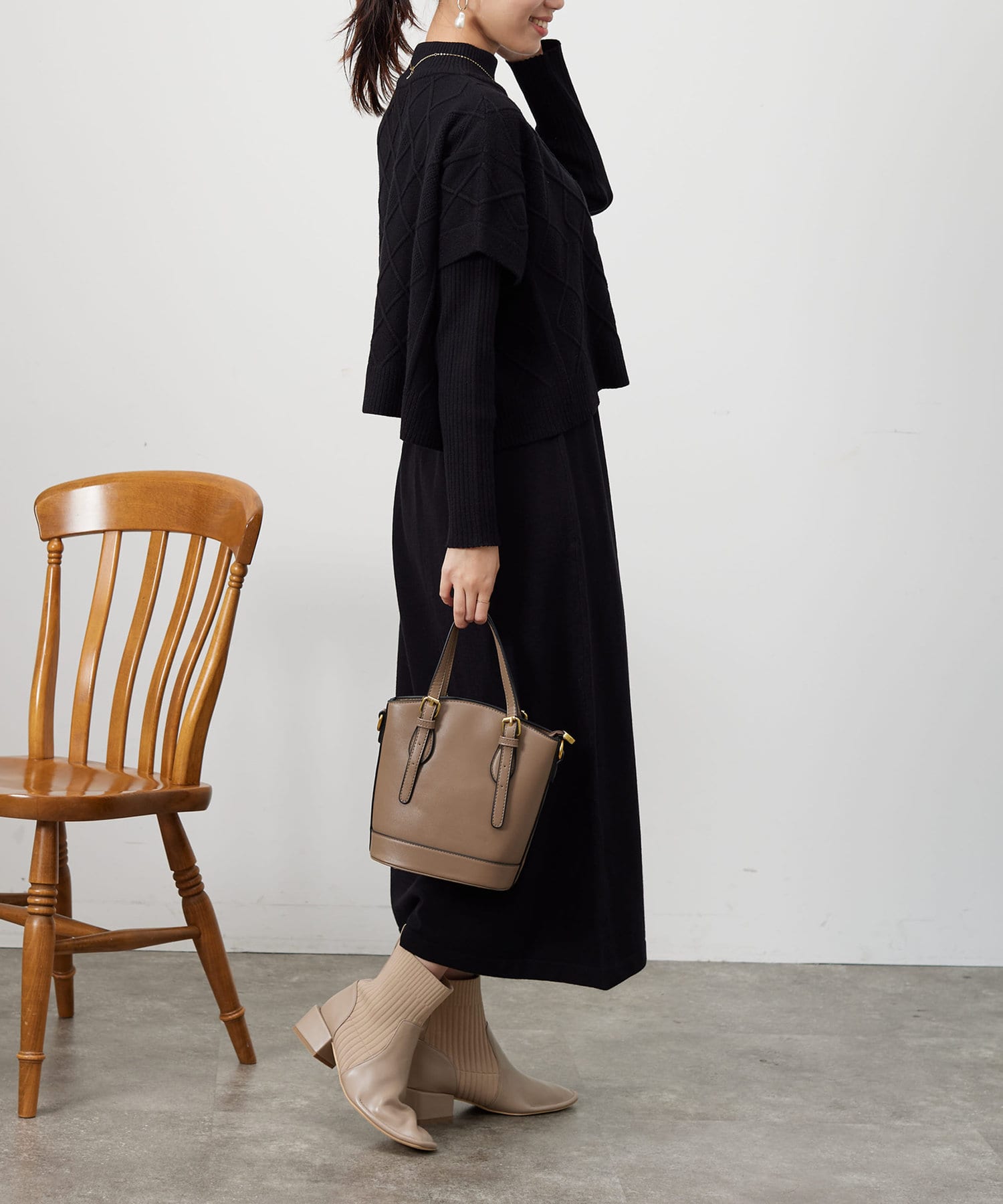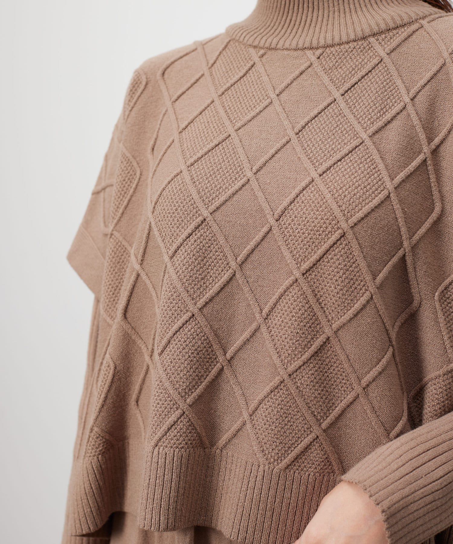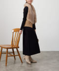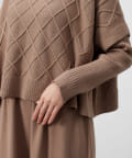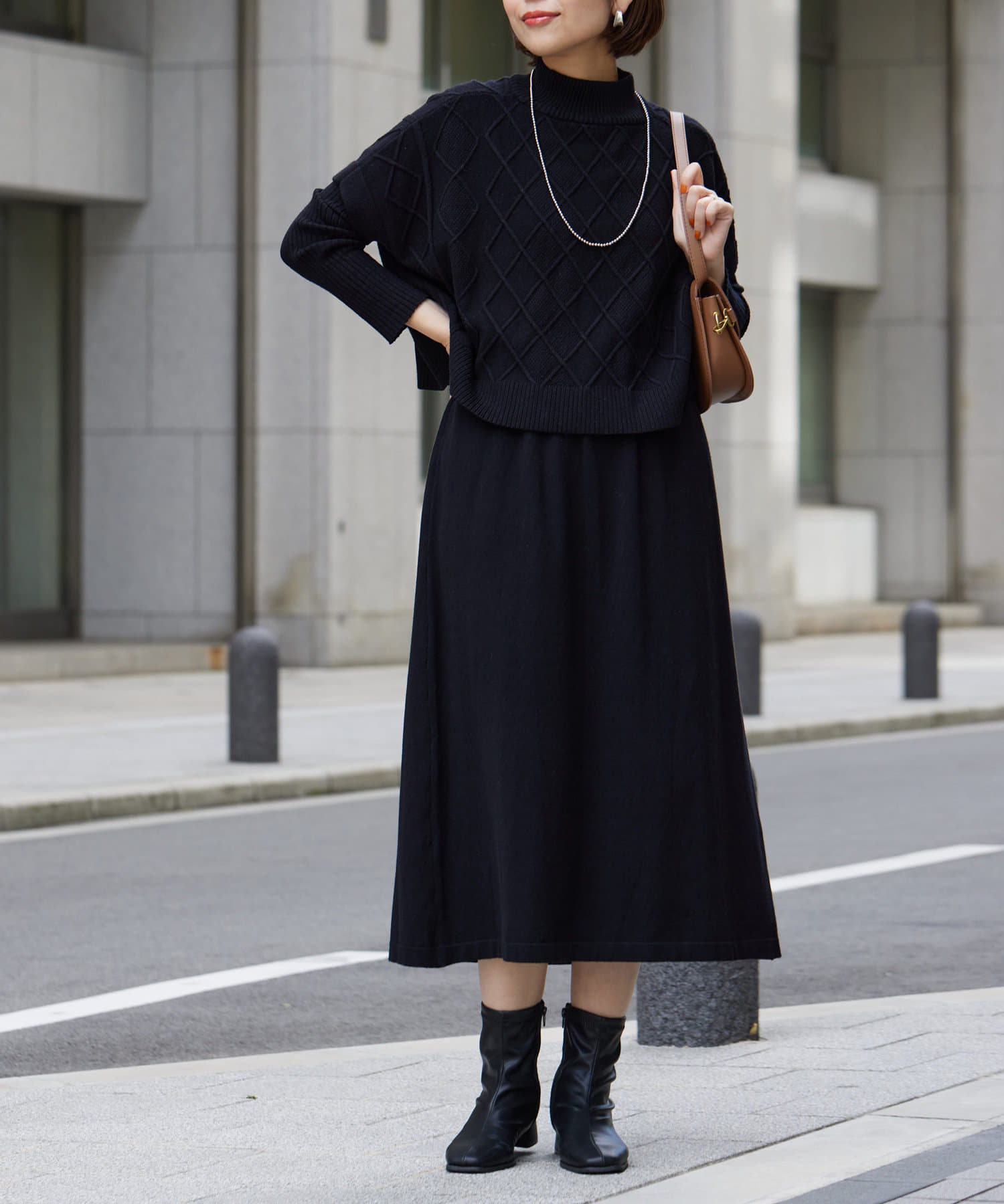 ケーブル編みが表面変化を出してくれるので1枚でものっぺりとせず立体感のあるコーディネートに仕上がります。