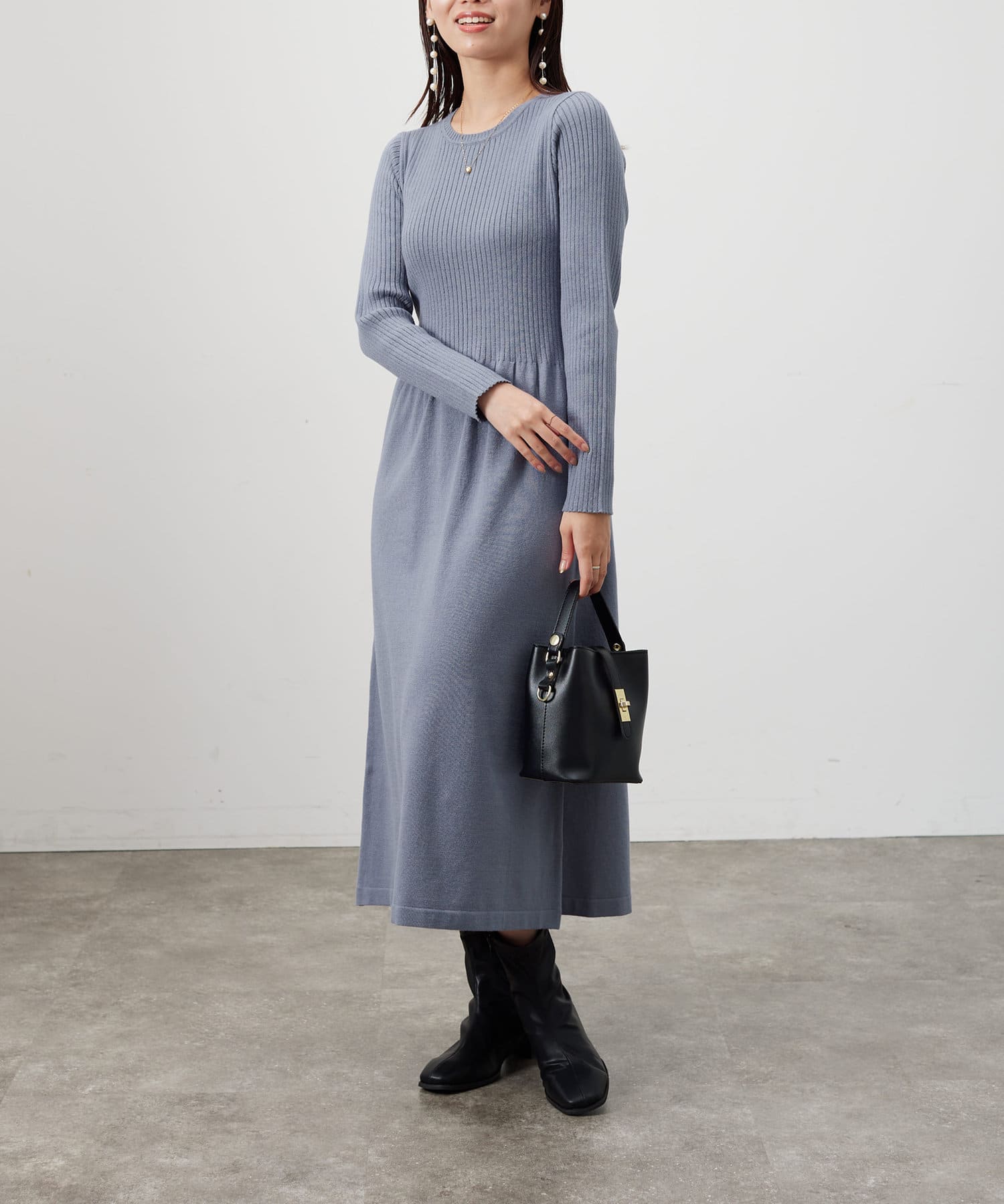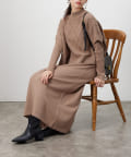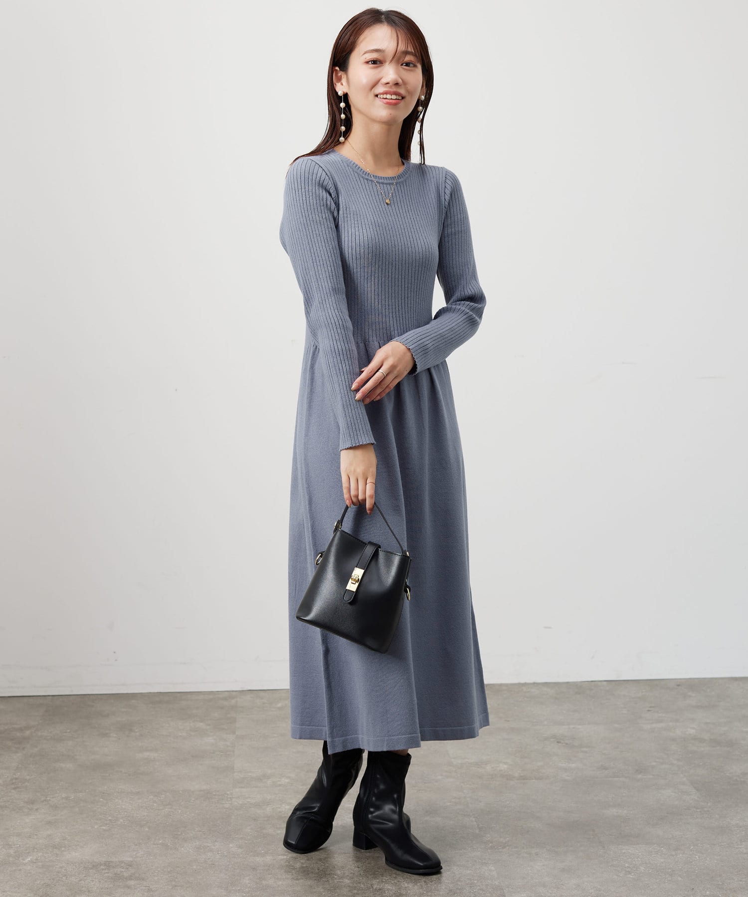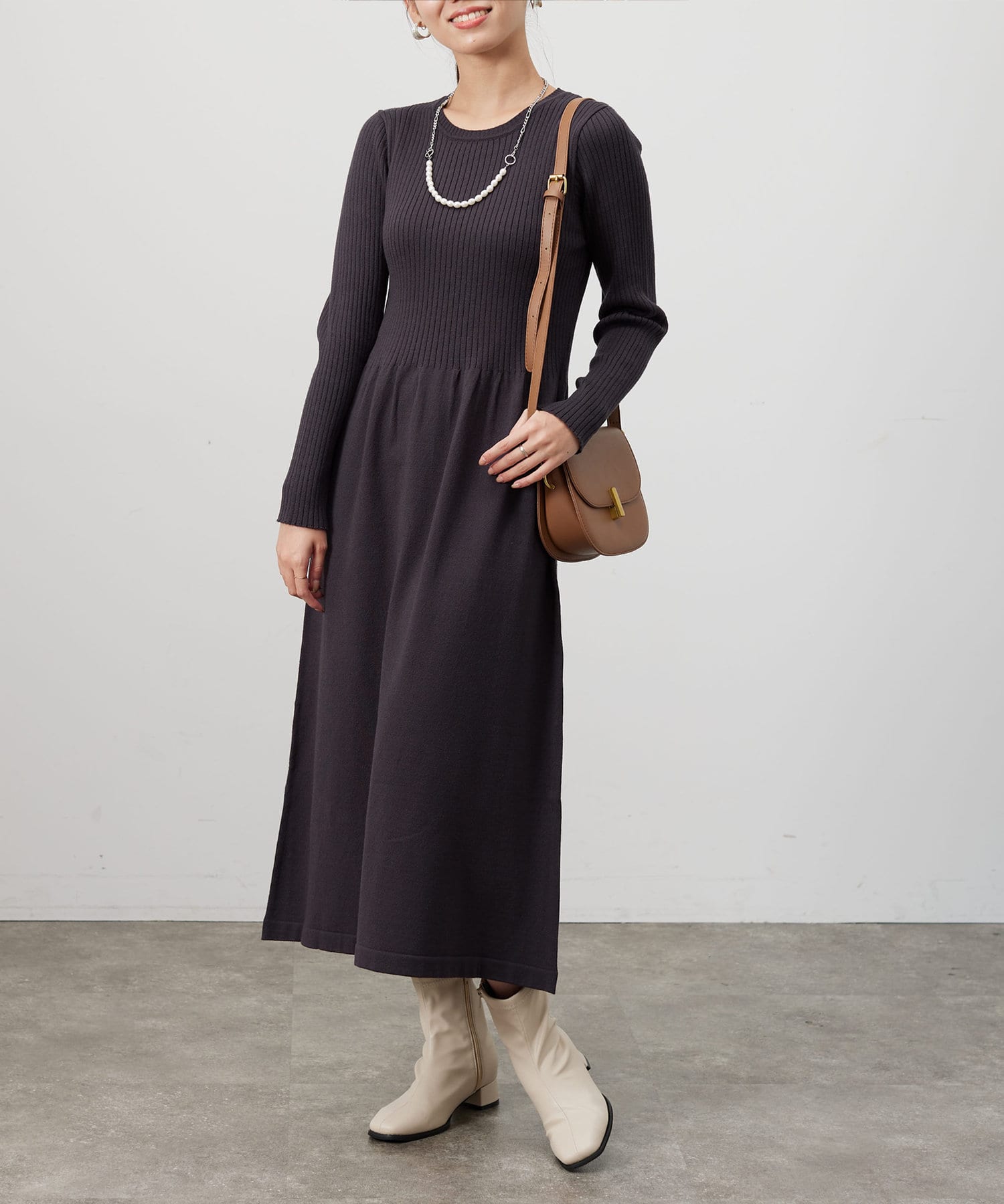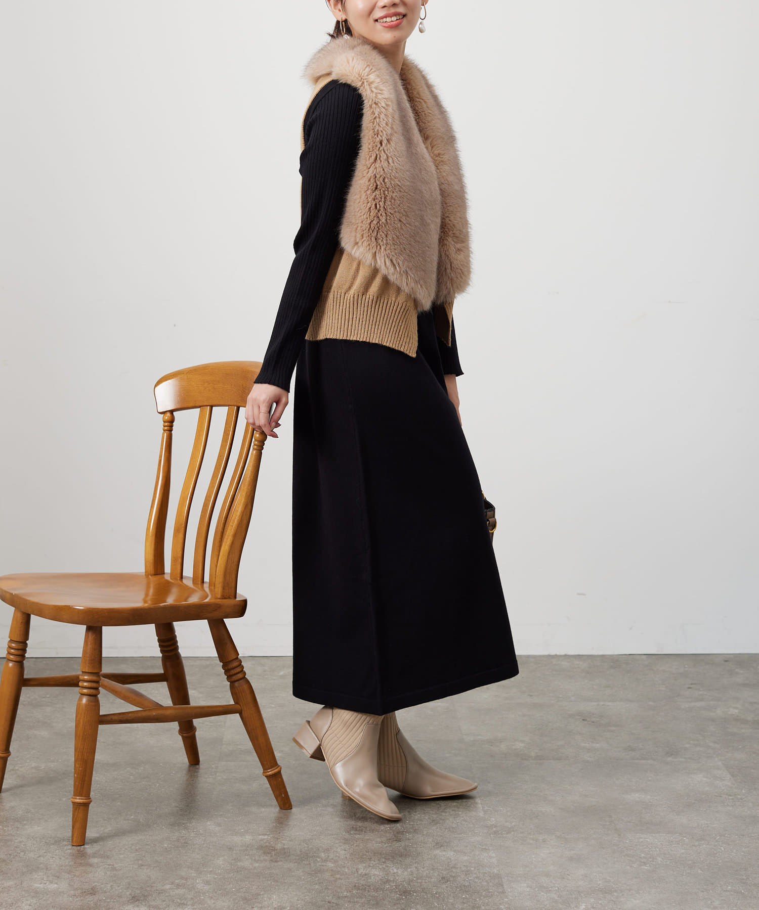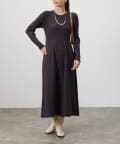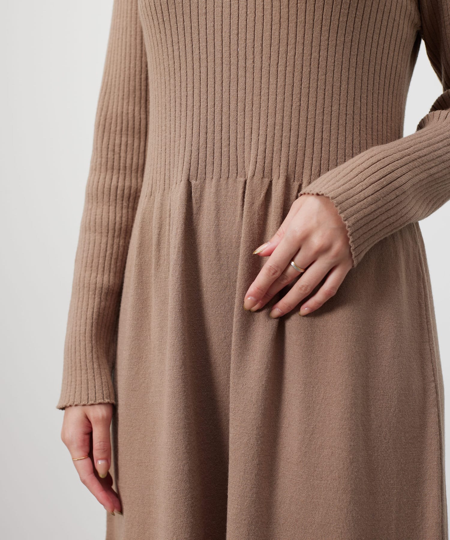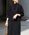 ワンピースはシンプルながらタートルネックと身頃の細リブがすっきりと見せてくれるので、