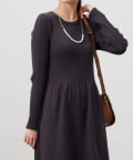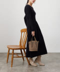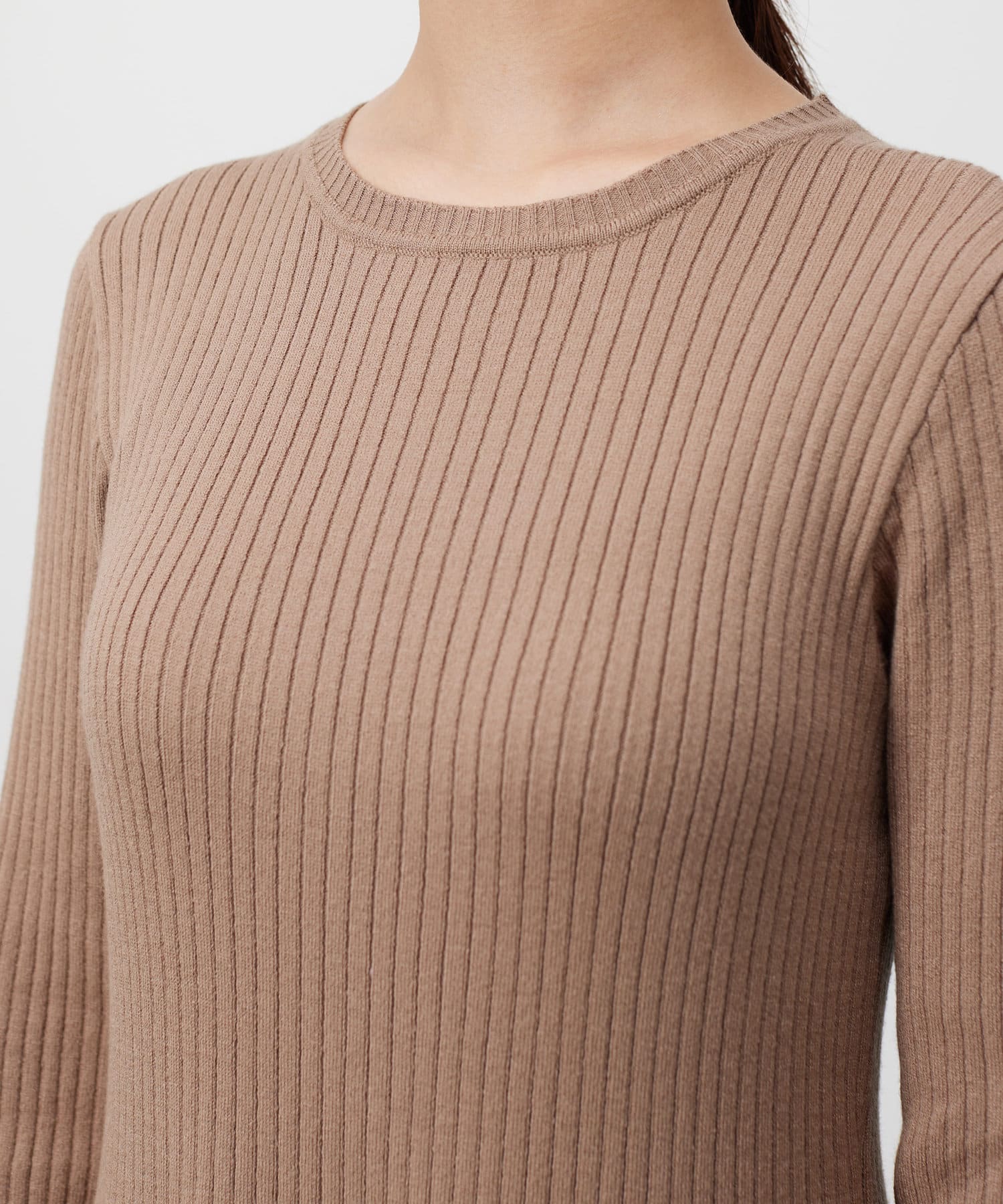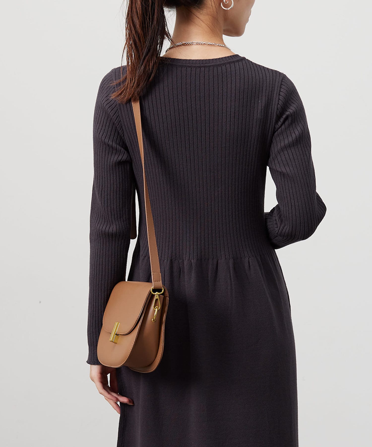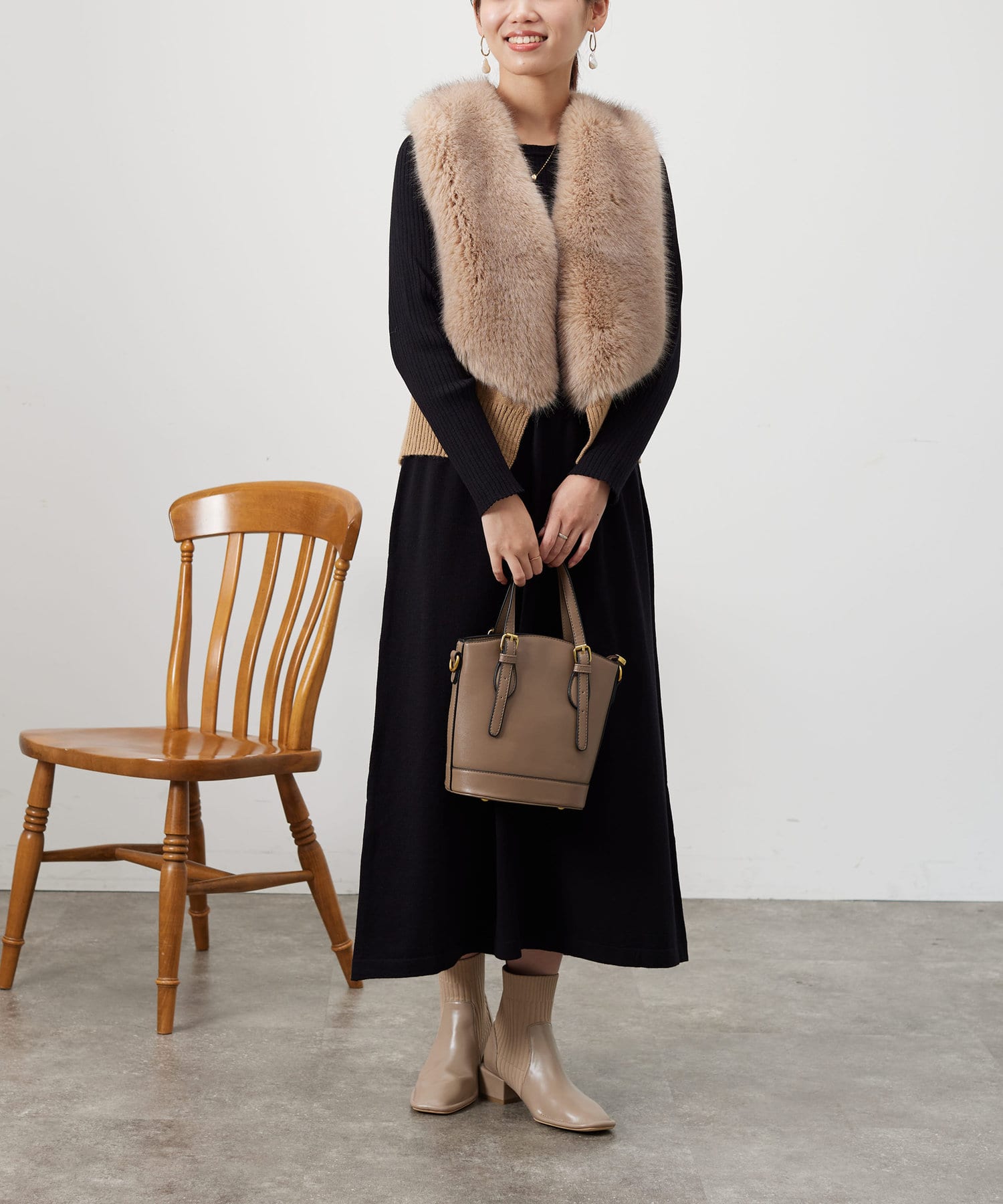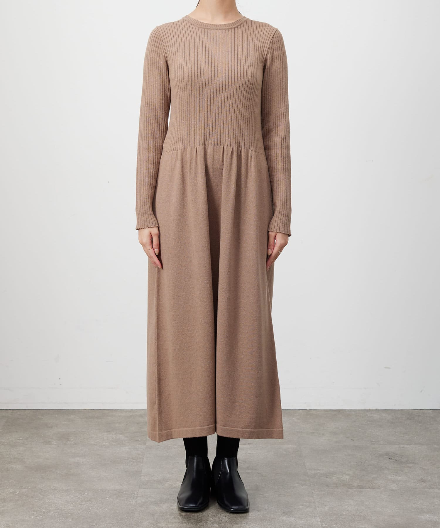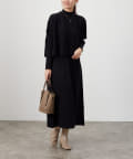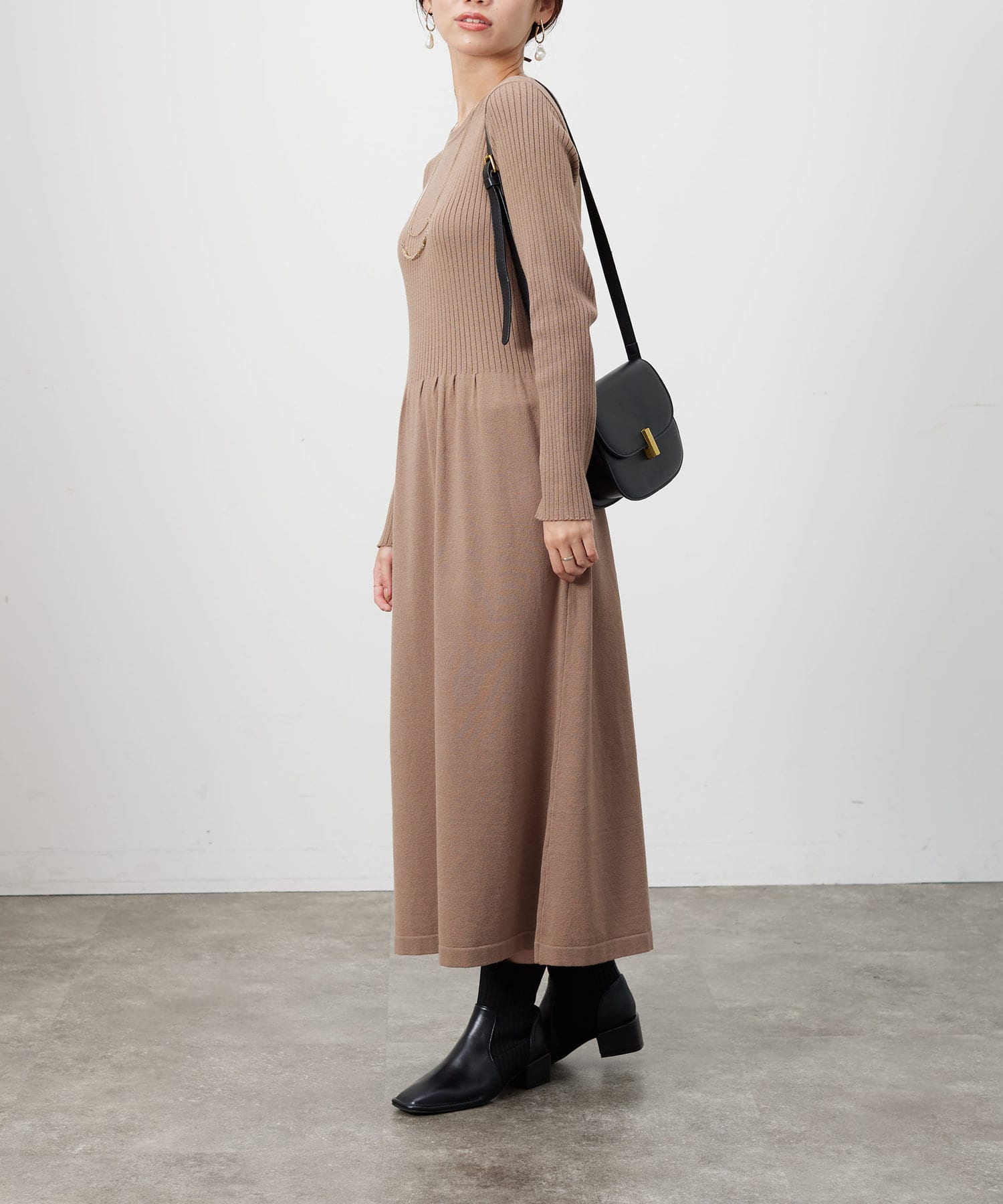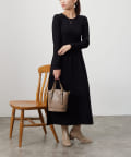 ワンピースはシンプルながらタートルネックと身頃の細リブがすっきりと見せてくれるので、