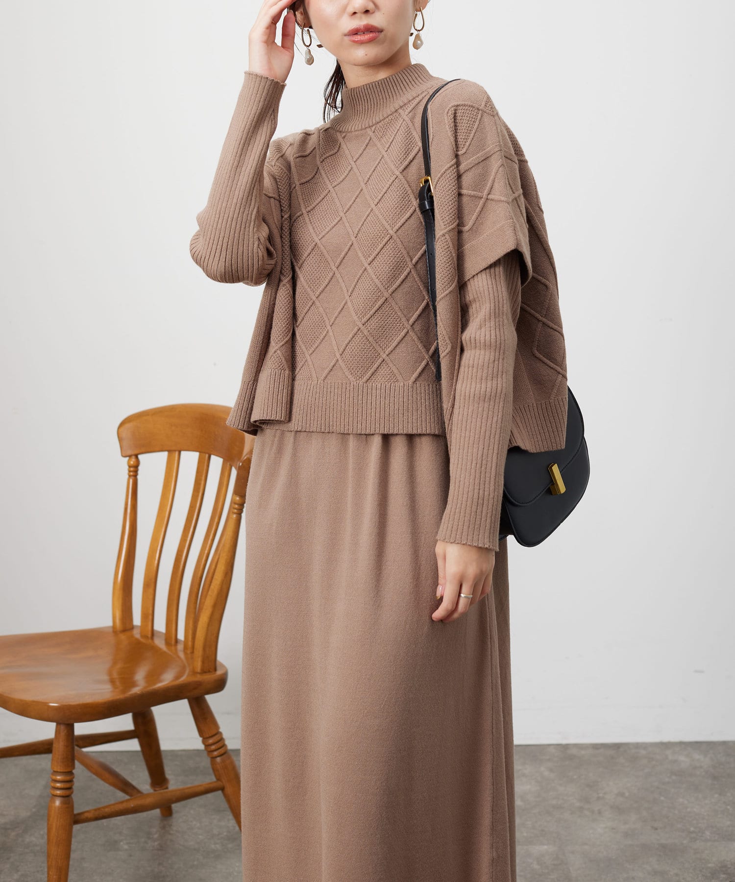 TOP > Chez toi > レディース > ワンピース > ワンピース > 【コスパ最強セットアイテム】ケーブルプルオーバー×ニットワンピース