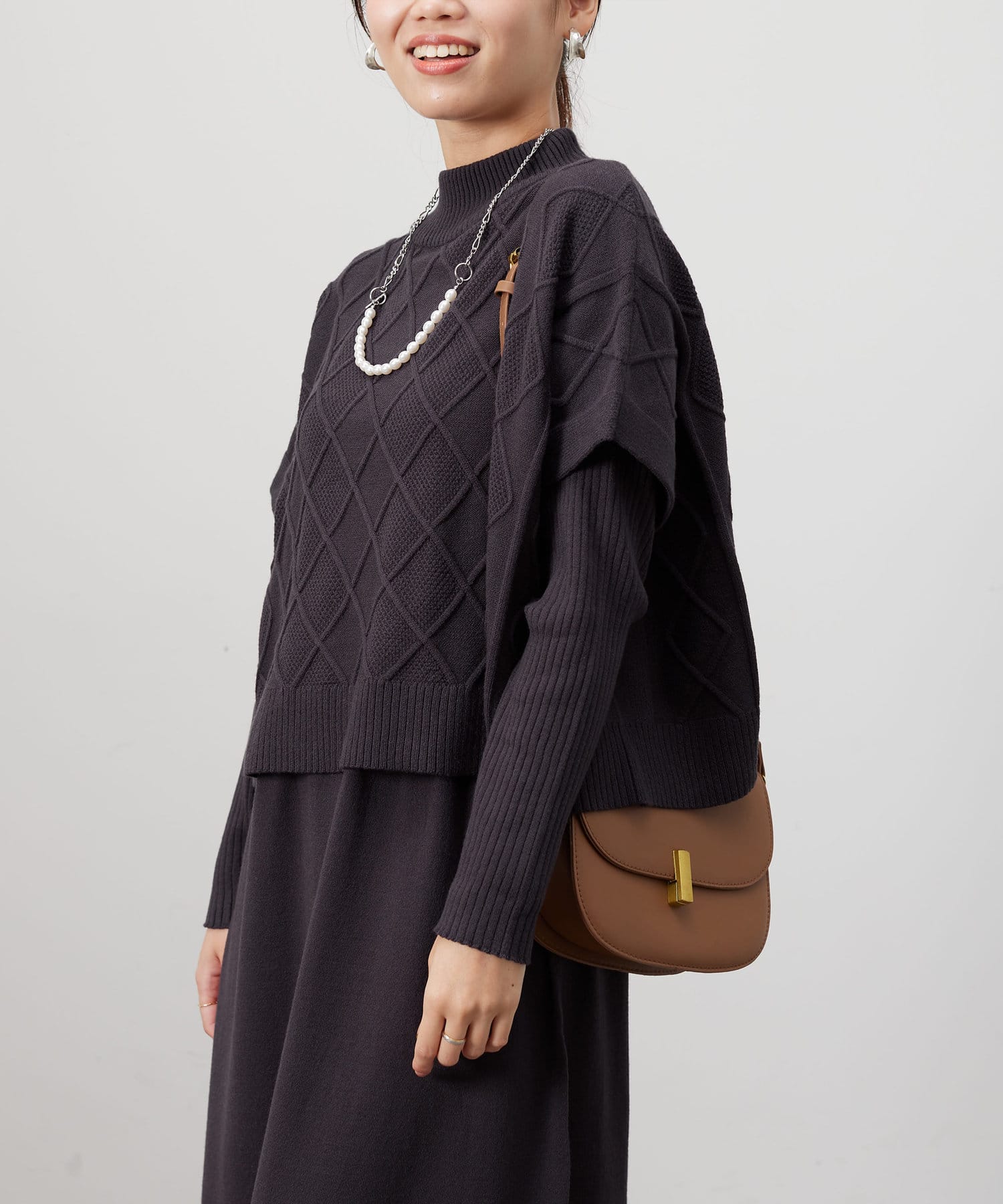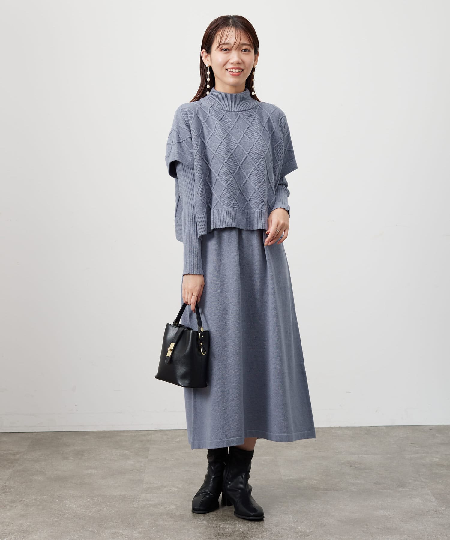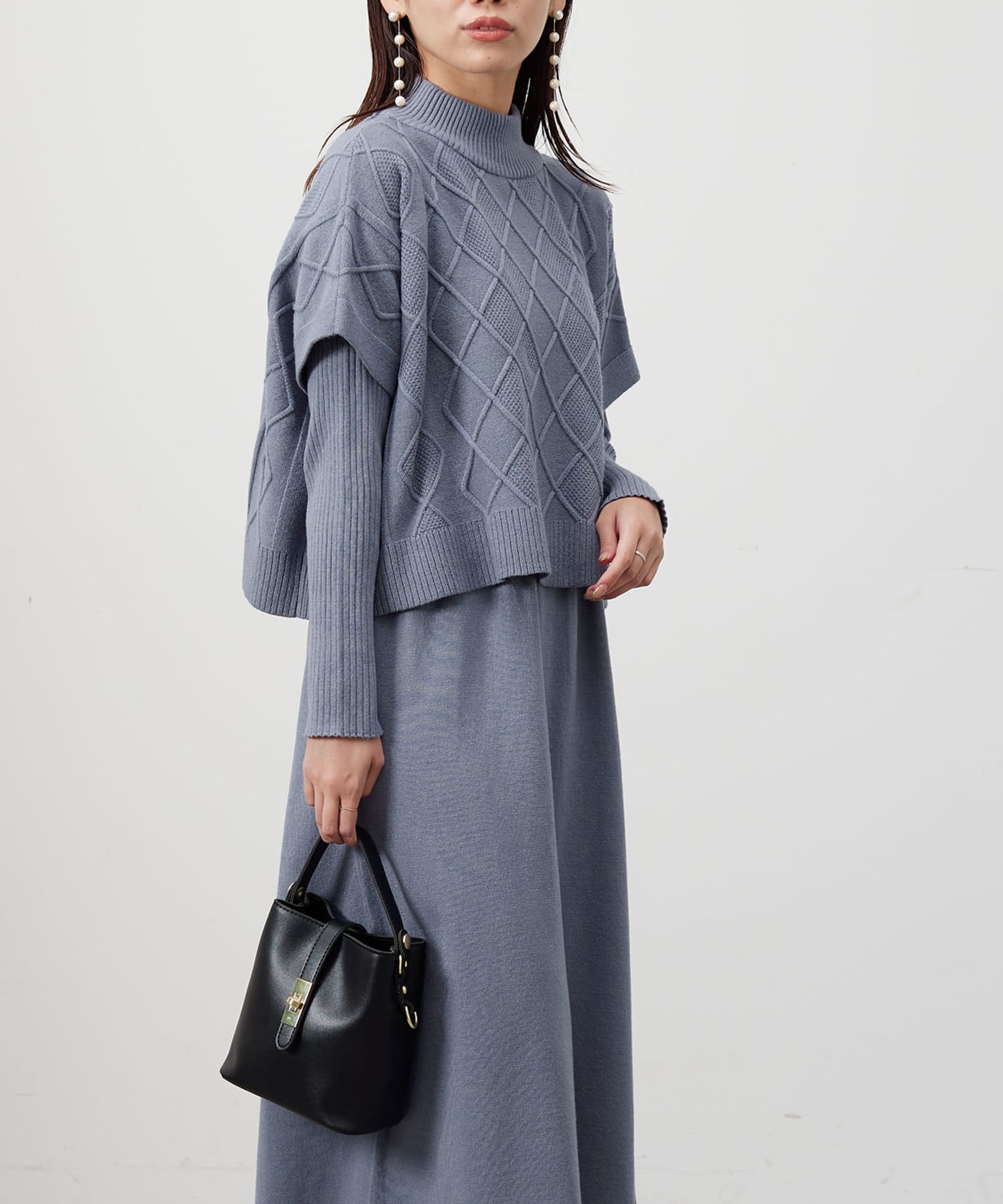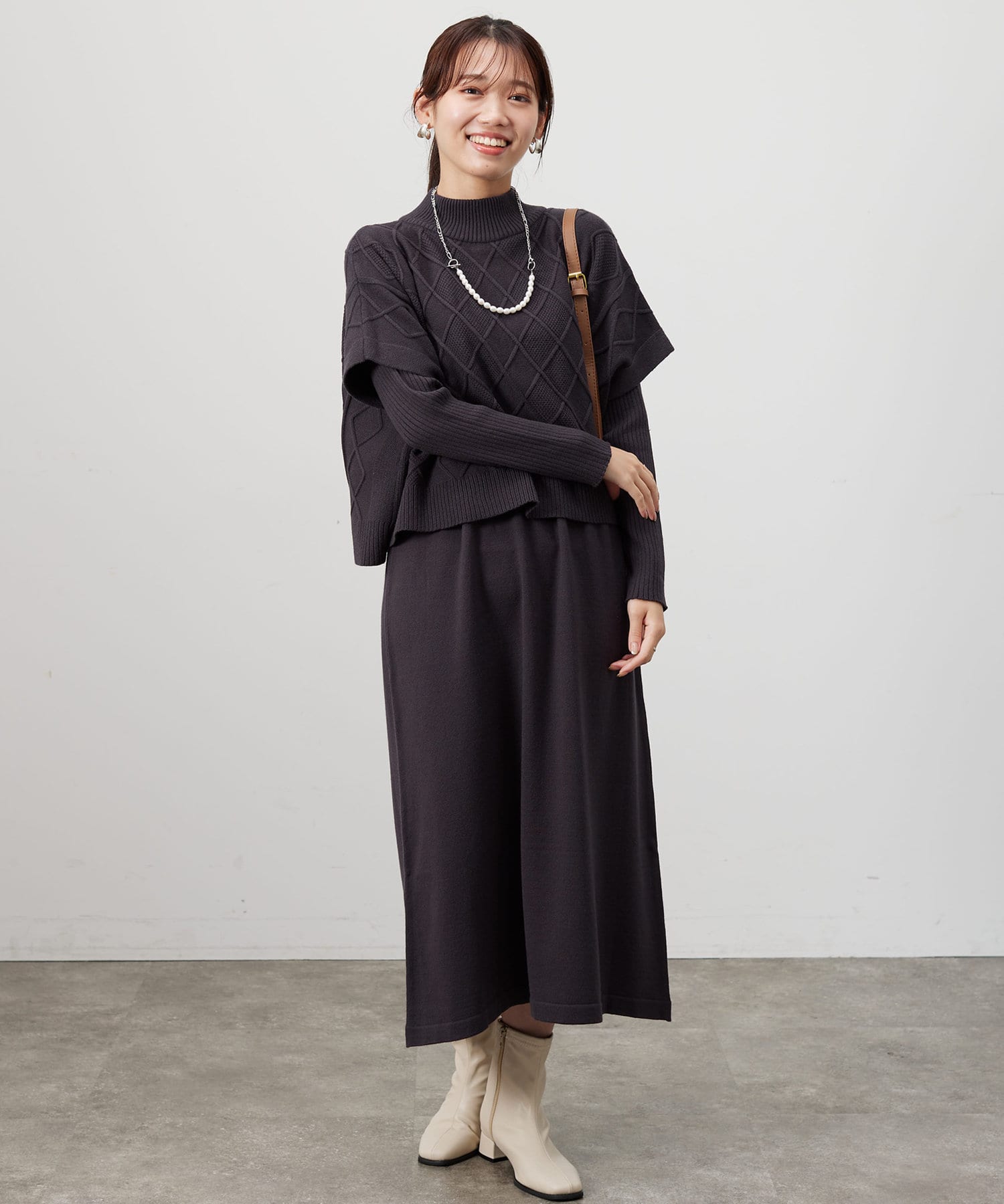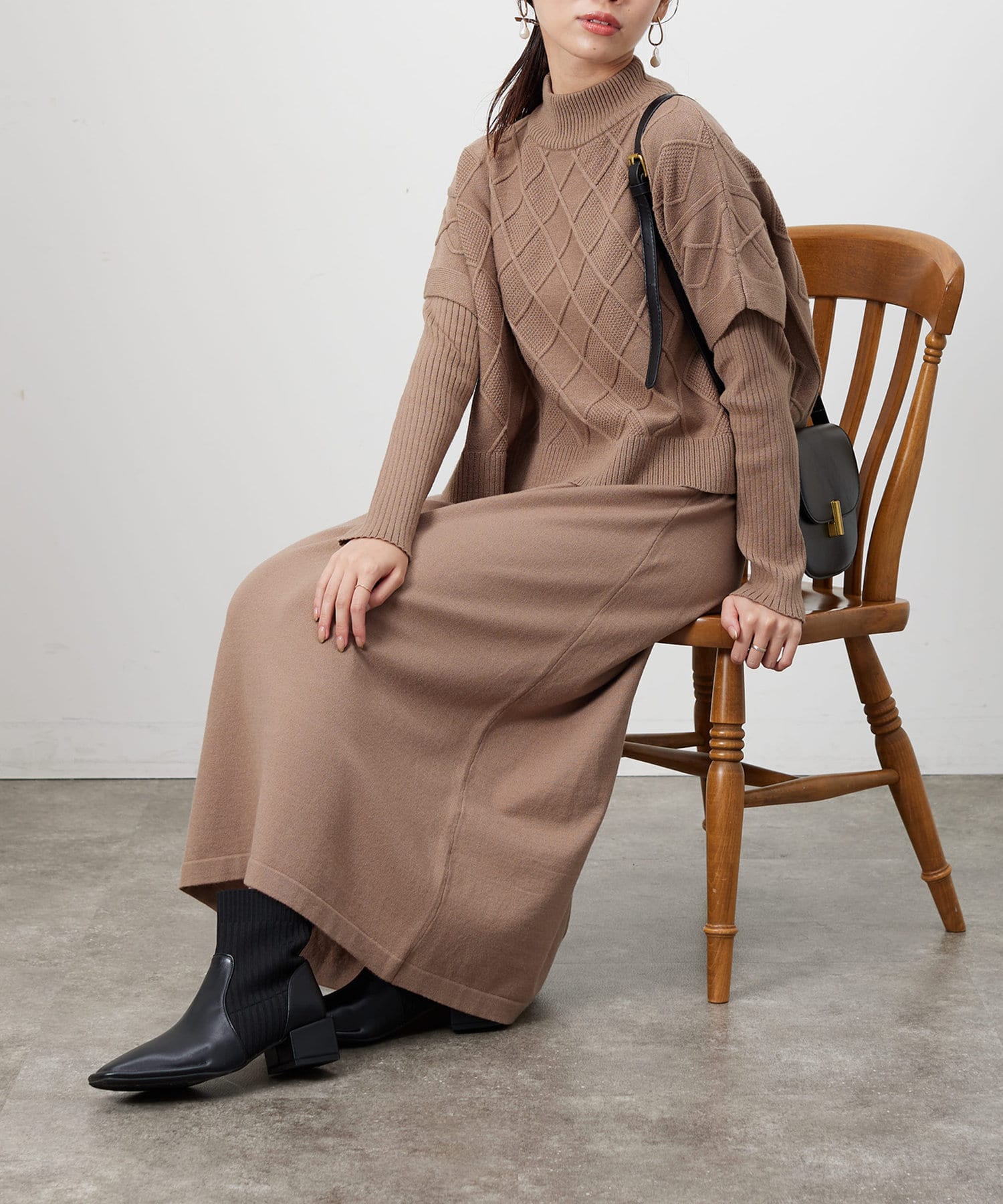 • Chez toi(シェトワ) 【コスパ最強セットアイテム】ケーブルプルオーバー×ニットワンピース