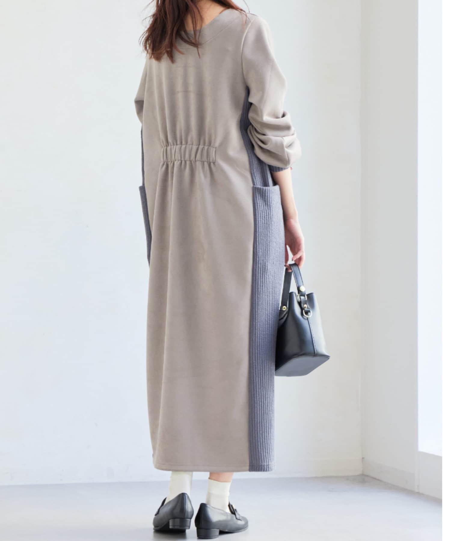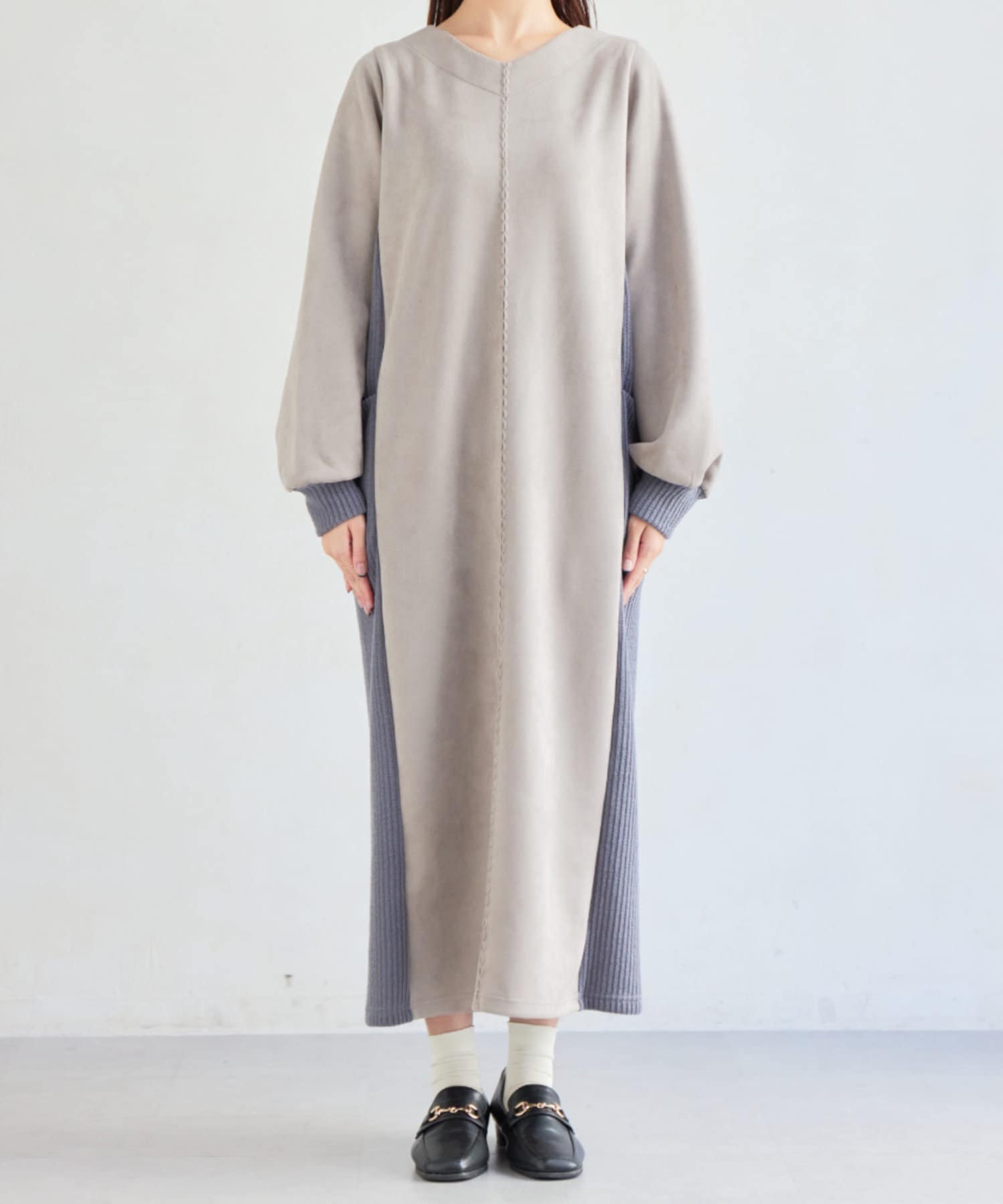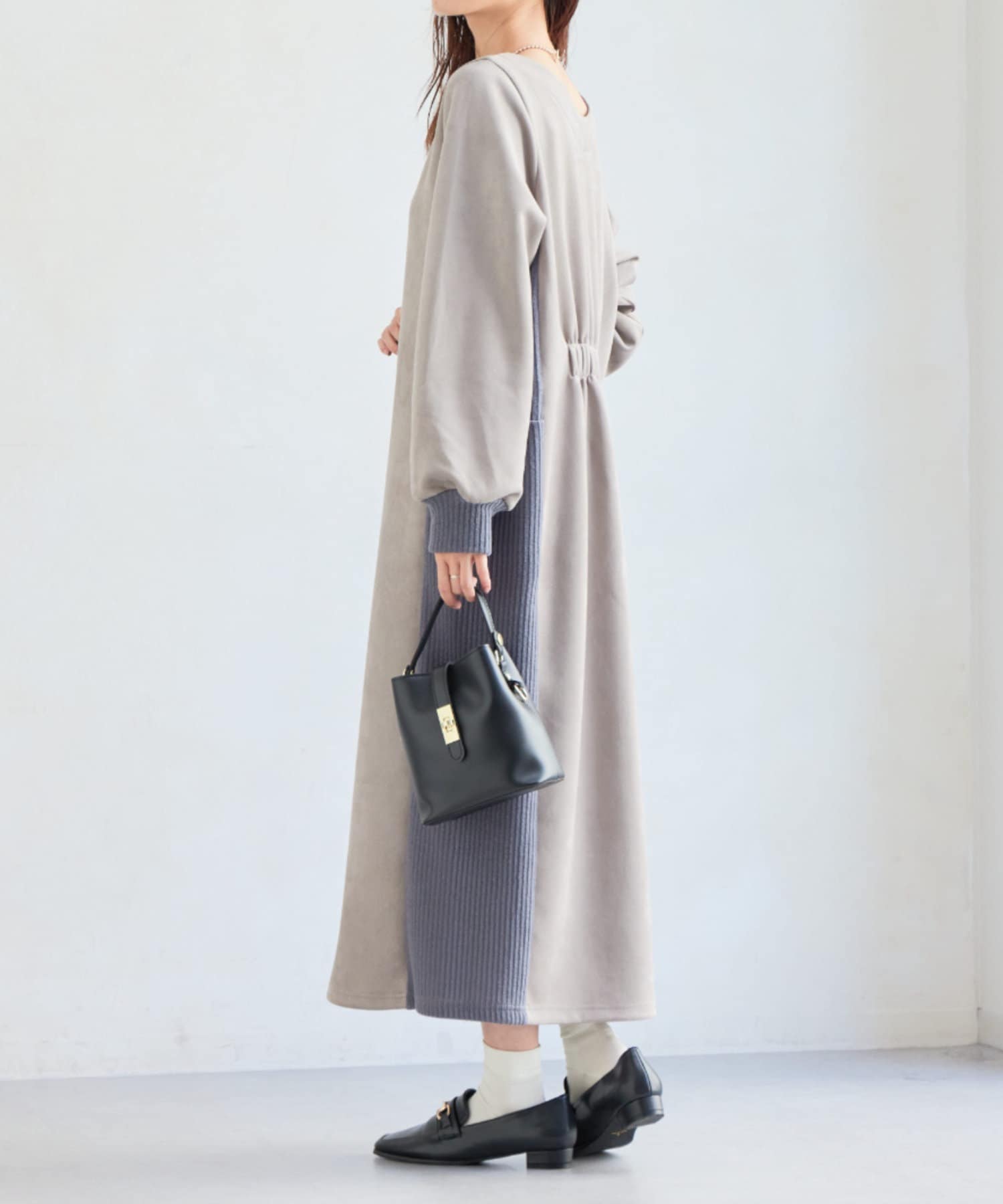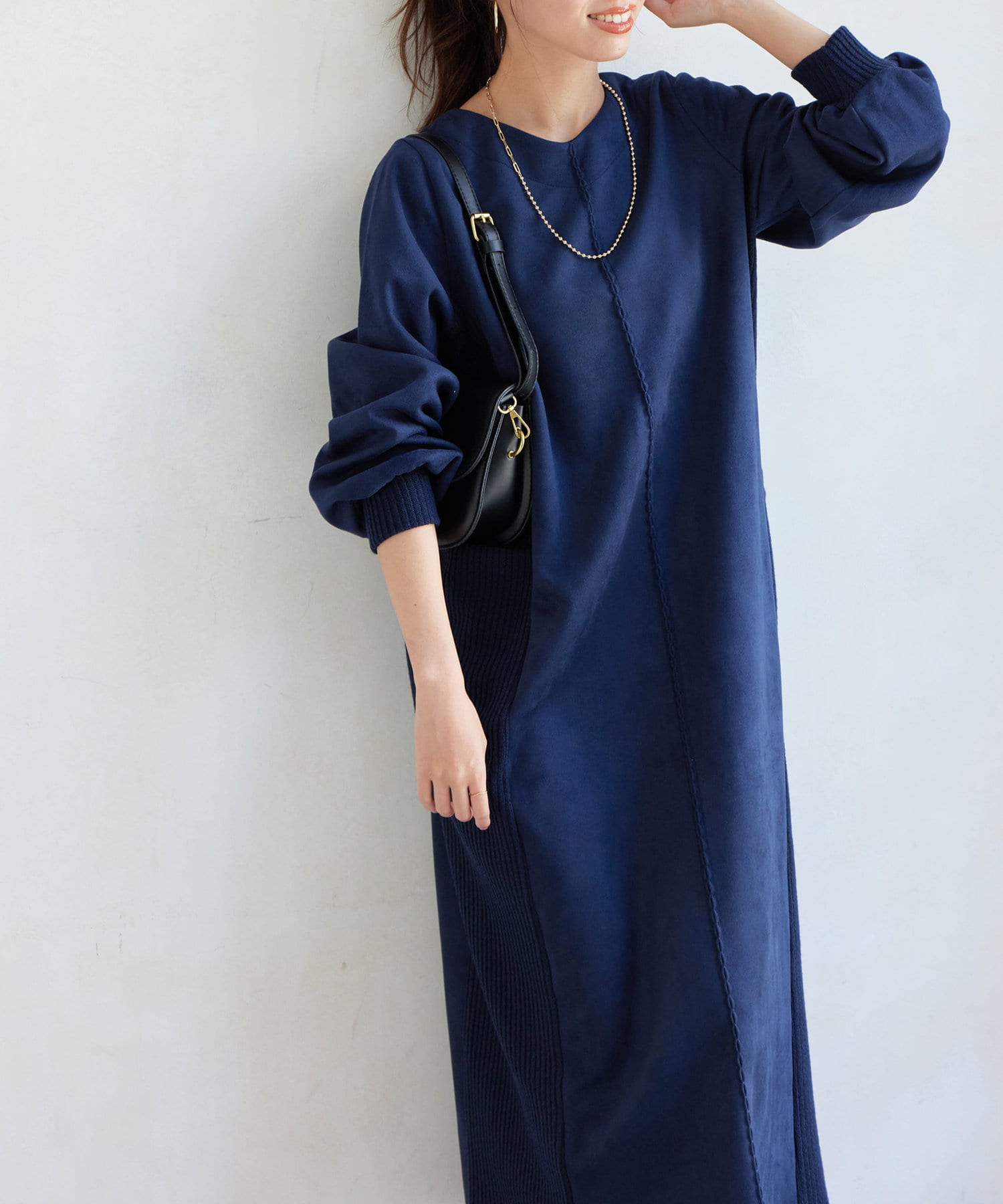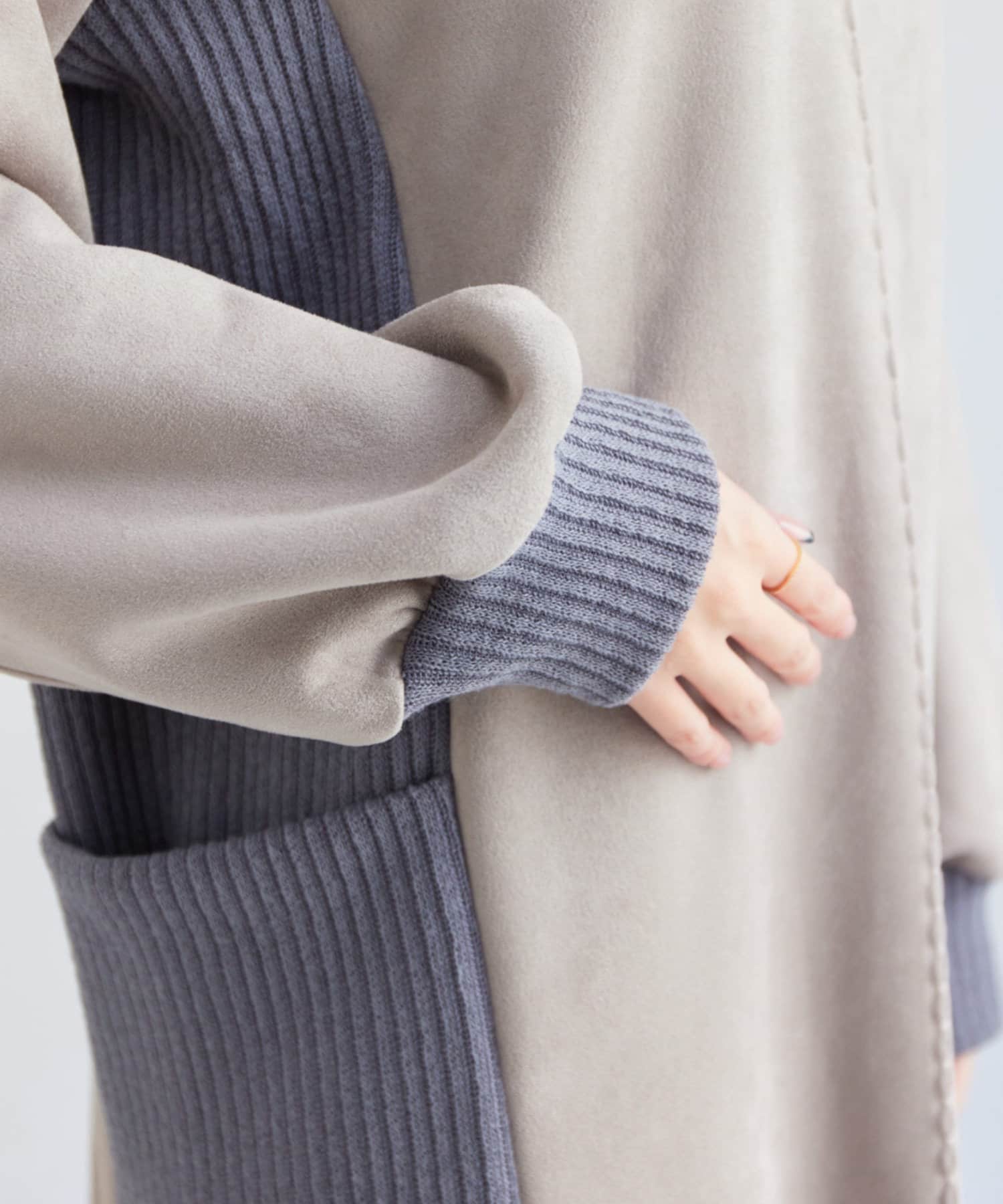 定番のスエードとカットリブを組み合わせた異素材ドッキングの