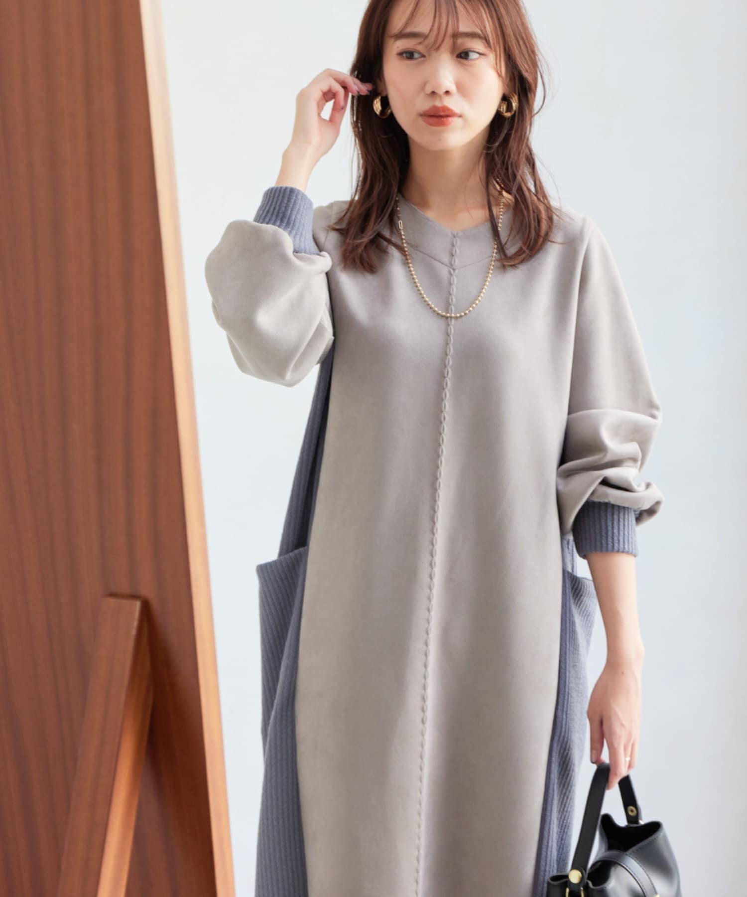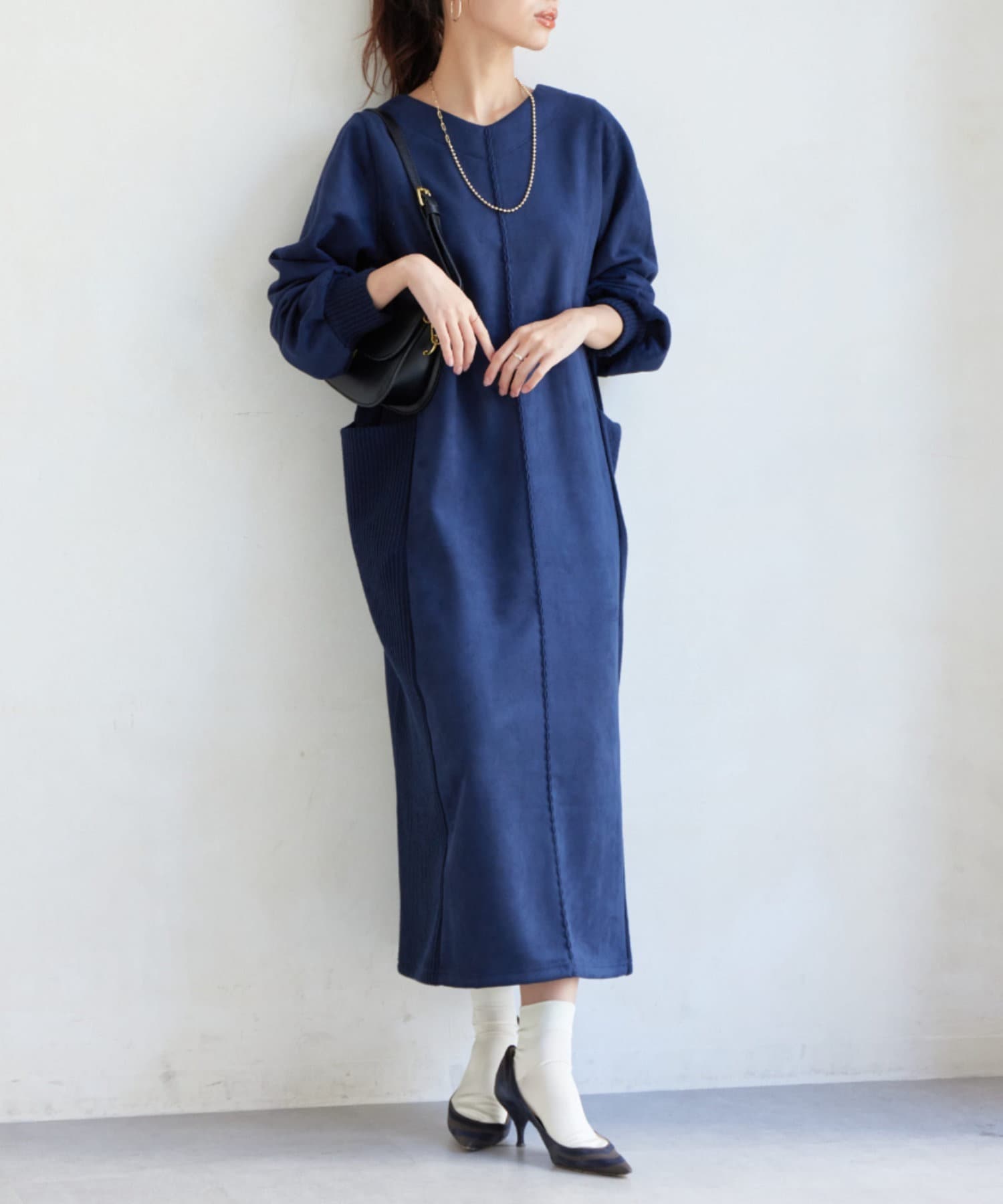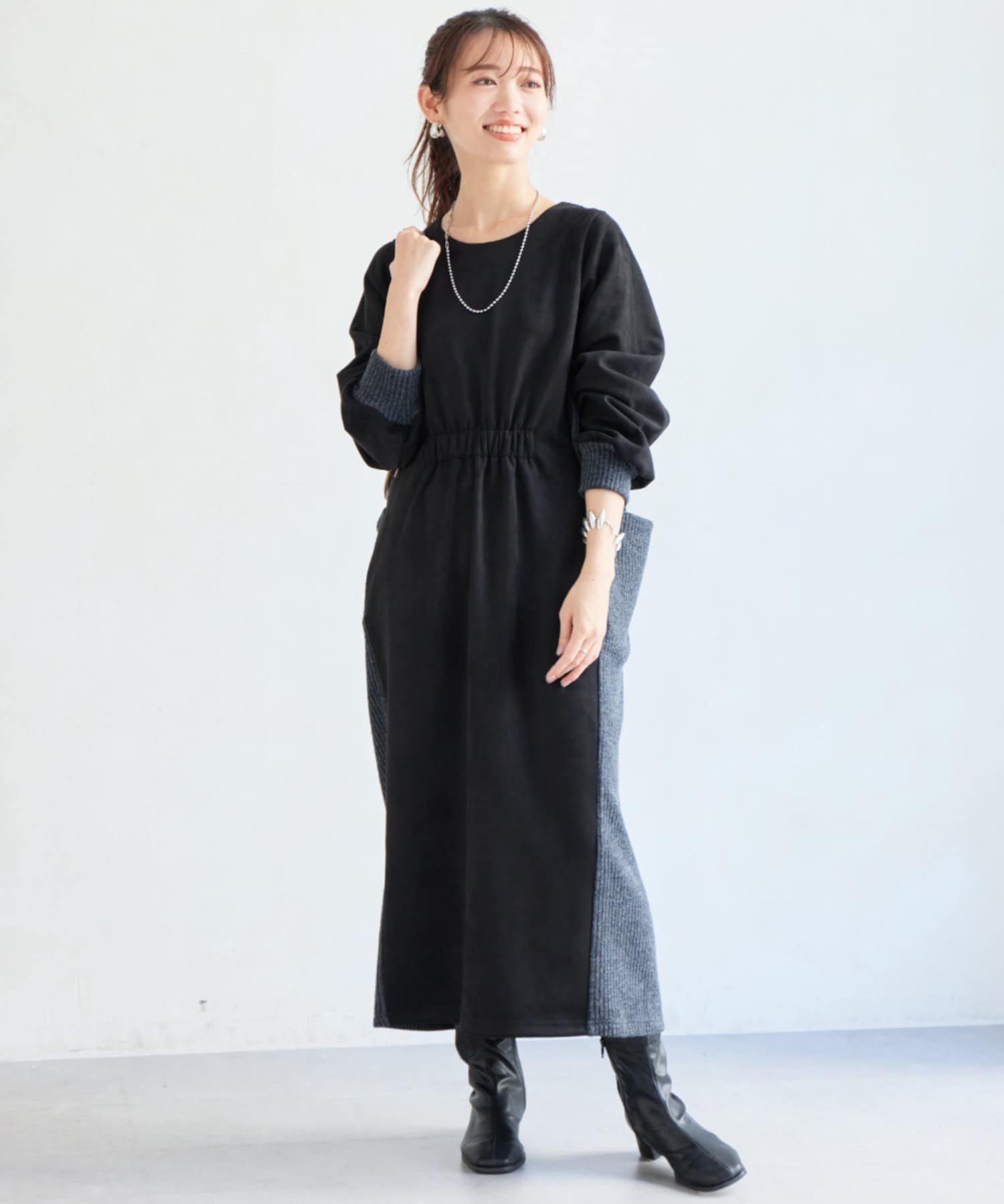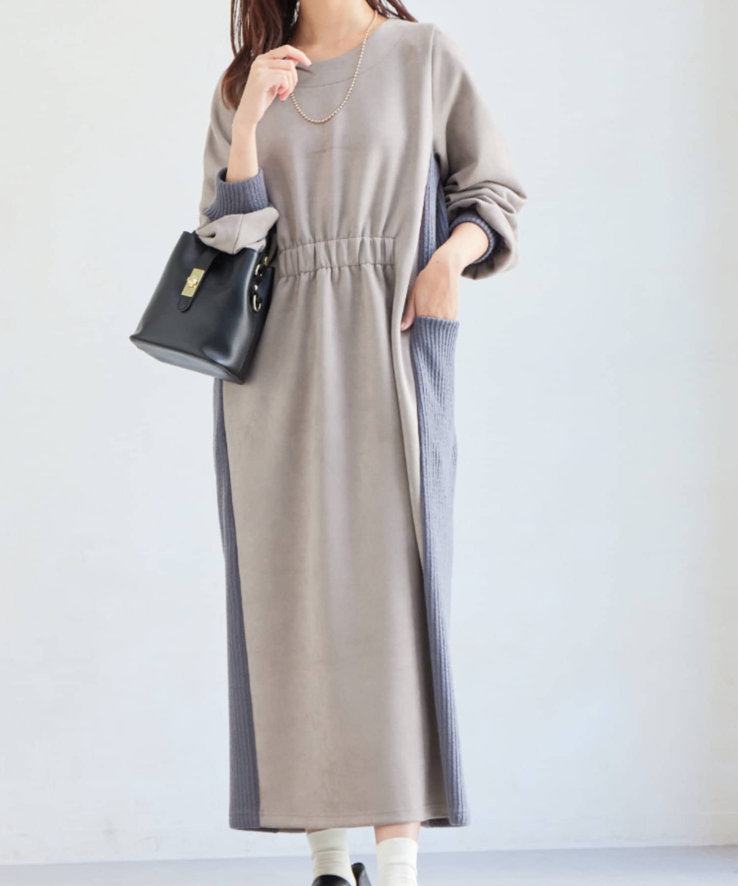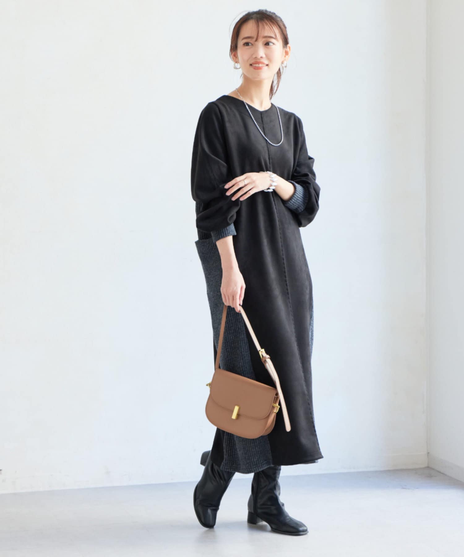 定番のスエードとカットリブを組み合わせた異素材ドッキングの