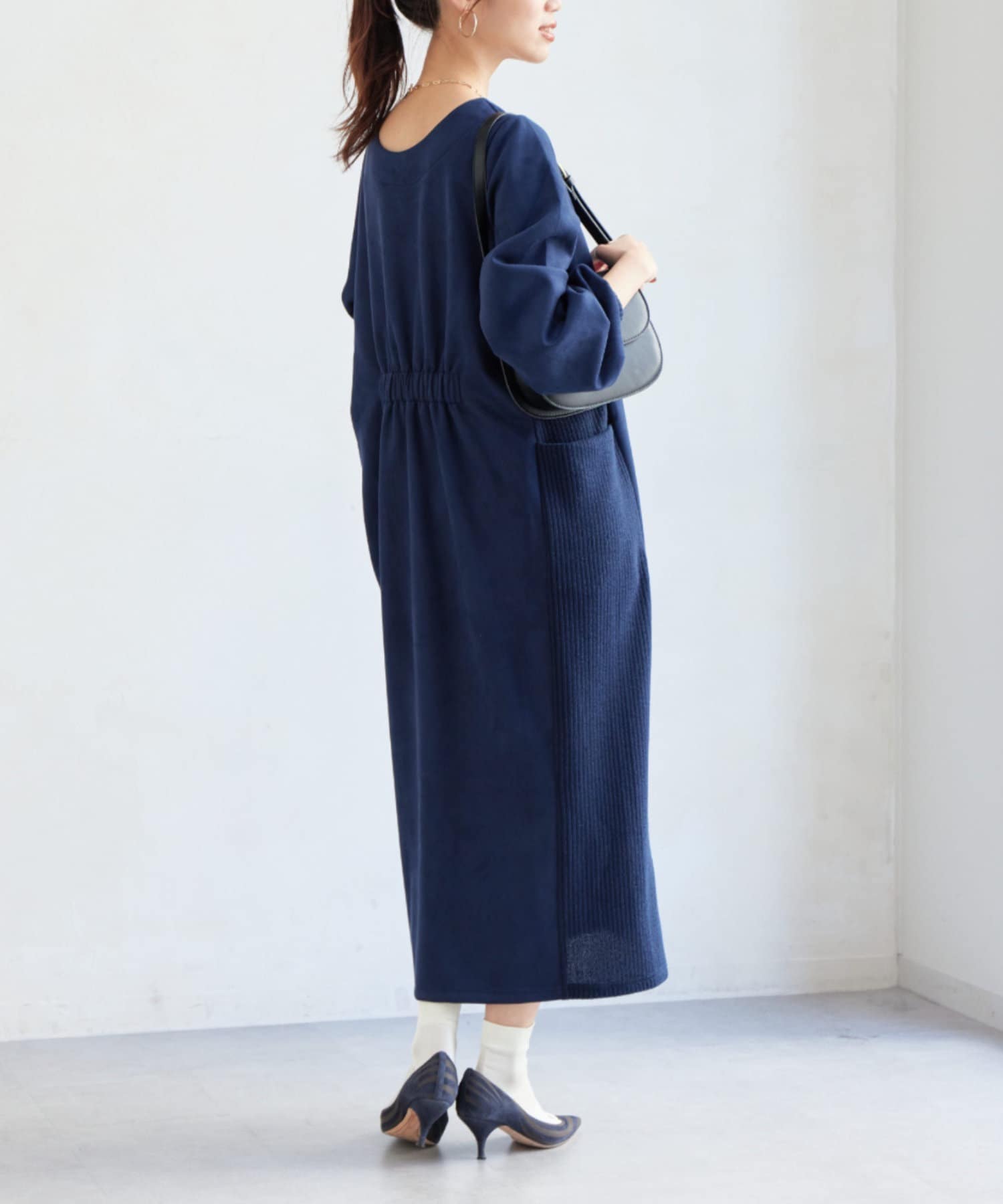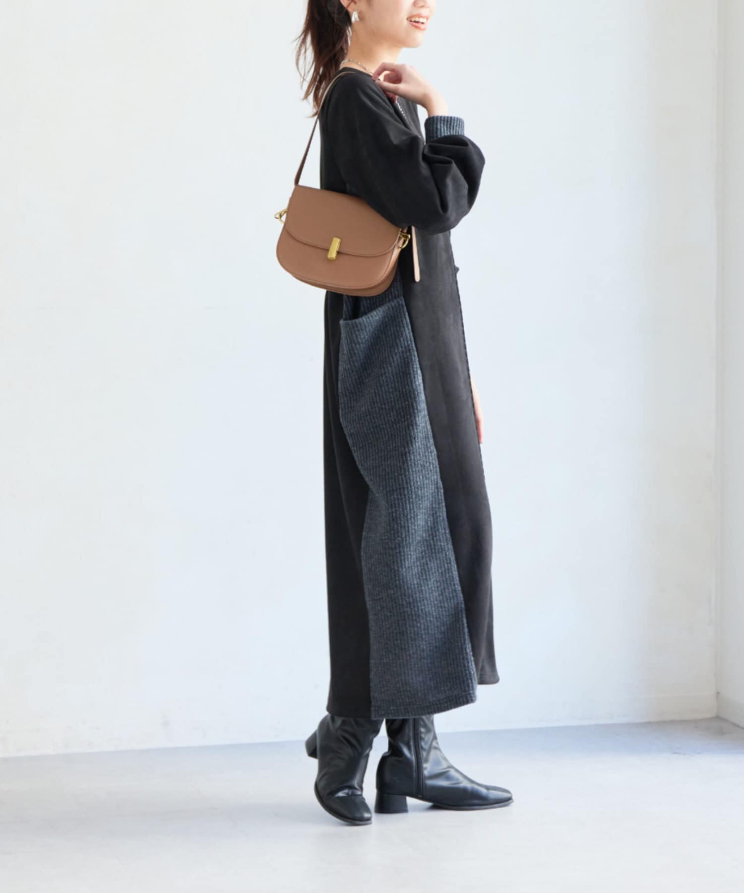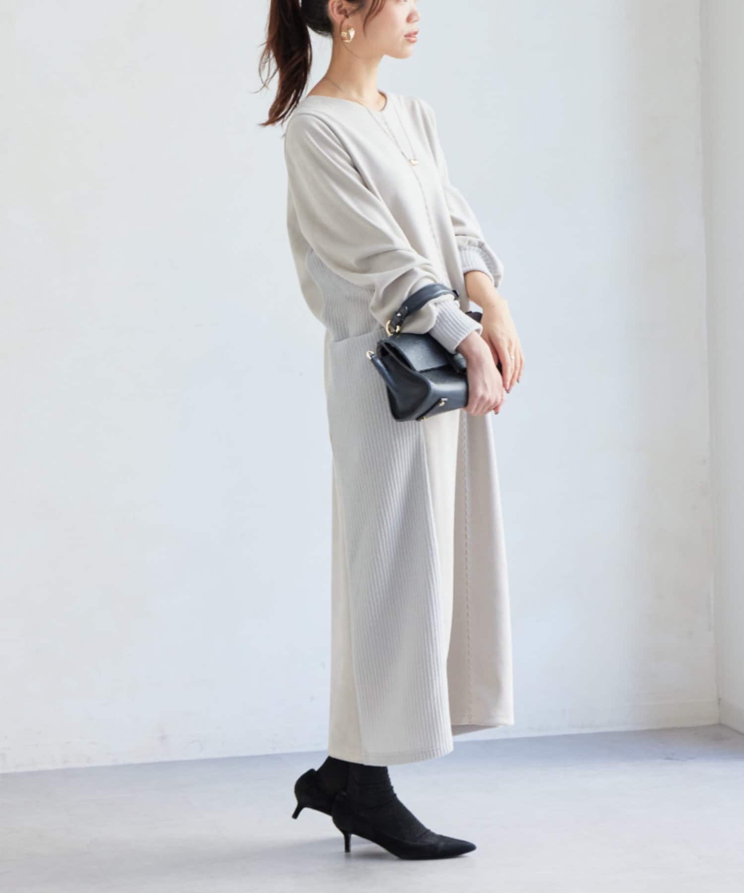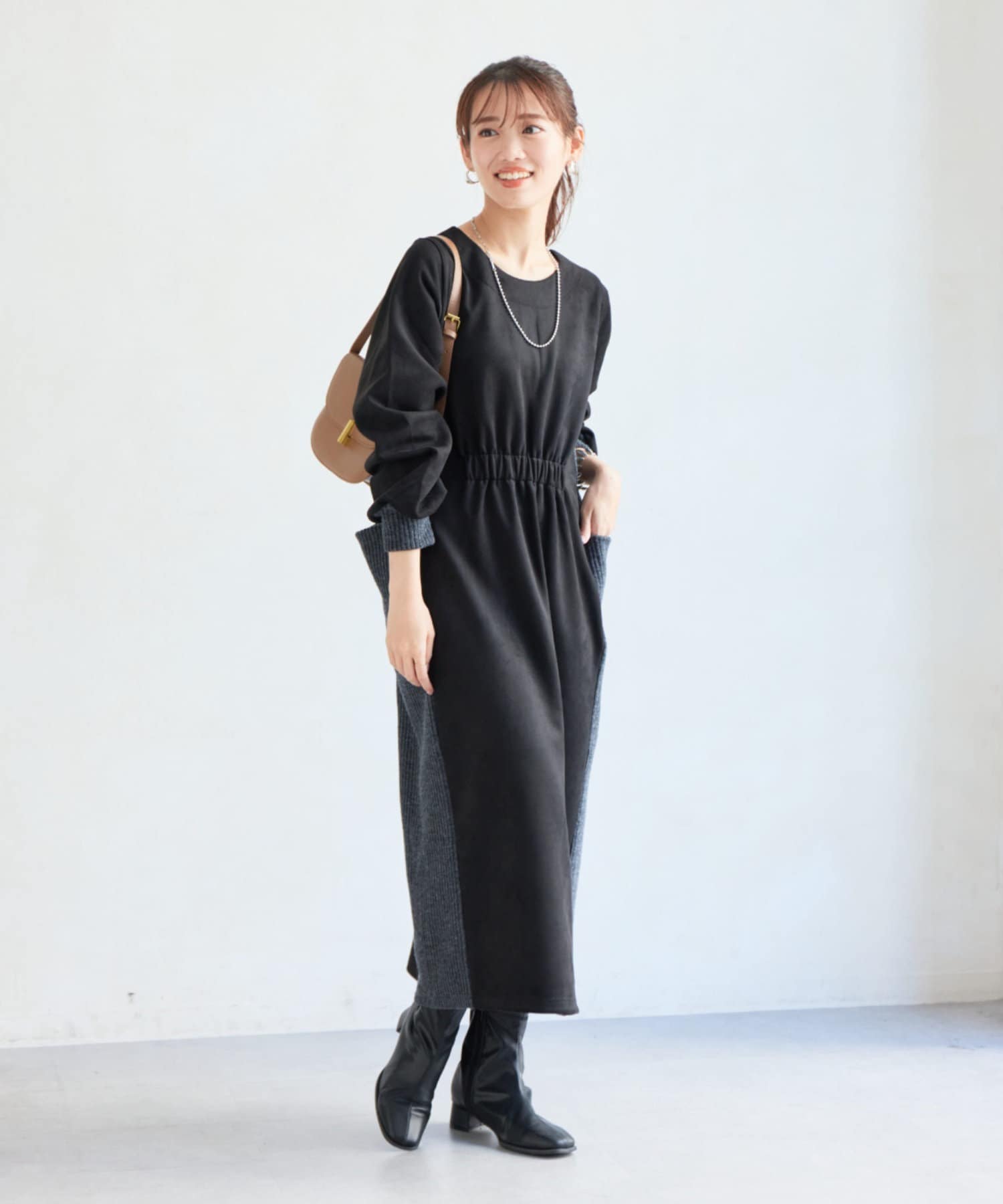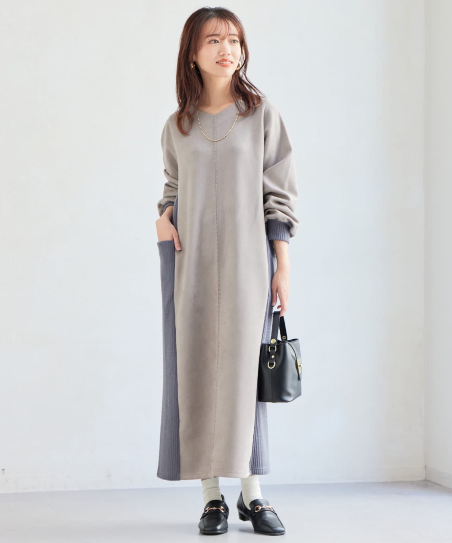 定番のスエードとカットリブを組み合わせた異素材ドッキングの