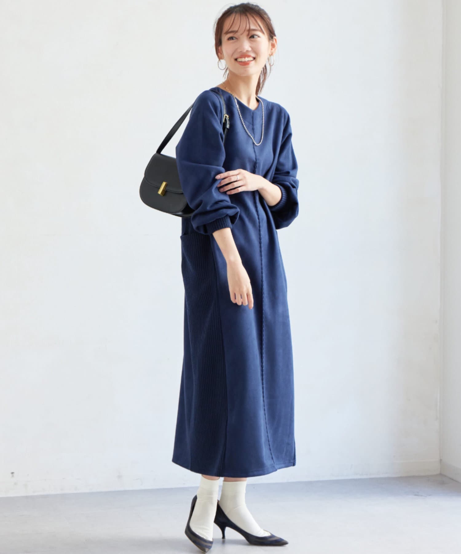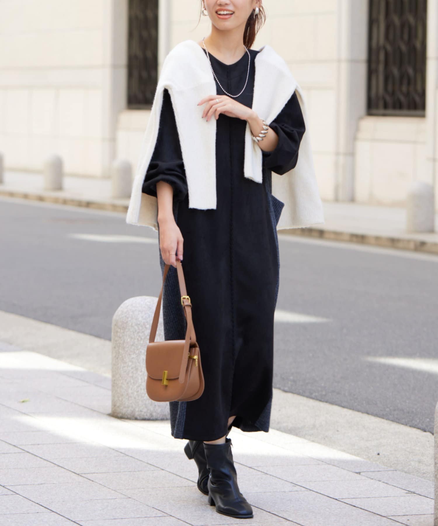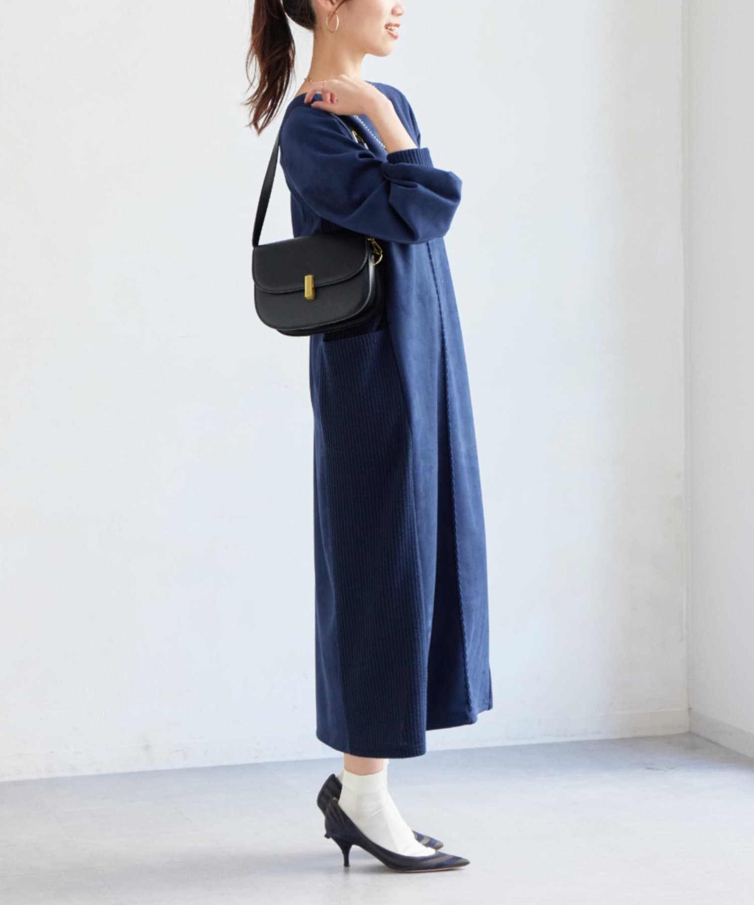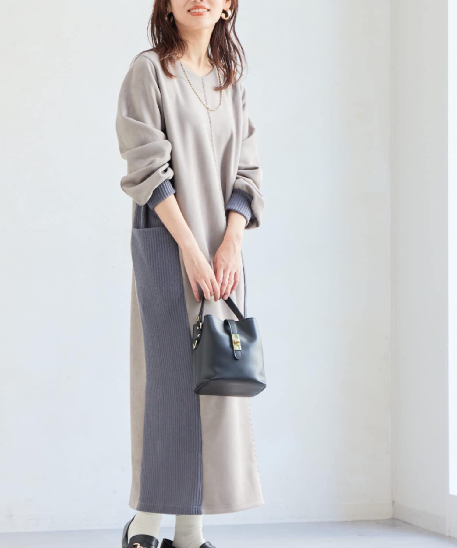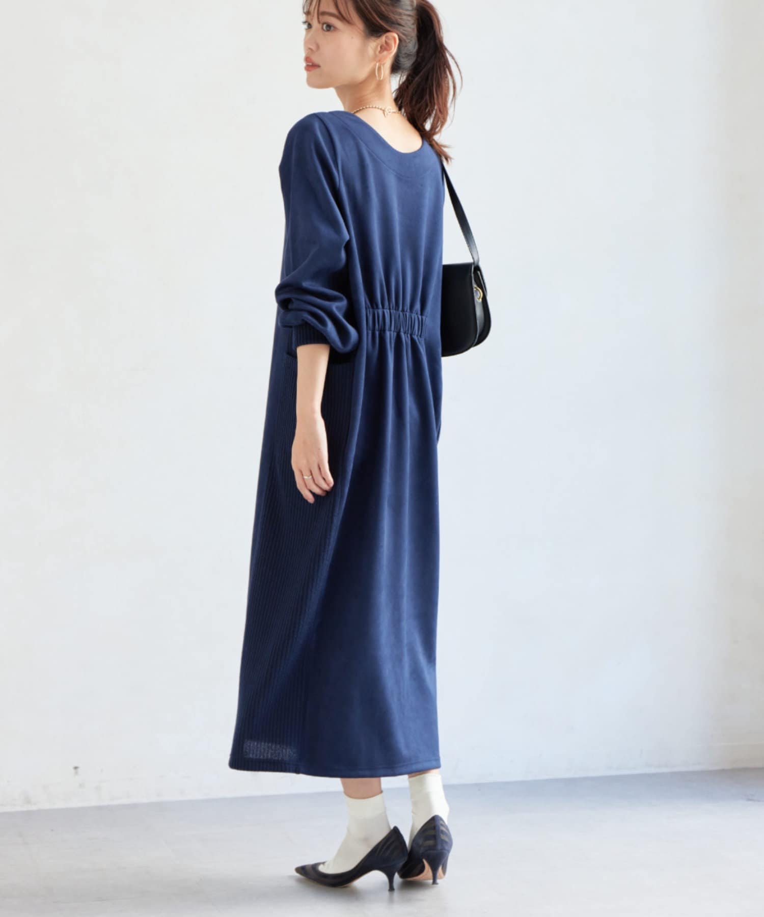 定番のスエードとカットリブを組み合わせた異素材ドッキングの