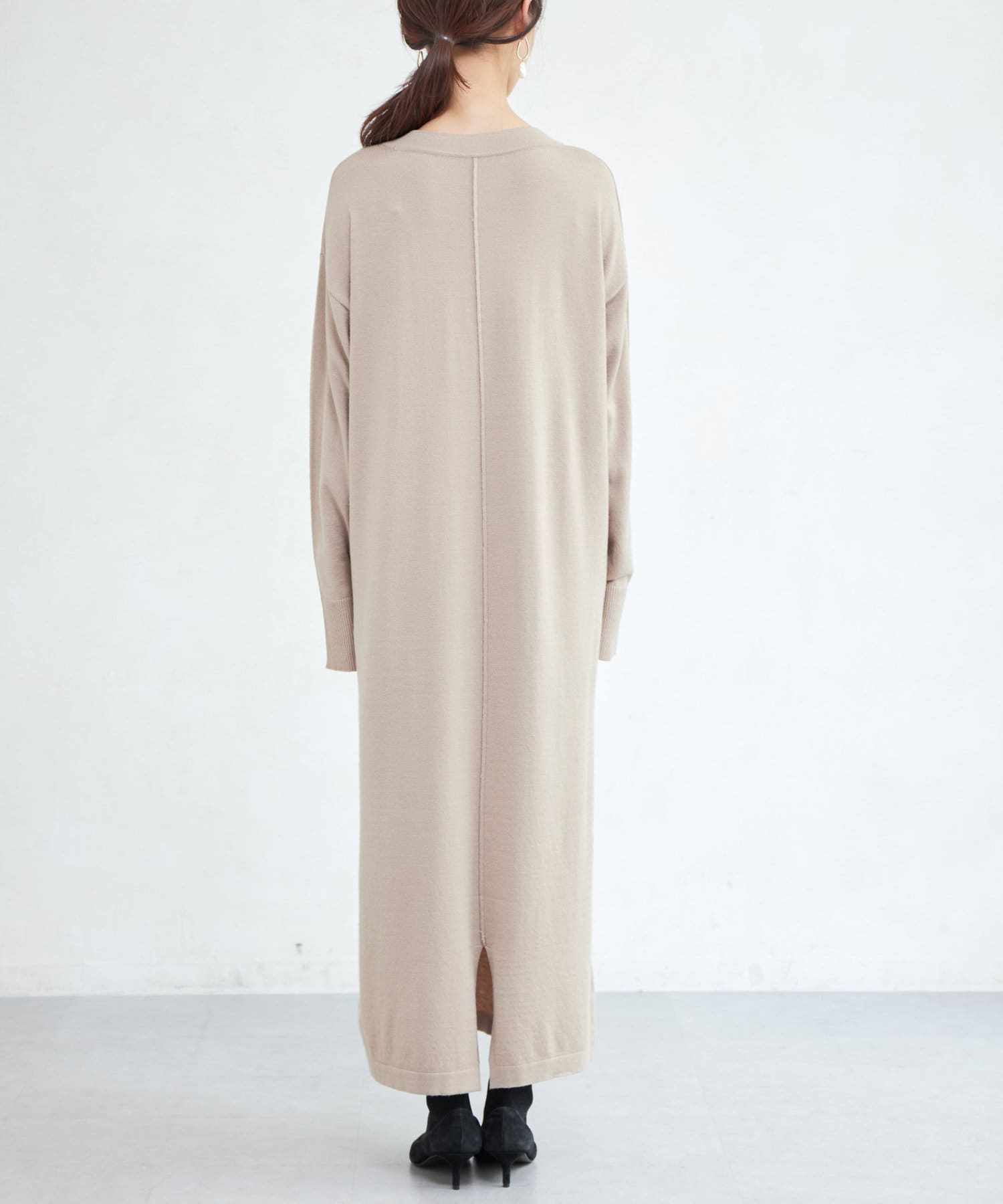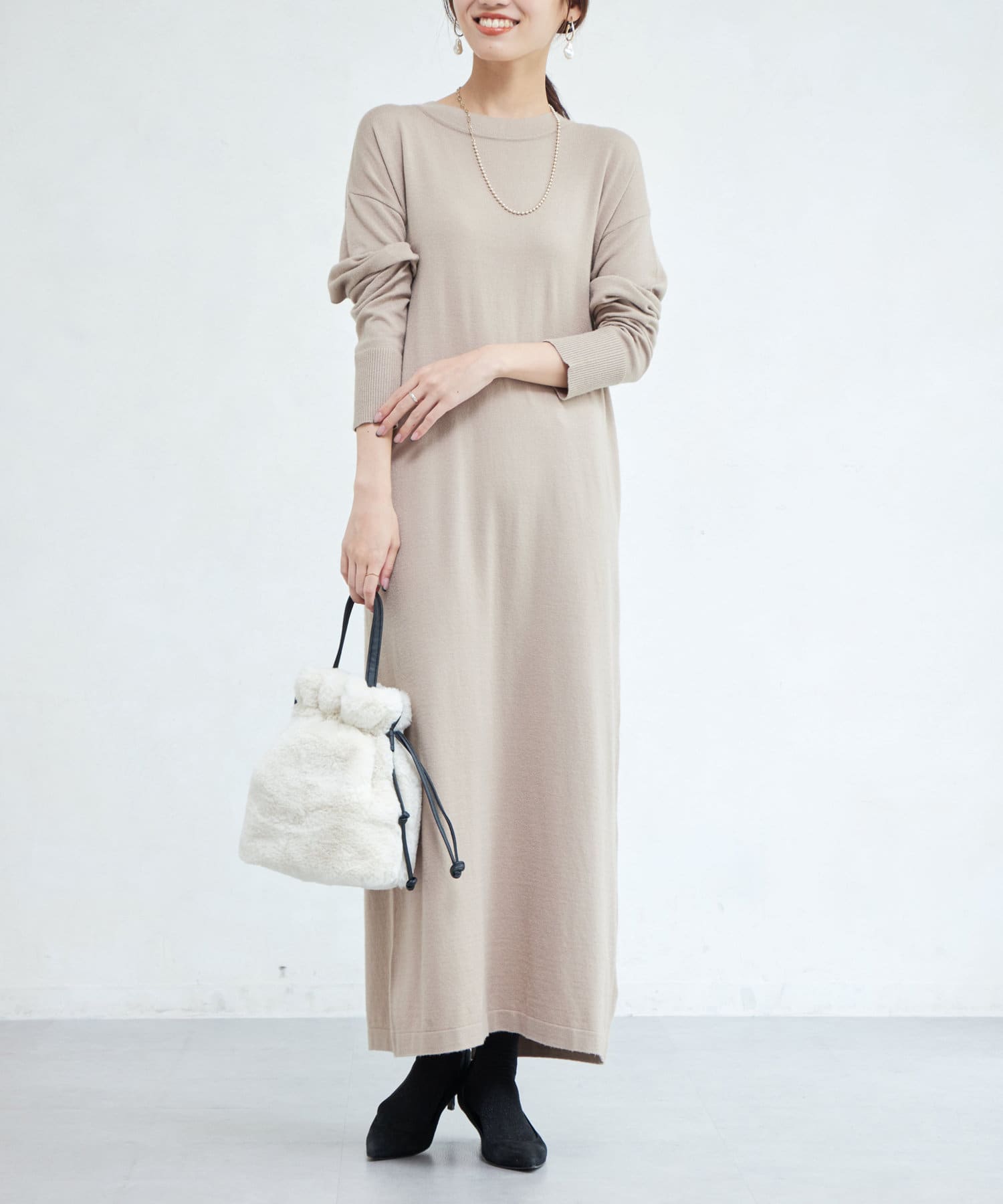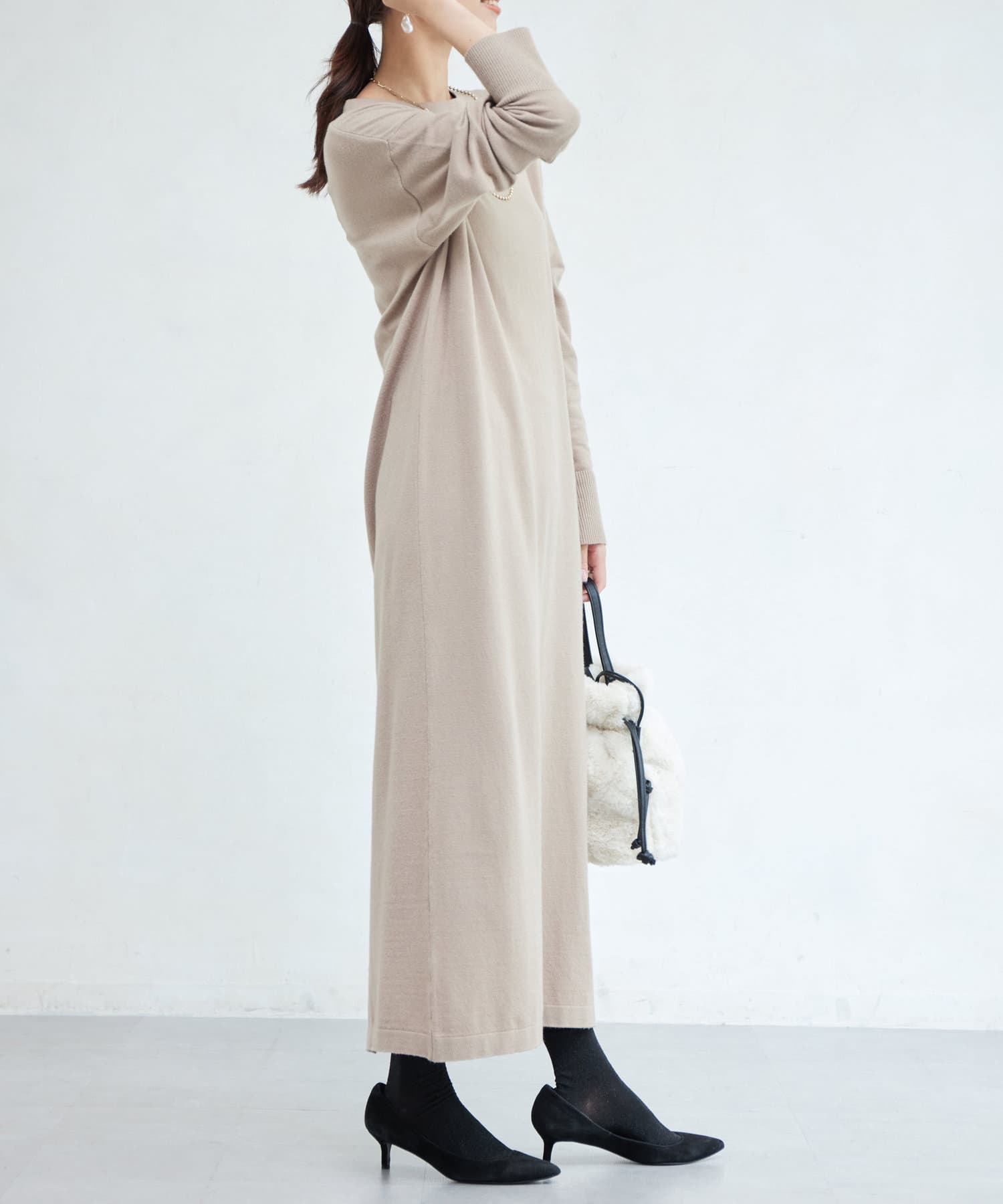 体のラインを強調しすぎずきれいなラインのワンピース。