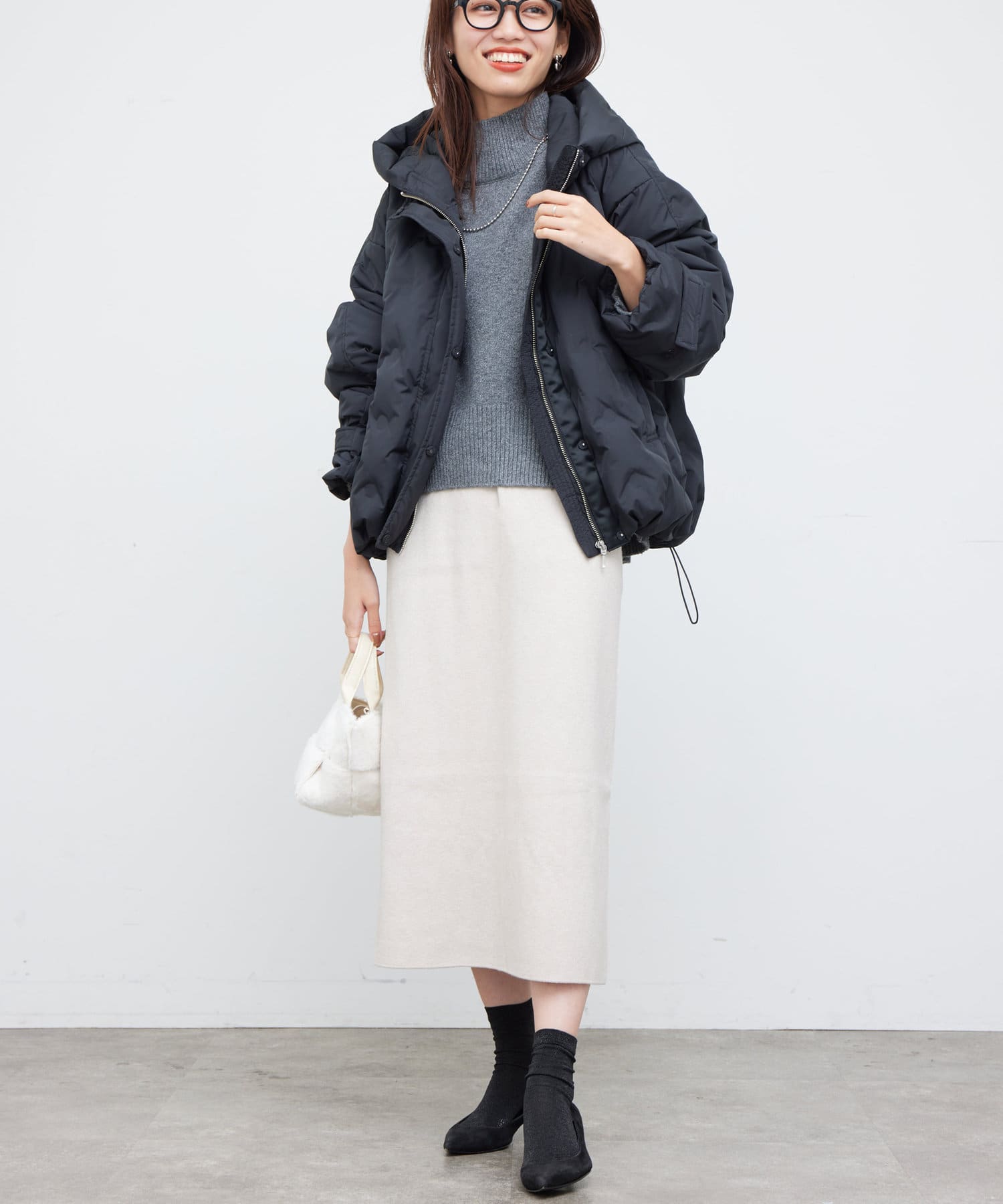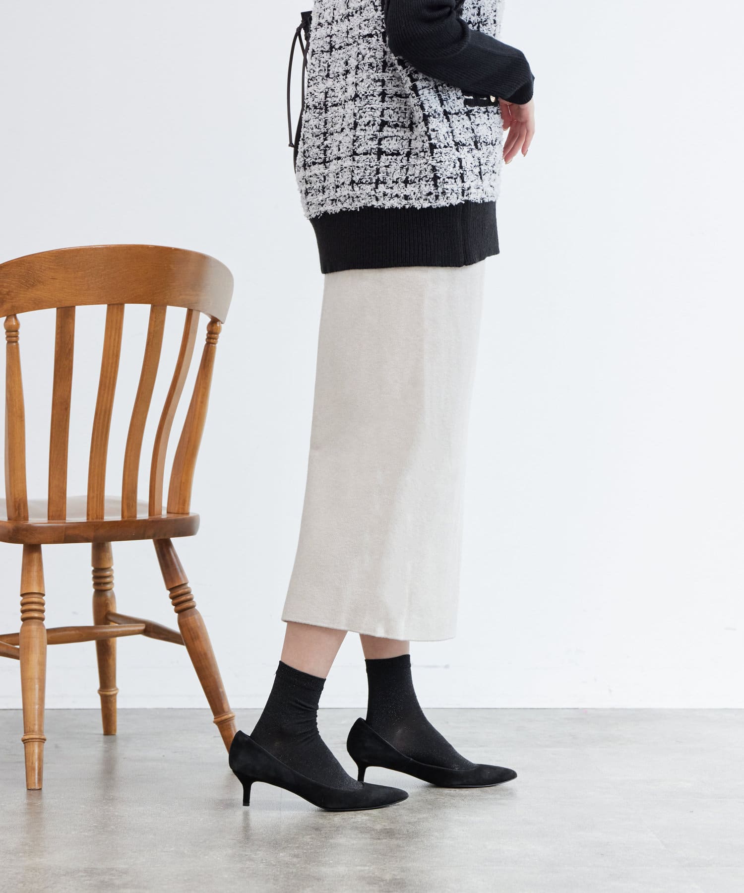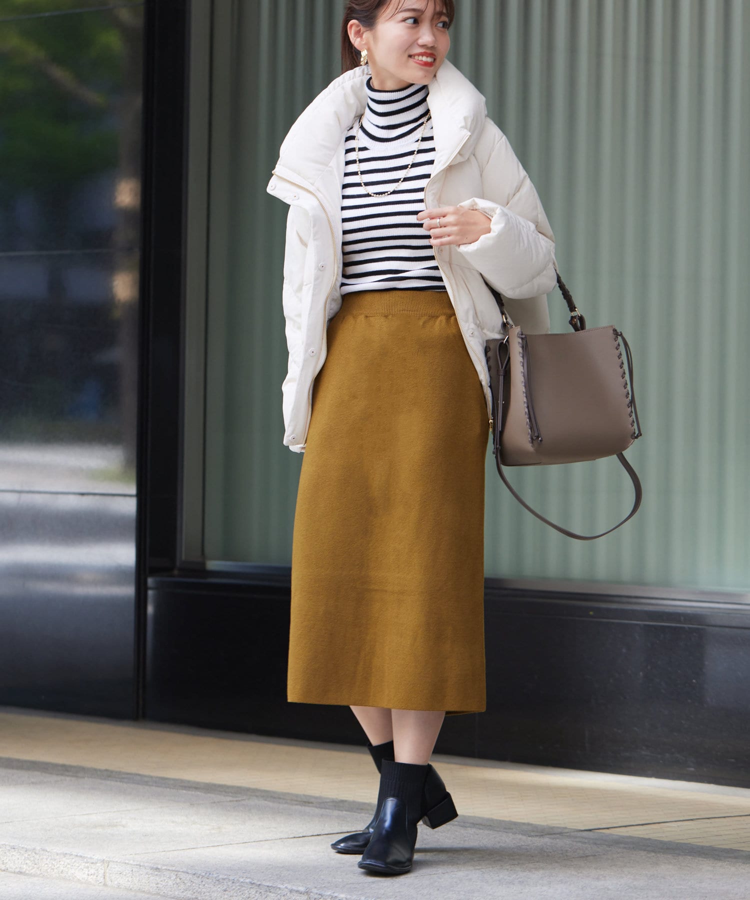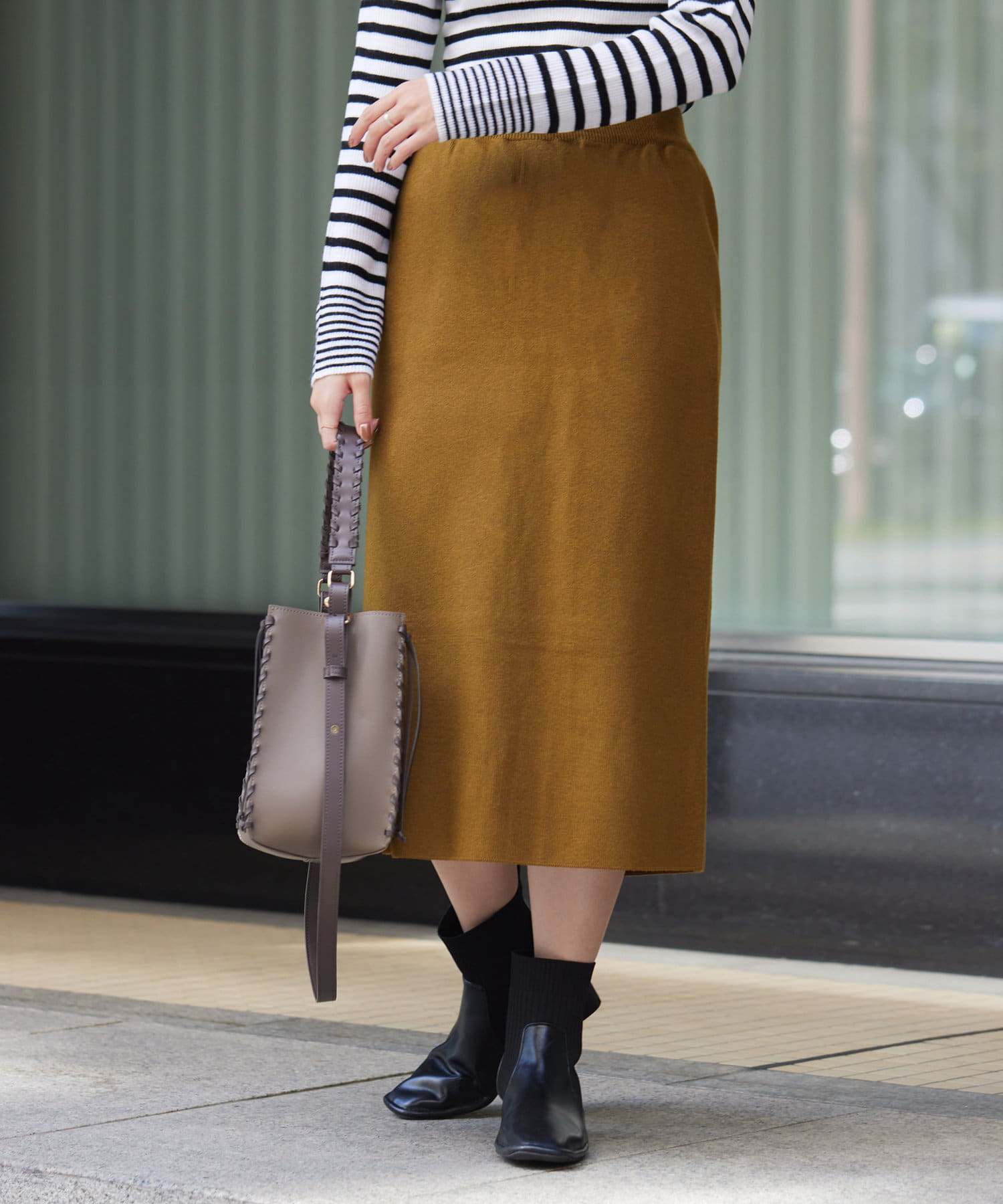 今季注目のナロースカート。膝下で大人っぽく