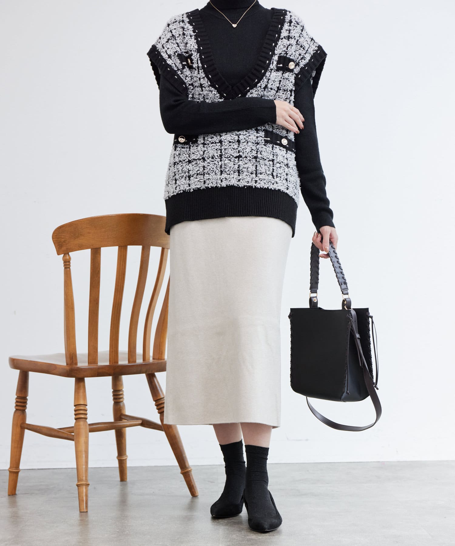 キレイ目にニットなどトップスを