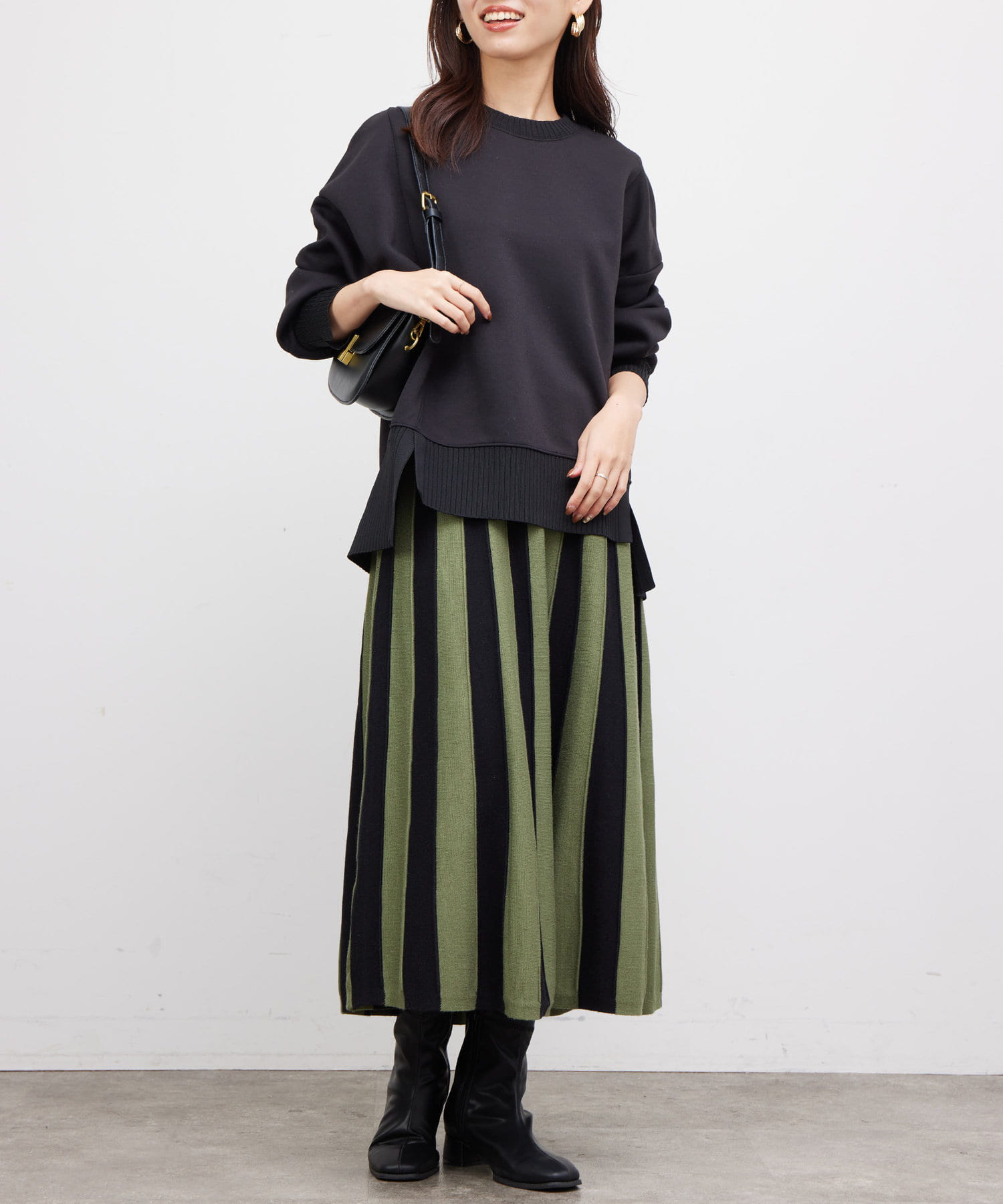 ニット素材で適度に重みがあるので、落ち感があり広がりすぎない