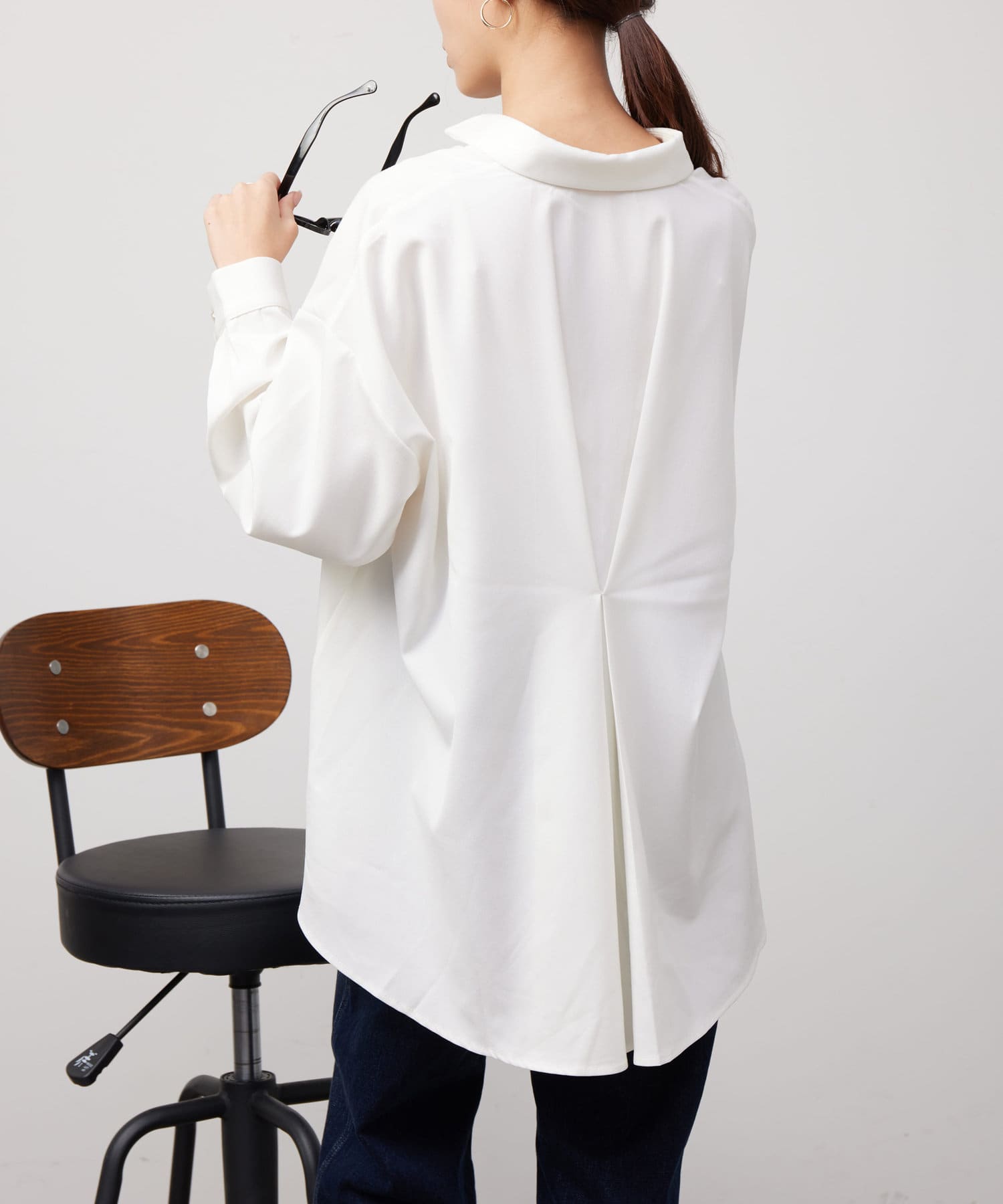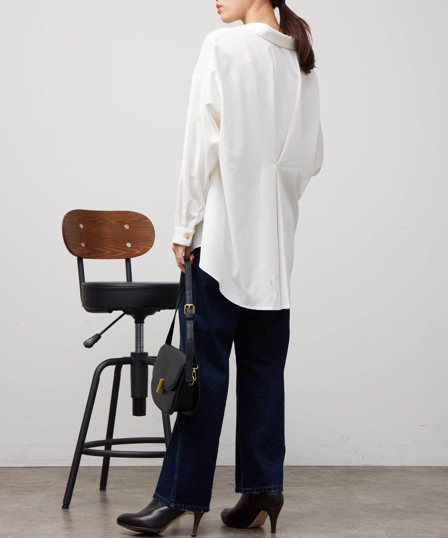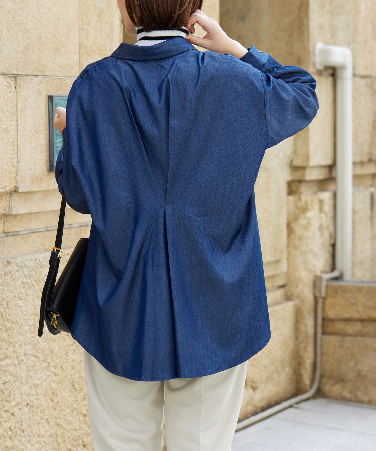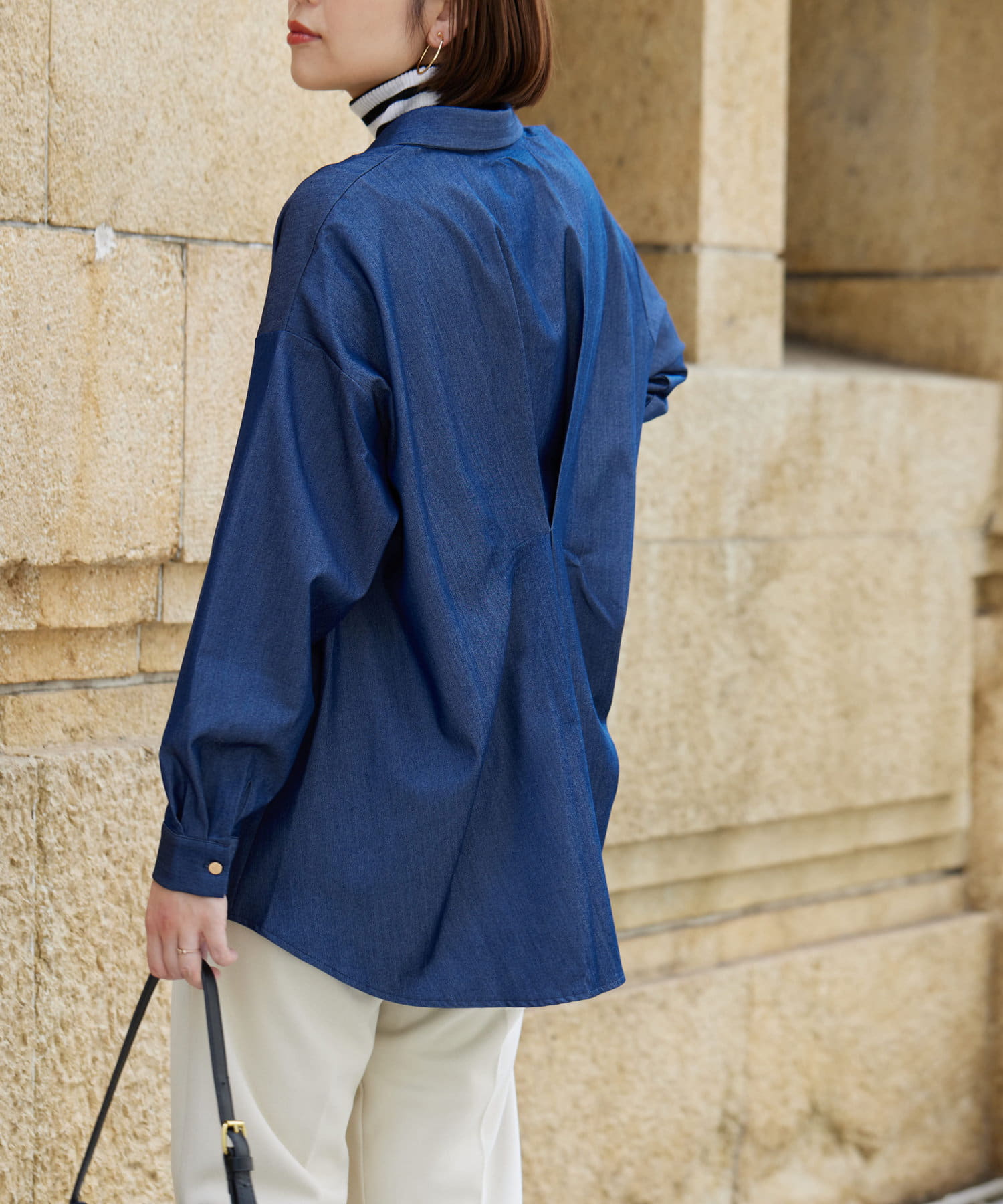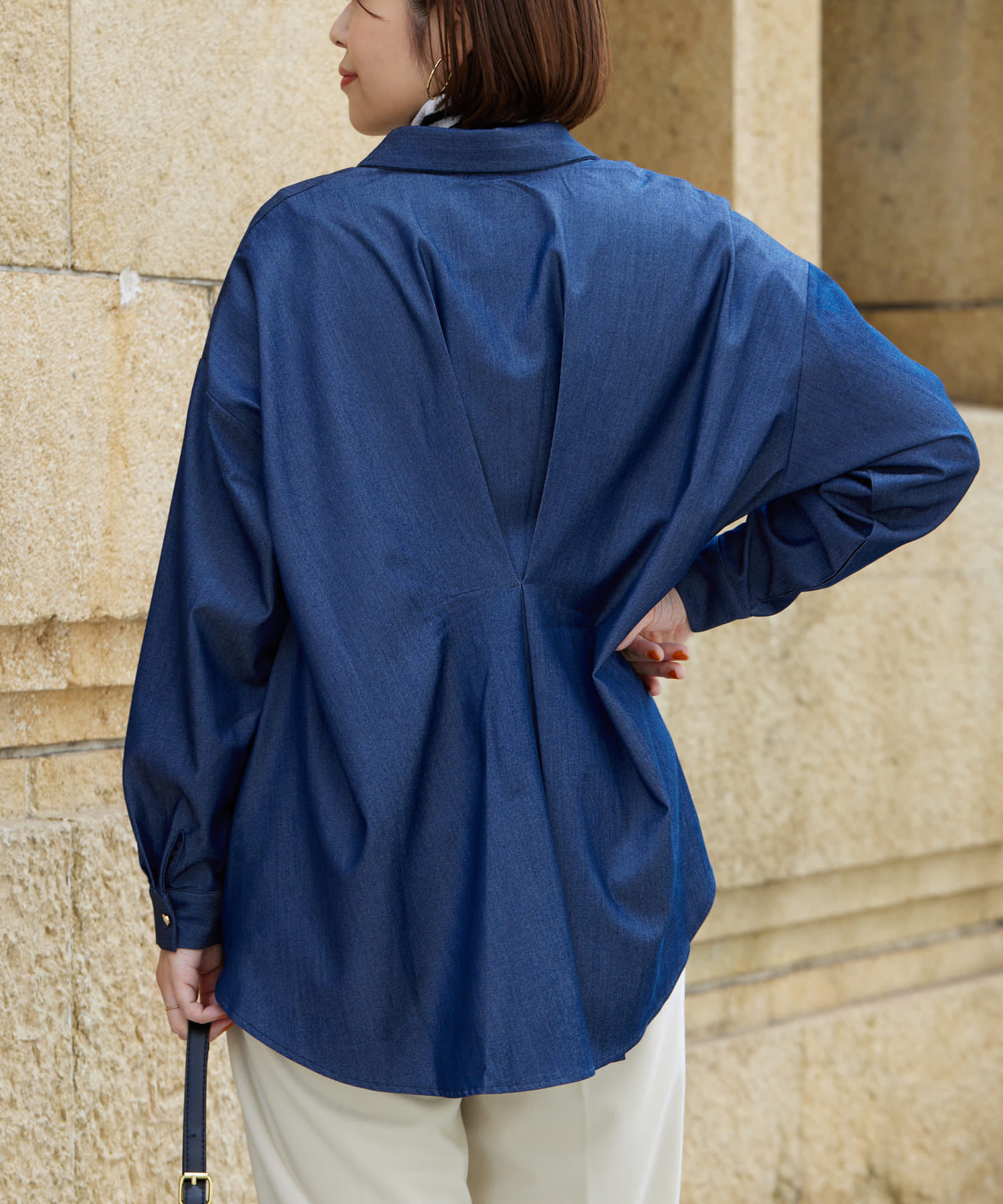 後ろに施されたタックが後ろ姿までこなれ感を演出してくれます。