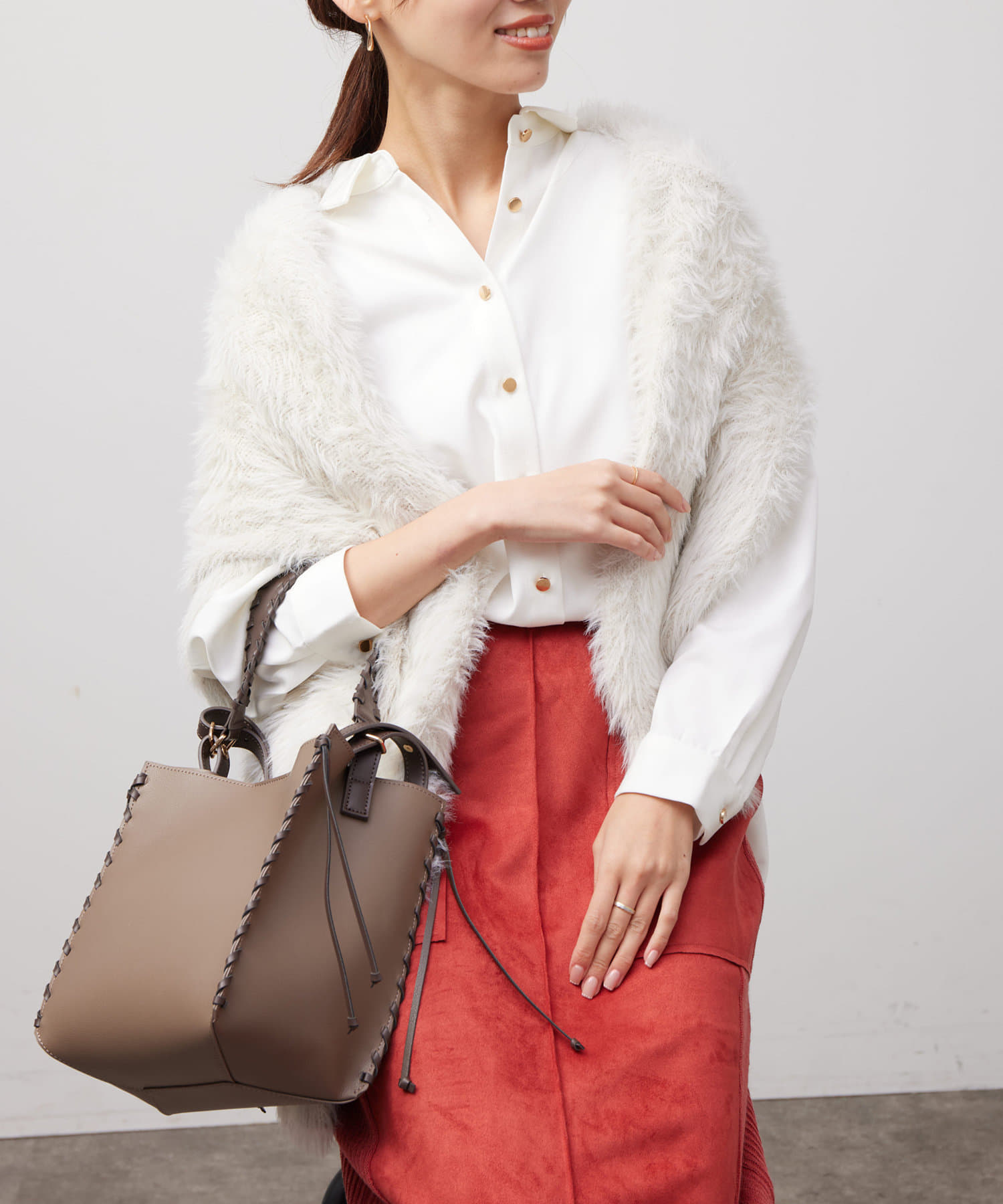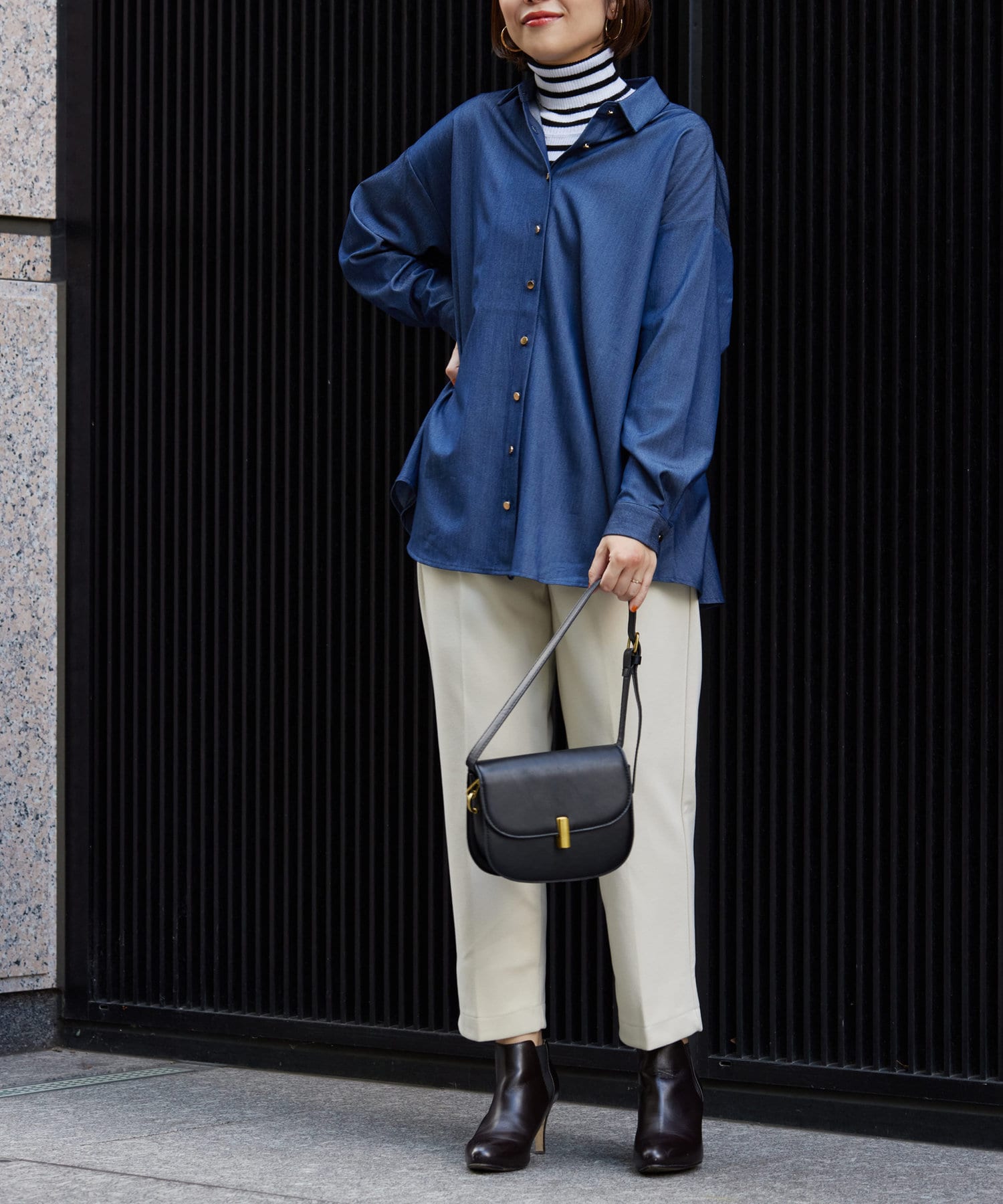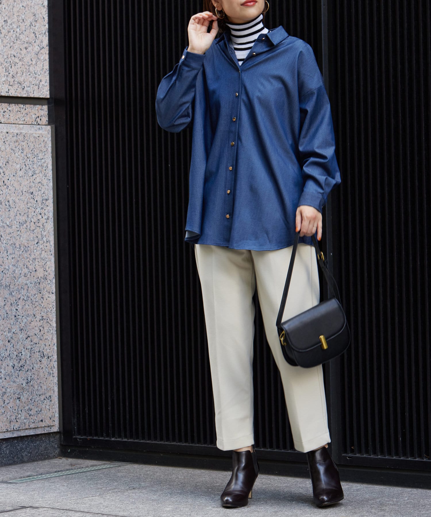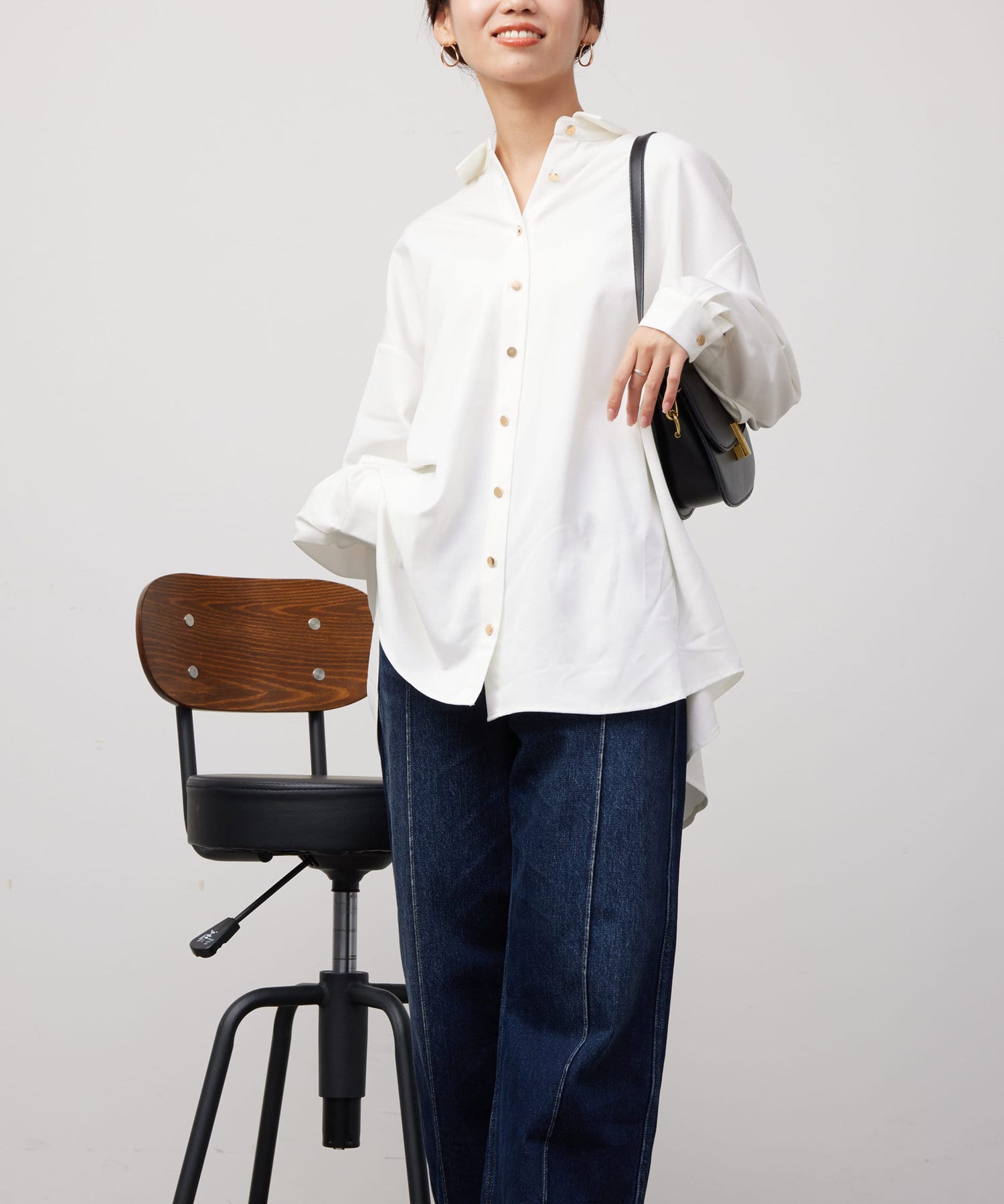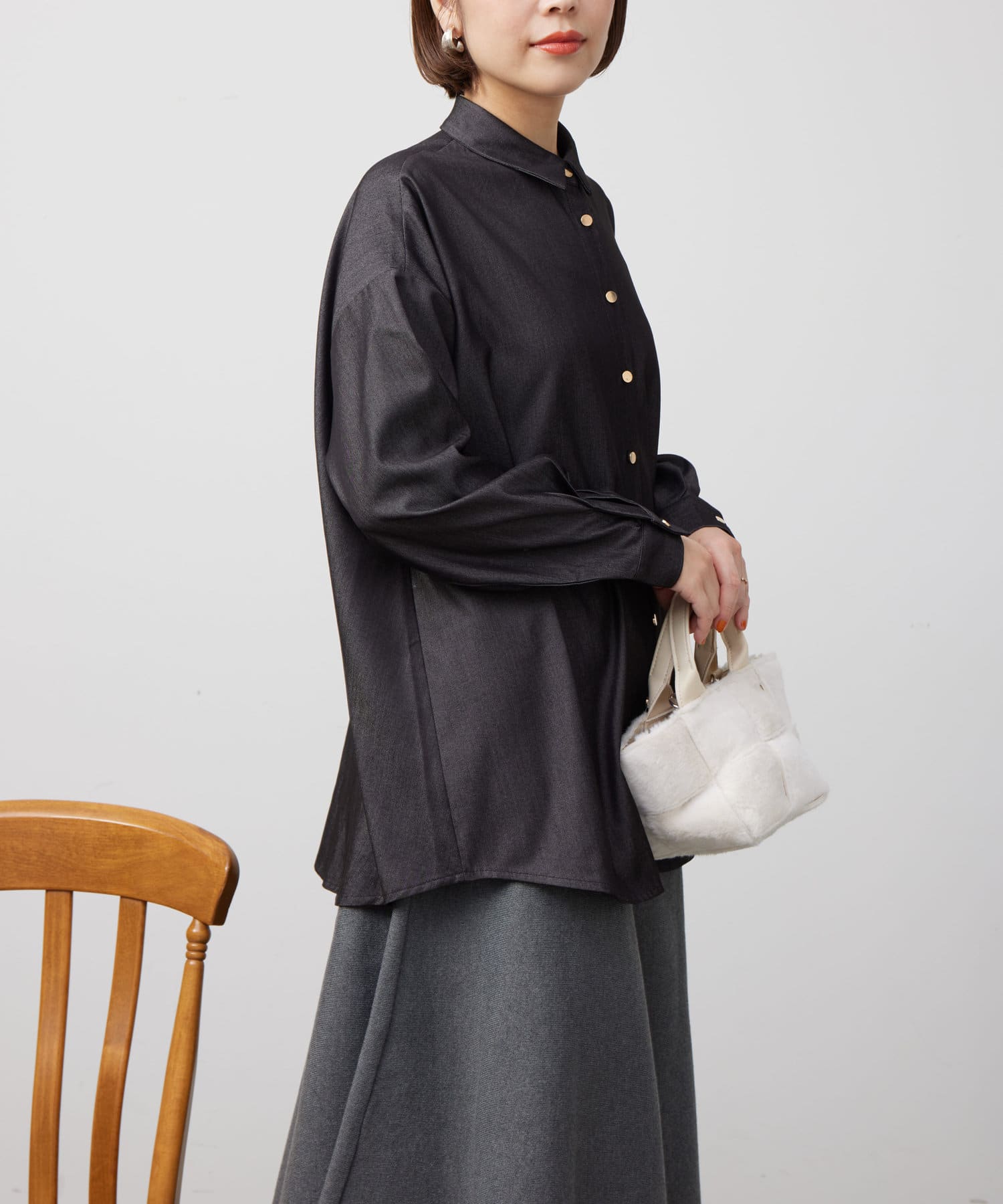 後ろに施されたタックが後ろ姿までこなれ感を演出してくれます。
