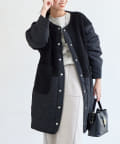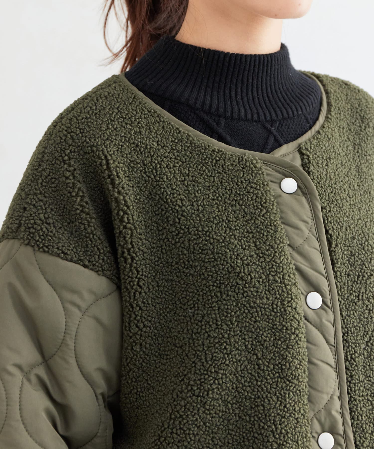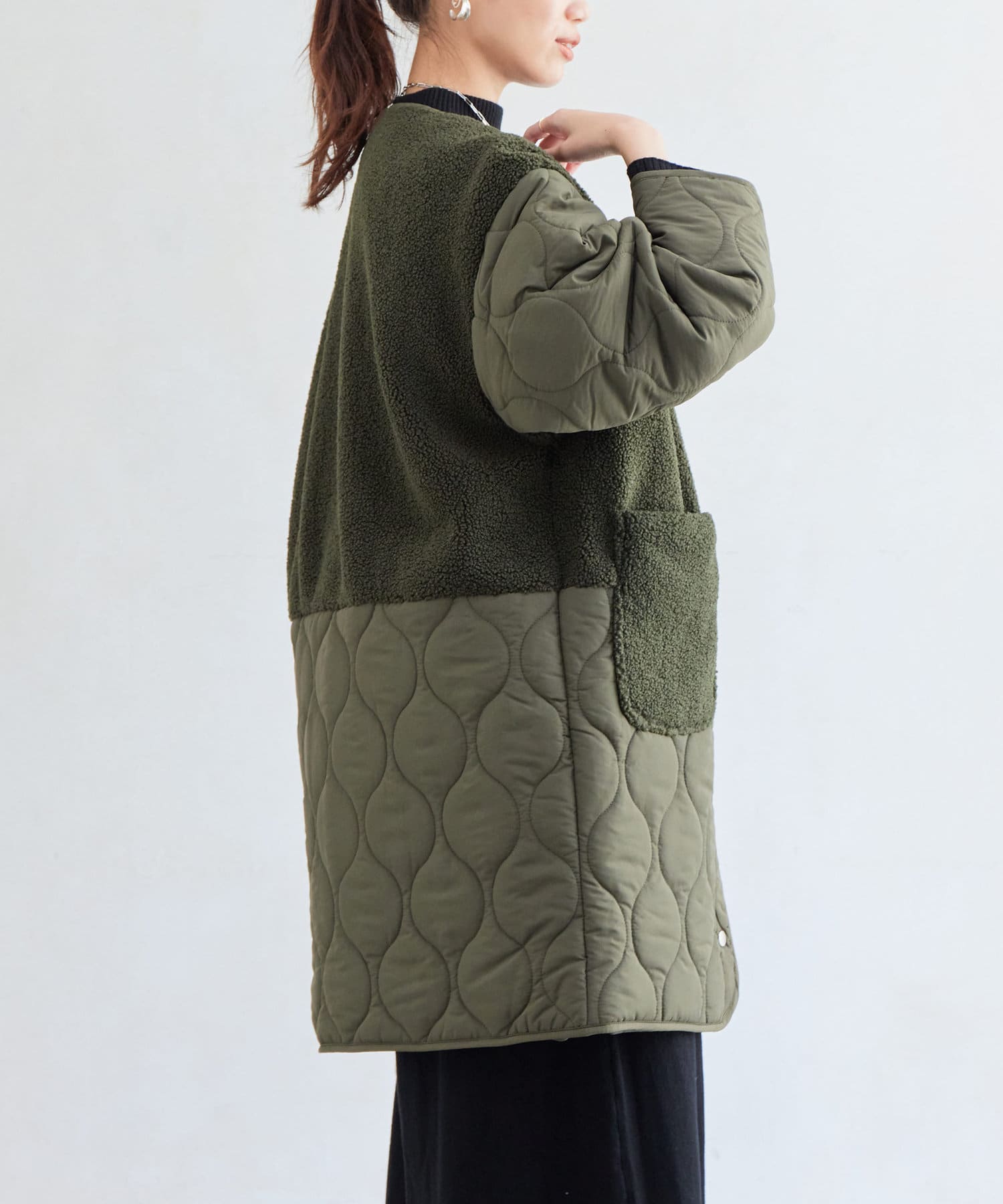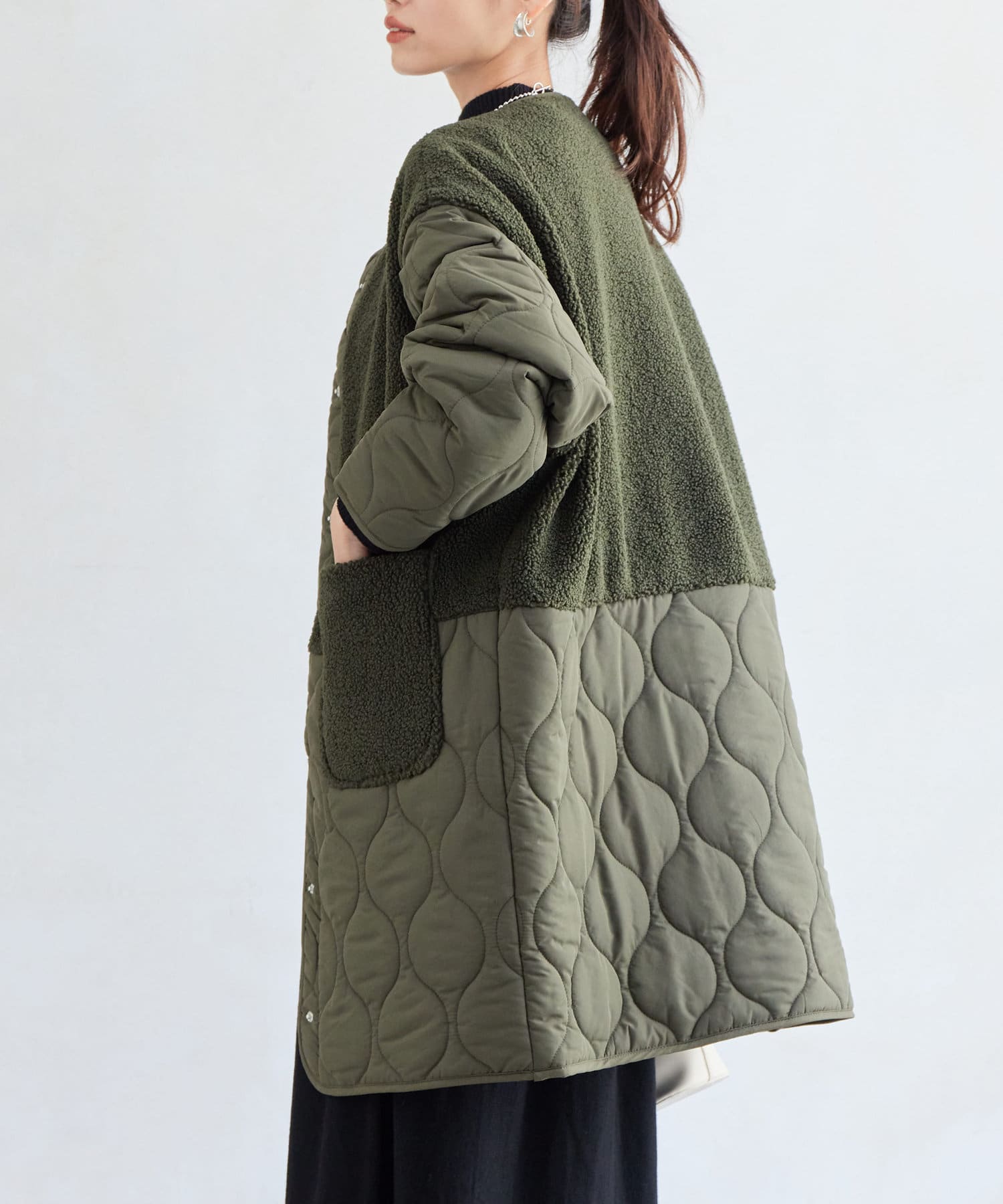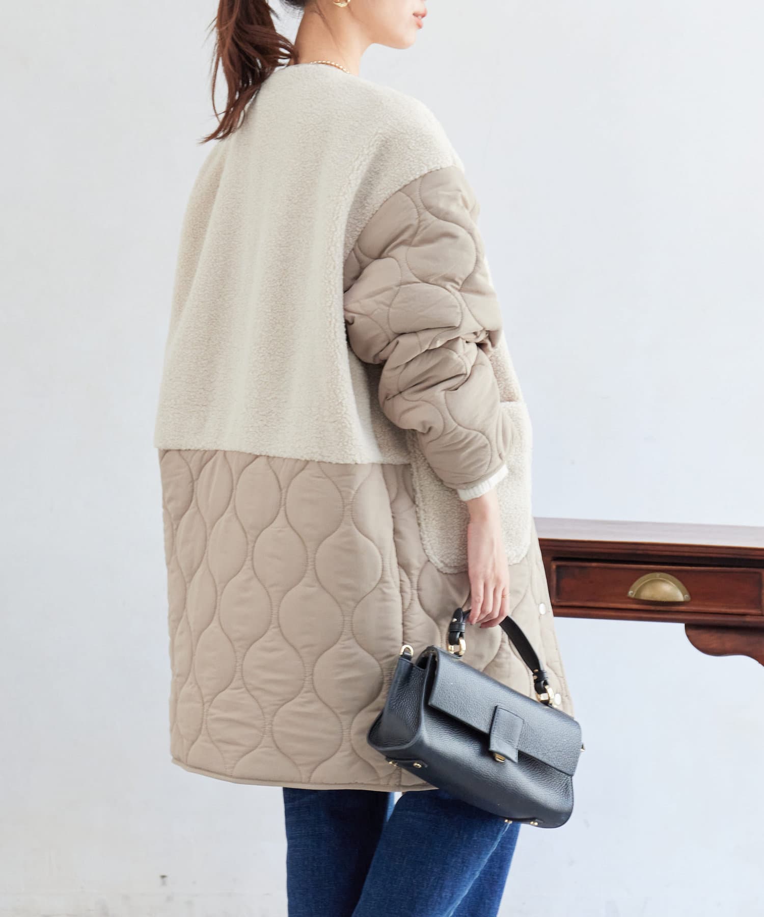 TOP > Chez toi > レディース > ジャケット/アウター > ノーカラージャケット > 【高コスパ!高見え!】ボア×ひょうたんキルト切替コート