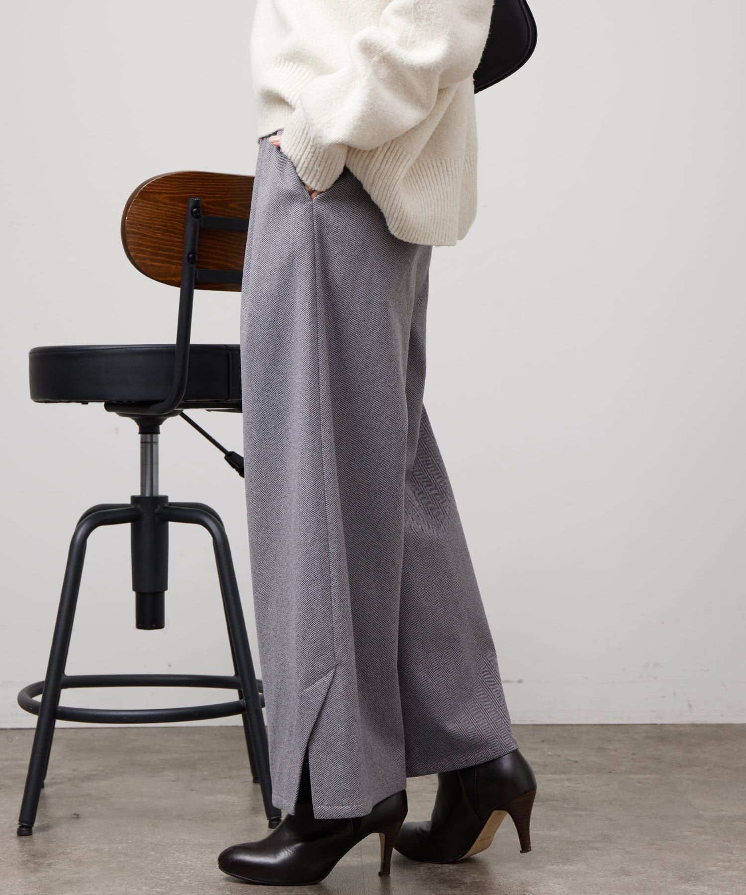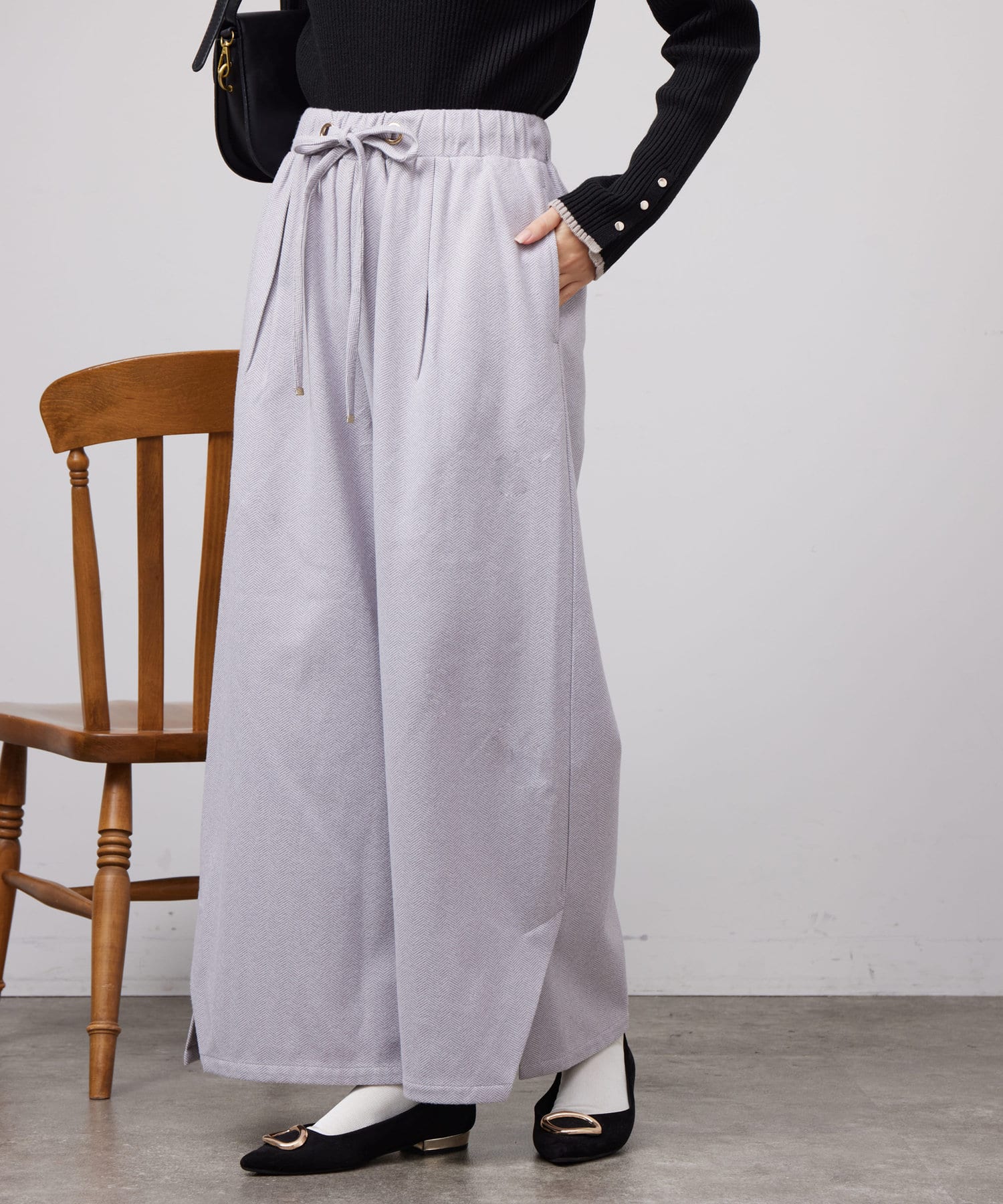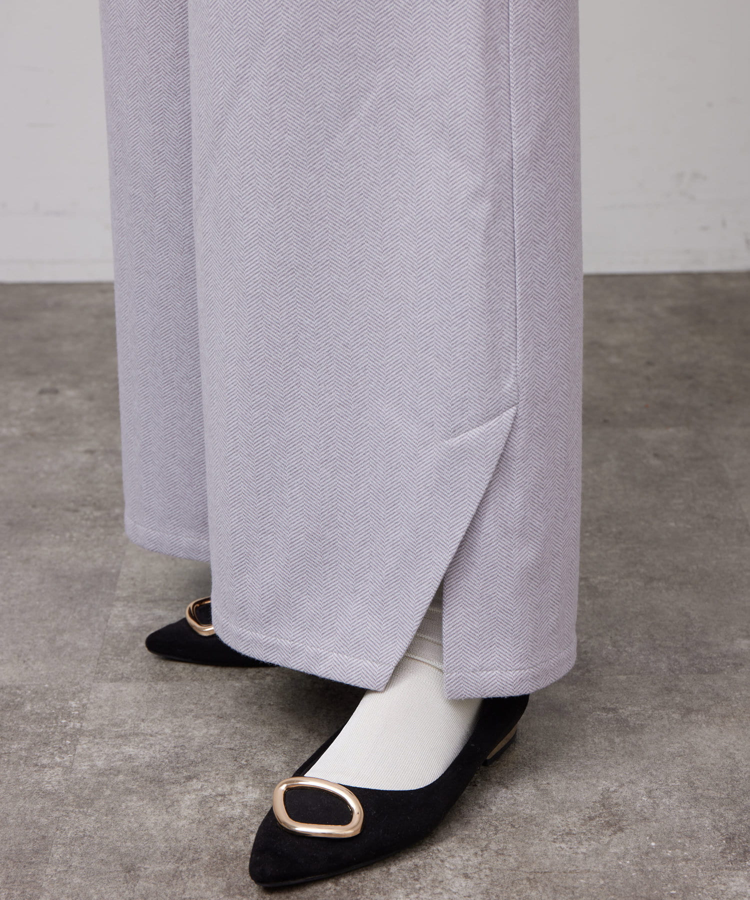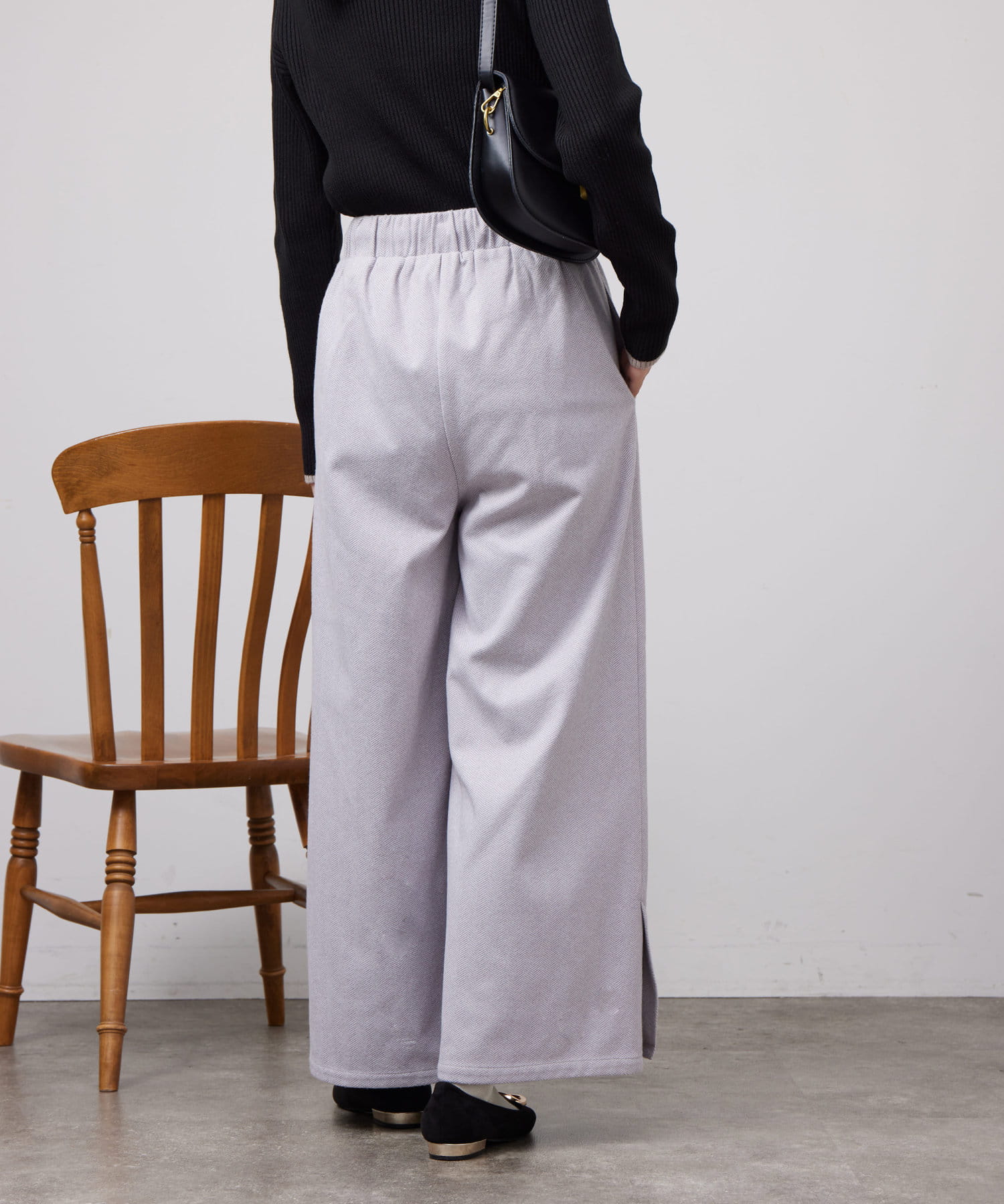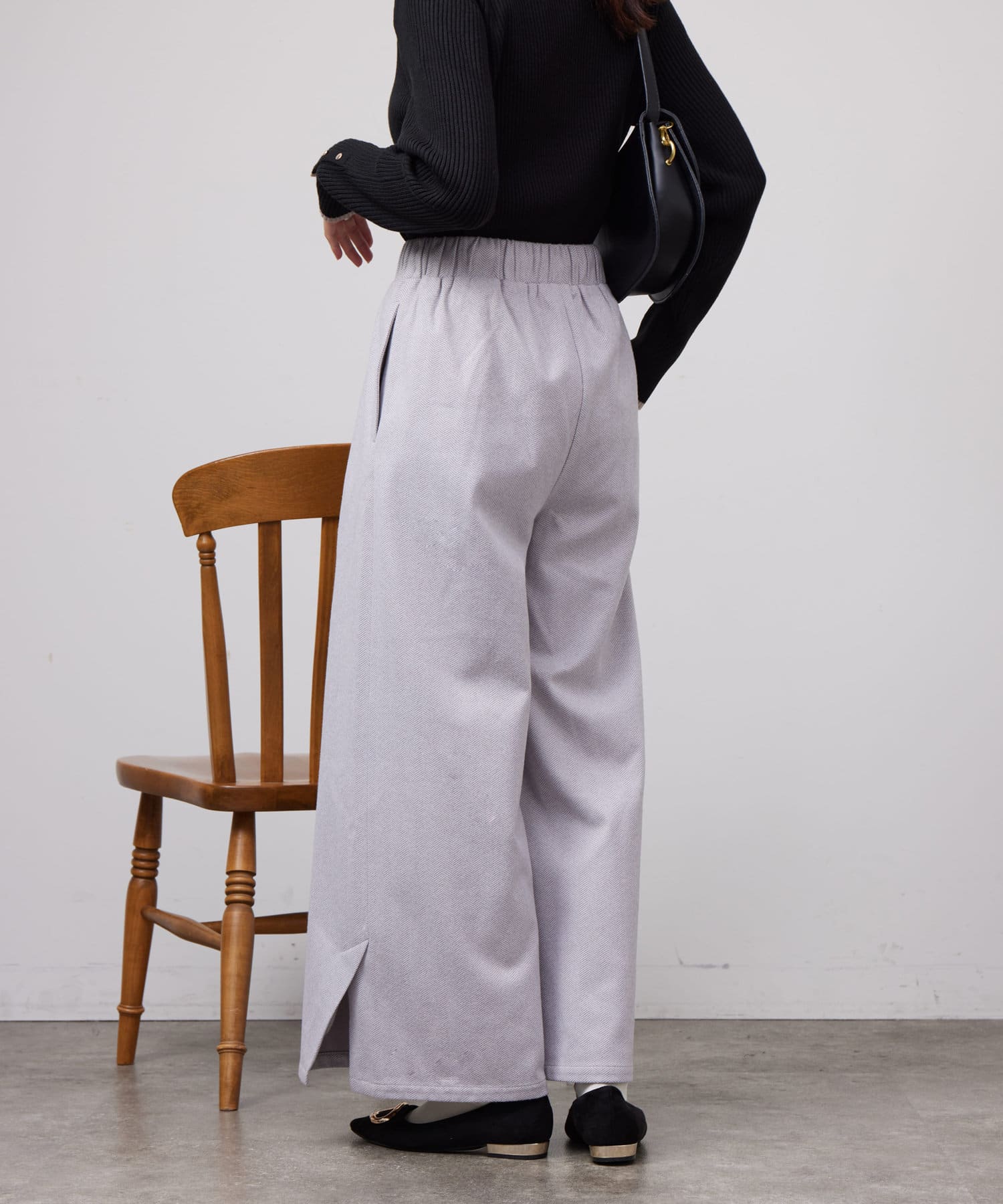 ヘリンボーンスリット切替ワイドパンツ