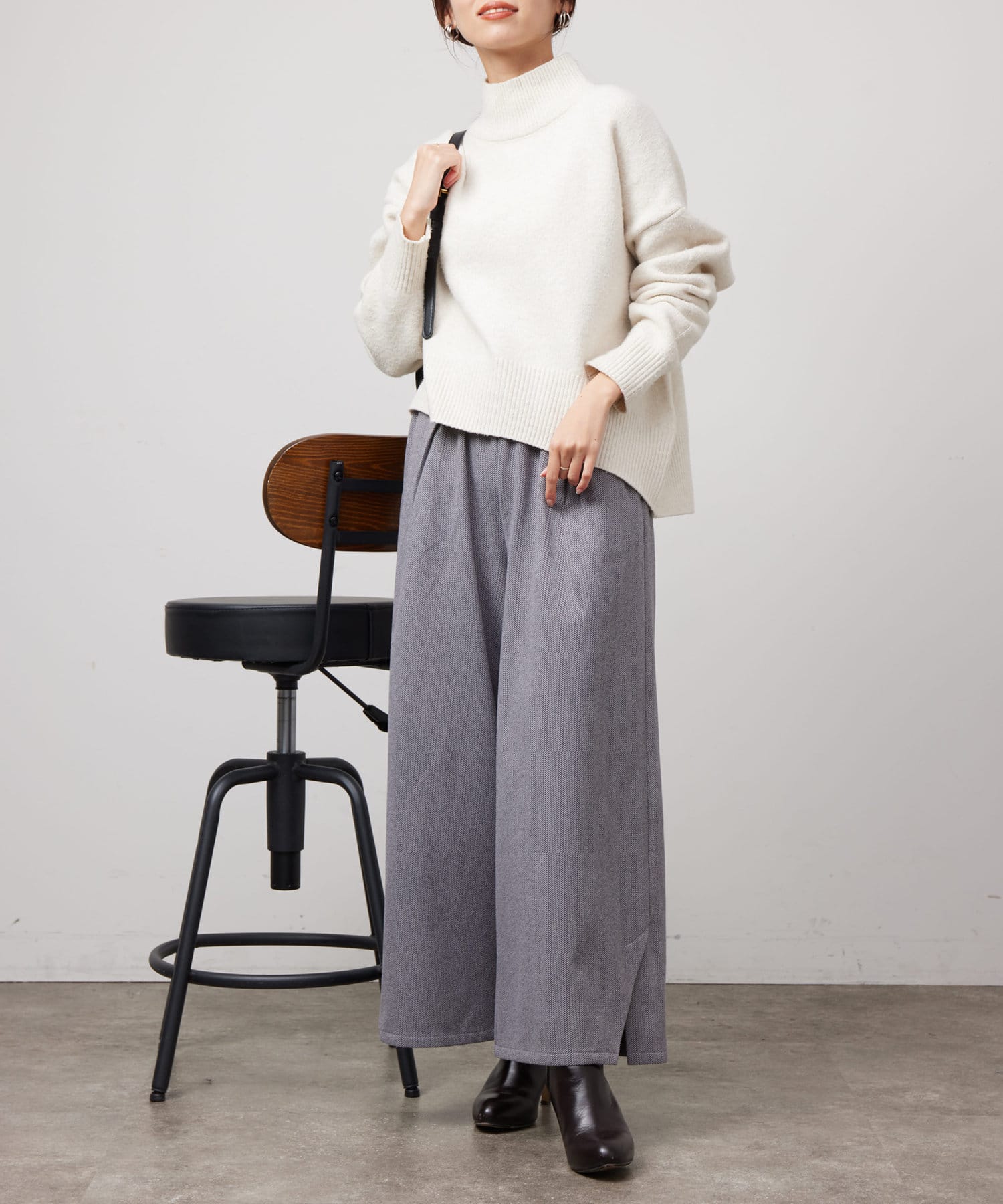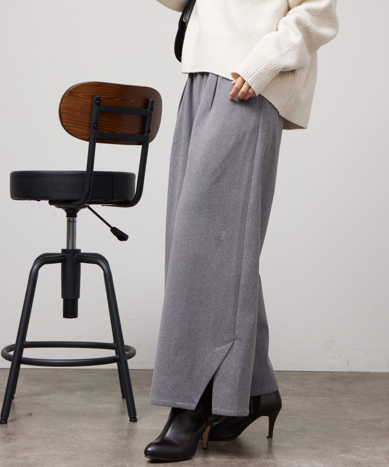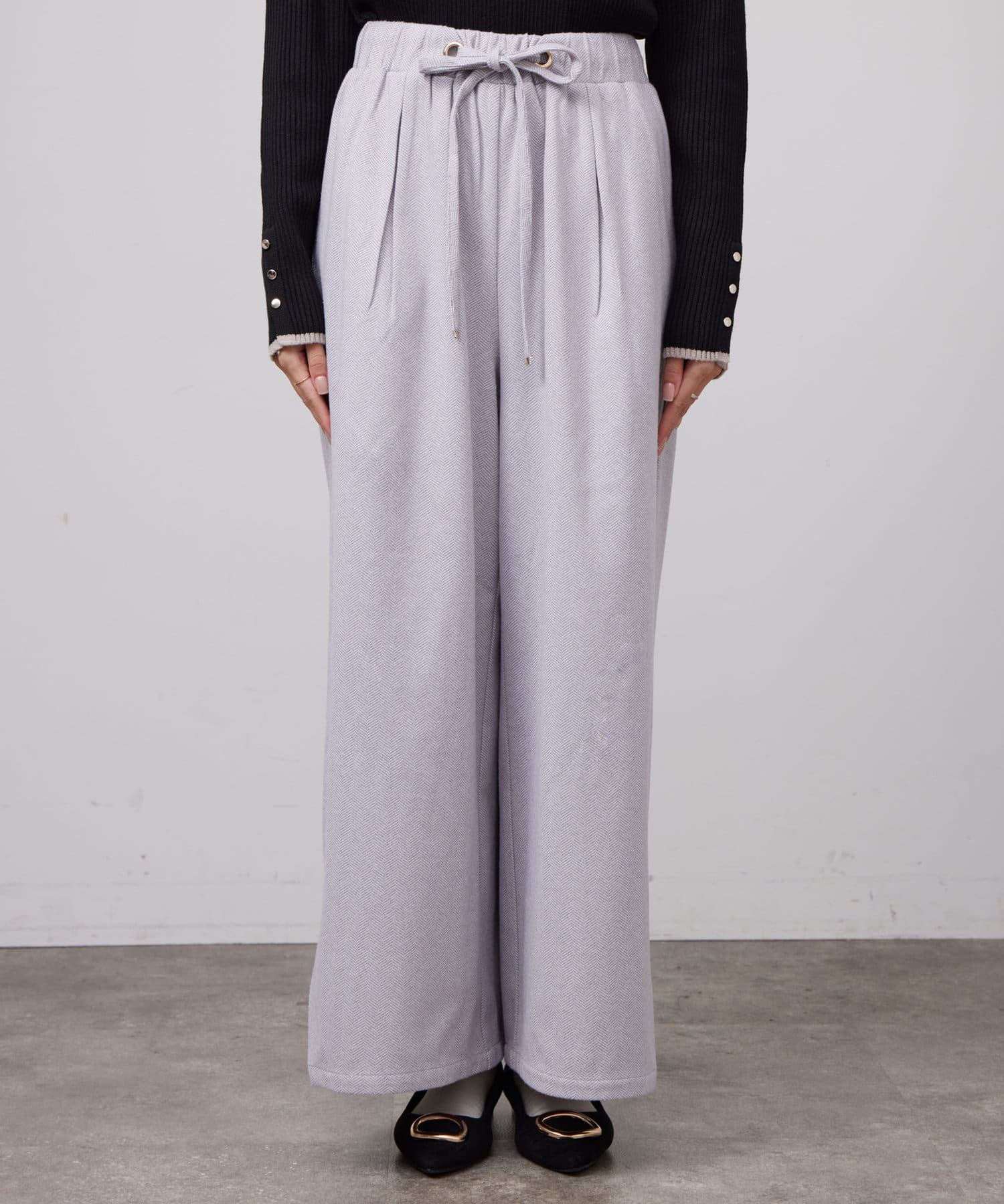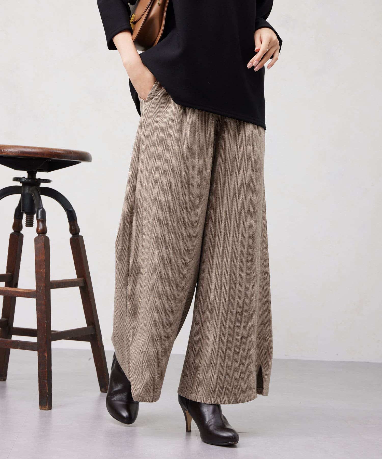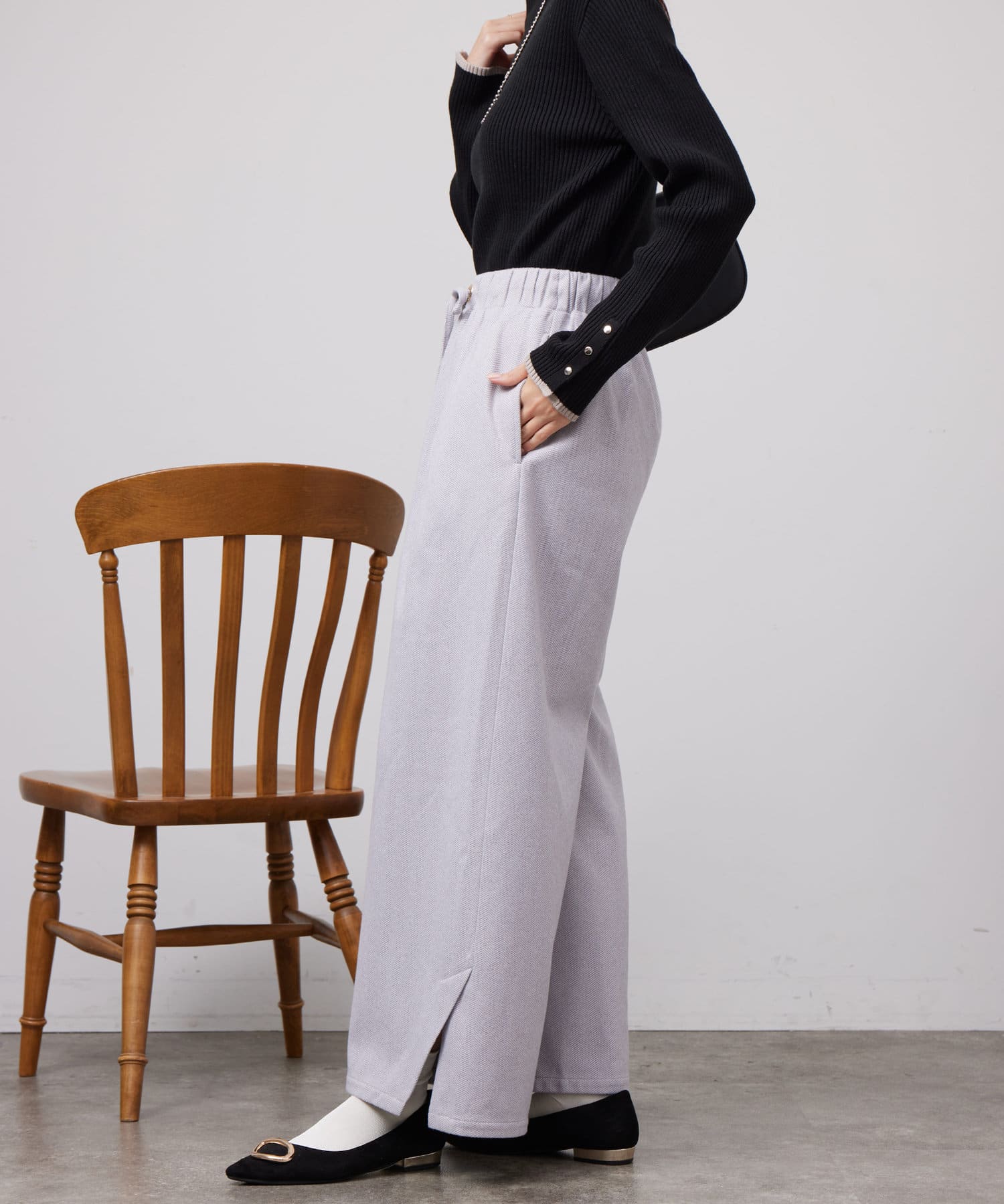 ヘリンボーンスリット切替ワイドパンツ