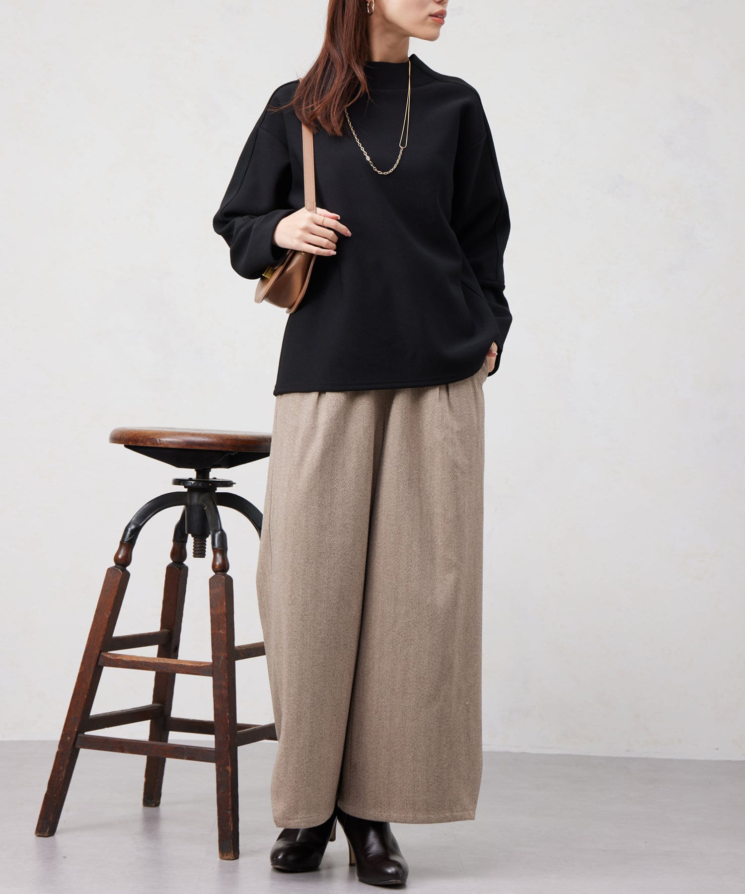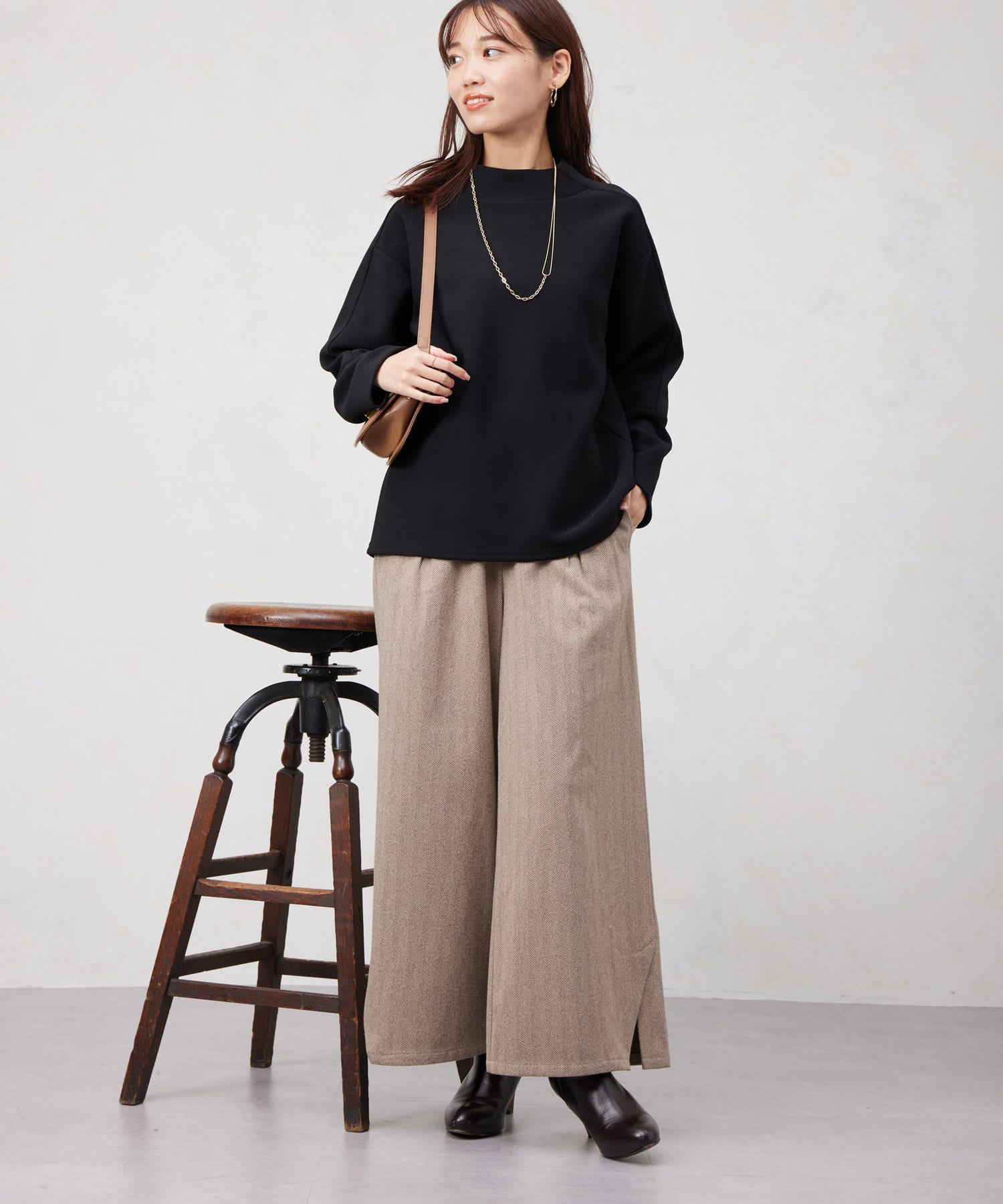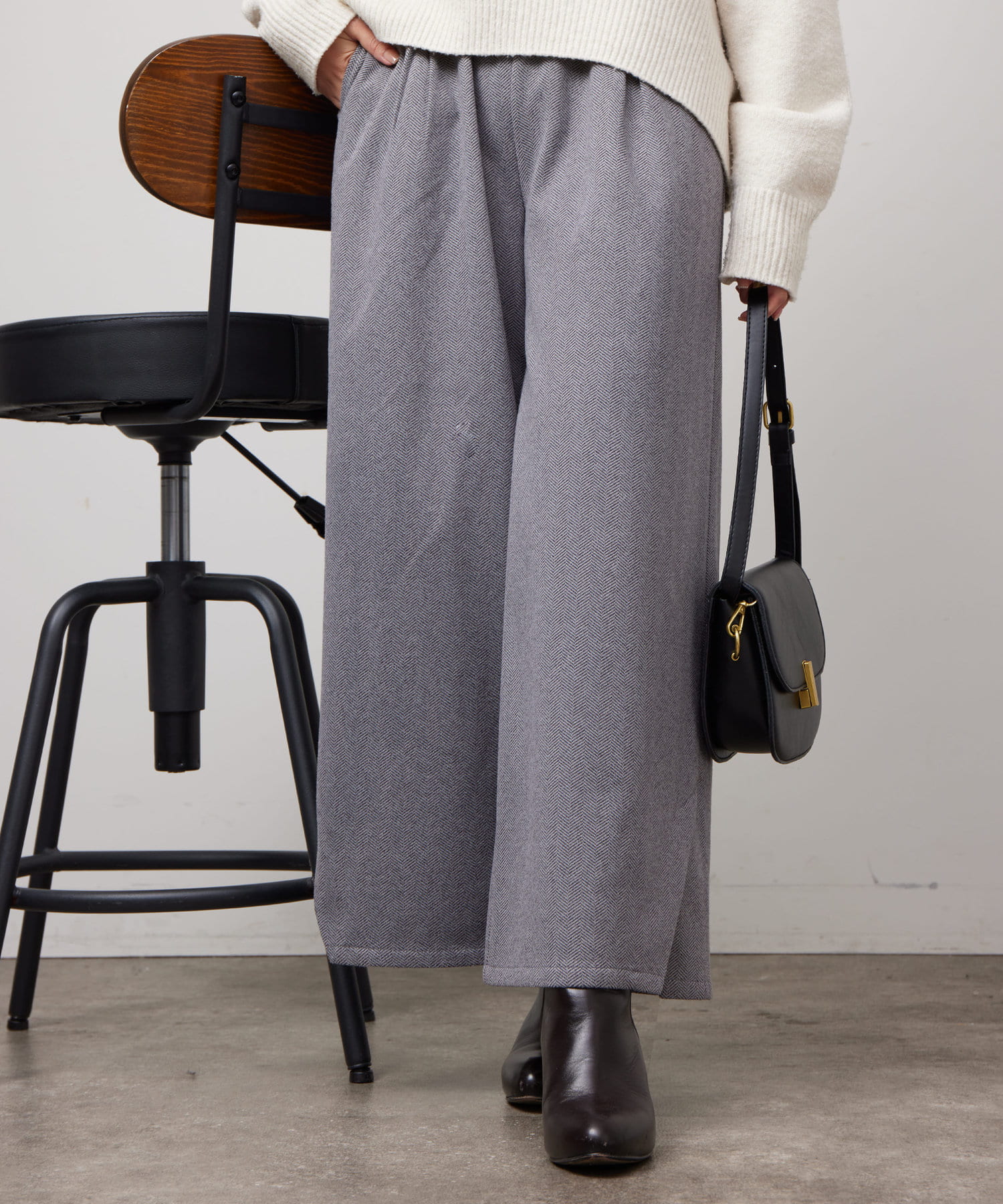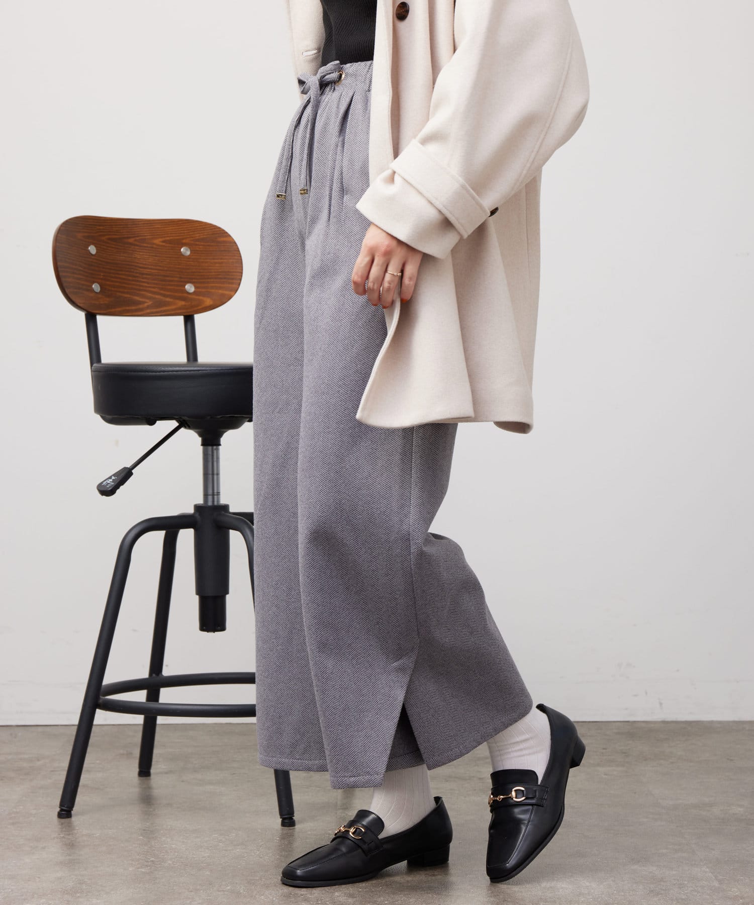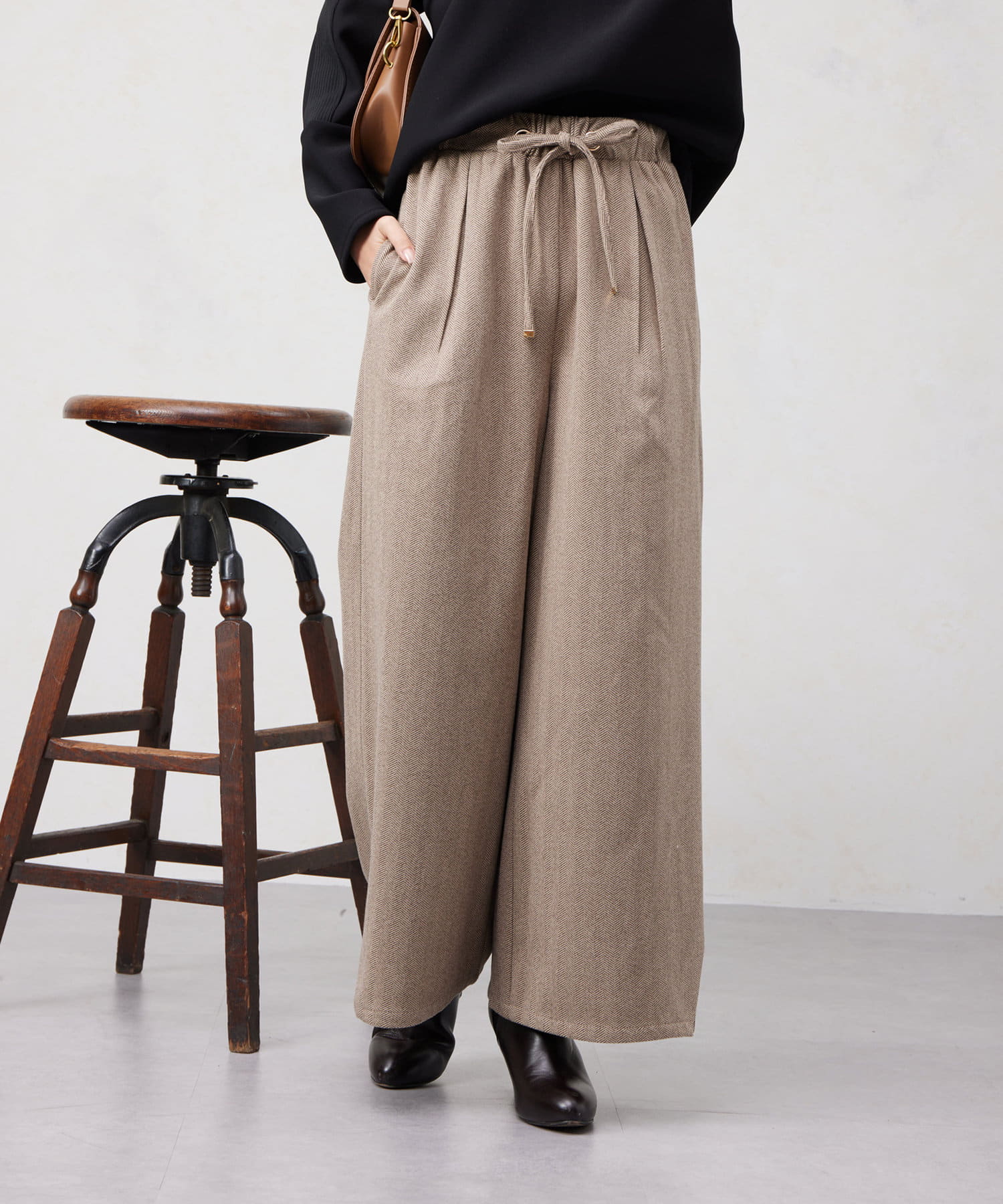 ヘリンボーンスリット切替ワイドパンツ