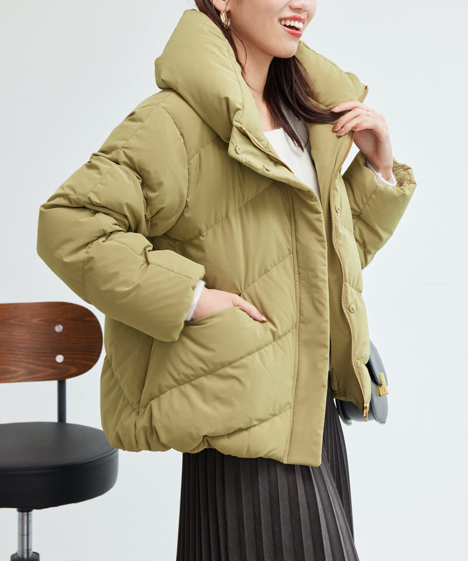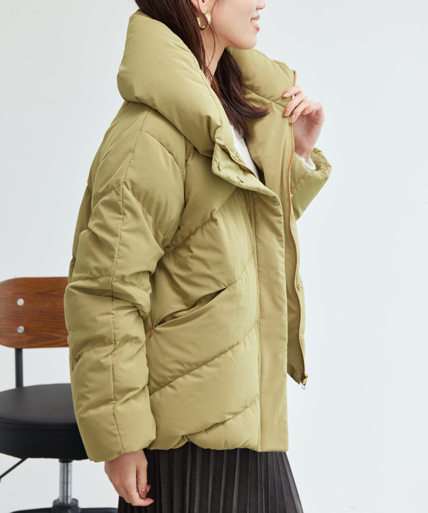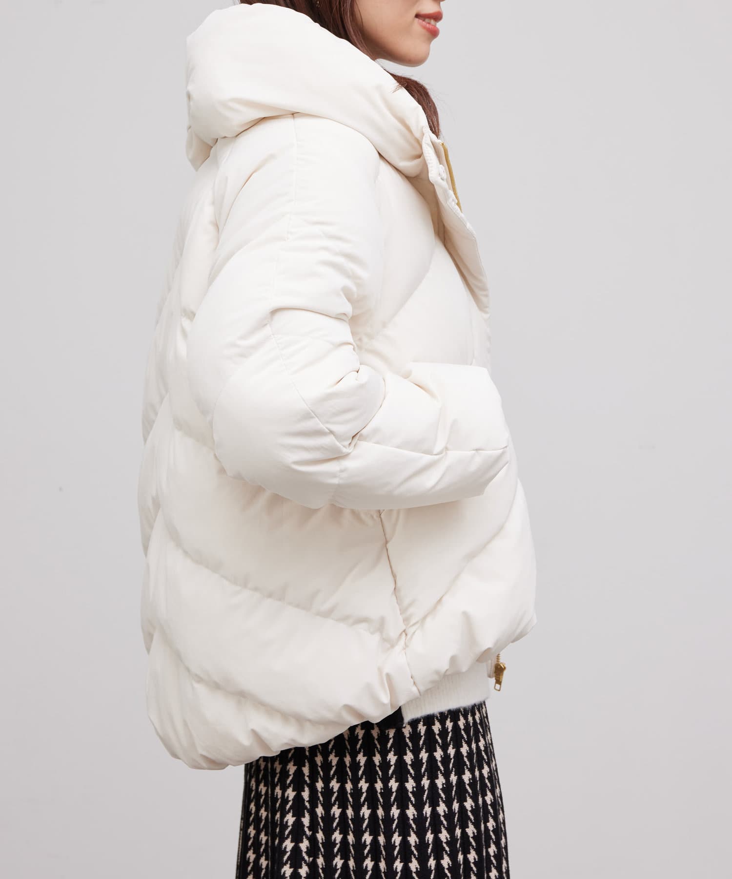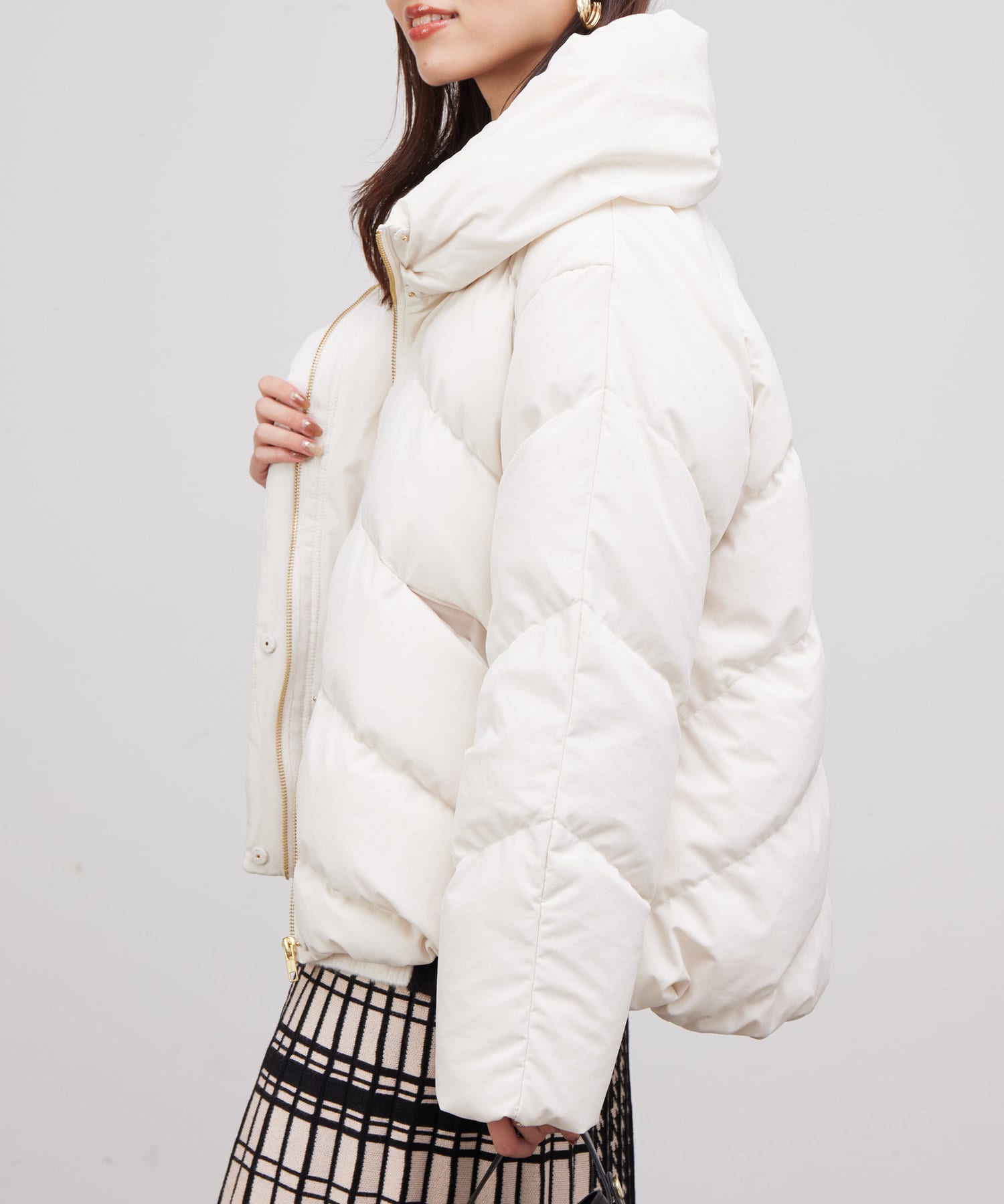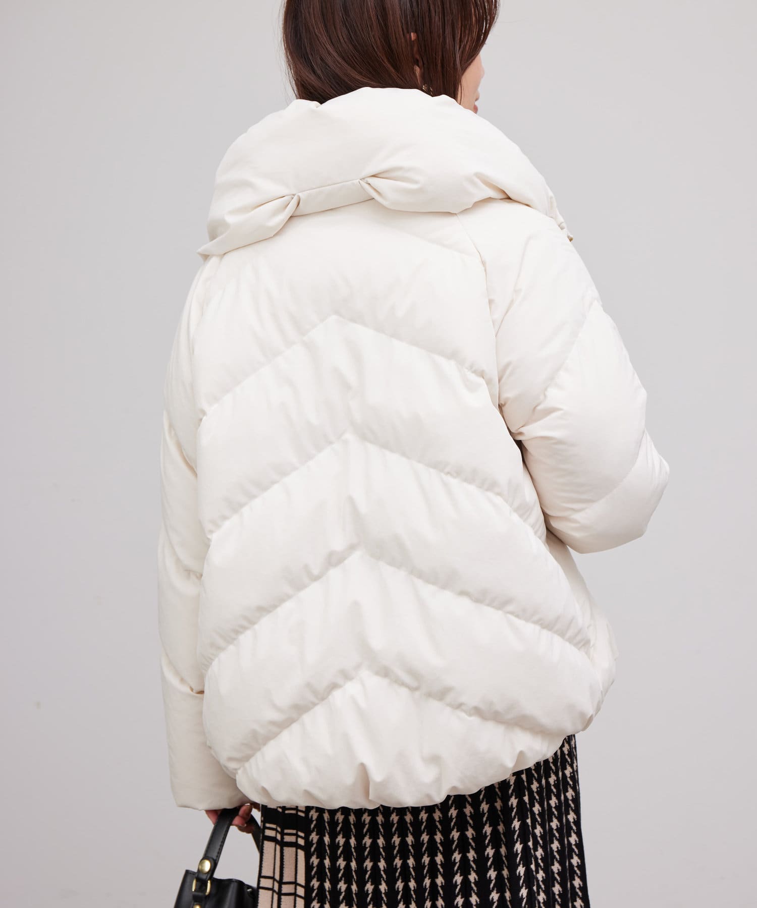 ボリュームネックの華やかなショートダウン