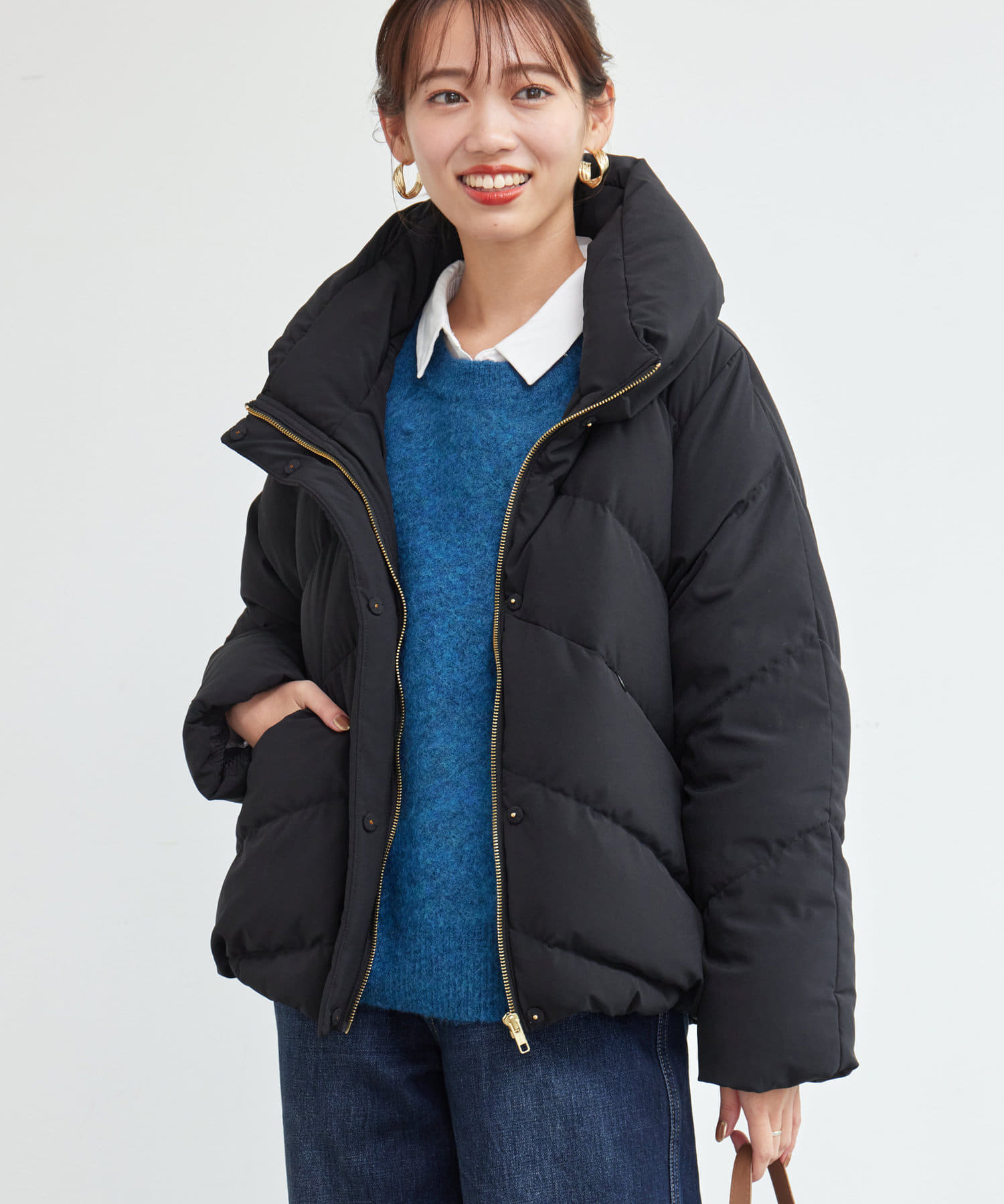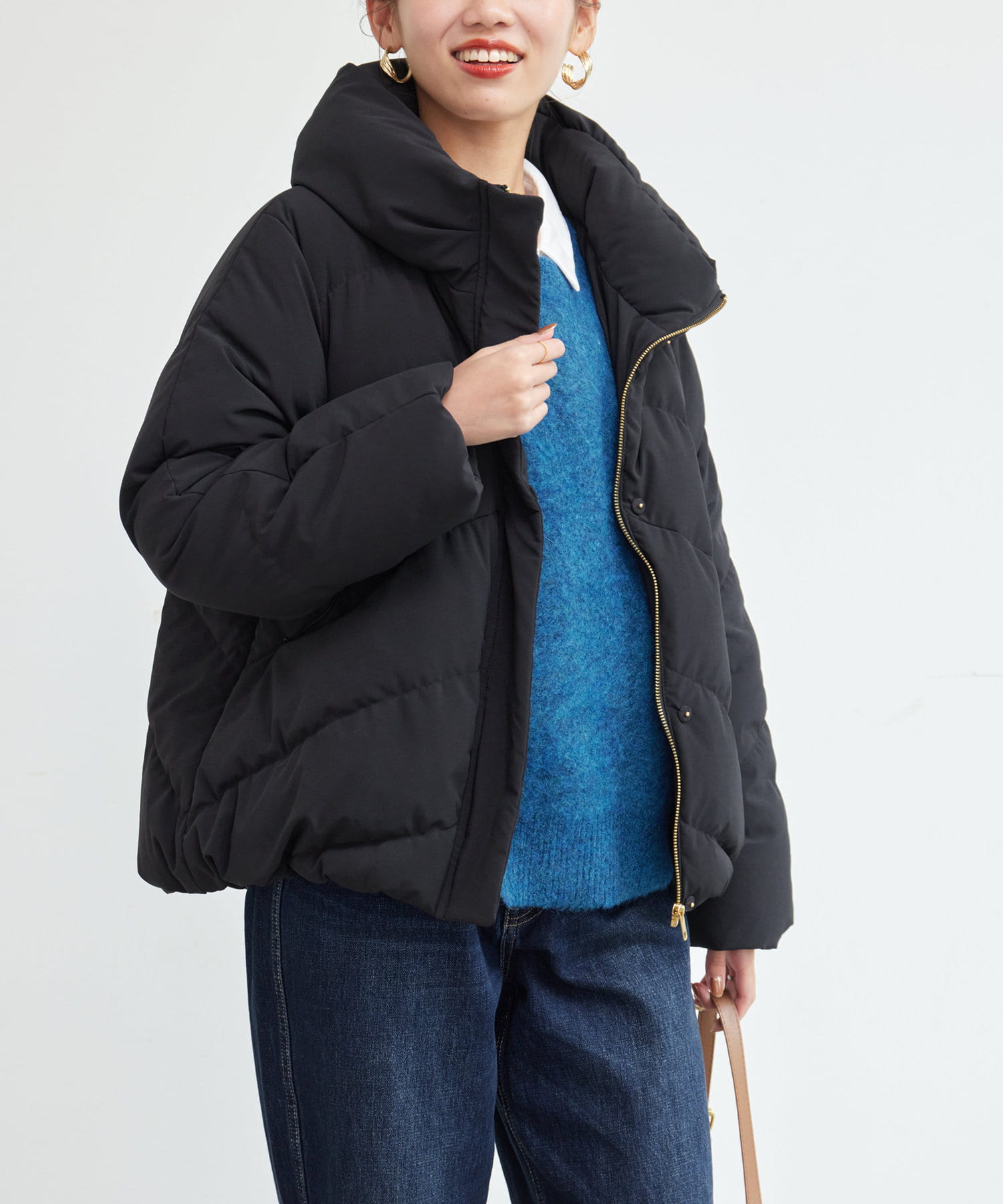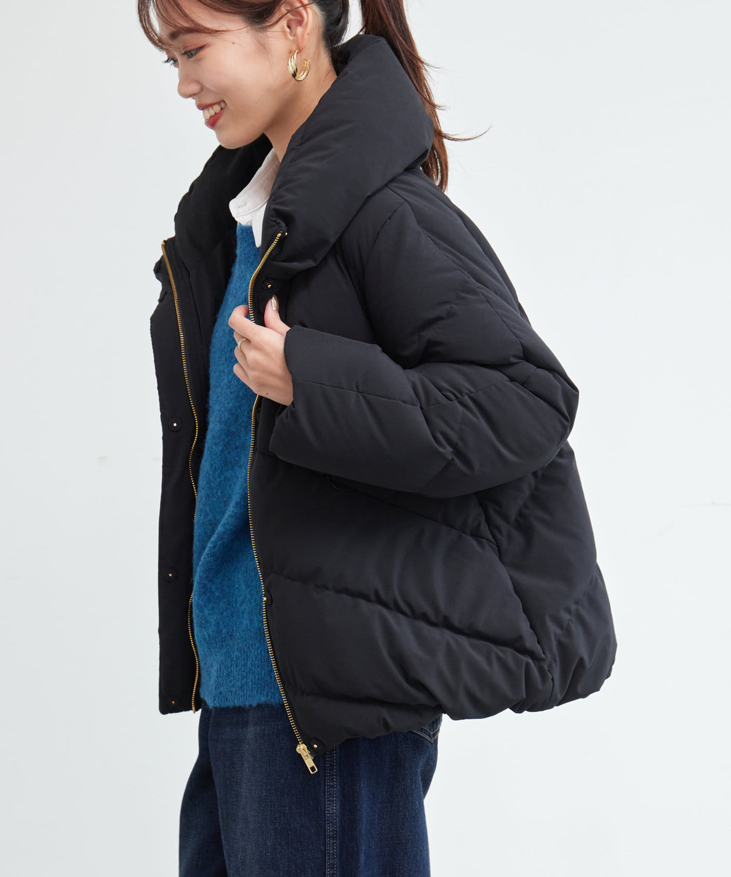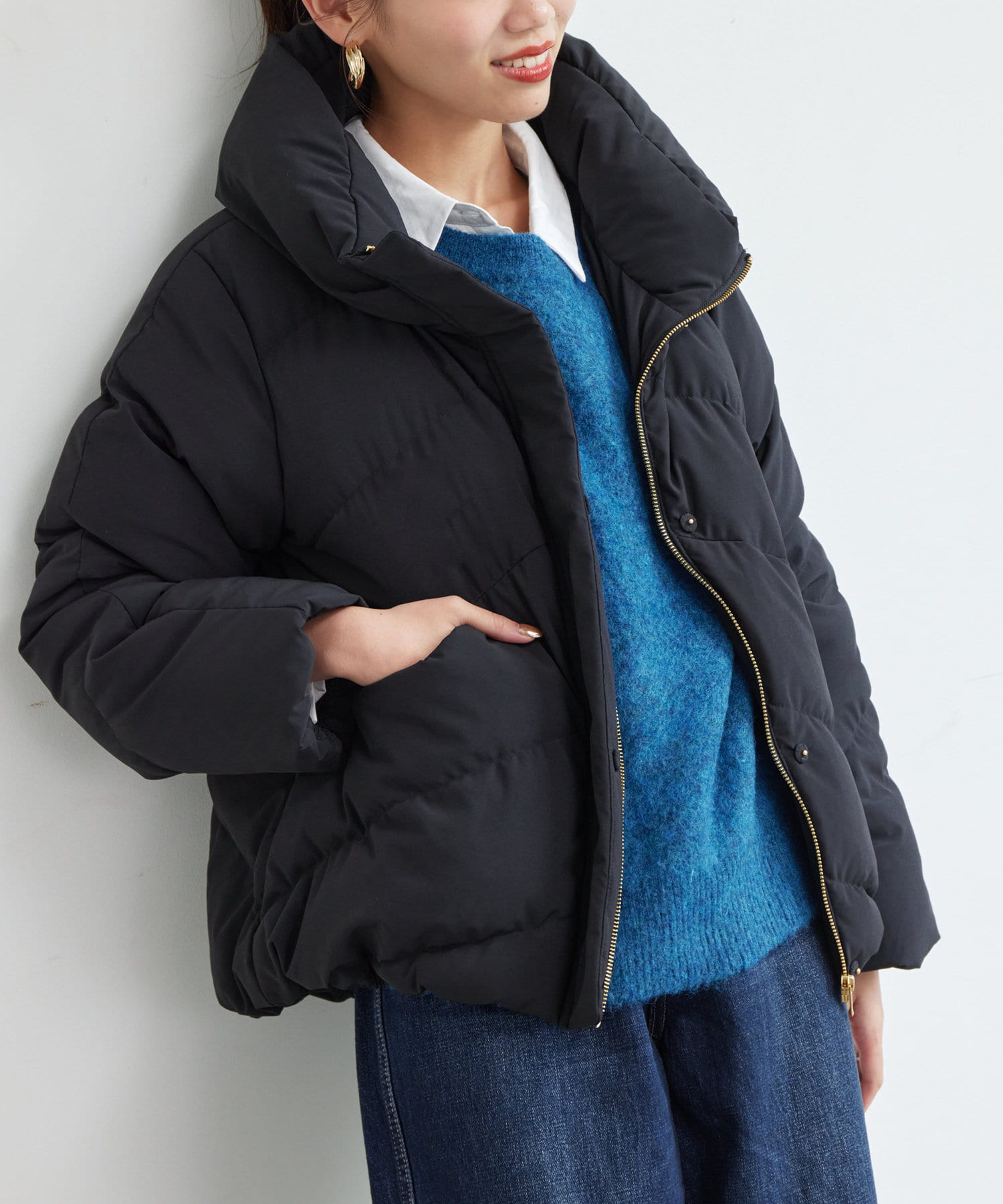 ボリュームネックの華やかなショートダウン
